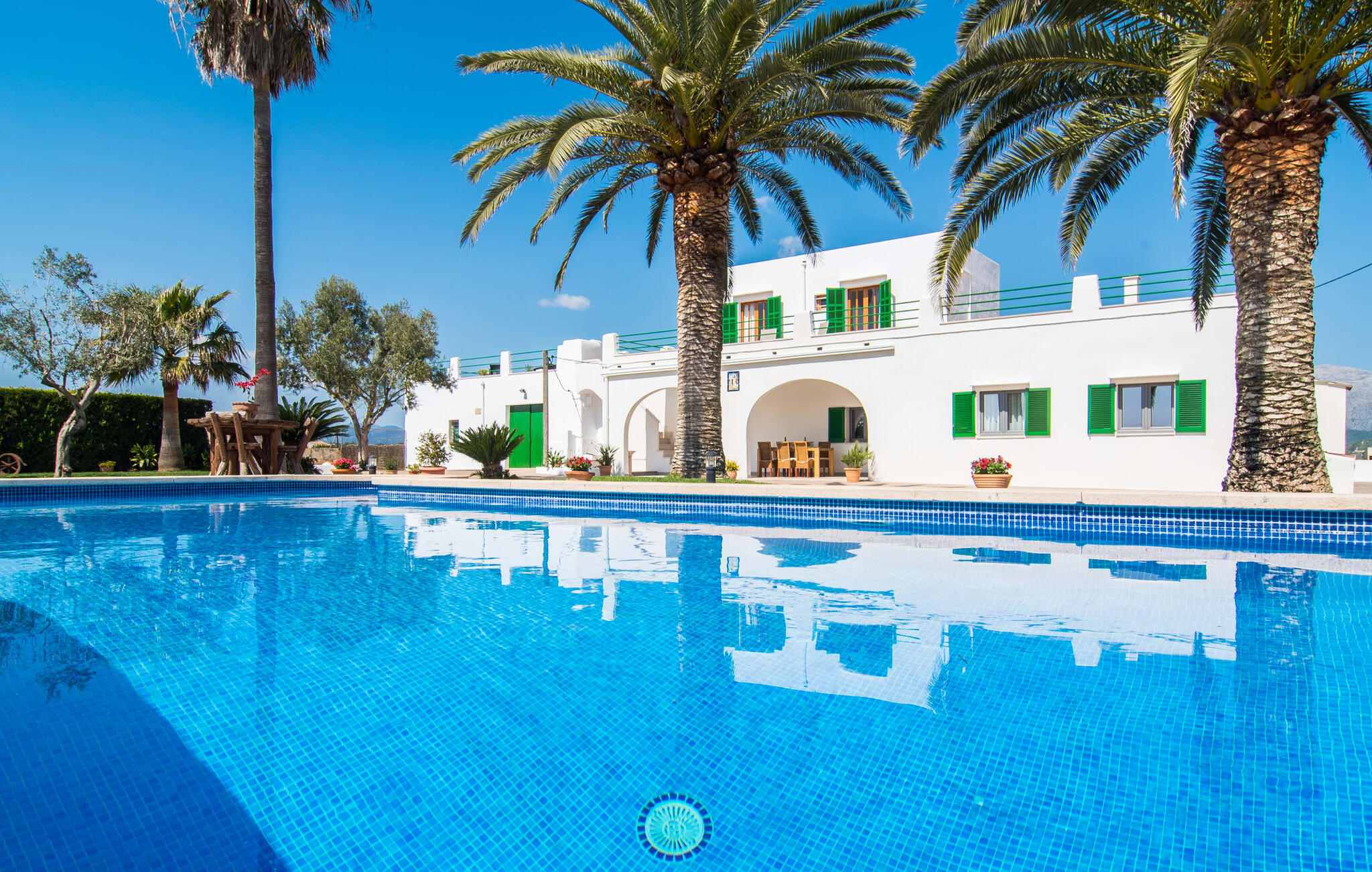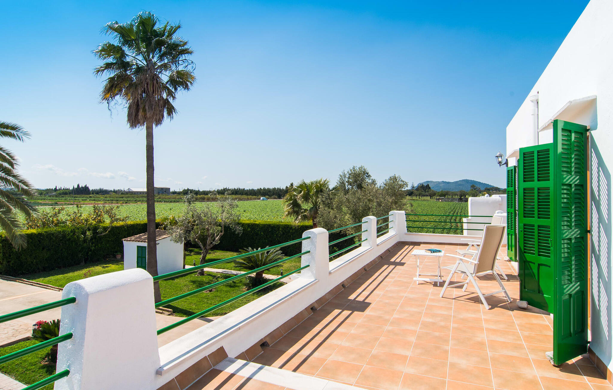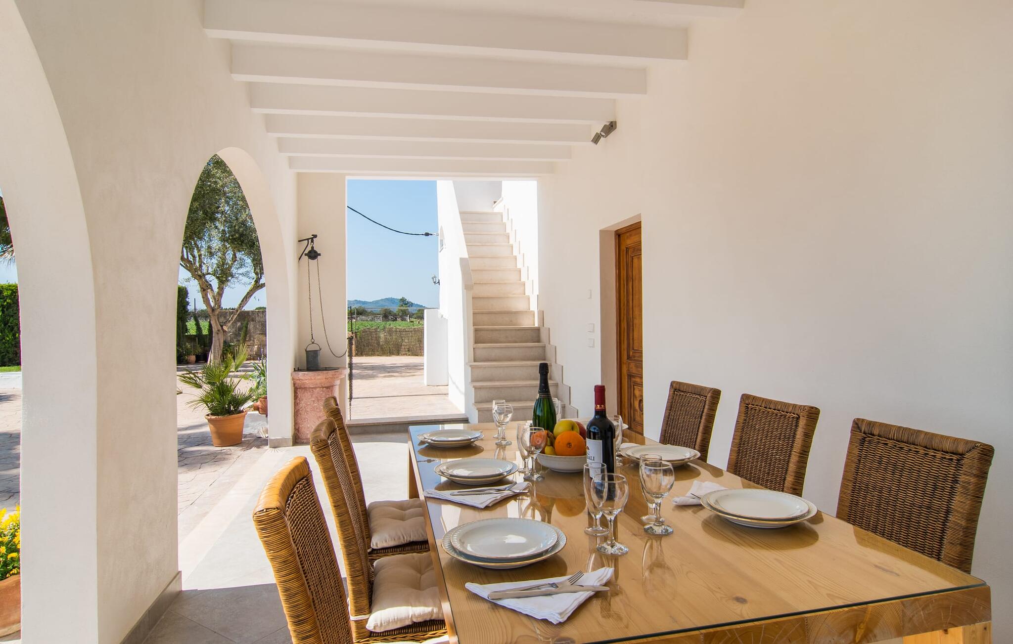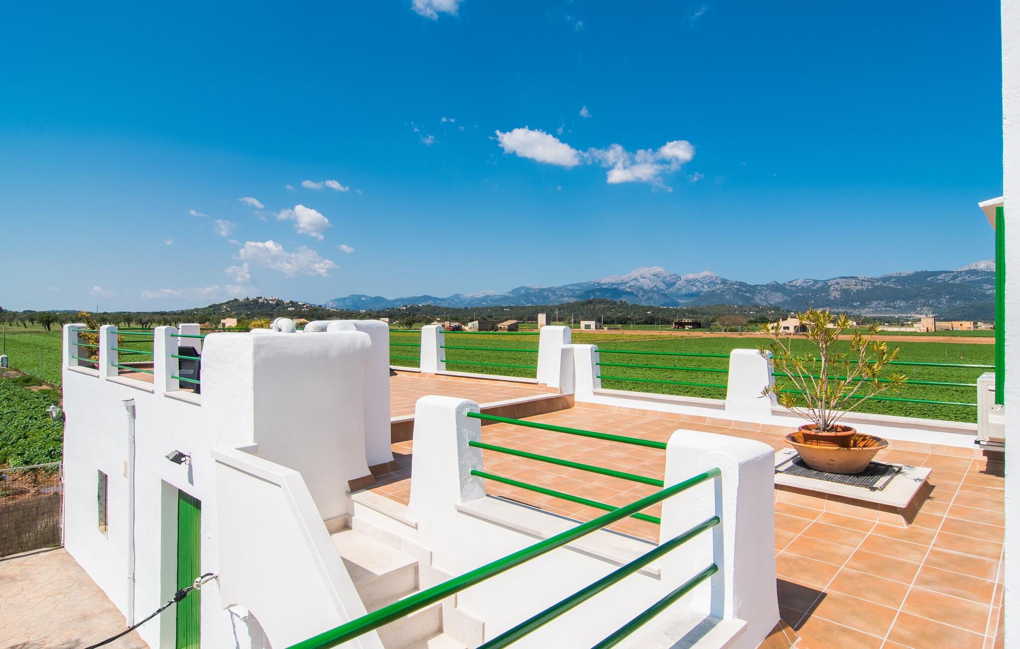 Dit comfortabele landhuis ligt op ongeveer 1,5 km van de agrarische stad Sa Pobla, vaak de groentemand van Mallorca genoemd vanwege een eeuwenoude traditie van intensieve teelt van het land, die vandaag de dag rijke oogsten oplevert. Bovendien betoveren de omliggende gebieden op loopafstand je met hun typische Mallorcaanse charme en nodigen je uit om ontspannende uren door te brengen. Dankzij de nabijheid van de hoofdweg die de steden Sa Pobla en Búger met elkaar verbindt, kun je overal snel en gemakkelijk komen. Afhankelijk van de windrichting kan er soms verkeerslawaai zijn. Een bezoek aan de heuvel van het pittoreske stadje Búger is echter een absolute must. Vanaf hier kun je niet alleen genieten van de indrukwekkende uitstraling, maar ook van een prachtig uitzicht op het vredige dorp, de baai van Alcúdia, de bergen van Llevant in het noordoosten en tot ver in de gemeente Artà, het Tramuntana-gebergte in het westen en het natuurreservaat S` Albuferia, dat natuurliefhebbers geweldige wandelpaden biedt. Voor de afwisseling kun je een heerlijke dag aan het strand doorbrengen, het dichtstbij is de baai van Alcúdia. De stralend witte Villa Can Goet ligt in een landelijke omgeving tussen het bergdorp Búger en de iets grotere stad Sa Pobla. Beide steden zijn ideaal voor de dagelijkse boodschappen en kunnen met de auto worden bereikt. Op zondag is er een wekelijkse markt op het levendige dorpsplein in Sa Pobla, waar de lokale bevolking samenkomt om te kletsen en te winkelen. De baai van Alcúdia heeft een indrukwekkend 16 km lang strand en is met de auto in 20 minuten te bereiken.