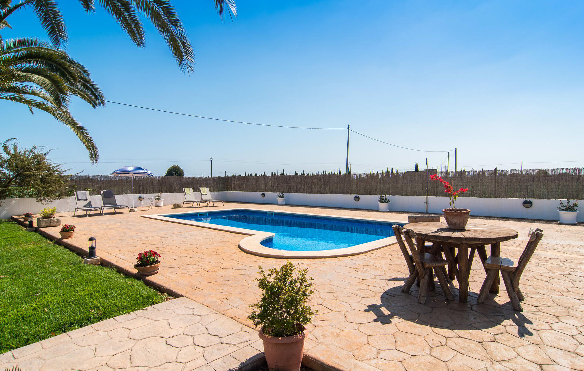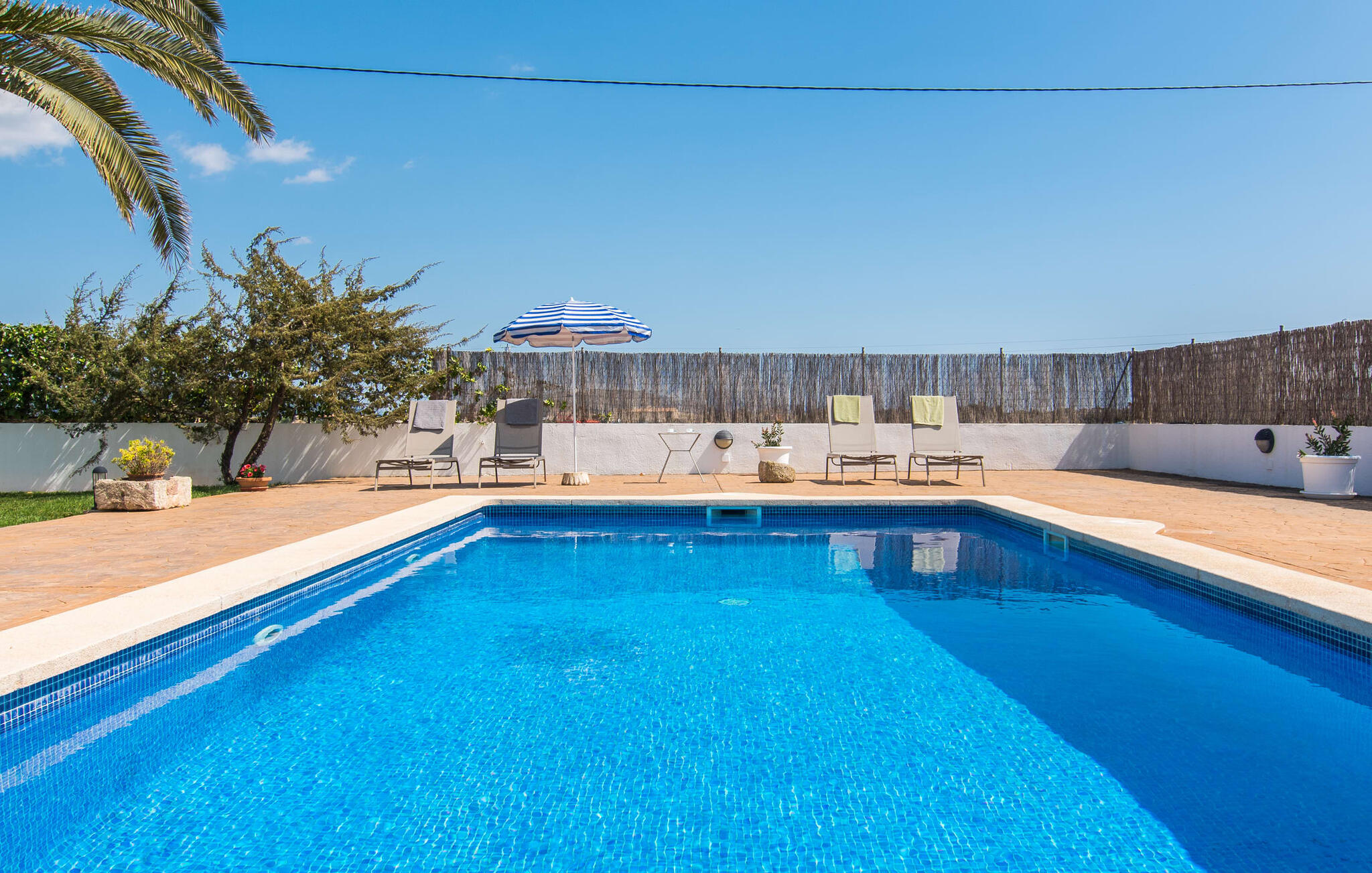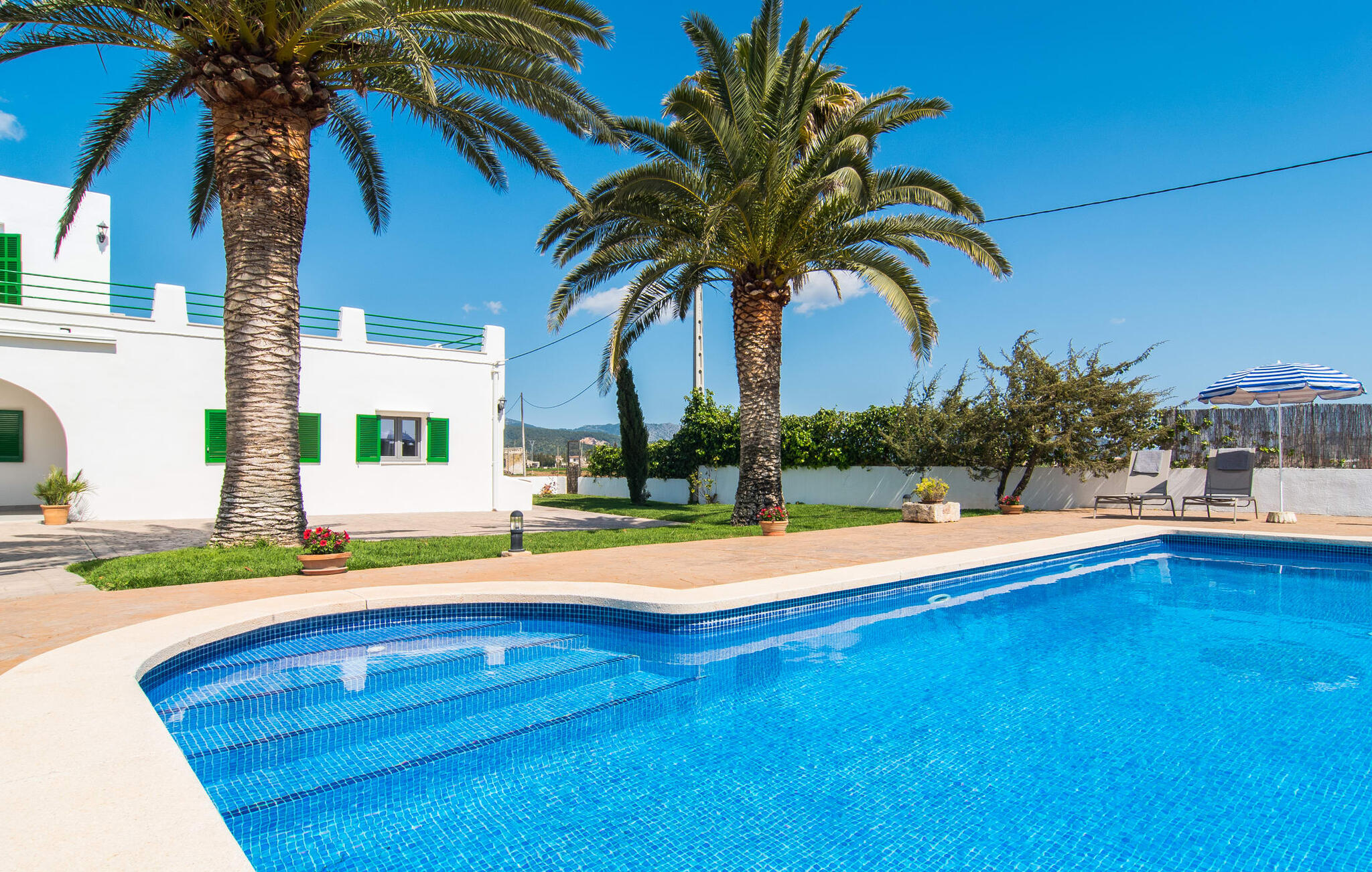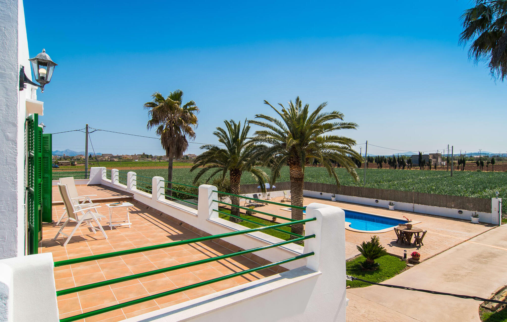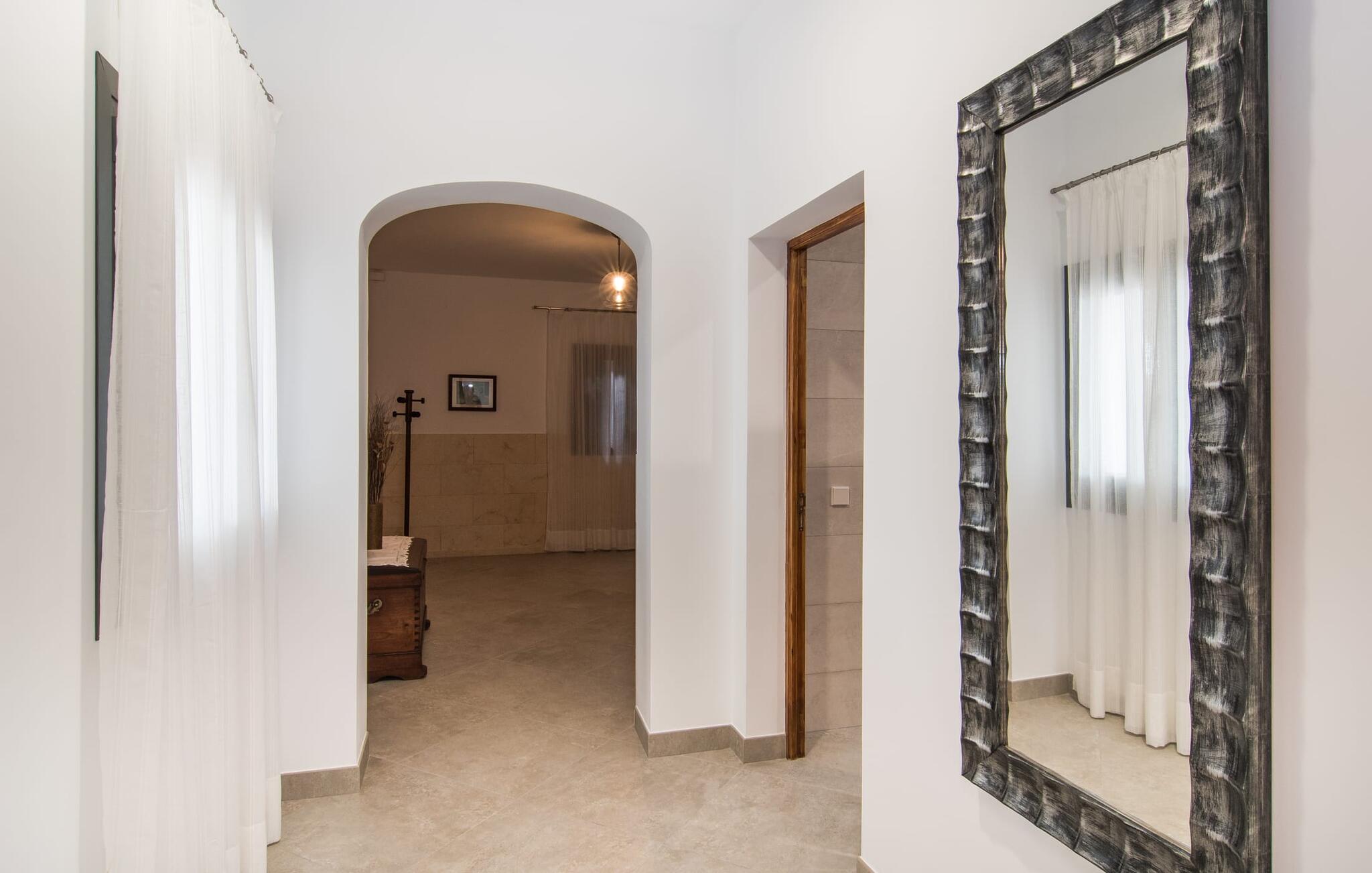 Dit comfortabele landhuis ligt op ongeveer 1,5 km van de agrarische stad Sa Pobla, vaak de groentemand van Mallorca genoemd vanwege een eeuwenoude traditie van intensieve teelt van het land, die vandaag de dag rijke oogsten oplevert. Bovendien betoveren de omliggende gebieden op loopafstand je met hun typische Mallorcaanse charme en nodigen je uit om ontspannende uren door te brengen. Dankzij de nabijheid van de hoofdweg die de steden Sa Pobla en Búger met elkaar verbindt, kun je overal snel en gemakkelijk komen. Afhankelijk van de windrichting kan er soms verkeerslawaai zijn. Een bezoek aan de heuvel van het pittoreske stadje Búger is echter een absolute must. Vanaf hier kun je niet alleen genieten van de indrukwekkende uitstraling, maar ook van een prachtig uitzicht op het vredige dorp, de baai van Alcúdia, de bergen van Llevant in het noordoosten en tot ver in de gemeente Artà, het Tramuntana-gebergte in het westen en het natuurreservaat S` Albuferia, dat natuurliefhebbers geweldige wandelpaden biedt. Voor de afwisseling kun je een heerlijke dag aan het strand doorbrengen, het dichtstbij is de baai van Alcúdia. De stralend witte Villa Can Goet ligt in een landelijke omgeving tussen het bergdorp Búger en de iets grotere stad Sa Pobla. Beide steden zijn ideaal voor de dagelijkse boodschappen en kunnen met de auto worden bereikt. Op zondag is er een wekelijkse markt op het levendige dorpsplein in Sa Pobla, waar de lokale bevolking samenkomt om te kletsen en te winkelen. De baai van Alcúdia heeft een indrukwekkend 16 km lang strand en is met de auto in 20 minuten te bereiken.