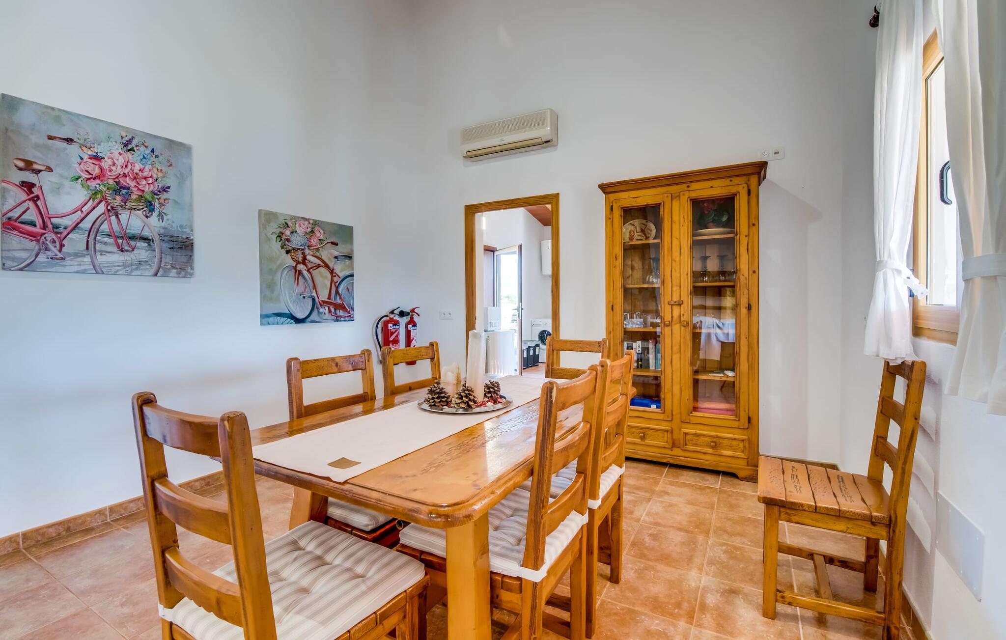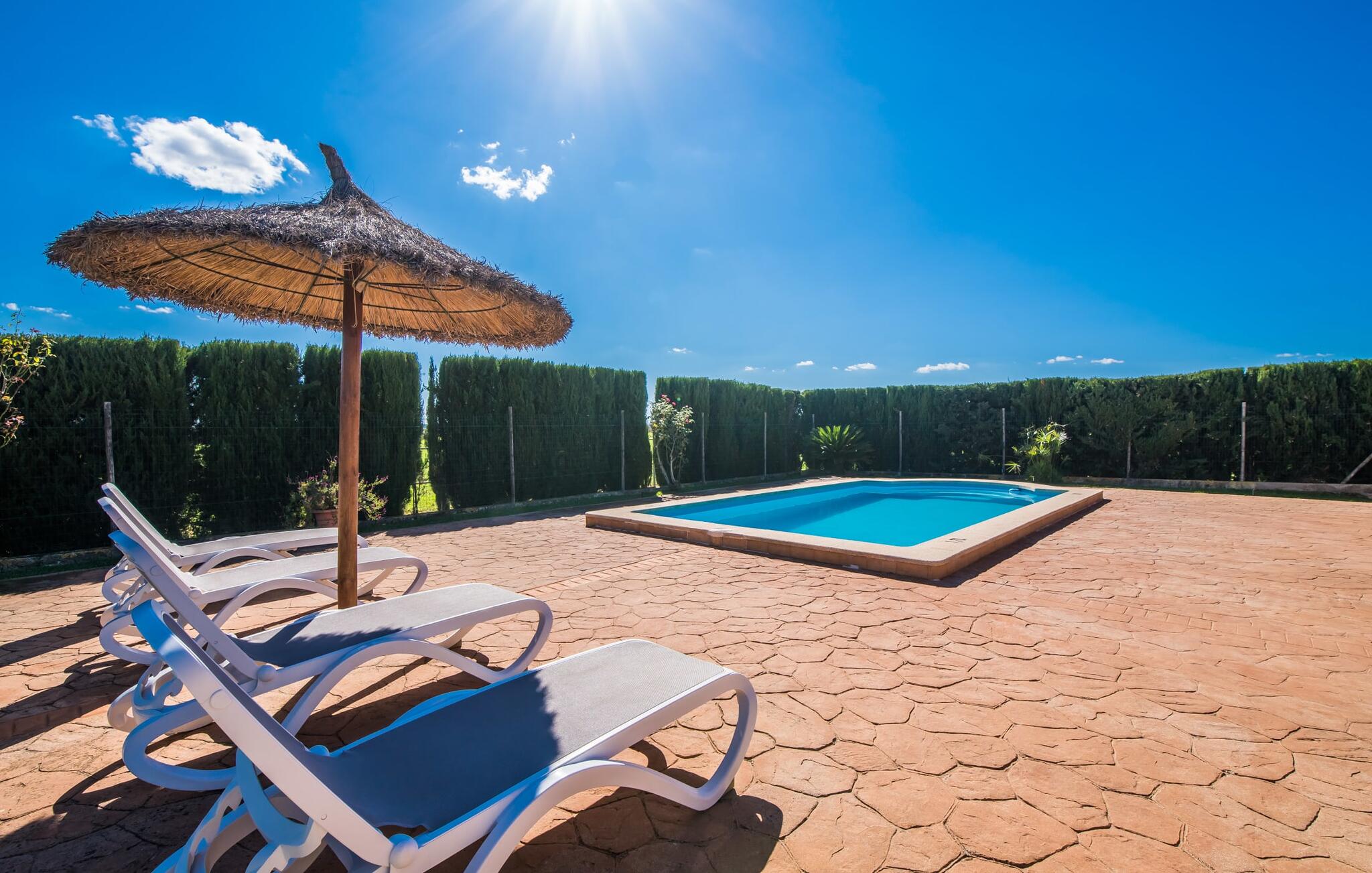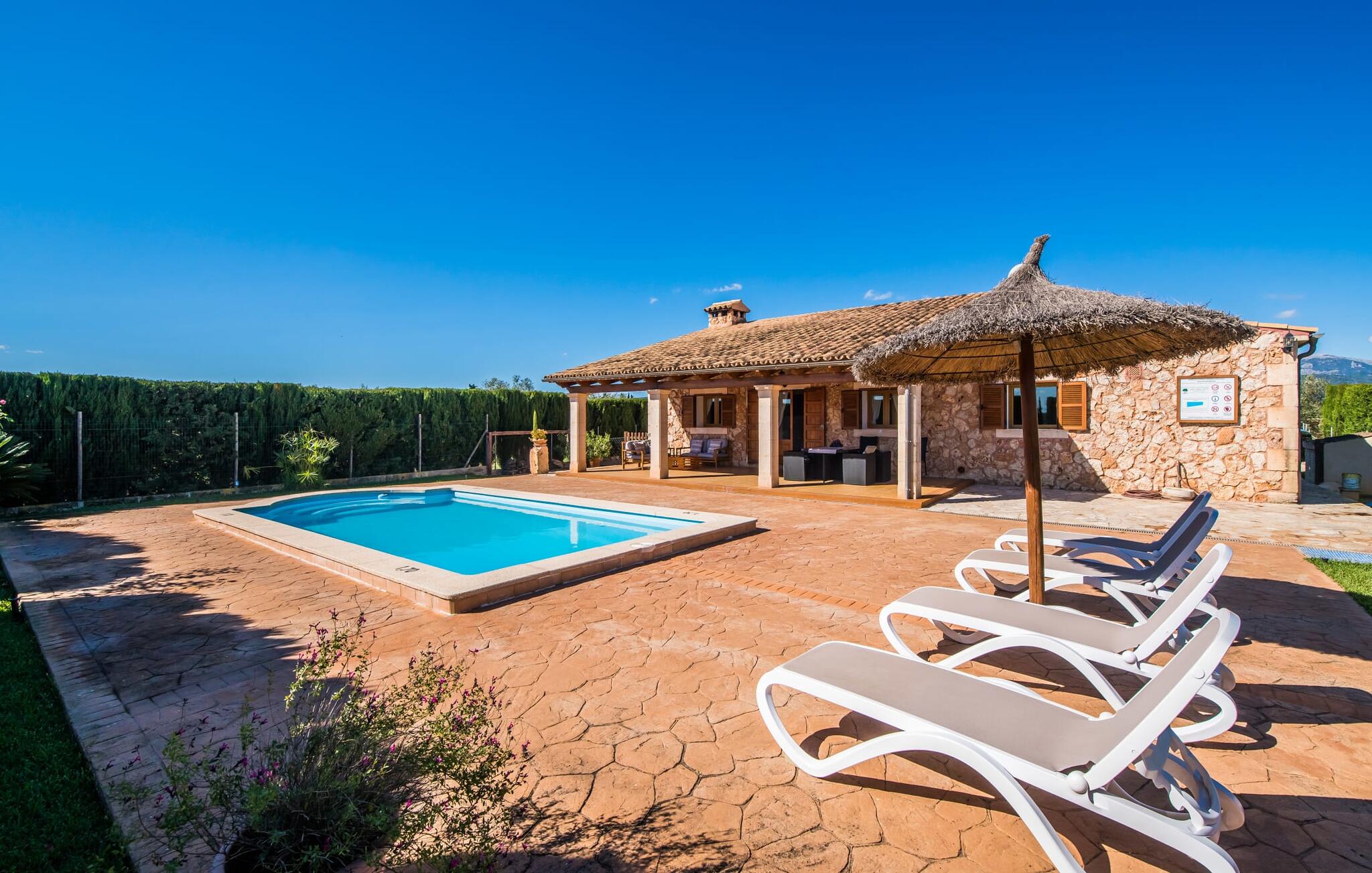 Dit uitnodigende vakantiehuis van natuursteen is een betoverende oase midden in de natuur en in de directe omgeving van het dorp Sencelles. Het ligt ook vlakbij een van onze andere huizen, Villa Can Grau. Een mooie, afgezonderde ruimte verwelkomt gasten en biedt onmiddellijk uitzicht op de tuin, die wordt gekenmerkt door gazons en terrassen en het hoogtepunt van de buitenruimte bevat: het zwembad. Het zwembad van 8 x 4 meter wordt omringd door een aantrekkelijk loungeterras en is gemakkelijk bereikbaar via een trap. Er is ook een praktische buitendouche. Je kunt ontspannen in het mediterrane licht op de vier voorziene ligstoelen en misschien gewoon genieten van het plezier van het niets doen. Het gekoelde meubilair op het smaakvol ingerichte terras nodigt je uit om te luieren, bij voorkeur met een heerlijk drankje. Deze sfeervolle plek is perfect om `s avonds een culinaire barbecue te vieren en te genieten van regionale lekkernijen die misschien wel diezelfde dag vers zijn ingekocht.