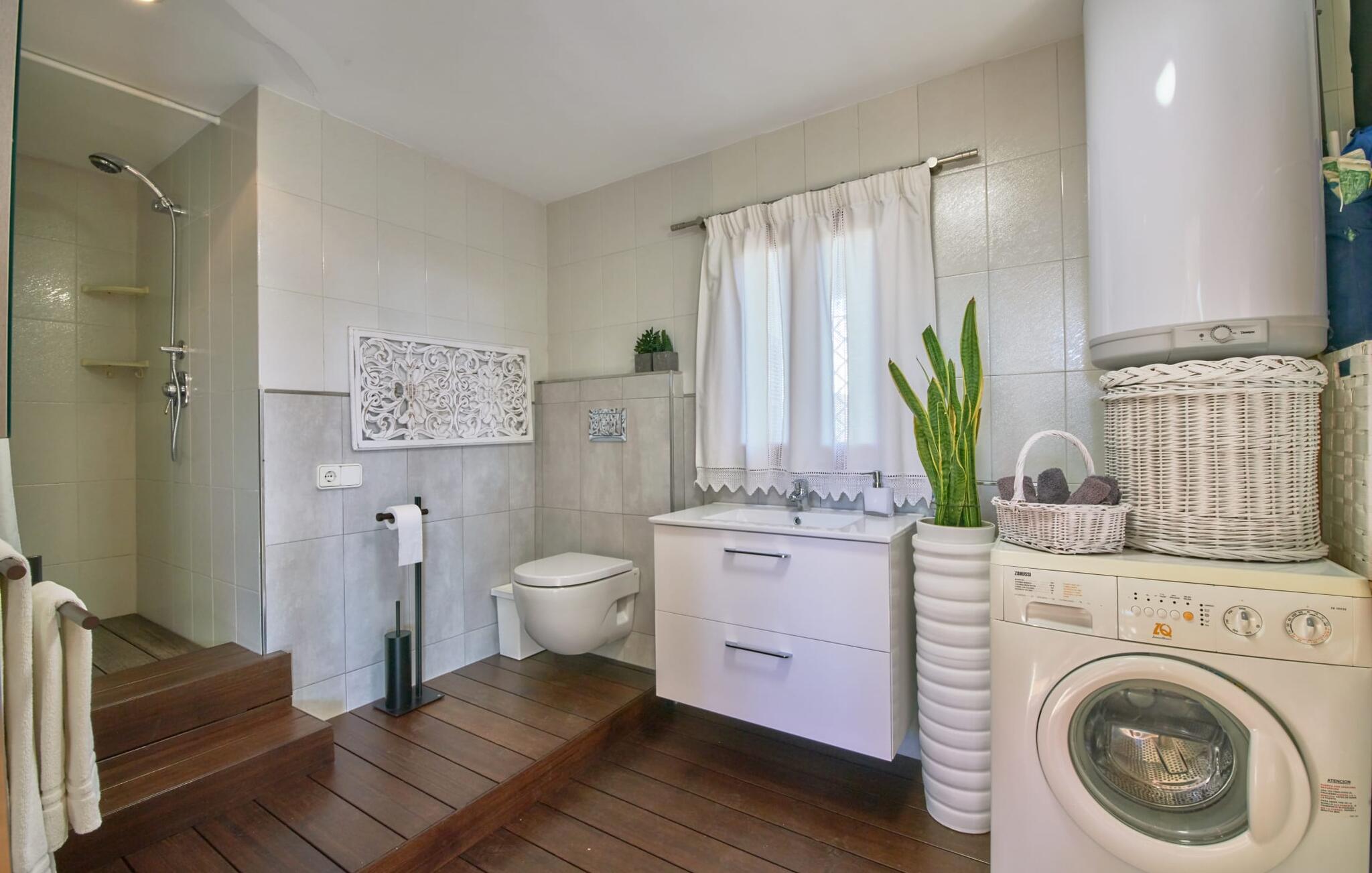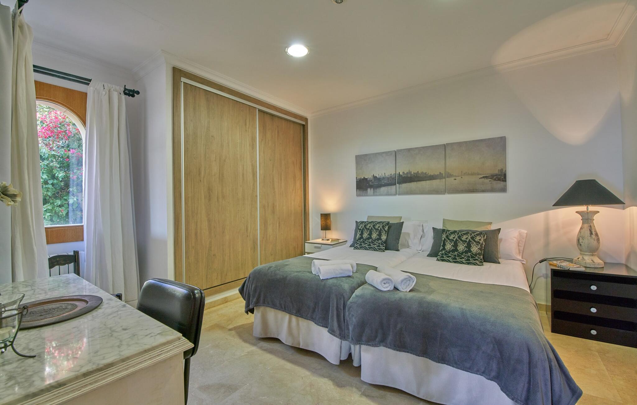 De villa beschikt over vier ruime slaapkamers, elk harmonieus ontworpen en uitgerust met extra meubilair. Een lichte trap leidt naar een balkon op de bovenverdieping met uitzicht op de rustige tuin, zodat je je in alle rust kunt terugtrekken in het hart van de stad. Geniet van de avonden barbecueën met verse producten van de lokale markten in deze idyllische omgeving.