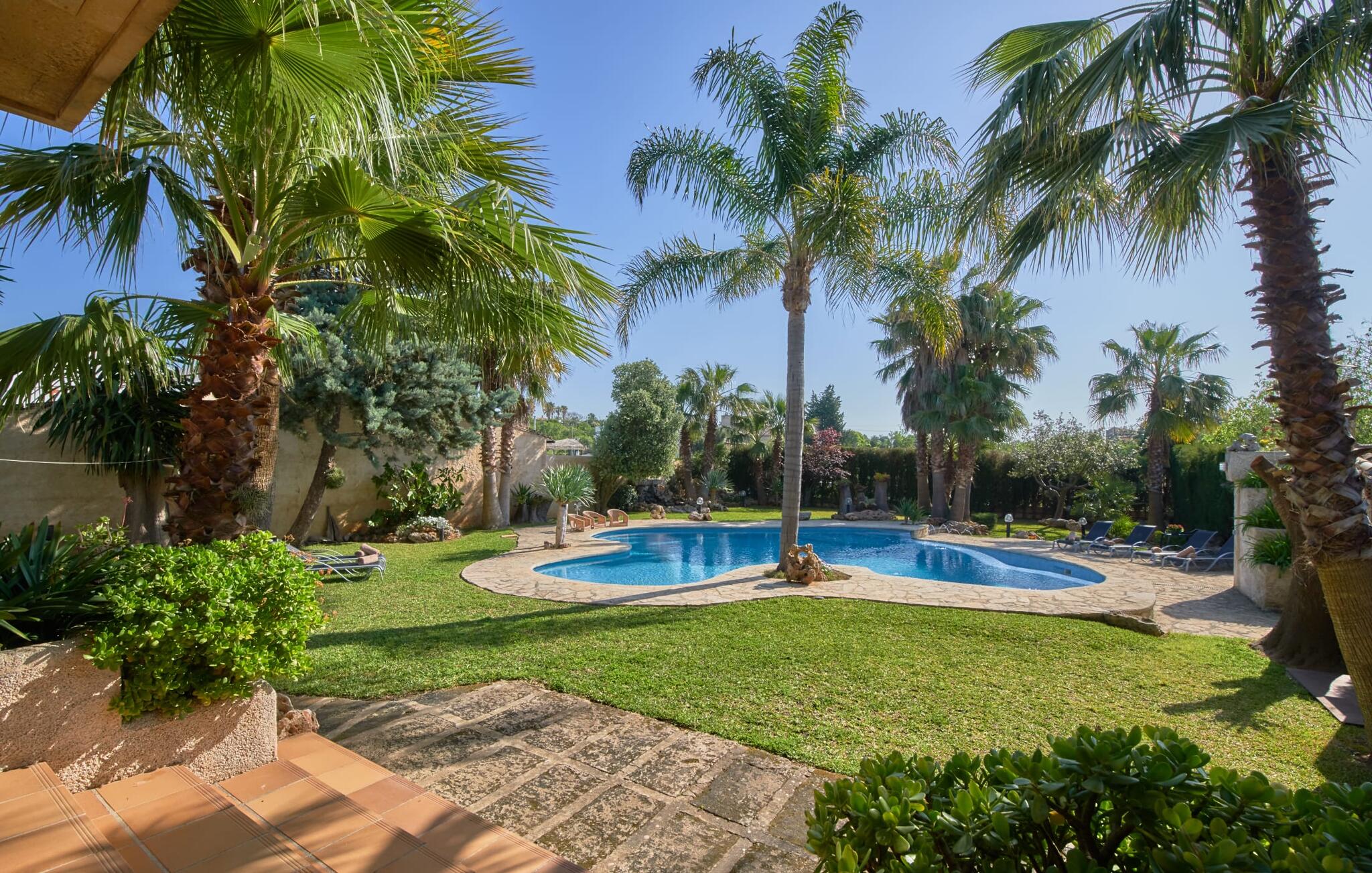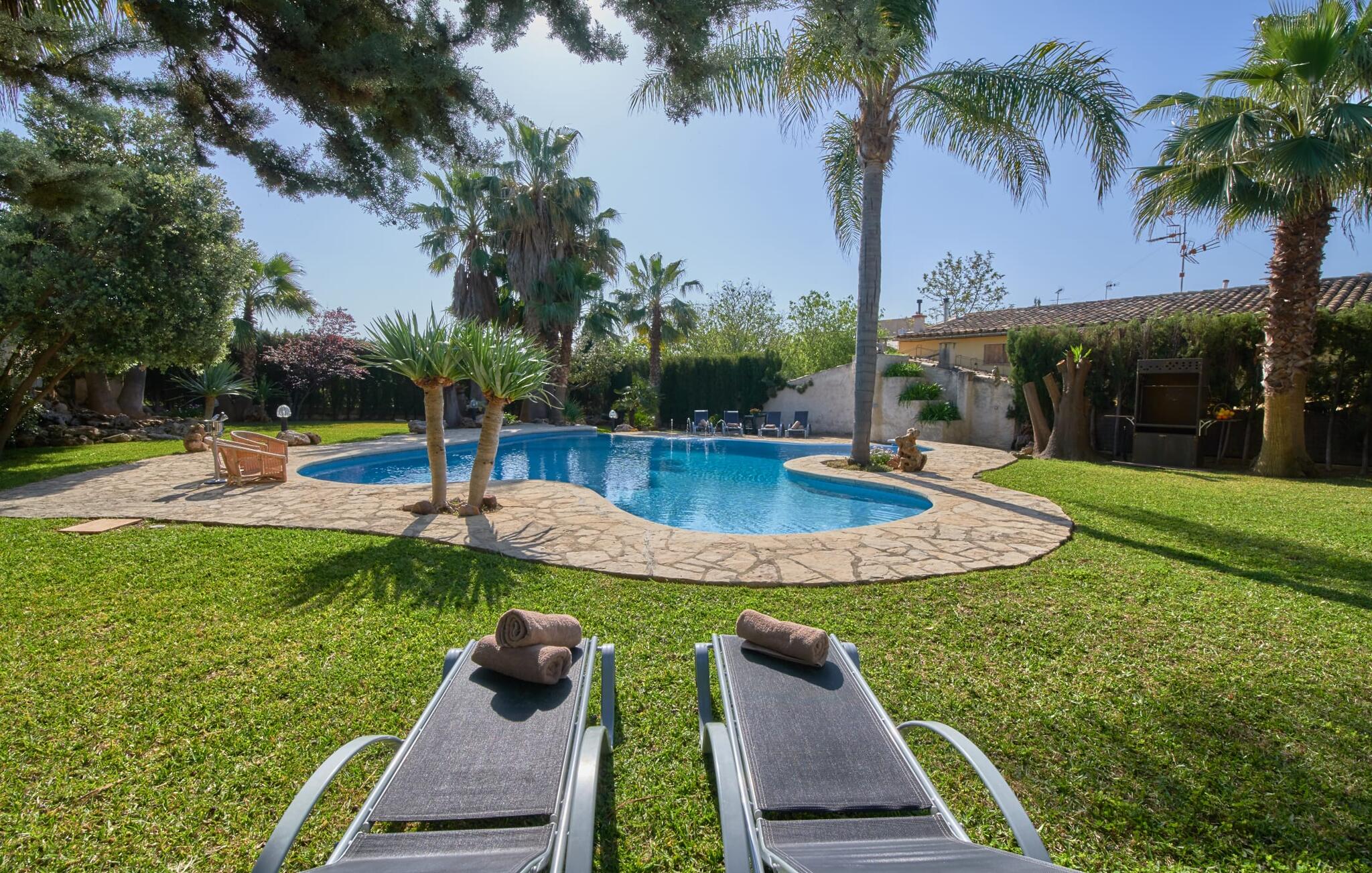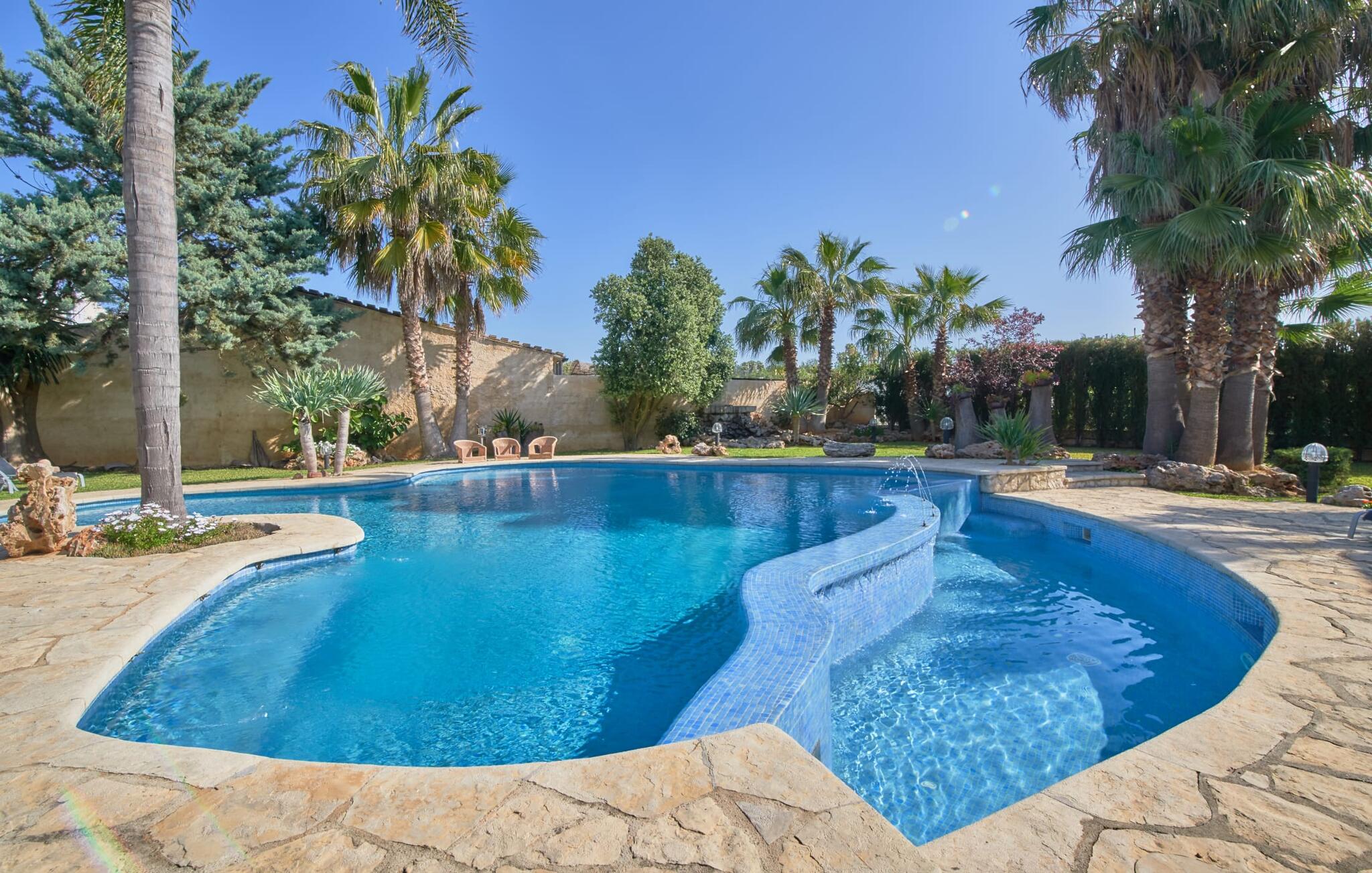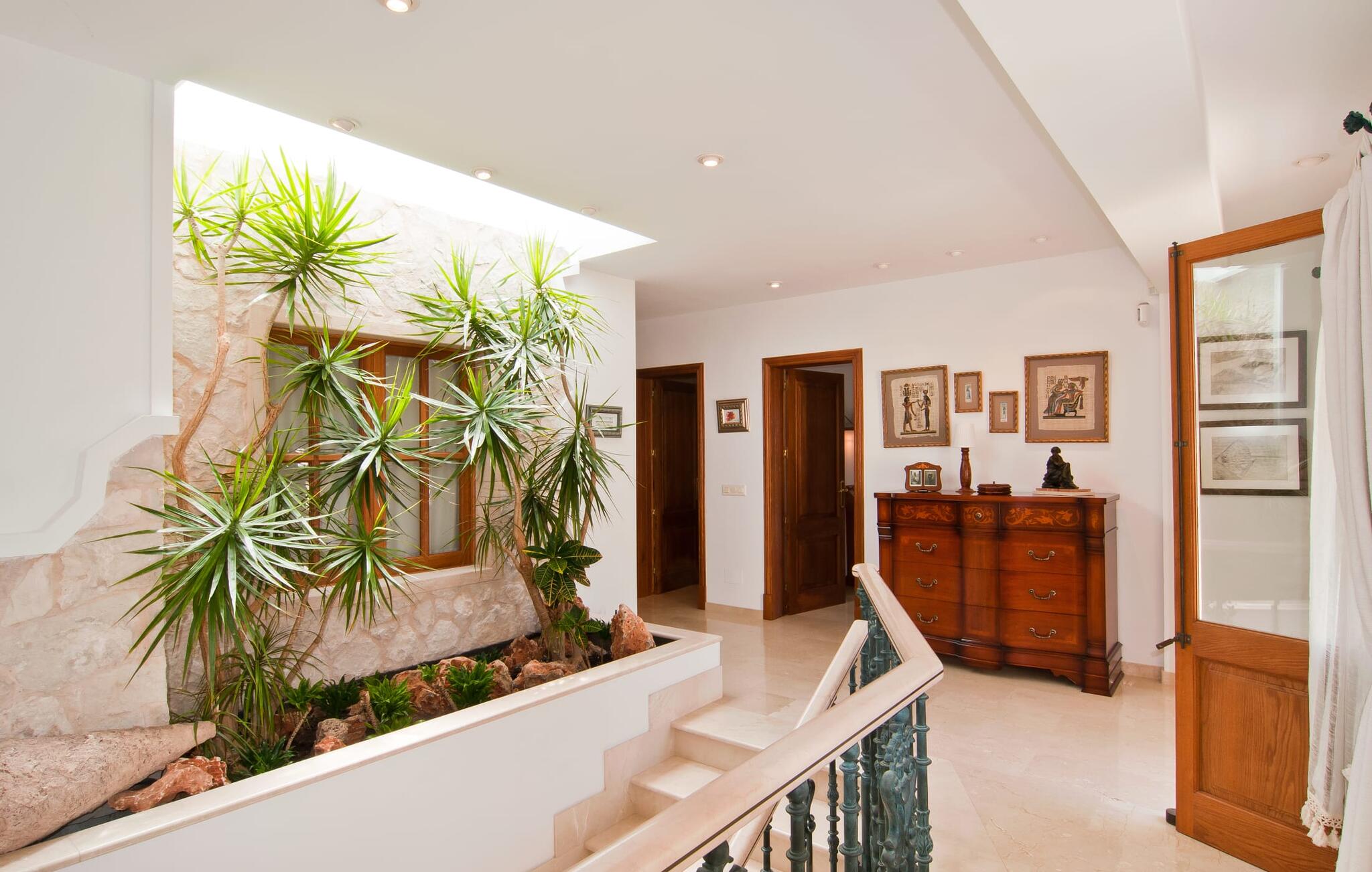 De prachtige finca "Can Gual", aan de rand van Inca, combineert naadloos stedelijke flair met natuur. Het prachtige zwembad met apart kindergedeelte en de weelderige tuinen creëren een privéoase.