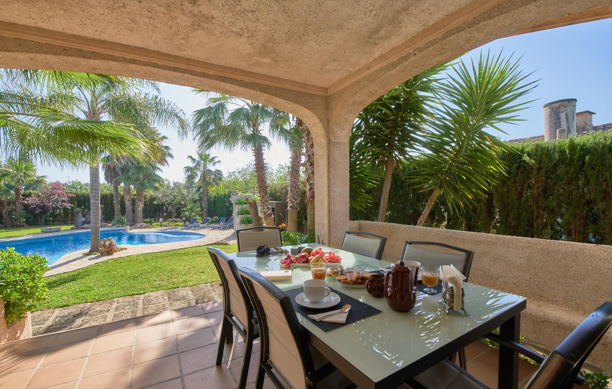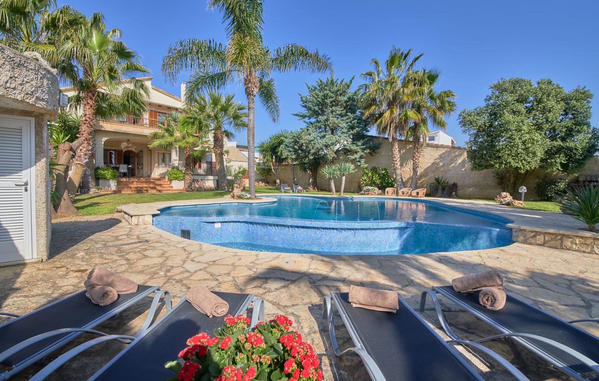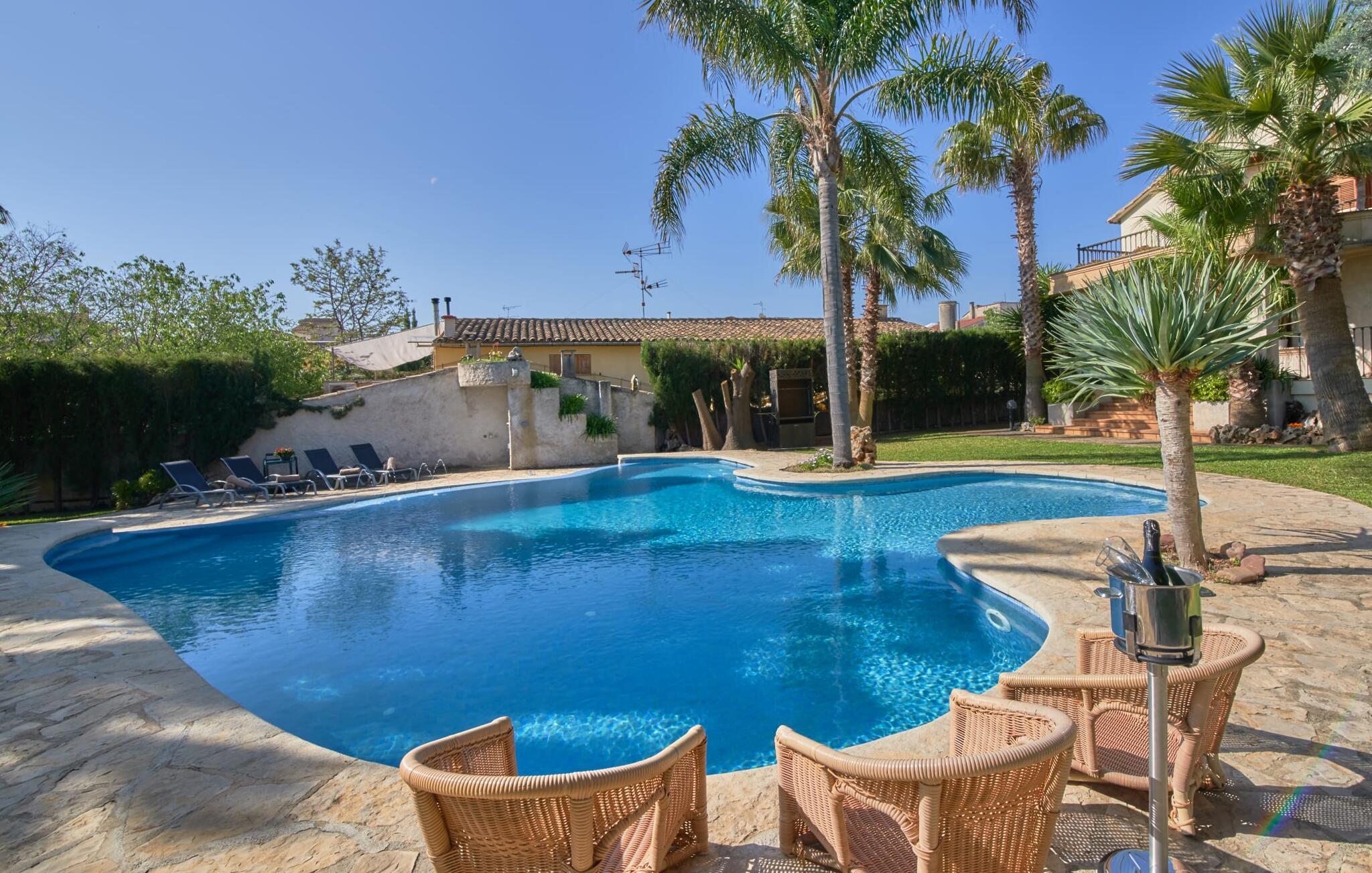 De prachtige finca "Can Gual", aan de rand van Inca, combineert naadloos stedelijke flair met natuur. Het prachtige zwembad met apart kindergedeelte en de weelderige tuinen creëren een privéoase.