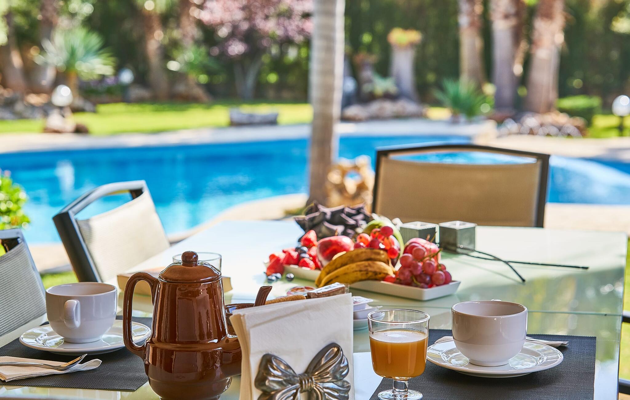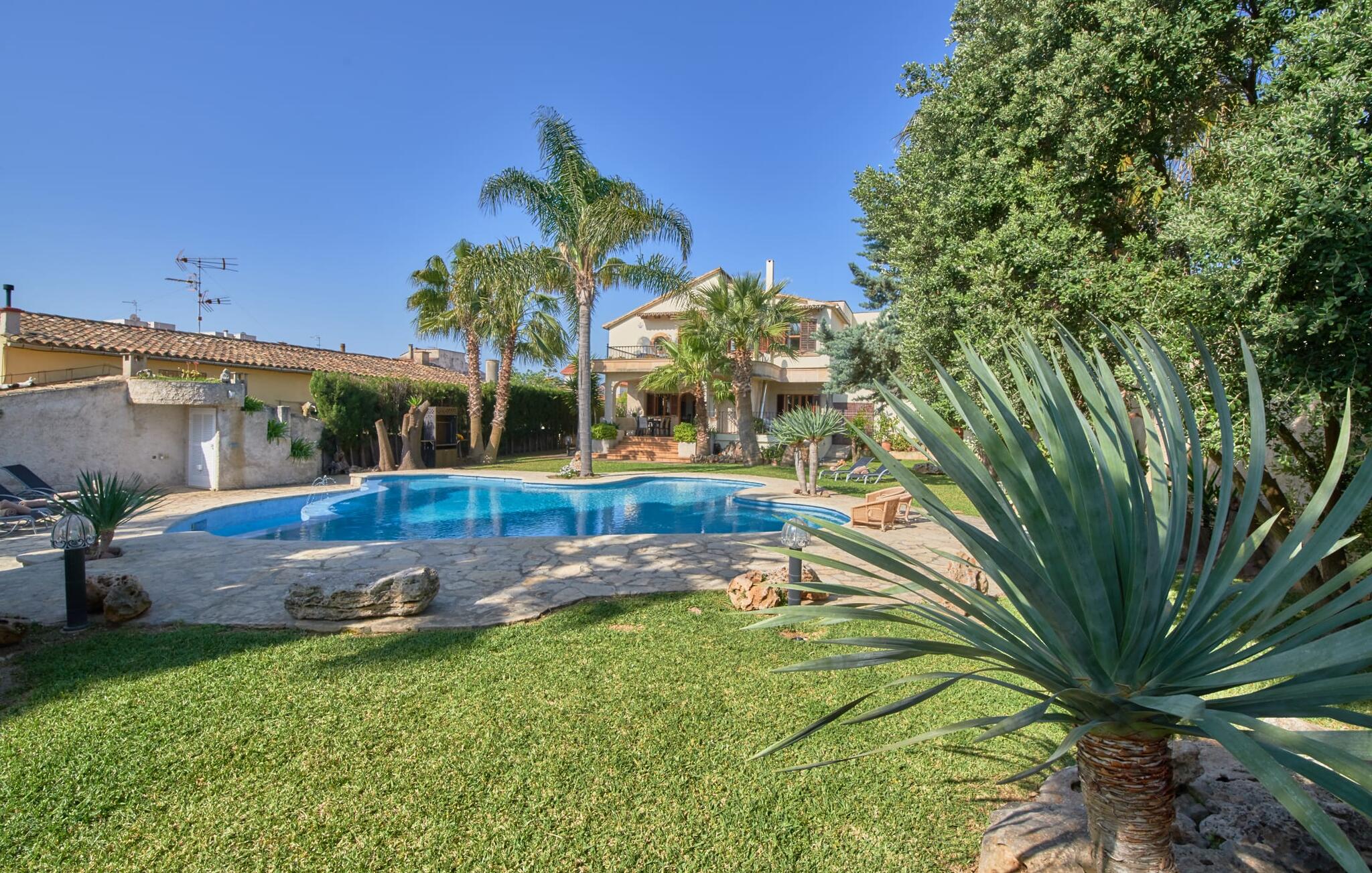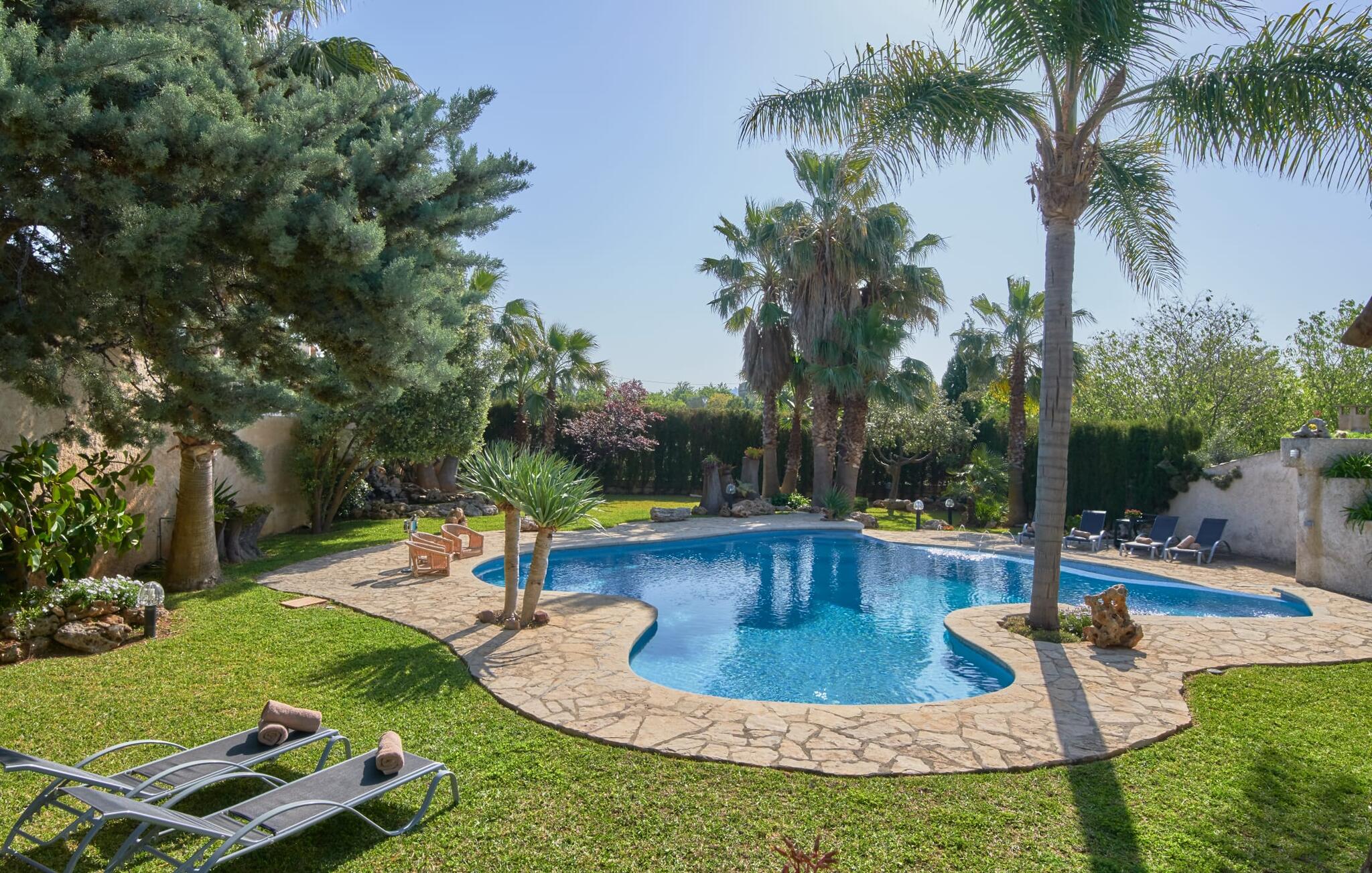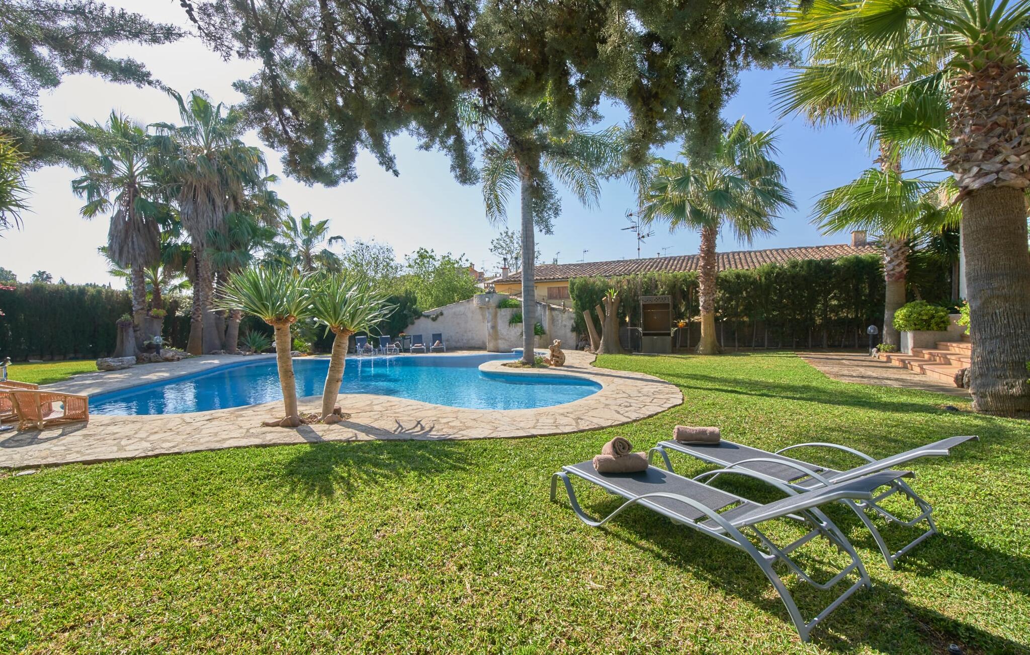 De prachtige finca "Can Gual", aan de rand van Inca, combineert naadloos stedelijke flair met natuur. Het prachtige zwembad met apart kindergedeelte en de weelderige tuinen creëren een privéoase.