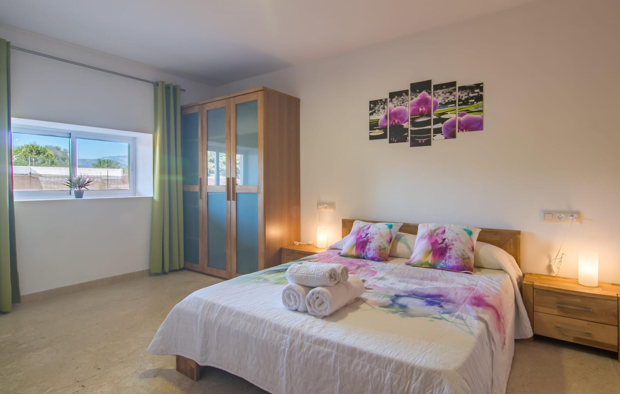 Villa Can Just is een comfortabel vakantiehuis op het platteland: Gelegen in het centrum van het eiland, op slechts ongeveer 4,6 km van Inca, maakt het goed onderhouden, gelijkvloerse huis niet alleen indruk met zijn geweldige interieur, maar ook met verschillende overdekte terrasruimtes en een groot zwembad. In de landelijke omgeving met de vele uitgestrekte olijfgaarden kun je heerlijk wandelen; voor een dagje strand kun je het beste de 28,9 km naar Alcúdia rijden.