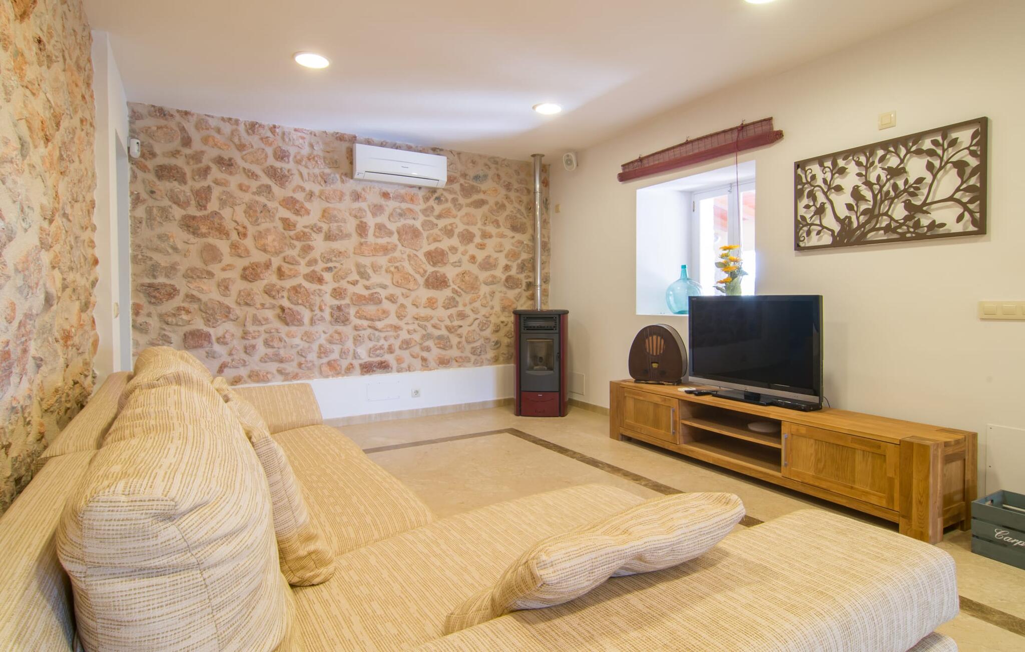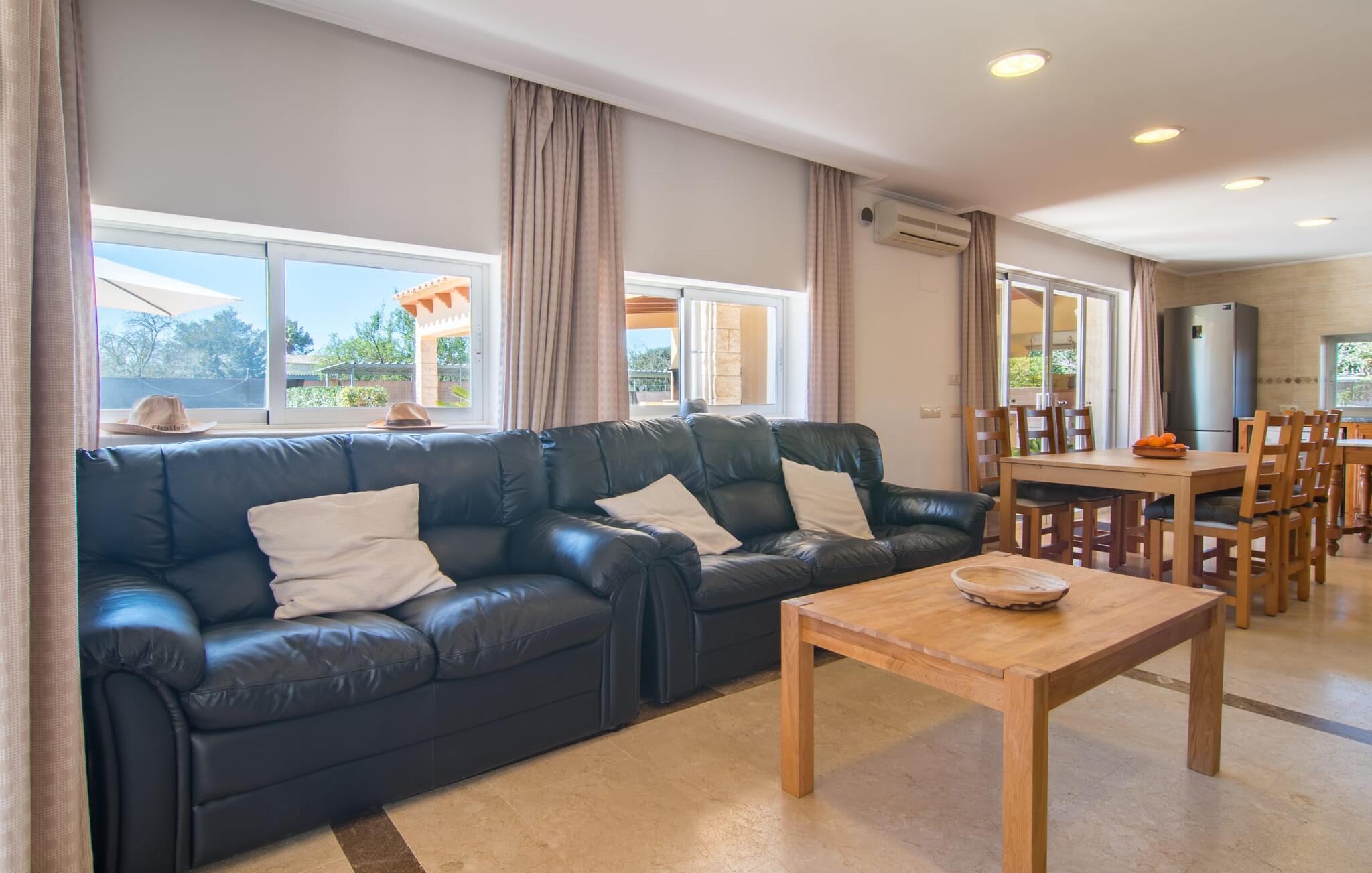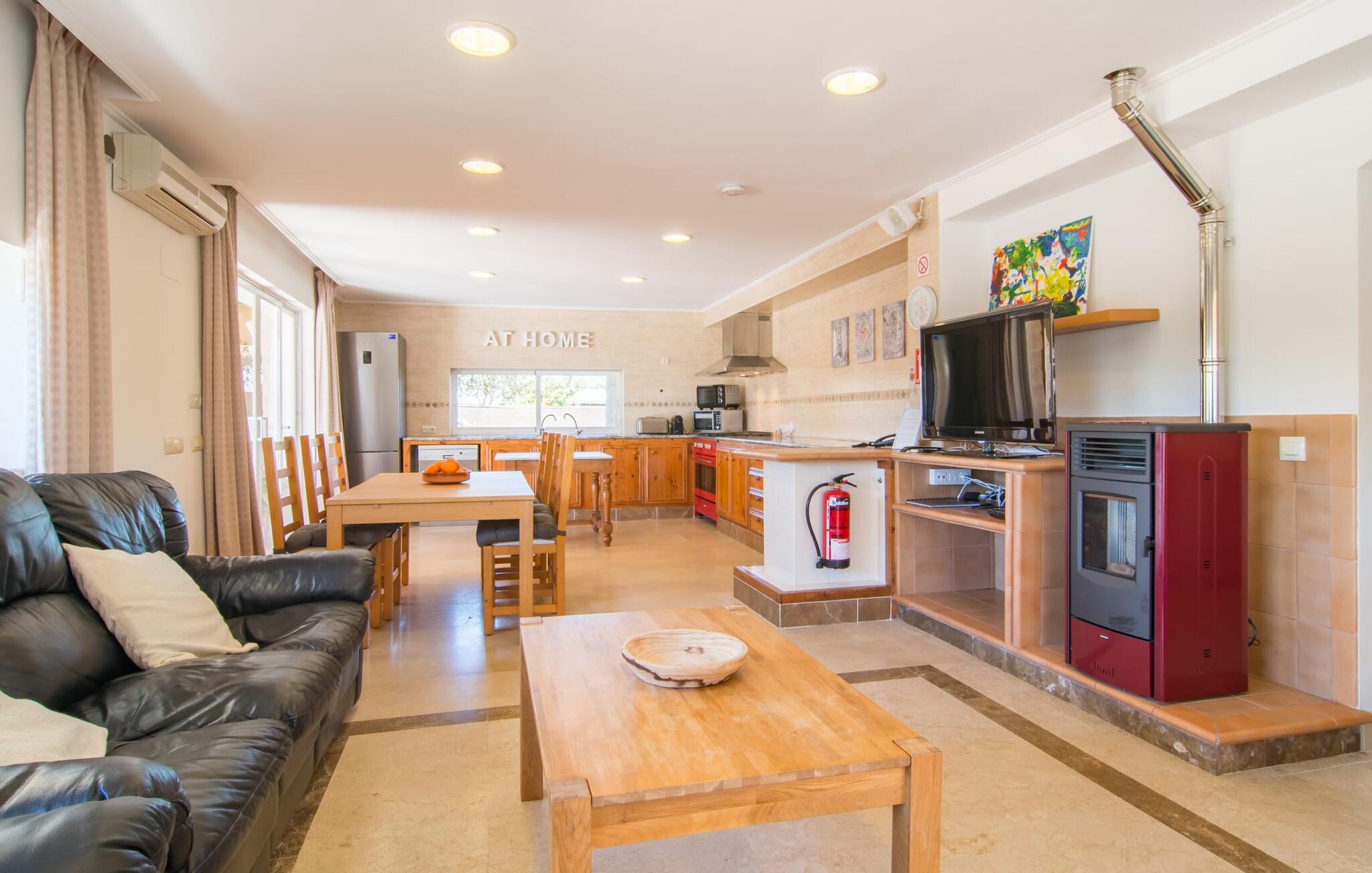 Een ontspannen mix van modern en rustiek meubilair zorgt voor een geweldige, ontspannen feel-good sfeer in Can Just - kom aan en voel je thuis! In je villa vind je alles op één niveau. Bijvoorbeeld de keuken met hoogwaardige apparatuur en warme, bruine houten fronten en een hoogtepunt in de vorm van een felrood fornuis. De keuken loopt over in het woon- en eetgedeelte, waar een grote houten tafel met bijpassende stoelen en een gezellige leren bank met fauteuils op je wachten. Draai de hoek om en loop door een imposante dubbele deur om nog een comfortabele bank te ontdekken voor een ontspannen avond voor de tv. Als je moe bent, kun je je terugtrekken in een van de drie tweepersoonsslaapkamers, allemaal ingericht met oog voor detail, met genoeg ruimte voor je vakantiegarderobe en voorzien van airconditioning zodat je zelfs bij zomerse temperaturen niet in het zweet uitbarst. Er is nog een slaapkamer beschikbaar voor degenen die `s nachts alleen willen ontspannen. Het wooncomfort van de villa wordt aangevuld door twee elegante en chique badkamers.