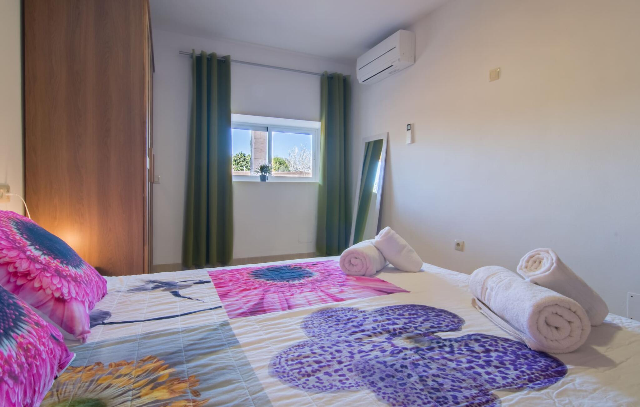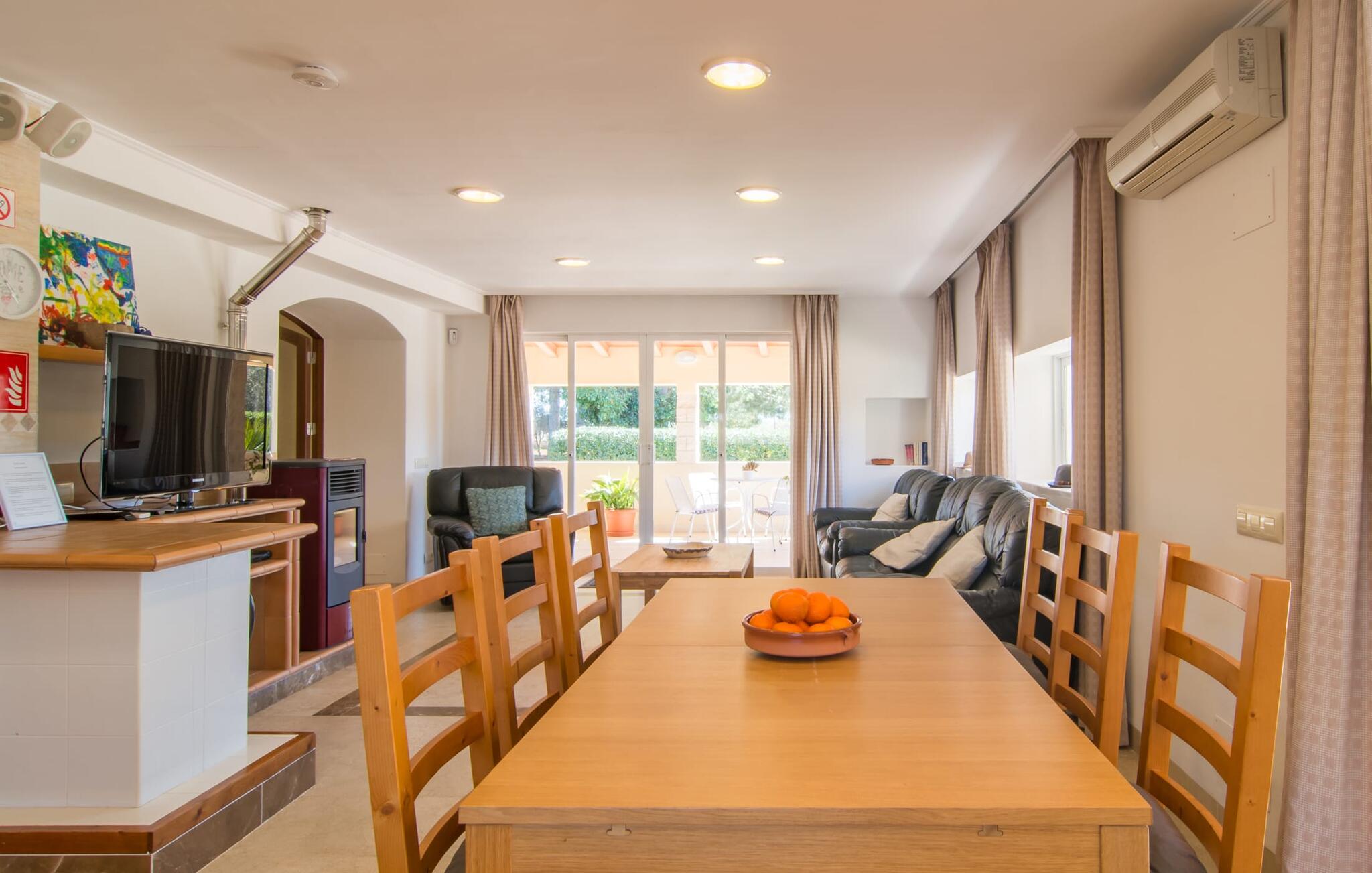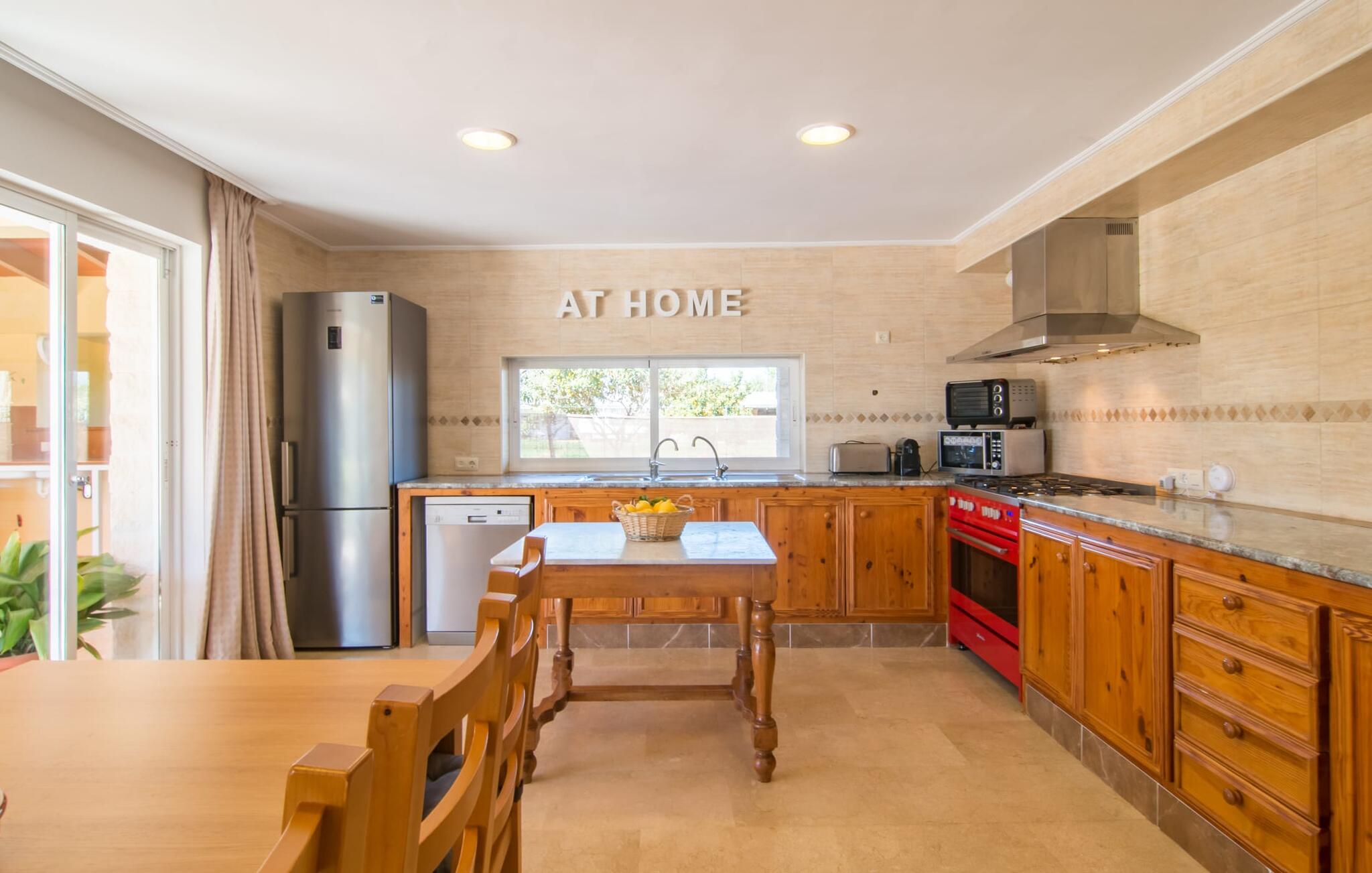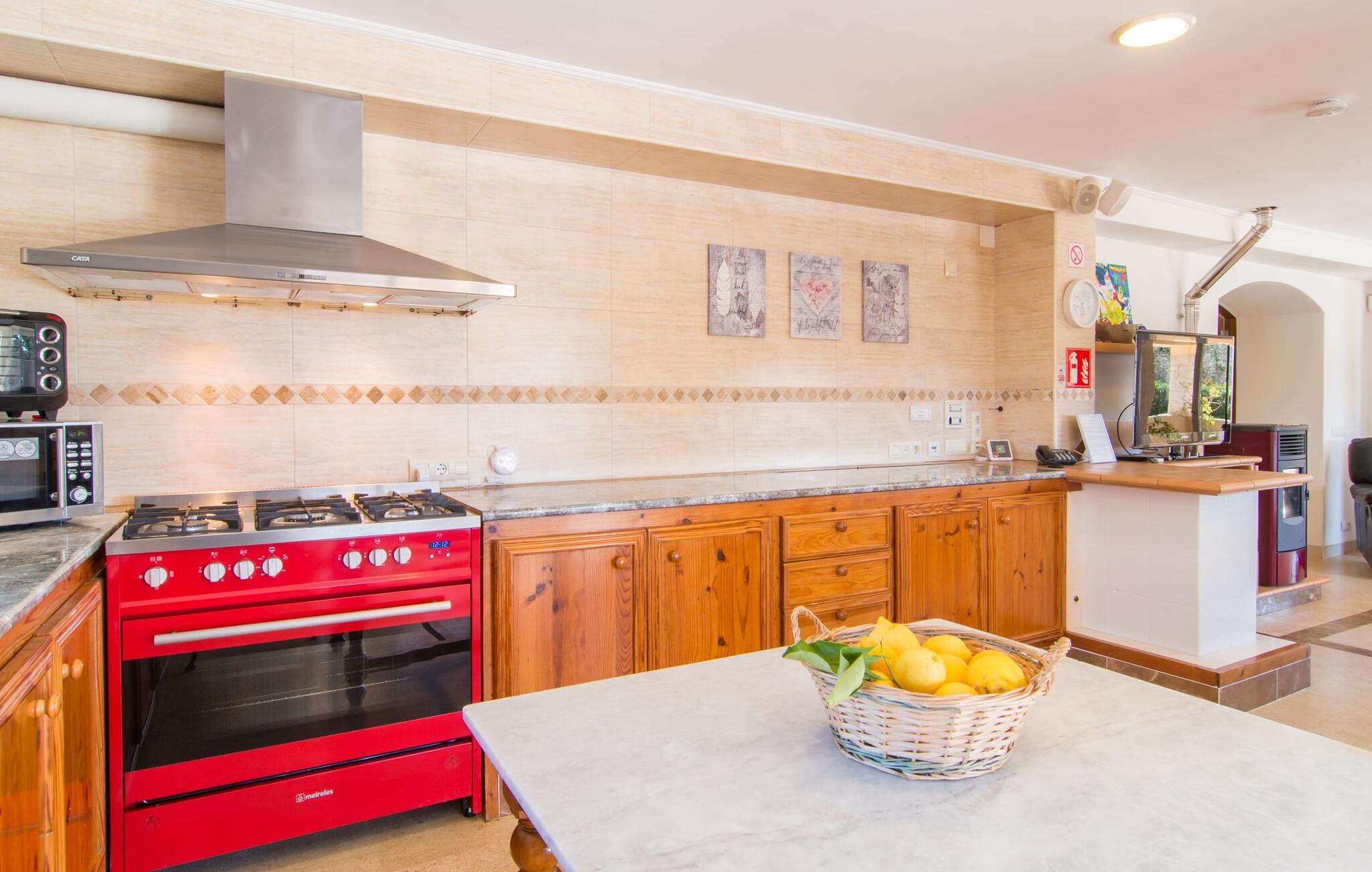 Een ontspannen mix van modern en rustiek meubilair zorgt voor een geweldige, ontspannen feel-good sfeer in Can Just - kom aan en voel je thuis! In je villa vind je alles op één niveau. Bijvoorbeeld de keuken met hoogwaardige apparatuur en warme, bruine houten fronten en een hoogtepunt in de vorm van een felrood fornuis. De keuken loopt over in het woon- en eetgedeelte, waar een grote houten tafel met bijpassende stoelen en een gezellige leren bank met fauteuils op je wachten. Draai de hoek om en loop door een imposante dubbele deur om nog een comfortabele bank te ontdekken voor een ontspannen avond voor de tv. Als je moe bent, kun je je terugtrekken in een van de drie tweepersoonsslaapkamers, allemaal ingericht met oog voor detail, met genoeg ruimte voor je vakantiegarderobe en voorzien van airconditioning zodat je zelfs bij zomerse temperaturen niet in het zweet uitbarst. Er is nog een slaapkamer beschikbaar voor degenen die `s nachts alleen willen ontspannen. Het wooncomfort van de villa wordt aangevuld door twee elegante en chique badkamers.