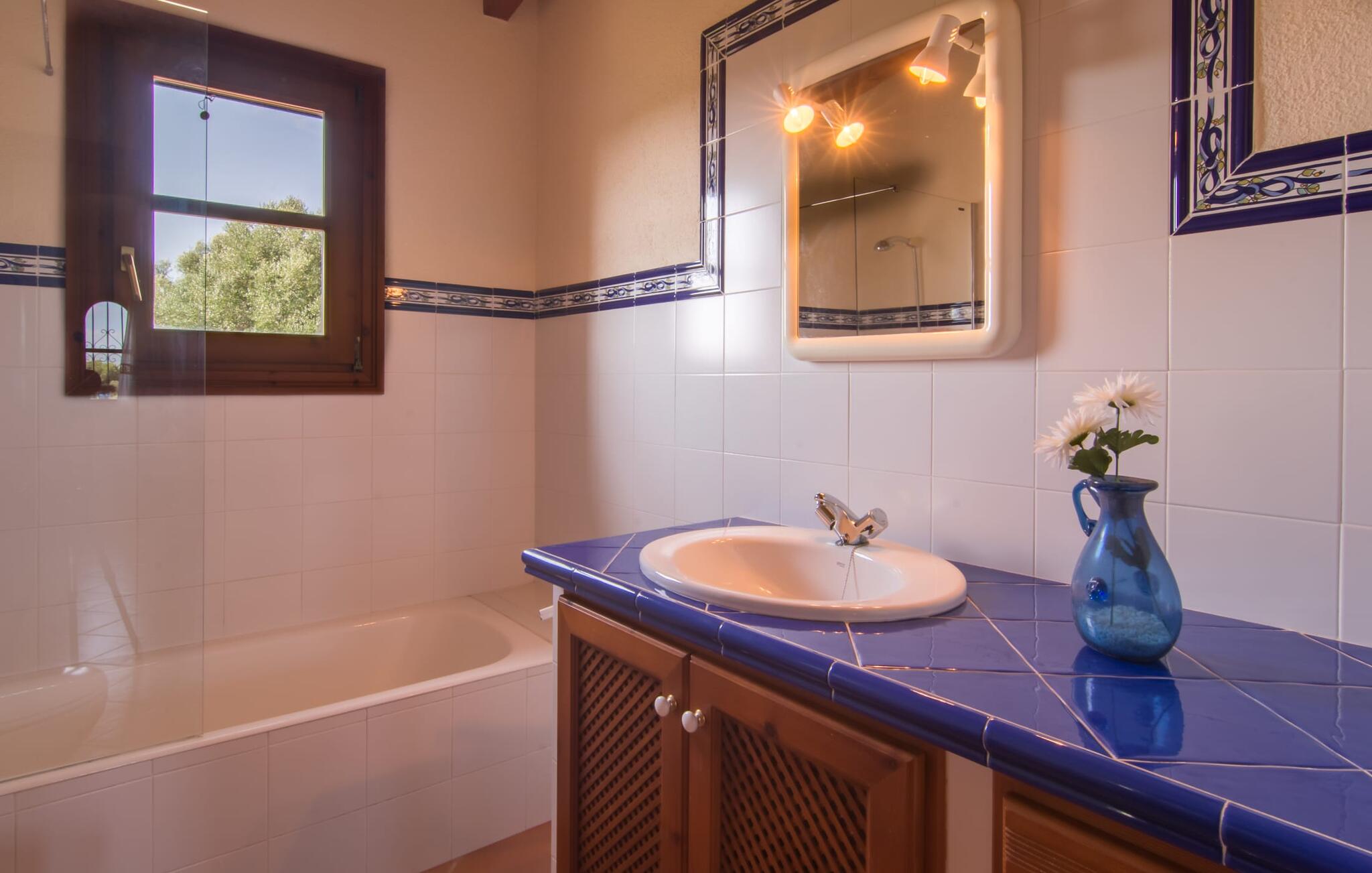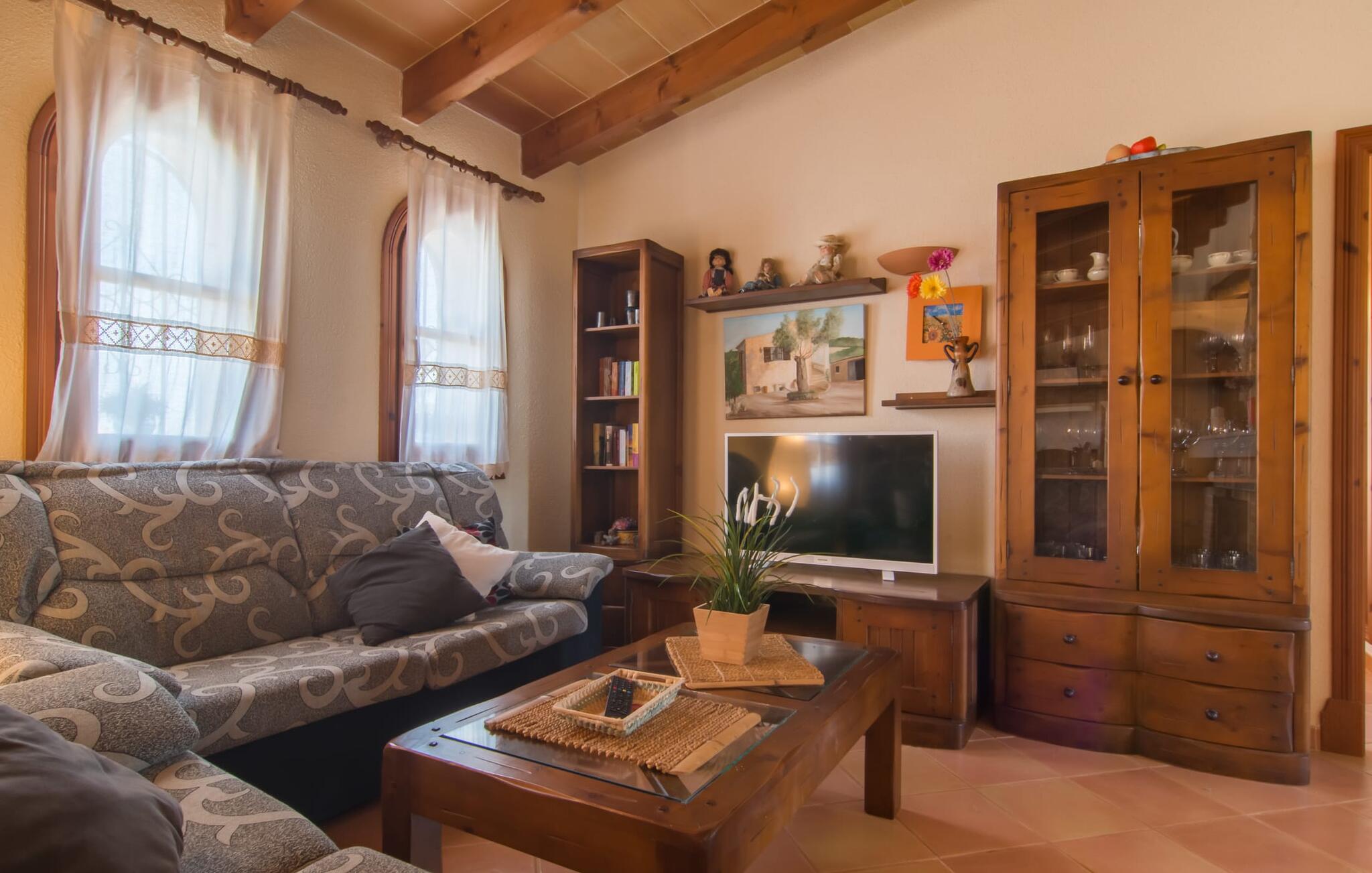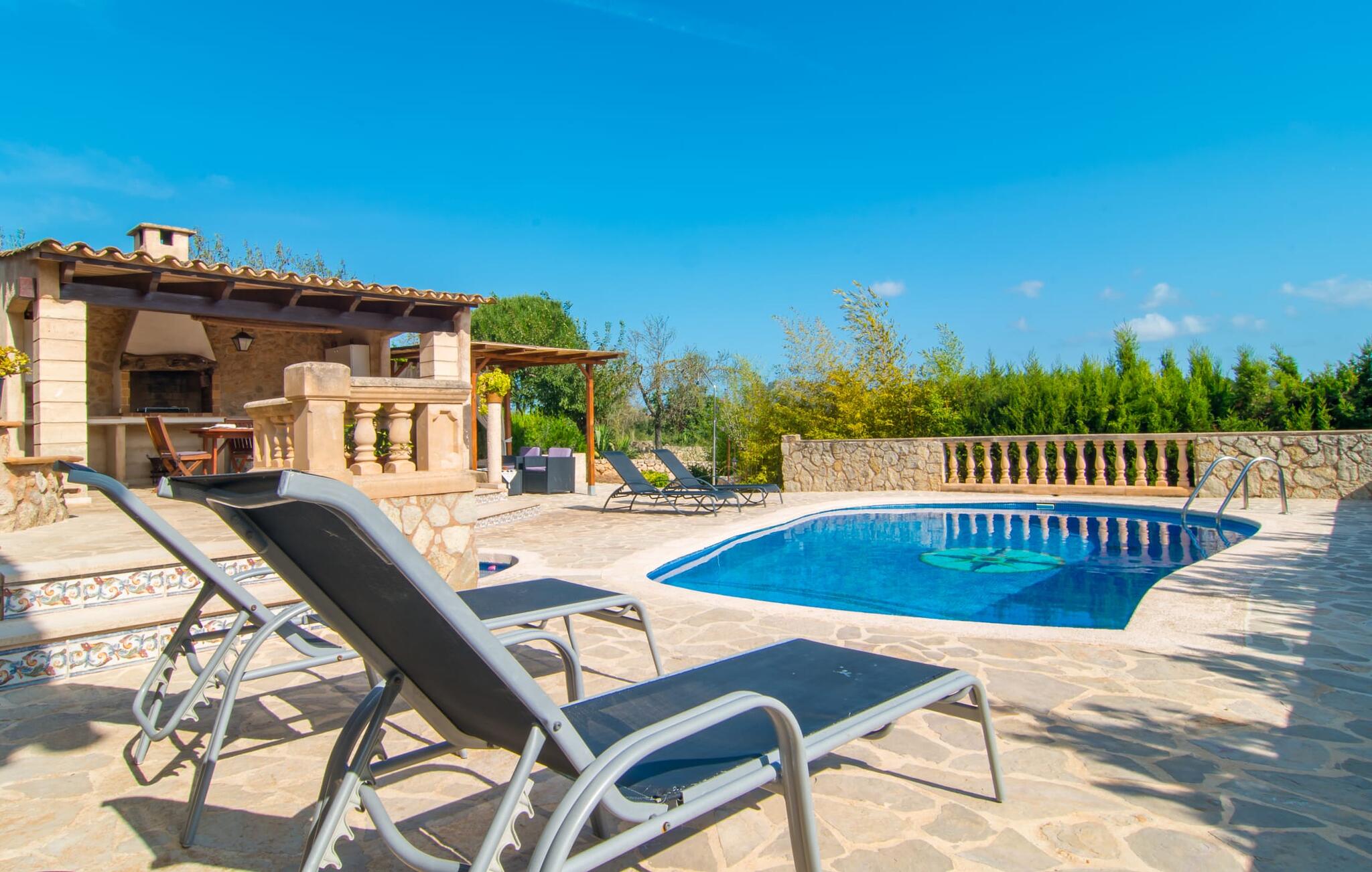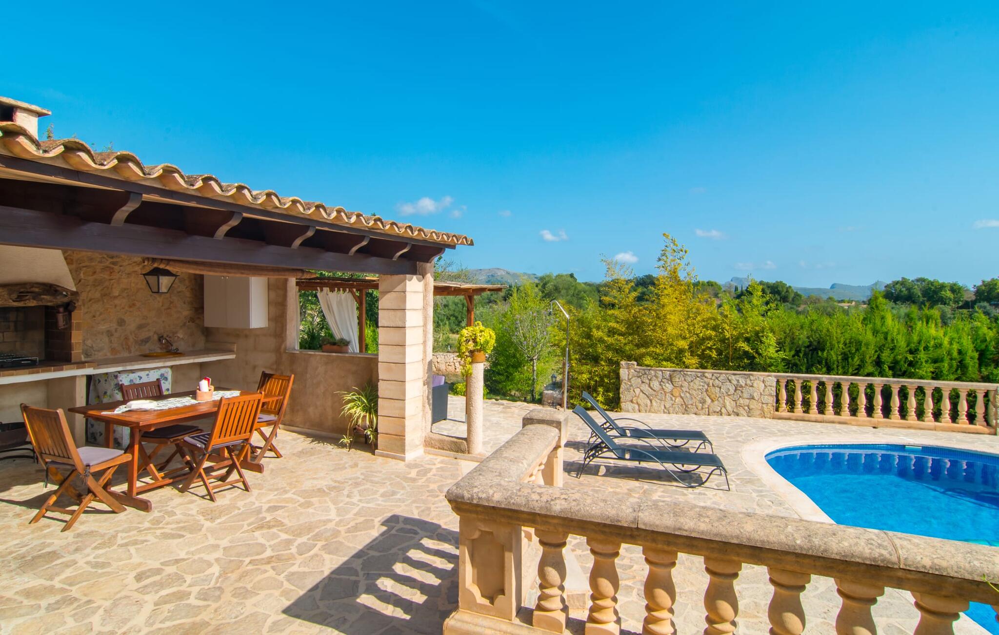 Villa Can Picafort ligt op een perceel van 14.000 m² met weelderige, beschutte terrassen. Hier kun je genieten van absolute privacy, omringd door heerlijk geurende olijf- en cipressenboomgaarden. Het zwembad ligt direct naast het huis: een glooiend zwembad van 7,5 x 4 m vormt het middelpunt van het domein, waar comfortabele ligstoelen beschikbaar zijn om uitgebreid te zonnebaden. Een buitendouche zorgt voor verkoeling tussendoor en spoelt het resterende zand van je huid en haar na een dag aan het strand. Degenen die de voorkeur geven aan een knus plekje in de schaduw kunnen ontspannen in de fauteuils of op de ruime bank in de buitenlounge. Vlak ernaast is een overdekte buitenkeuken met een grote eettafel en ingebouwde barbecue, die groot genoeg is om een heerlijk diner van vers gegrilde vis en andere lekkernijen op tafel te toveren. Het uitzicht op het prachtige landschap en de spectaculaire zonsondergangen over de uitlopers van de bergen zullen je echt gelukkig maken. Bij thuiskomst zul je beseffen dat dit een plek van verlangen is en zul je je volgende vakantie in Can Jutger gaan plannen.