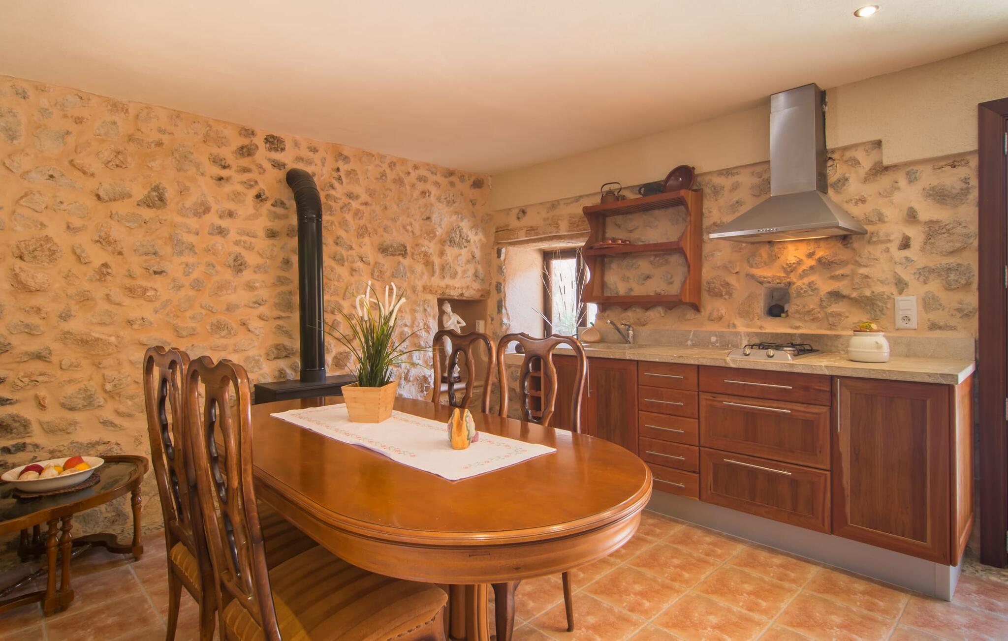 Het geweldige gevoel van welzijn zet zich binnen voort. De 160 m² woonruimte is verdeeld in twee aparte wooneenheden. De open woon- en eetruimte is ingericht in een rustieke mediterrane stijl. De open haard creëert een speciale sfeer en baadt de kamer in zacht licht op koelere avonden. Twee comfortabele banken nodigen je uit om te ontspannen; de grote eettafel of het bargedeelte bieden ontspannen plekken om van je ontbijt te genieten. De volledig uitgeruste keuken heeft een vaatwasser, zodat de vuile vaat gewoon voor zichzelf zorgt. De vier smaakvol ingerichte slaapkamers zijn voorzien van comfortabele tweepersoonsbedden of twee eenpersoonsbedden; er zijn ook twee badkamers. In het souterrain van deze prachtige natuurstenen villa bevindt zich een groot appartement met een eigen ingang, een kleine keuken en een eigen badkamer. De onafhankelijke, compacte woonkamer biedt ook een ruim tweepersoonsbed, een grote eettafel, twee gezellige fauteuils en een flatscreentelevisie. In de met daglicht overgoten badkamer met natuurstenen muren en moderne inloopdouche wordt je ochtendroutine een waar genoegen. Je kunt in het hele huis internetten via WLAN.