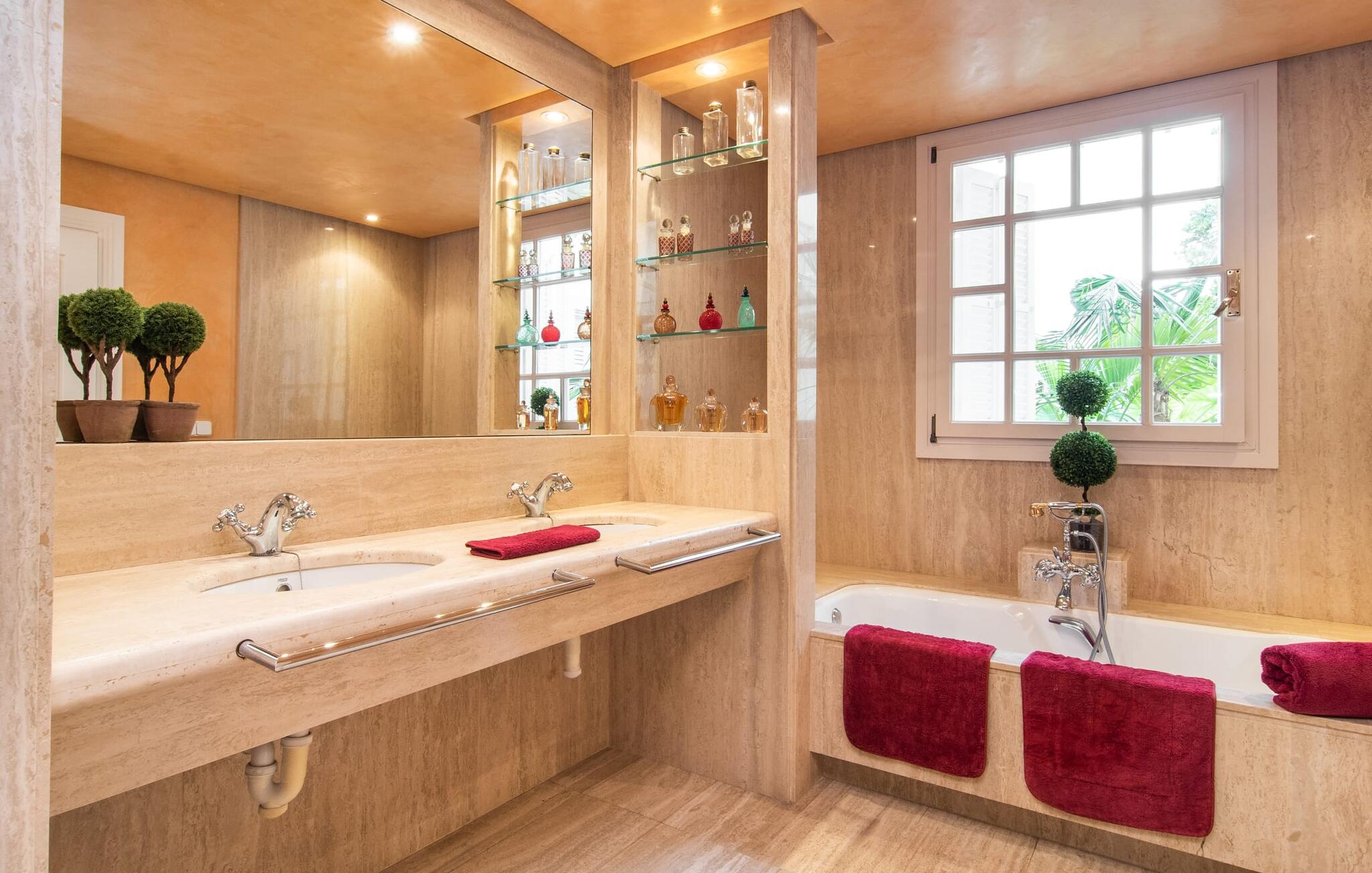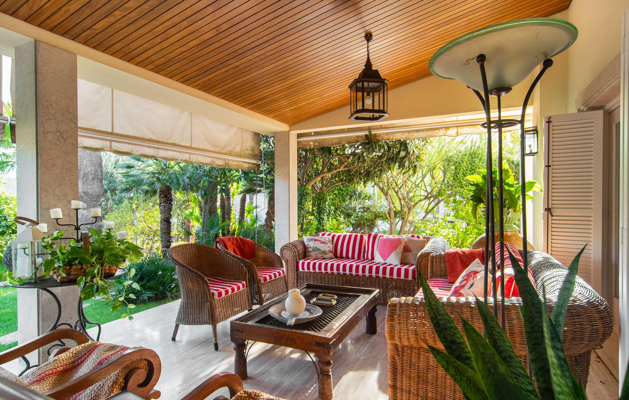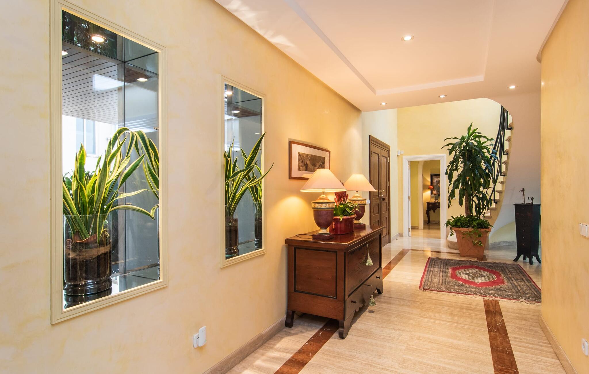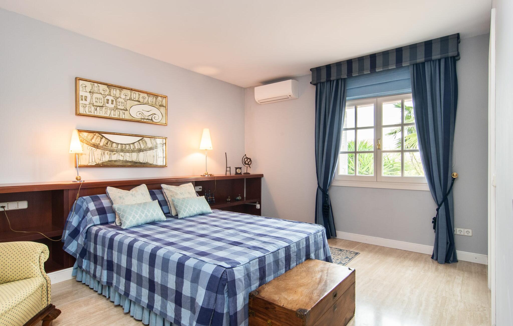 Binnen blijft de luxueuze inrichting indruk maken. De ruime kamers stralen klassieke elegantie uit en bieden comfortabel plaats aan maximaal acht gasten. Overvloedig natuurlijk licht versterkt de leefruimtes, waarvan sommige zijn versierd met levendige kleuren en handige accessoires. Op de begane grond is er een woon- en eetruimte en twee slaapkamers, elk met een eigen badkamer en een kleedkamer. Op de bovenverdieping zijn er nog twee slaapkamers, ook met een eigen badkamer en een met een kleedkamer. Alle slaapkamers zijn voorzien van airconditioning, wat zorgt voor rustgevende nachten, zelfs in de warmere maanden.