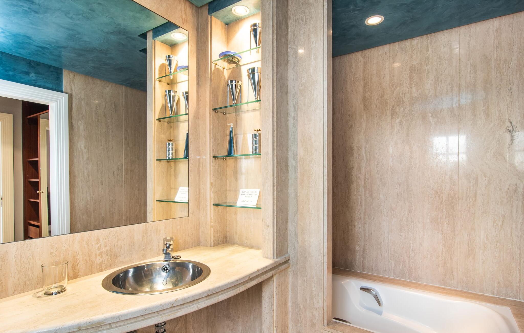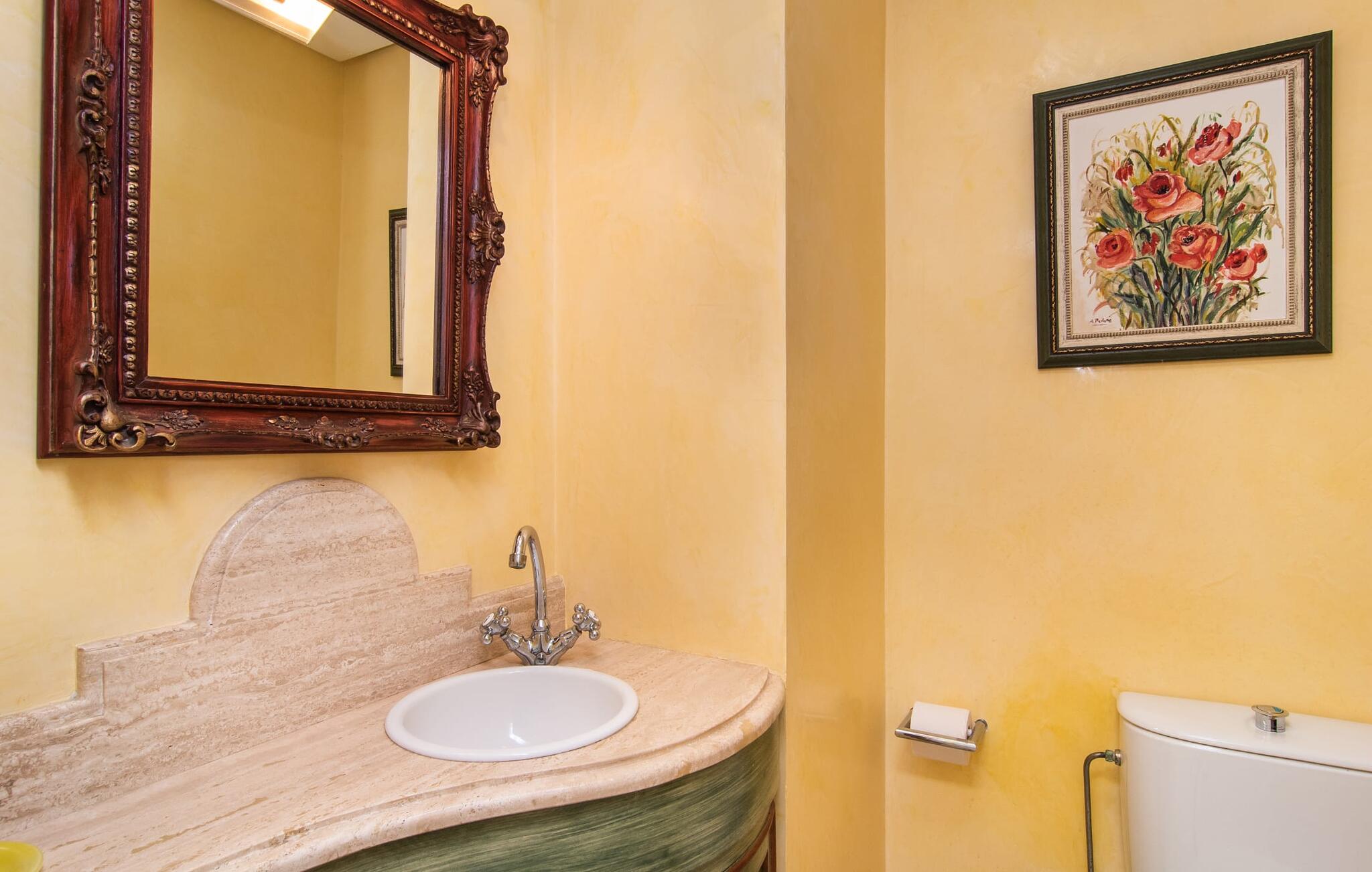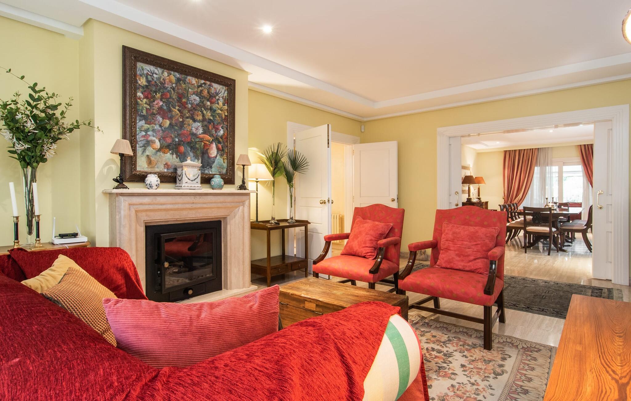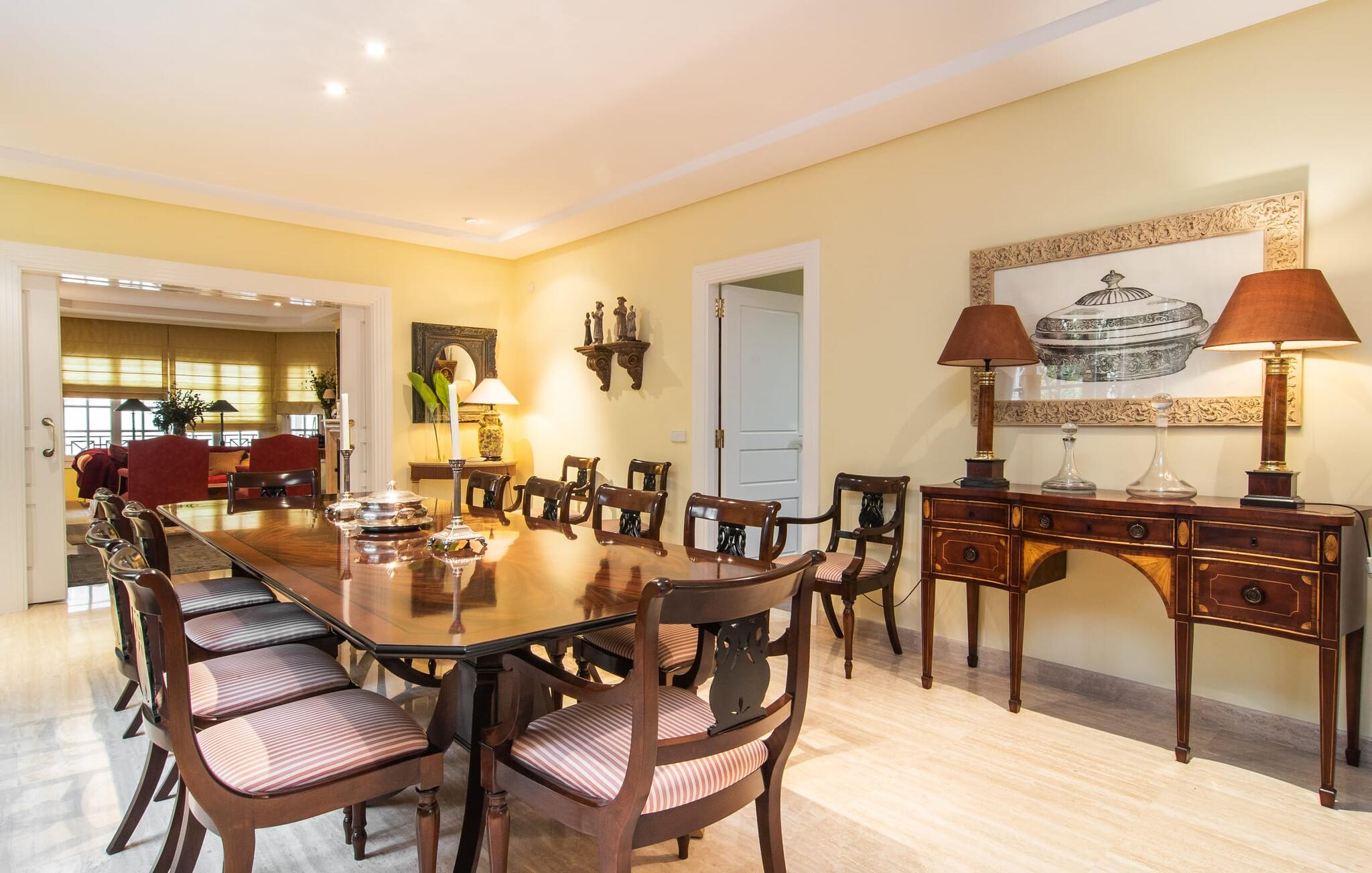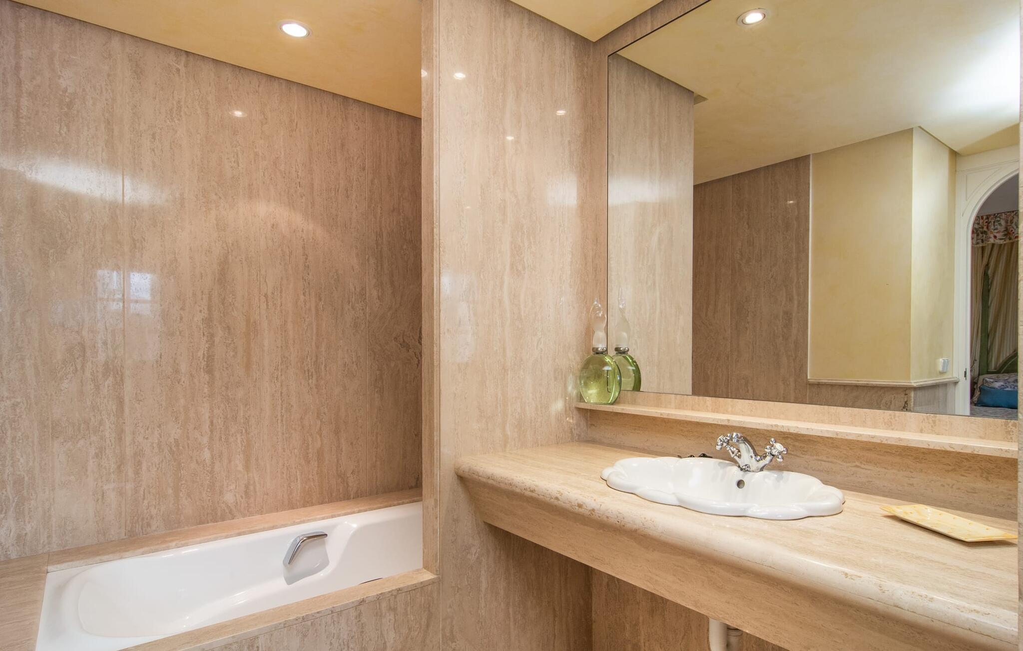 Binnen blijft de luxueuze inrichting indruk maken. De ruime kamers stralen klassieke elegantie uit en bieden comfortabel plaats aan maximaal acht gasten. Overvloedig natuurlijk licht versterkt de leefruimtes, waarvan sommige zijn versierd met levendige kleuren en handige accessoires. Op de begane grond is er een woon- en eetruimte en twee slaapkamers, elk met een eigen badkamer en een kleedkamer. Op de bovenverdieping zijn er nog twee slaapkamers, ook met een eigen badkamer en een met een kleedkamer. Alle slaapkamers zijn voorzien van airconditioning, wat zorgt voor rustgevende nachten, zelfs in de warmere maanden.