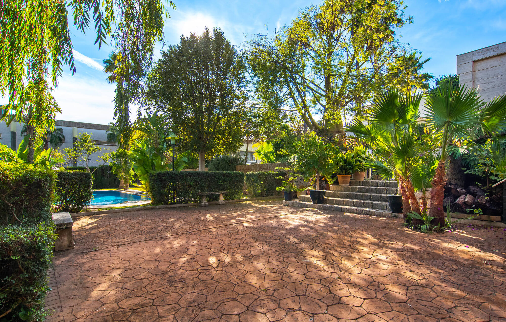 De weelderige, parkachtige vegetatie creëert een adembenemende achtergrond voor ontspanning buitenshuis. Je vindt er gemanicuurde gazons en verschillende overdekte terrasgedeeltes, perfect om tijd door te brengen met vrienden of om in alle rust te ontspannen. Het zwembad is gemakkelijk bereikbaar via een Romeinse trap en nodigt je uit voor een verfrissende duik. Een bijzonder kenmerk is de uitstekend uitgeruste zomerkeuken, die een barbecue bevat en een heerlijk beschutte sfeer biedt voor culinaire avonturen.