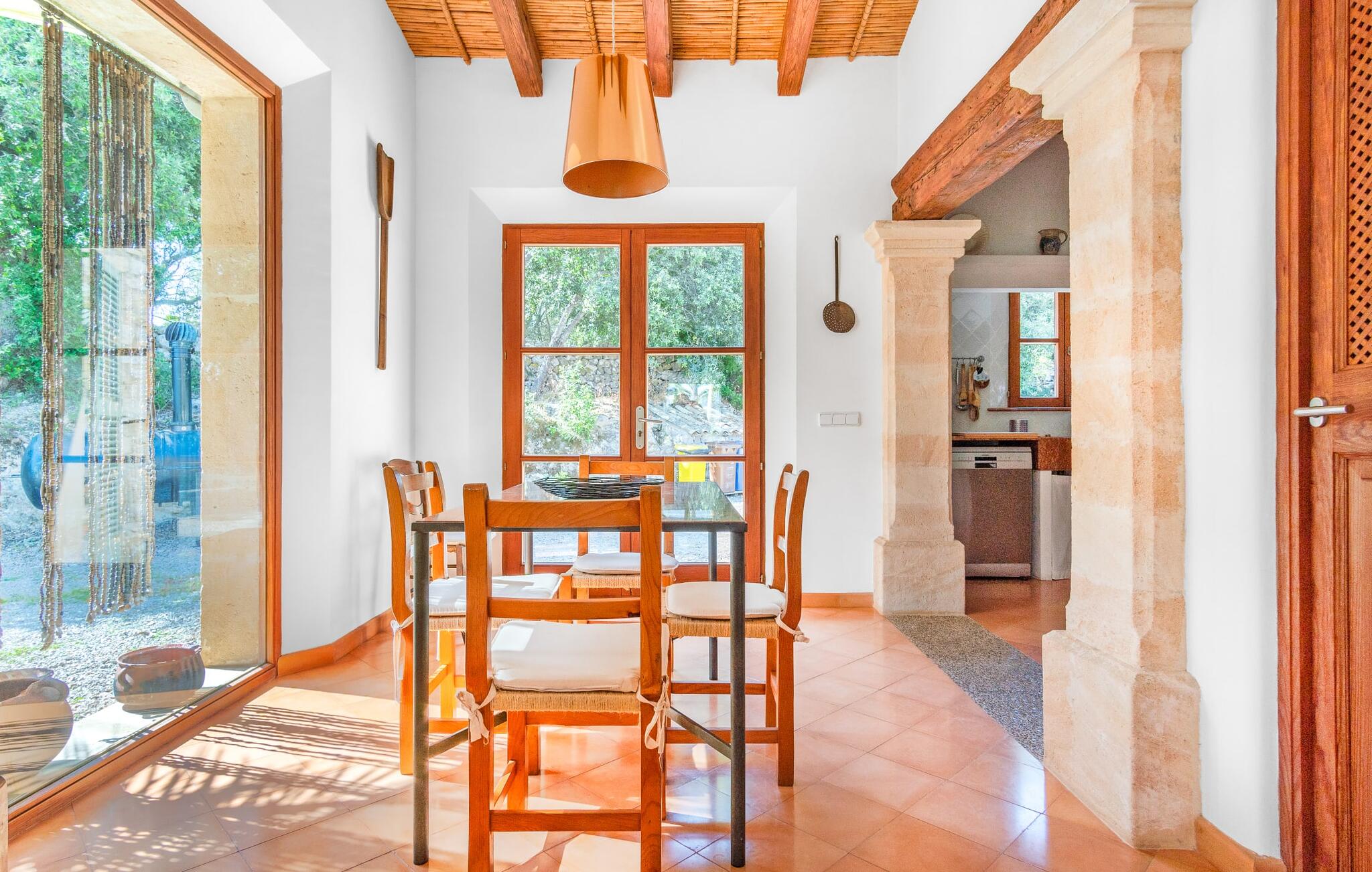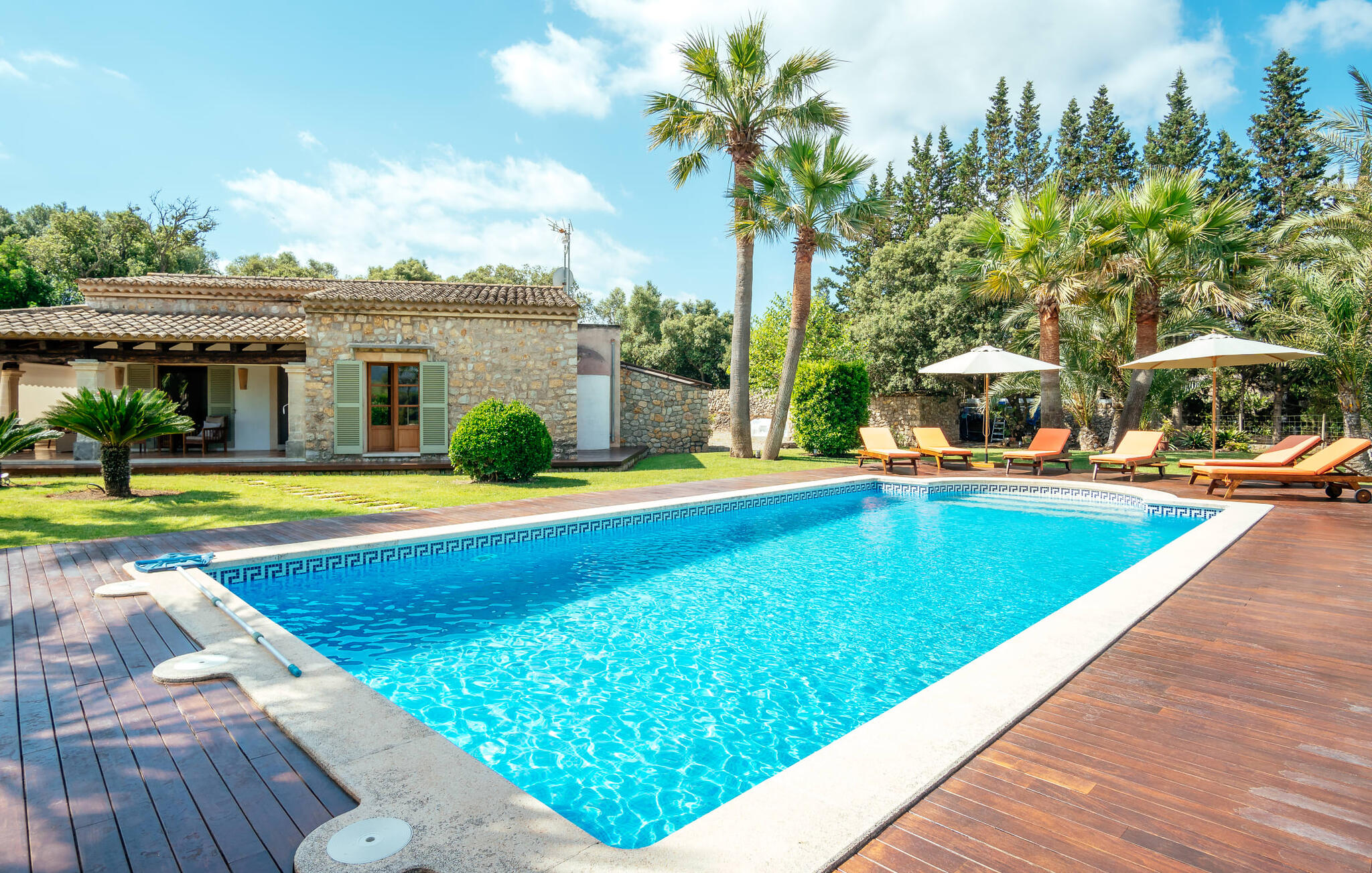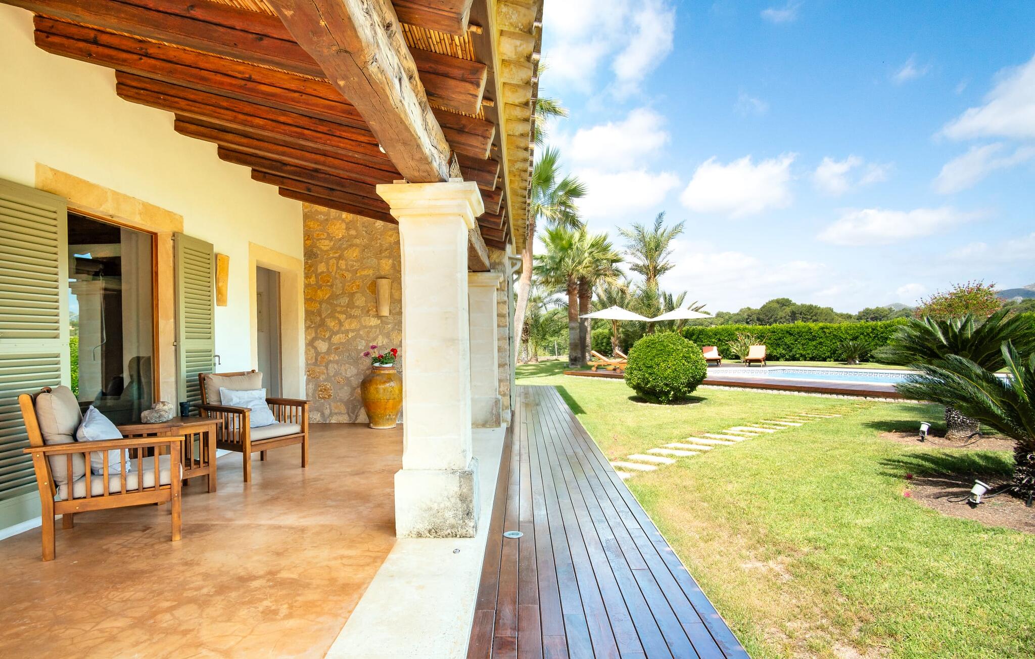 Villa Can Xisco is een indrukwekkend huis dat indruk maakt door de bijzonder geslaagde combinatie van moderne en klassieke Mallorcaanse elementen. De speciale, licht verhoogde locatie biedt een prachtig panoramisch uitzicht op het nabijgelegen dorp Artà. Het mediterrane landgoed wordt gekenmerkt door goed onderhouden gazons en adembenemend mooie palmbomen en andere weelderige vegetatie. De uitnodigende terrassen, waarvan sommige overdekt zijn, bieden heerlijk knusse plekken om te ontspannen. Er is keuze uit coole loungemeubels of zithoeken die even functioneel als smaakvol zijn en ook een geweldige plek om te eten bieden. Het zwembad maakt indruk met zijn indrukwekkende afmetingen van 10 x 5 meter. Het zwembad is decoratief betegeld en gemakkelijk bereikbaar via een halfronde trap. Op het aangrenzende zwembadterras staan comfortabele ligstoelen zodat je uitgebreid kunt zonnebaden onder de diepblauwe mediterrane hemel. Hier kun je tot rust komen en het leven van alledag ver achter je laten. Er zijn twee parasols beschikbaar voor het geval de UV-stralen te sterk worden. Op warme avonden is een stevige barbecue aan te raden, waar je misschien wel verse, regionale lekkernijen kunt bereiden en ervan kunt genieten in een gezellige sfeer. De villa heeft ruime parkeergelegenheid voor jouw gemak.