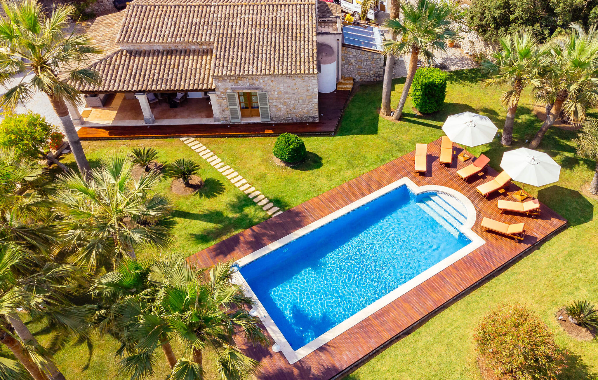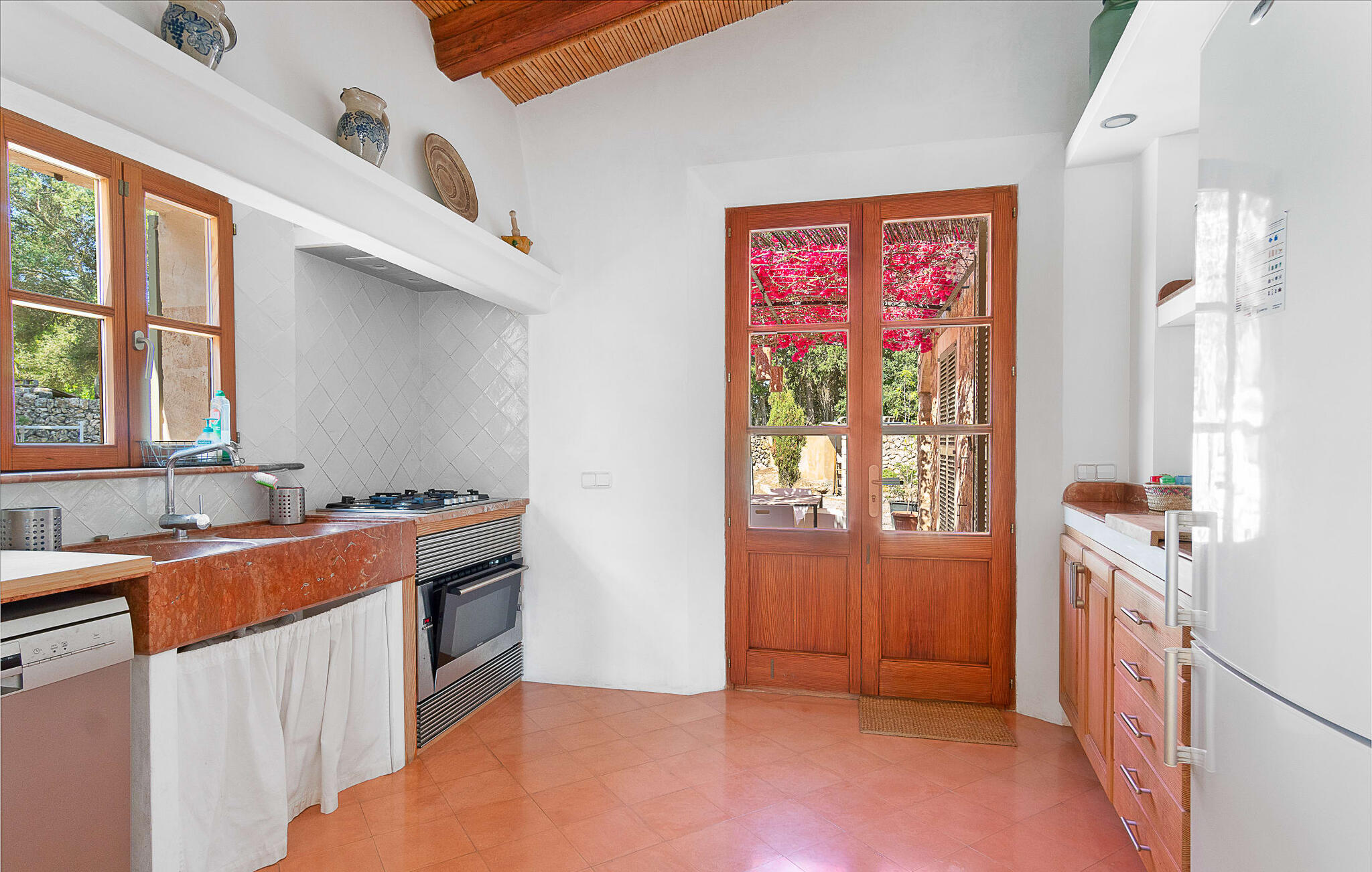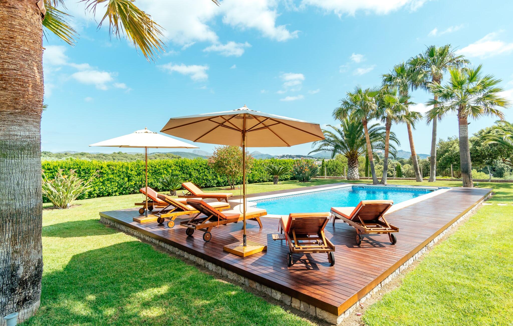 Villa Can Xisco is een indrukwekkend huis dat indruk maakt door de bijzonder geslaagde combinatie van moderne en klassieke Mallorcaanse elementen. De speciale, licht verhoogde locatie biedt een prachtig panoramisch uitzicht op het nabijgelegen dorp Artà. Het mediterrane landgoed wordt gekenmerkt door goed onderhouden gazons en adembenemend mooie palmbomen en andere weelderige vegetatie. De uitnodigende terrassen, waarvan sommige overdekt zijn, bieden heerlijk knusse plekken om te ontspannen. Er is keuze uit coole loungemeubels of zithoeken die even functioneel als smaakvol zijn en ook een geweldige plek om te eten bieden. Het zwembad maakt indruk met zijn indrukwekkende afmetingen van 10 x 5 meter. Het zwembad is decoratief betegeld en gemakkelijk bereikbaar via een halfronde trap. Op het aangrenzende zwembadterras staan comfortabele ligstoelen zodat je uitgebreid kunt zonnebaden onder de diepblauwe mediterrane hemel. Hier kun je tot rust komen en het leven van alledag ver achter je laten. Er zijn twee parasols beschikbaar voor het geval de UV-stralen te sterk worden. Op warme avonden is een stevige barbecue aan te raden, waar je misschien wel verse, regionale lekkernijen kunt bereiden en ervan kunt genieten in een gezellige sfeer. De villa heeft ruime parkeergelegenheid voor jouw gemak.