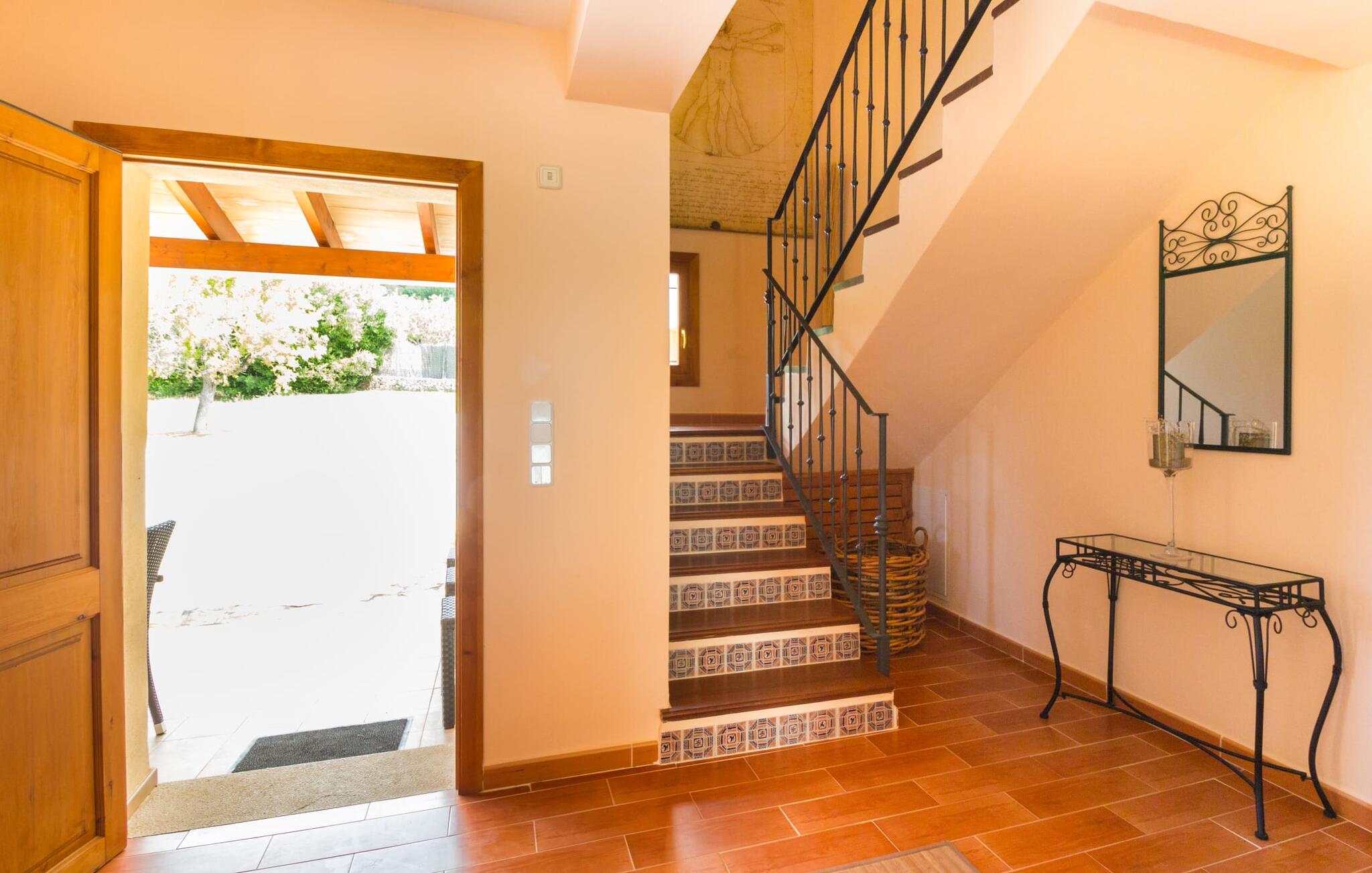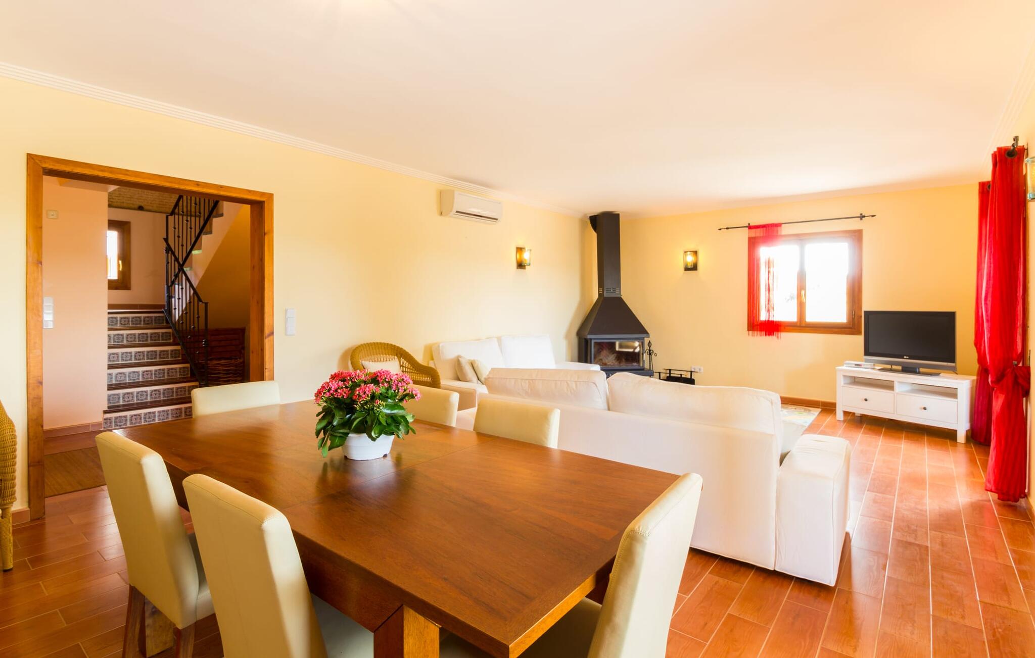 Het interieur van de villa is ook ideaal voor onvergetelijke vakantiemomenten. Het middelpunt van Can Cans is een grote woonkamer met een geïntegreerde eetkamer en aangrenzende, modern uitgeruste keuken. Deze kamers met modern meubilair en een typisch Mallorcaanse sfeer, gedomineerd door lichte zand- en aardetinten en houten dakbalken, zijn de perfecte plek om samen te koken, eten en kletsen, misschien vergezeld van het geknetter van de open haard terwijl iedereen kookt en zich thuis voelt op de comfortabele banken. Zodra een knus gevoel van vermoeidheid je overvalt, kun je je gewoon terugtrekken in een van de vijf slaapkamers, die allemaal licht en liefdevol zijn ontworpen tot in het kleinste detail. Ze hebben een- of tweepersoonsbedden en directe toegang tot het terras of het balkon erboven. Er is ook een comfortabele sofa en een prachtig uitkijkpunt vanwaar je van het uitzicht kunt genieten. Het luxe ontwerp van de vier badkamers is duidelijk ook ontworpen met stijl in het achterhoofd - de mooie tegels in elke badkamer zijn een bijzondere blikvanger.