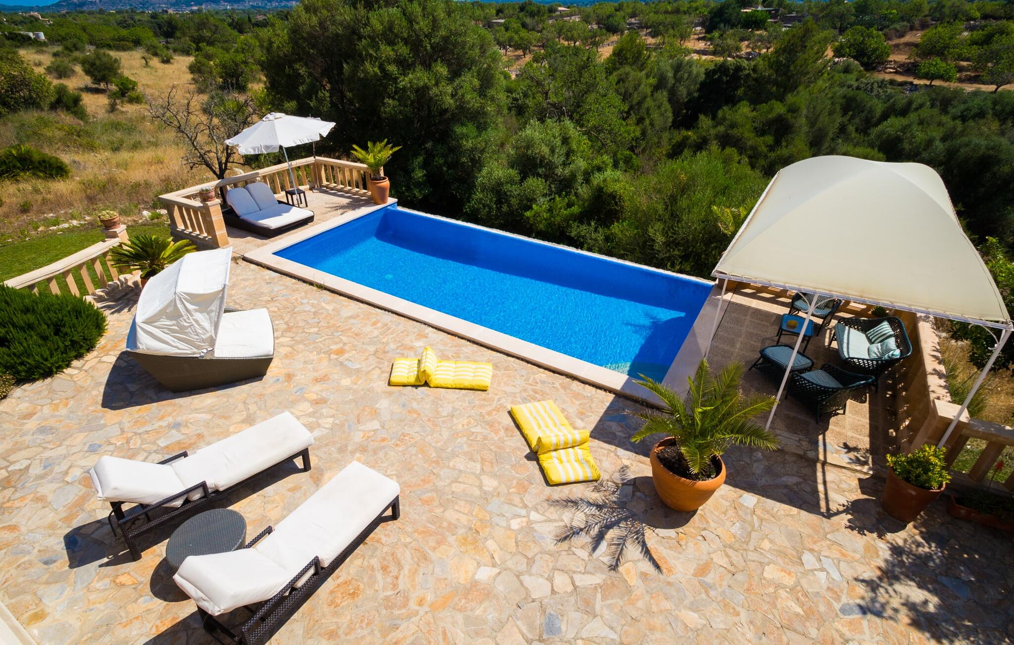 Ben je op zoek naar absolute rust? Hou je van de natuur en hecht je waarde aan orde en elegantie? Zoek dan niet verder, de prachtige Villa Cas Cans in het oosten van het eiland is jouw perfecte vakantiebestemming. Het indrukwekkende stenen huis ligt op een enorm, heerlijk rustig perceel aan het einde van een doodlopende weg, omzoomd door een typische Mallorcaanse natuurstenen muur. De liefdevol aangelegde tuin biedt gemanicuurde gazons voor de kinderen om op te spelen en een magische combinatie van schilderachtige oude bomen, heerlijk geurende rozemarijn- en lavendelstruiken en hoge palmbomen. Direct naast de villa ligt een ongelooflijk groot overloopzwembad, waar je op warme dagen kunt afkoelen terwijl je geniet van het fantastische uitzicht op de natuur. Na het zwemmen is er niets beters dan lekker luieren op het ruime terras met natuurstenen tegels en je onderdompelen in een goed boek. Je hebt keuze te over tussen de vele zit- en ligplekken. Deze omvatten een overdekt dagbed, verschillende ligstoelen en ligmatten, een chill-out plek onder een paviljoen en een overdekt terras direct naast het huis. Daar kun je achterover leunen op het comfortabele, sierlijke rotanmeubilair en genieten van een verfrissend drankje of een lichte snack.