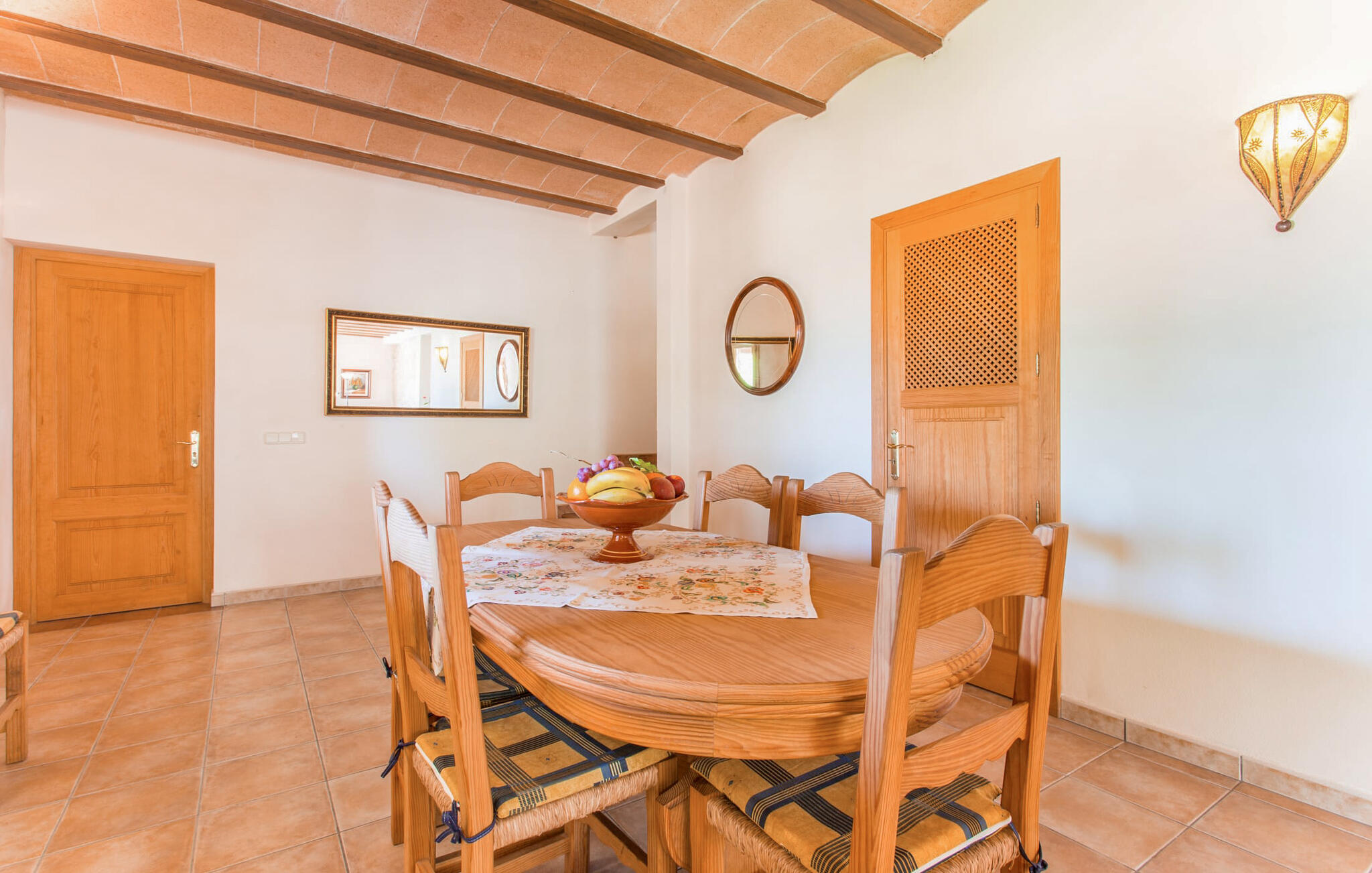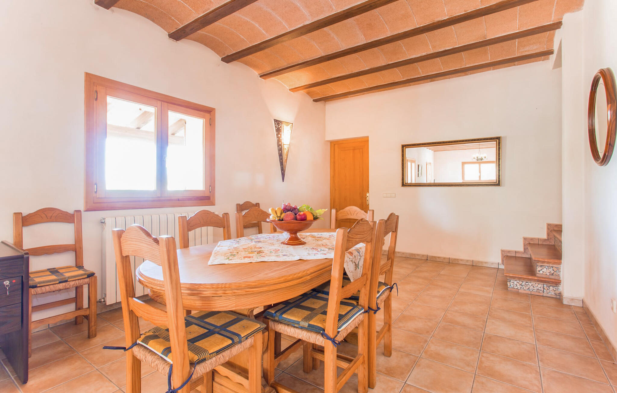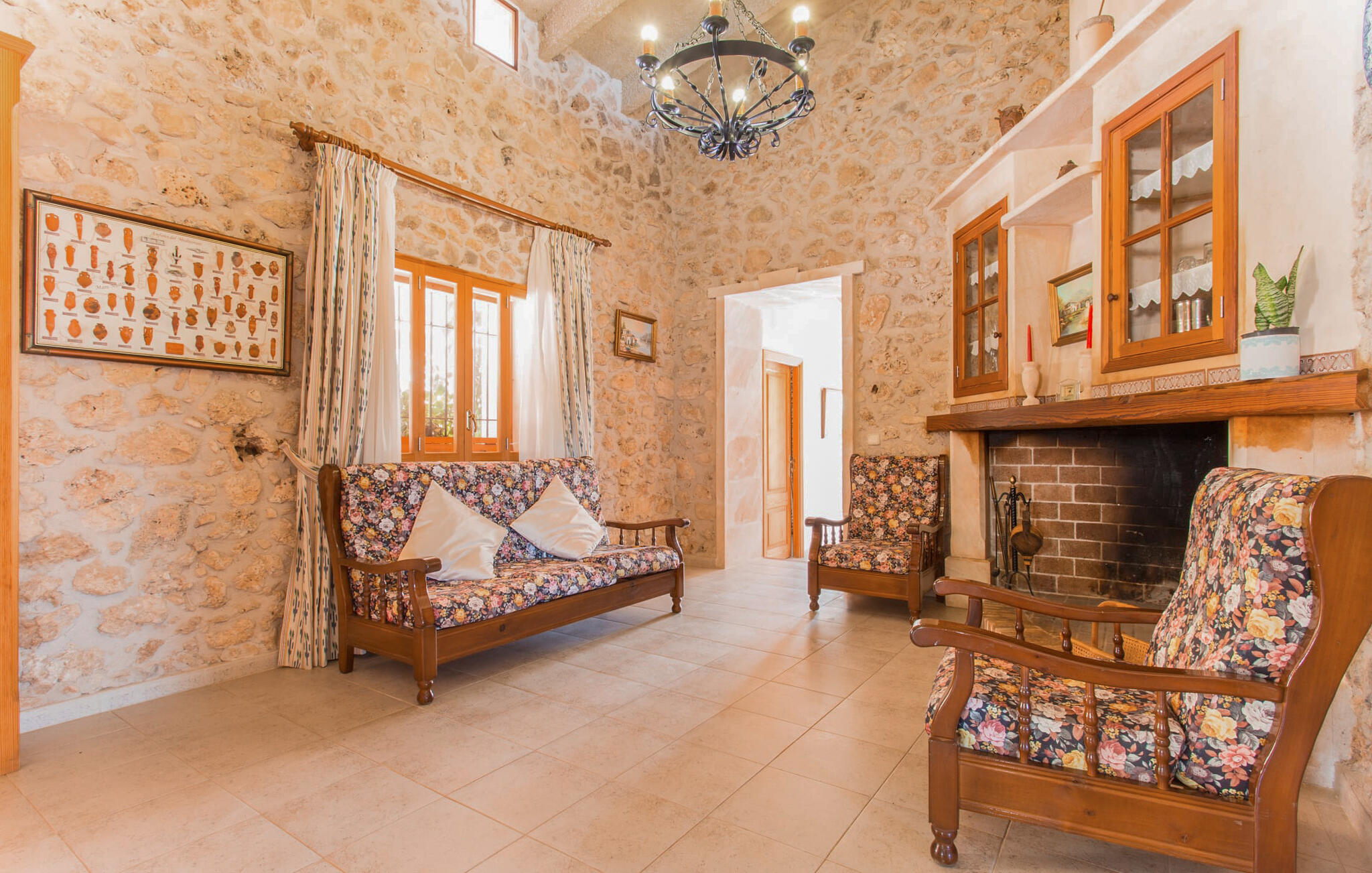 Kies tussen kamers op de bovenverdieping met adembenemend uitzicht op het platteland van Mallorca of een gezellige kamer beneden met gemakkelijke toegang tot de badkamer en keuken. Iedereen kan samenkomen in de zitkamer met tv en open haard, de eethoek en de landelijke keuken, waar de borden wachten op jouw heerlijke creaties. De aardse, rustieke inrichting creëert de perfecte omgeving om te genieten van maaltijden in combinatie met heerlijke wijnen van het nabijgelegen wijnhuis Miquel Oliver in Petra. Doe nieuwe energie op in deze ontspannen en afgelegen sfeer.