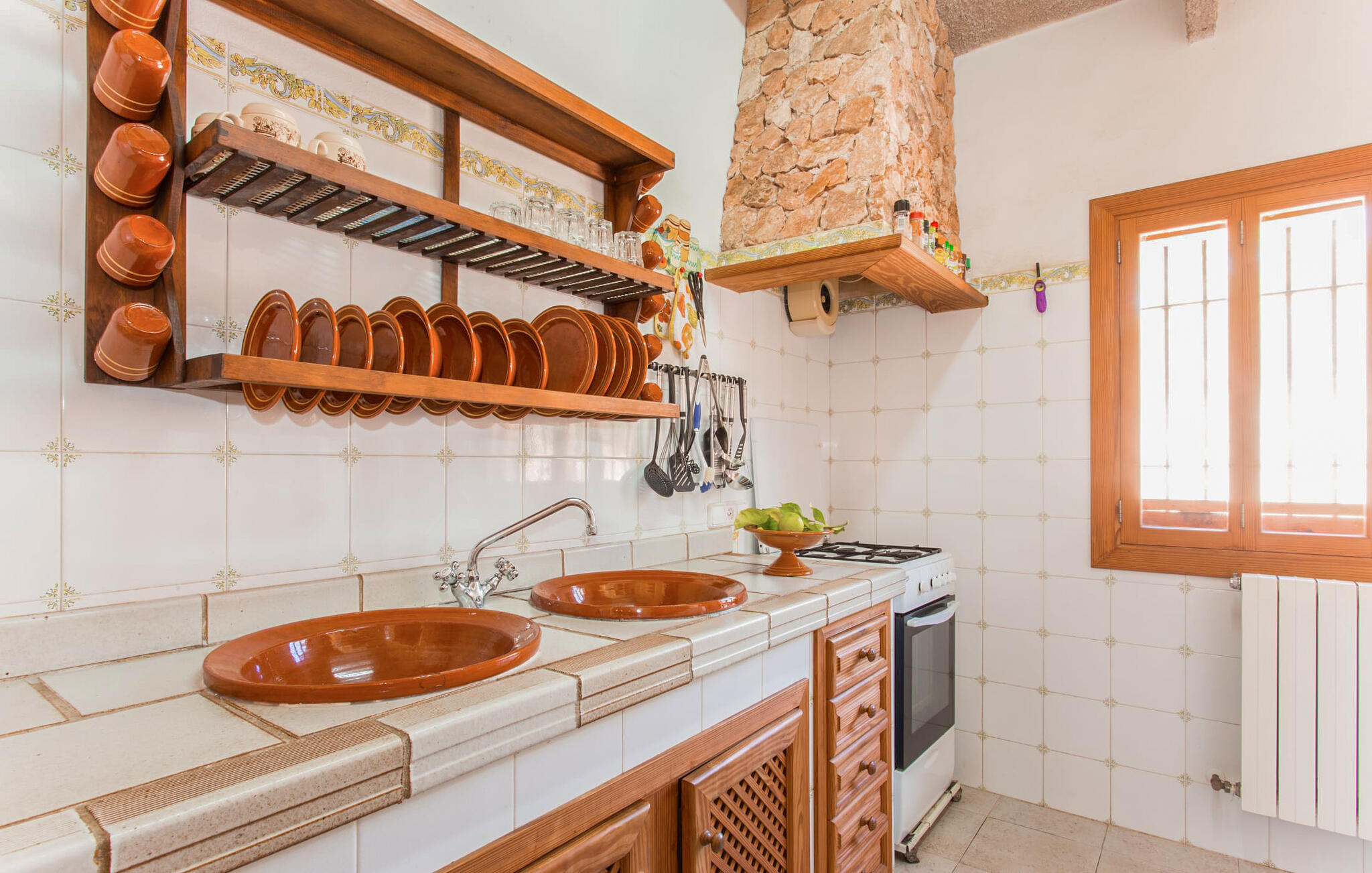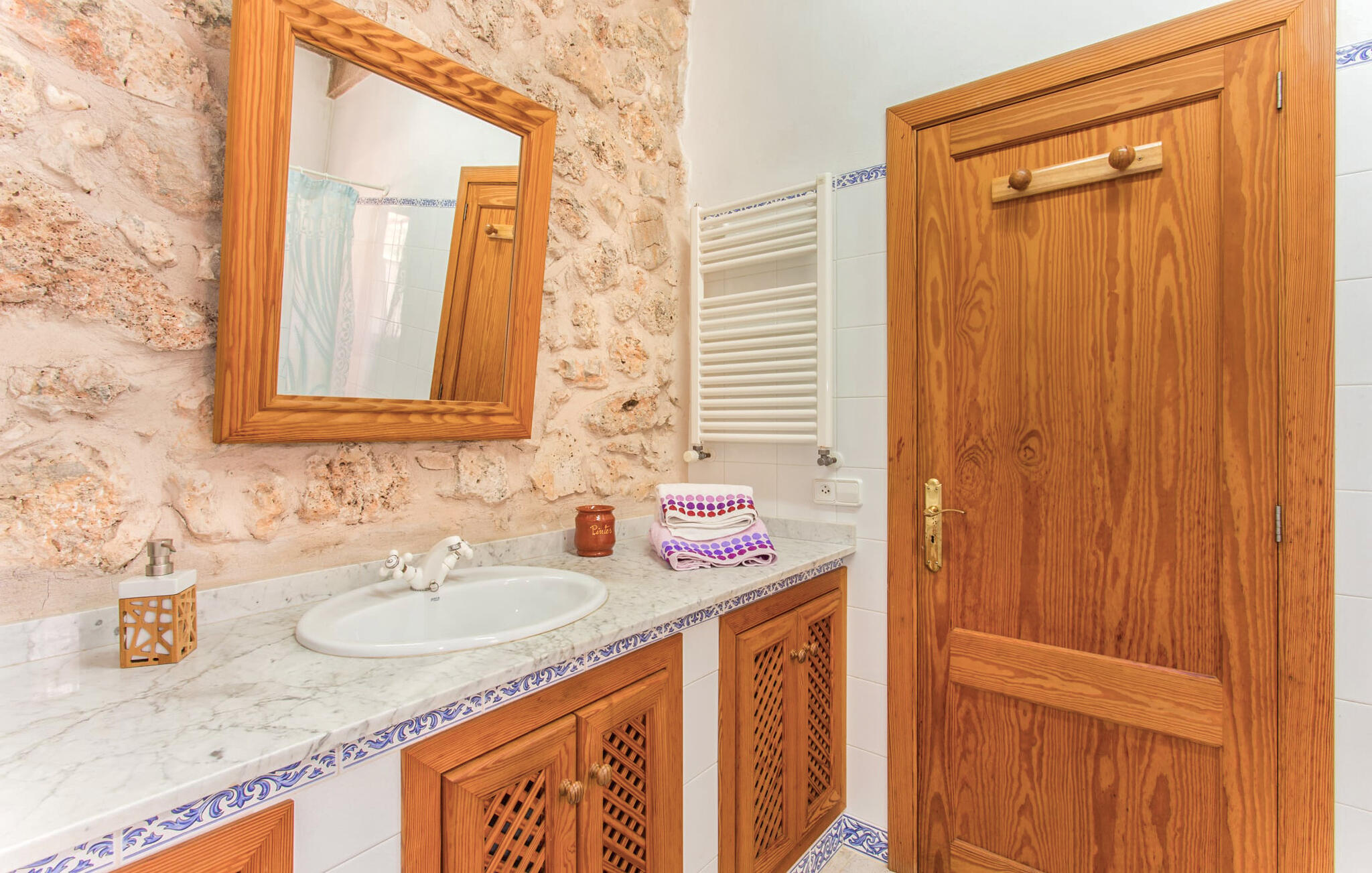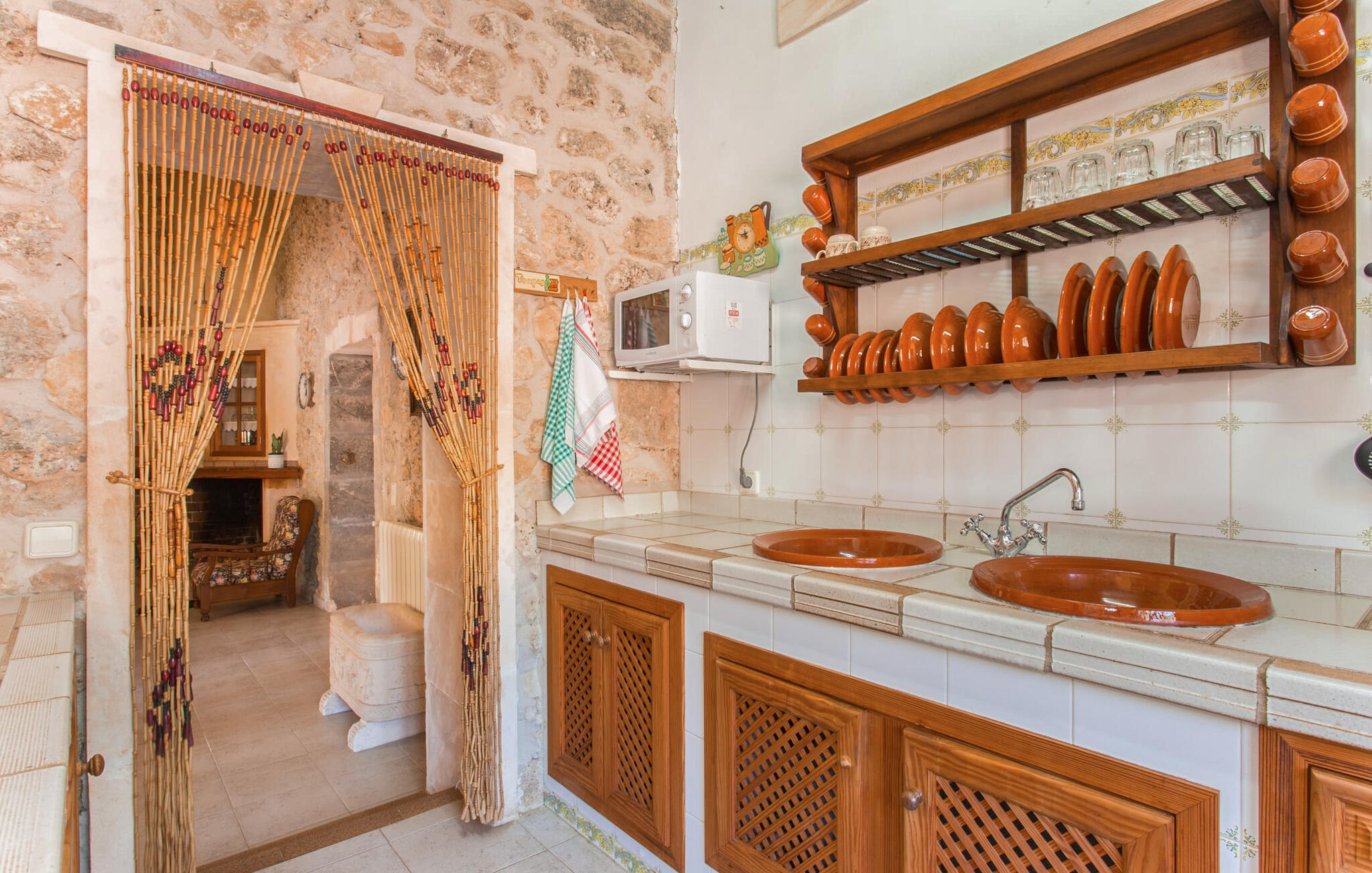 Kies tussen kamers op de bovenverdieping met adembenemend uitzicht op het platteland van Mallorca of een gezellige kamer beneden met gemakkelijke toegang tot de badkamer en keuken. Iedereen kan samenkomen in de zitkamer met tv en open haard, de eethoek en de landelijke keuken, waar de borden wachten op jouw heerlijke creaties. De aardse, rustieke inrichting creëert de perfecte omgeving om te genieten van maaltijden in combinatie met heerlijke wijnen van het nabijgelegen wijnhuis Miquel Oliver in Petra. Doe nieuwe energie op in deze ontspannen en afgelegen sfeer.