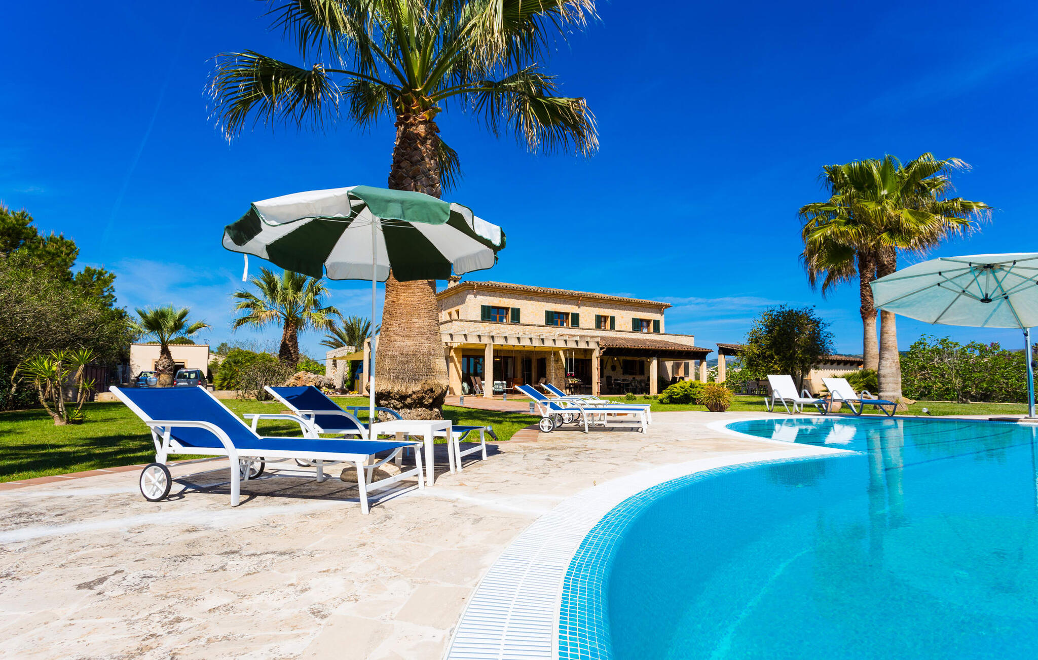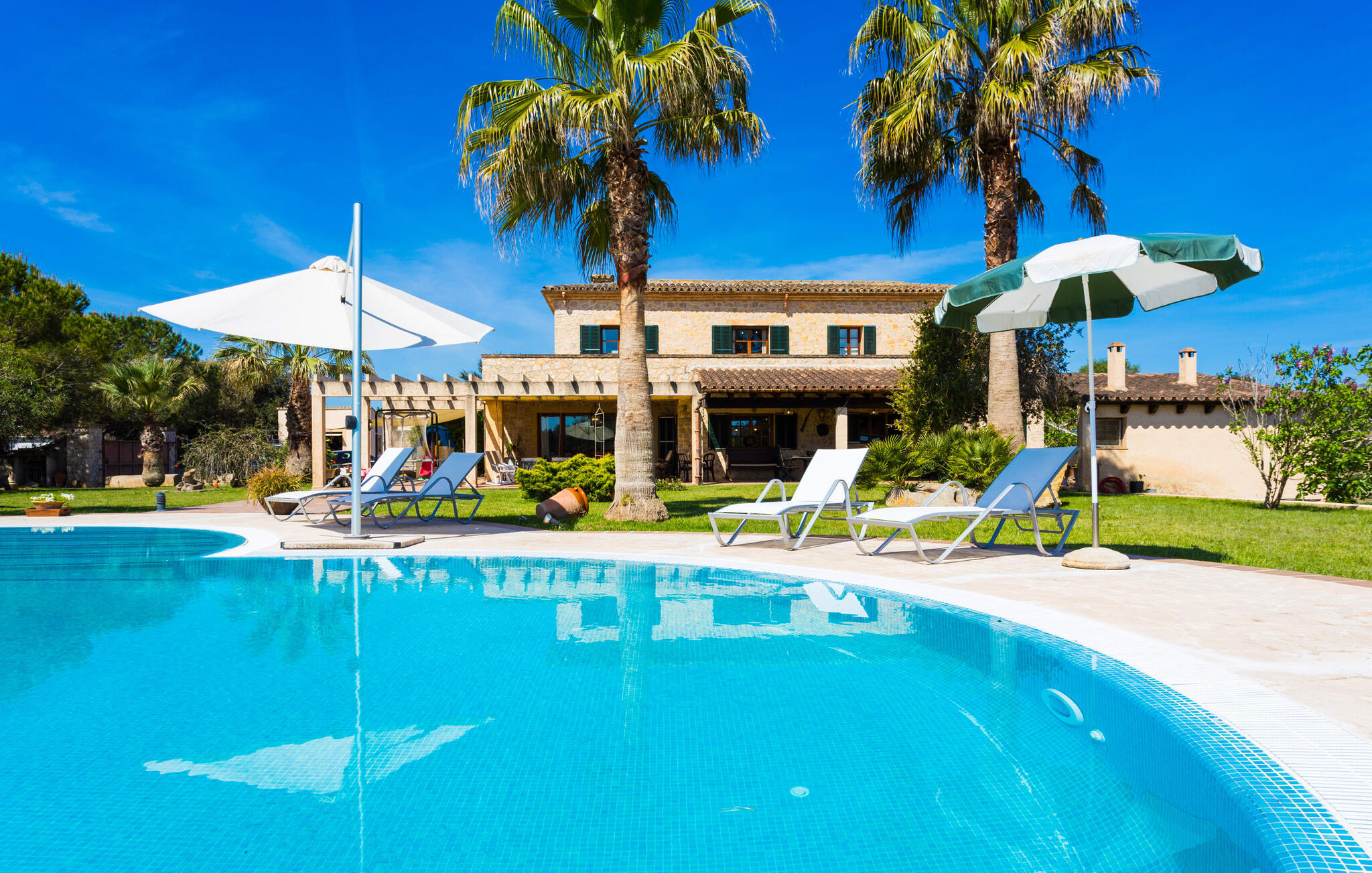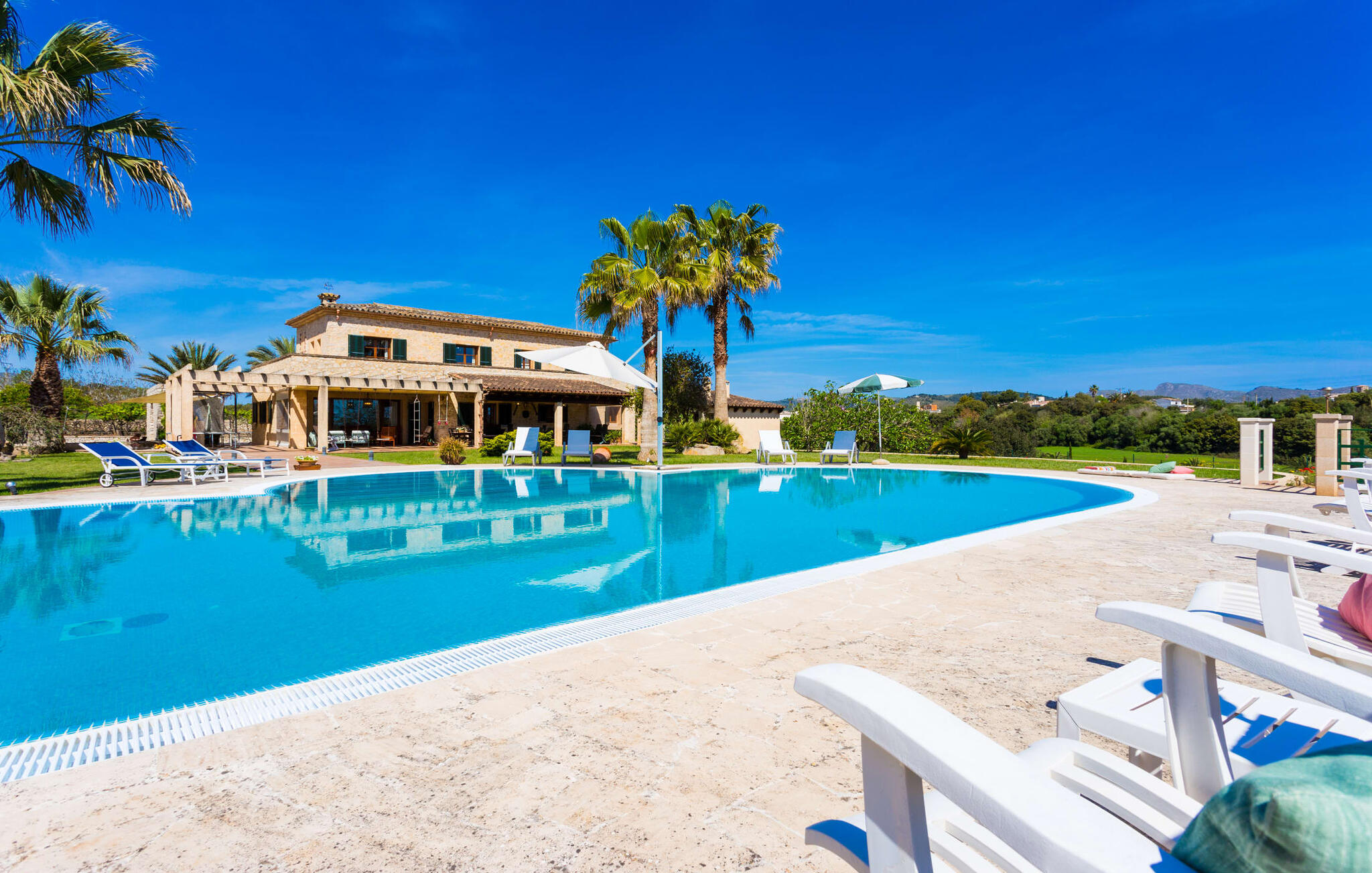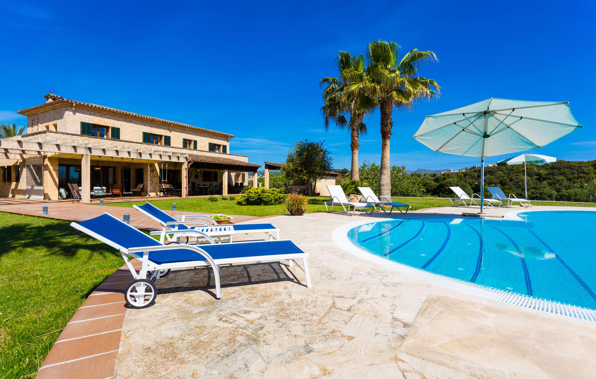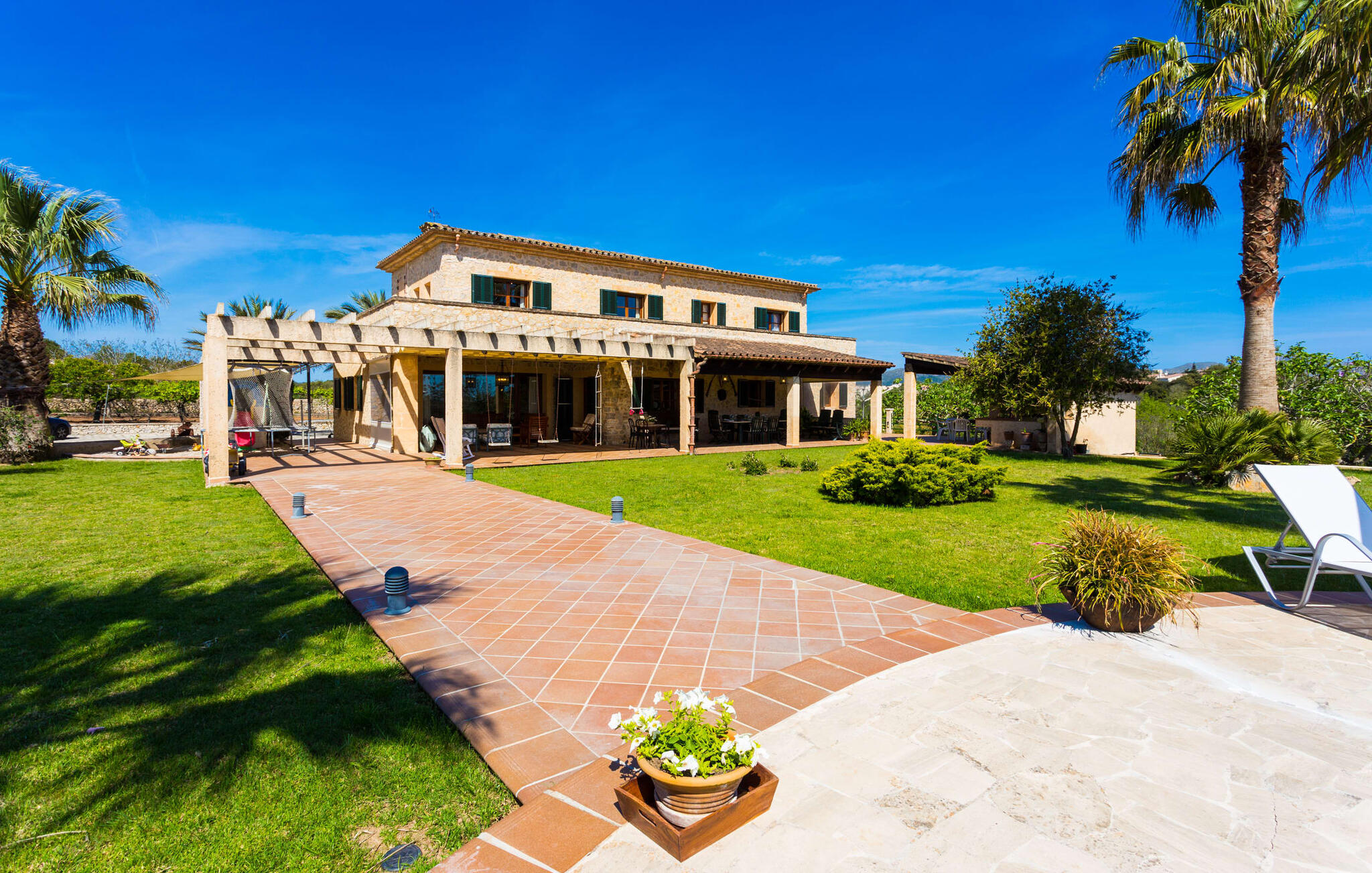 Als je de finca "Els Mitjans" nadert, vallen meteen de hoge palmbomen op die een tropisch tintje geven aan de rustige omgeving.