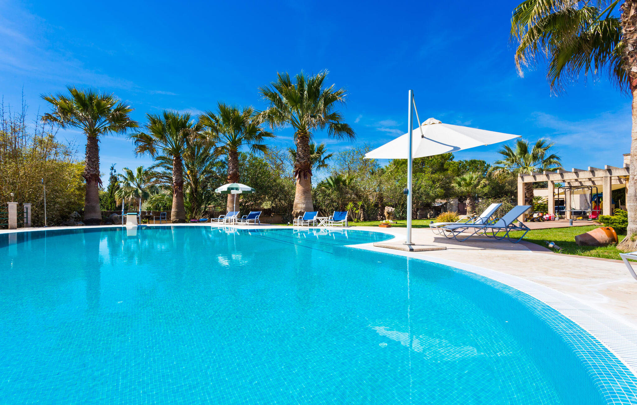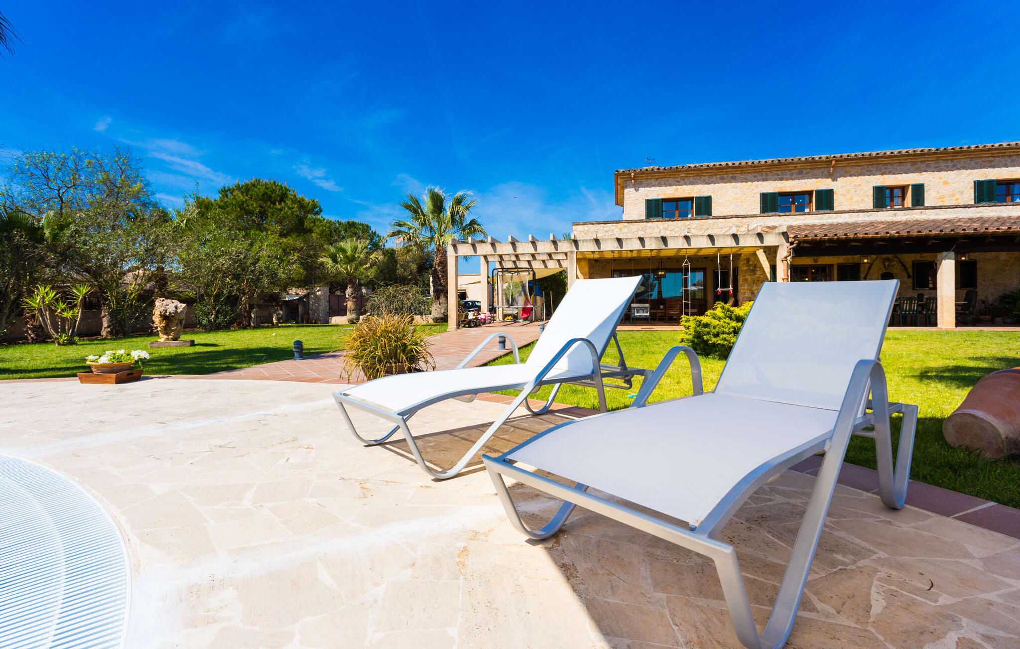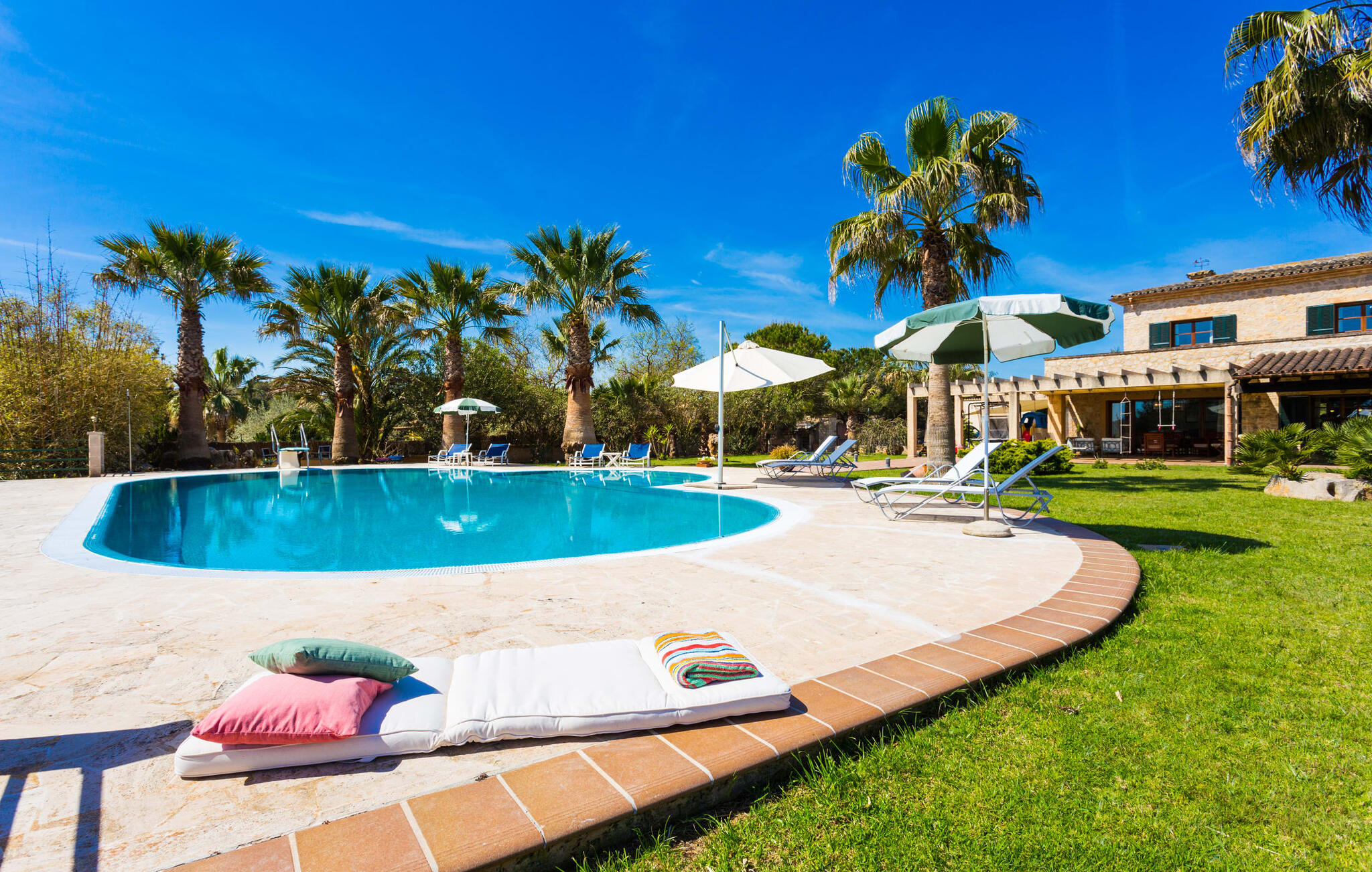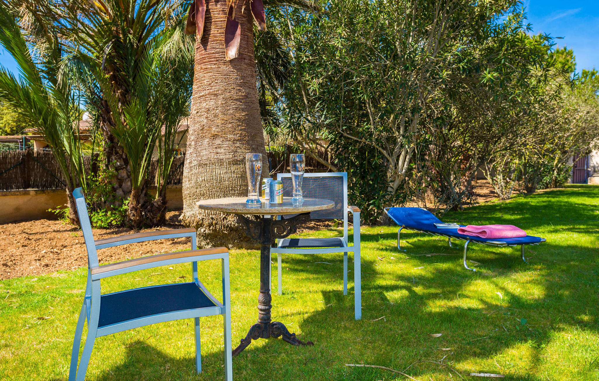 Als je de finca "Els Mitjans" nadert, vallen meteen de hoge palmbomen op die een tropisch tintje geven aan de rustige omgeving.