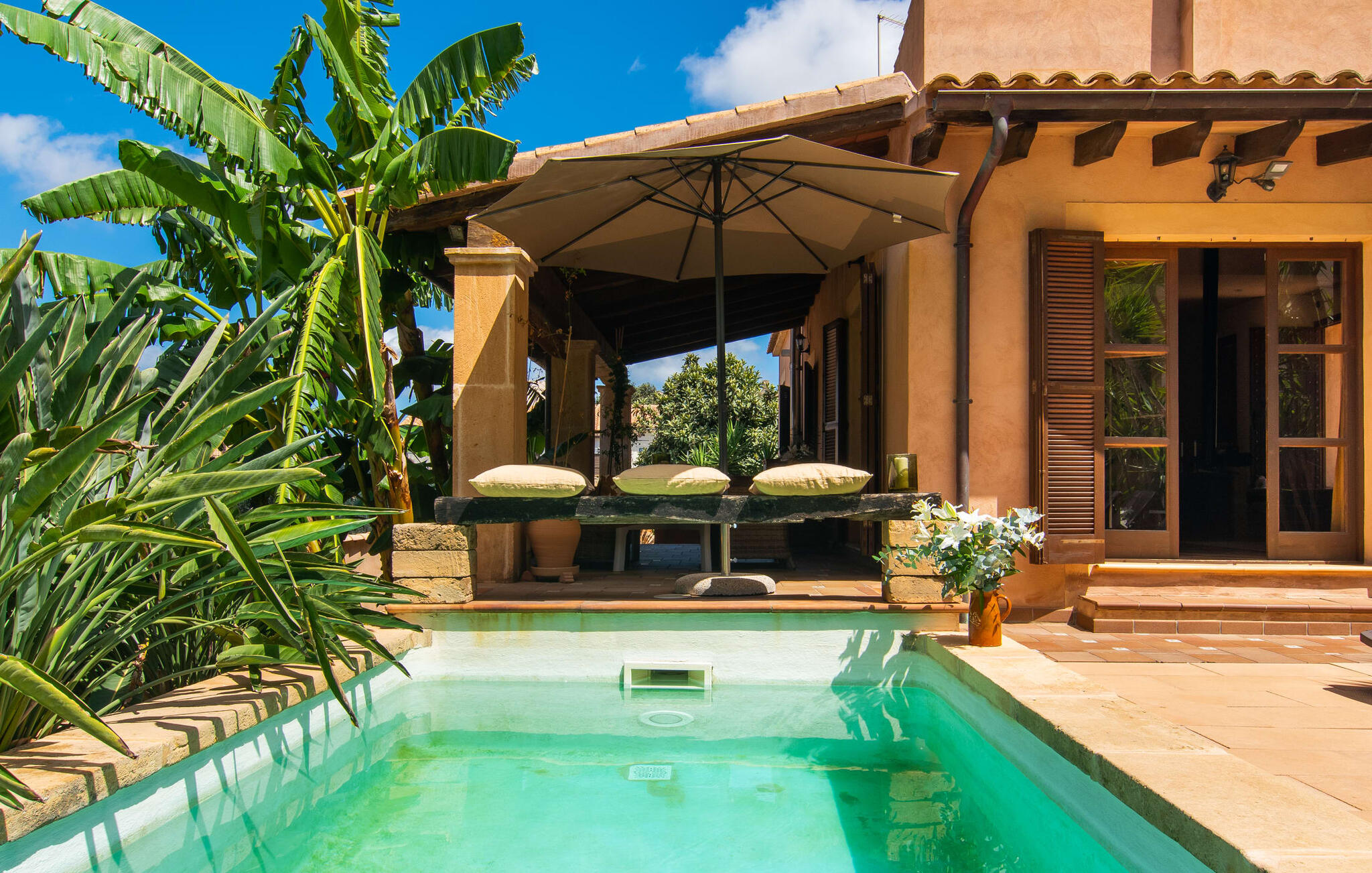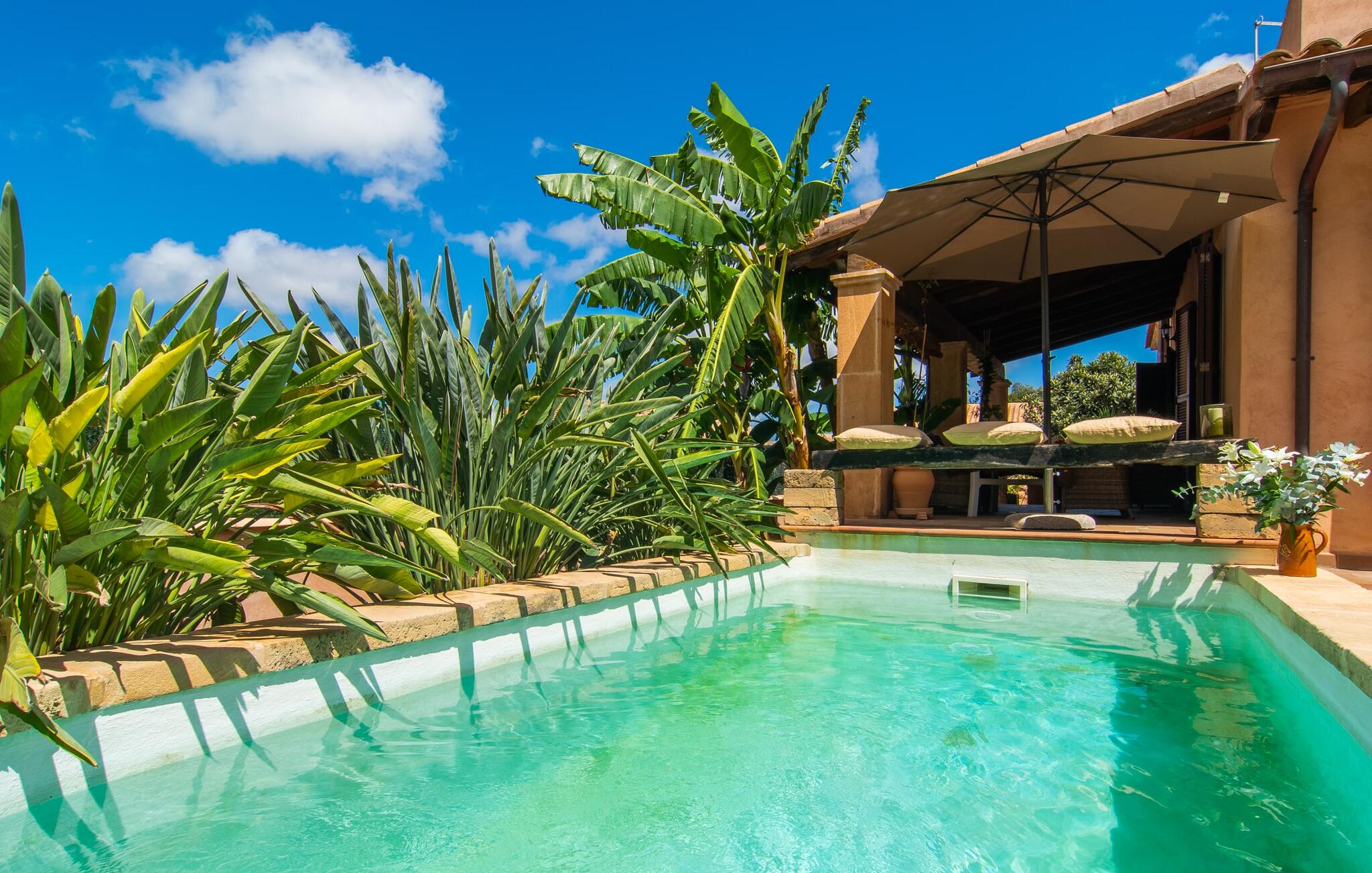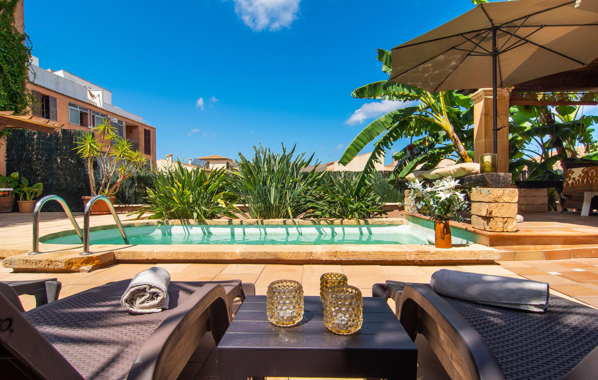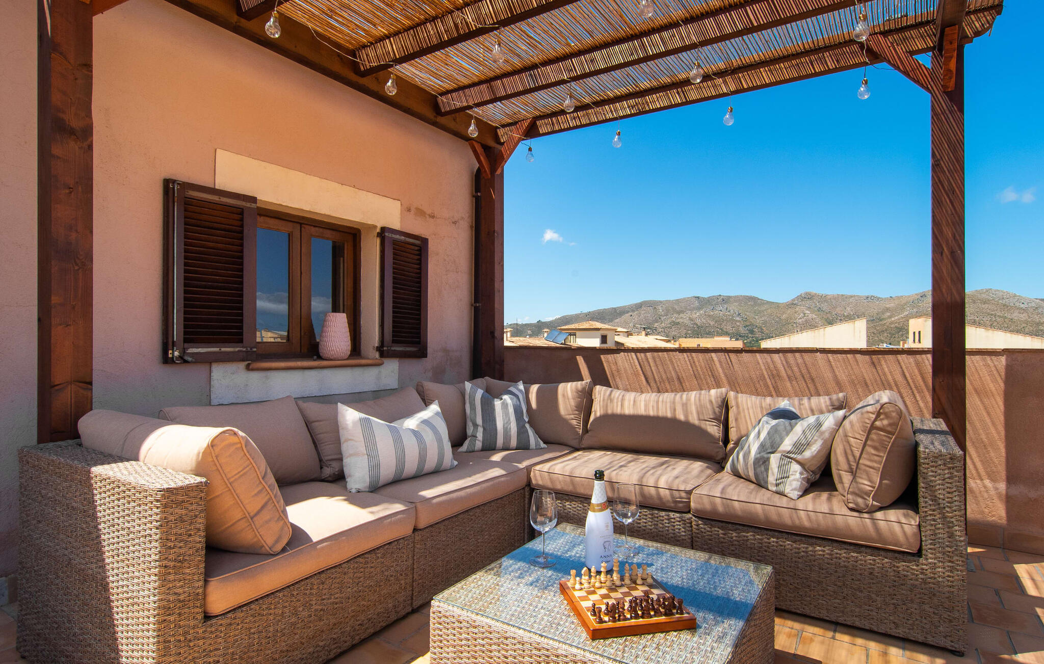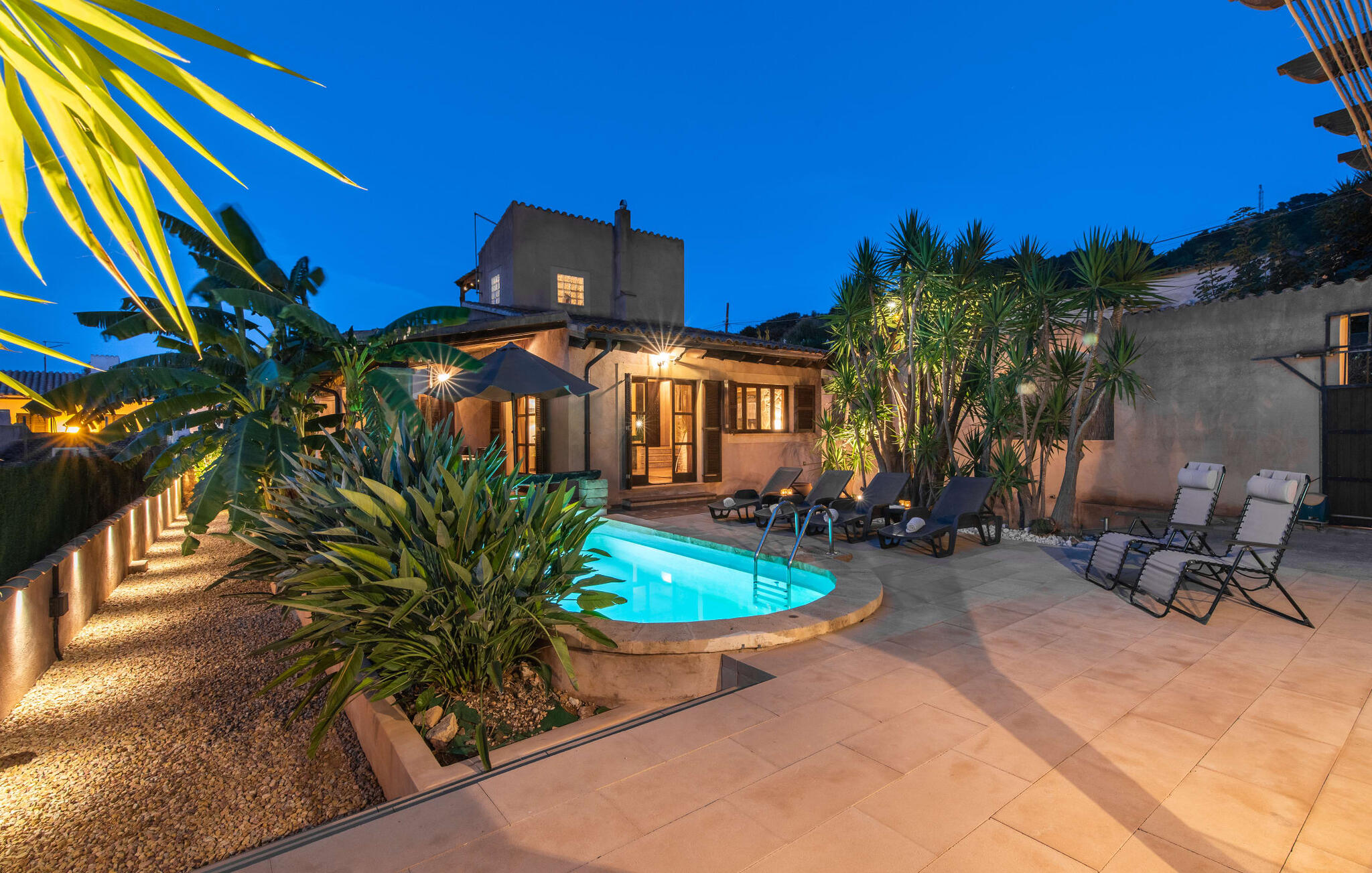 De dingen die je in patio`s kunt vinden! De muur van het buurhuis is begroeid met klimplanten, waardoor je tuin van alle kanten beschut aanvoelt als een juweeltje als je op de schilderachtige oude houten balk boven het knusse zwembad zit. Degenen die hun kruipvaardigheden op vakantie willen perfectioneren zijn misschien beter af op het dichtstbijzijnde strand, maar degenen die gewoon het gevoel van ontspanning waarderen dat een zwembad geeft zullen vele gelukzalige uren doorbrengen op deze binnenplaats geplaveid met inheems grind en tegels in de traditioneel mooie Mallorcaanse kleur. Als je actief wilt worden, komt de tafeltennistafel in de schaduw van een pergola goed van pas. Je hebt de keuze waar je wilt genieten van de eilandzon: direct bij het zwembad of naast het huis. Met de BBQ kun je een culinair hoogtepunt creëren, zodat niet alleen je huid en ziel, maar ook je smaakpapillen verwend worden op vakantie. Een overdekt terras nodigt je uit om lekker te luieren in de schaduw. Als de avond valt, gaat de buitenverlichting als bij toverslag aan en krijgt de tuin meteen een andere vorm. Maak van de gelegenheid gebruik om het te ervaren terwijl je je vermaakt met een spelletje schaak of een redelijk uitdagende puzzel.