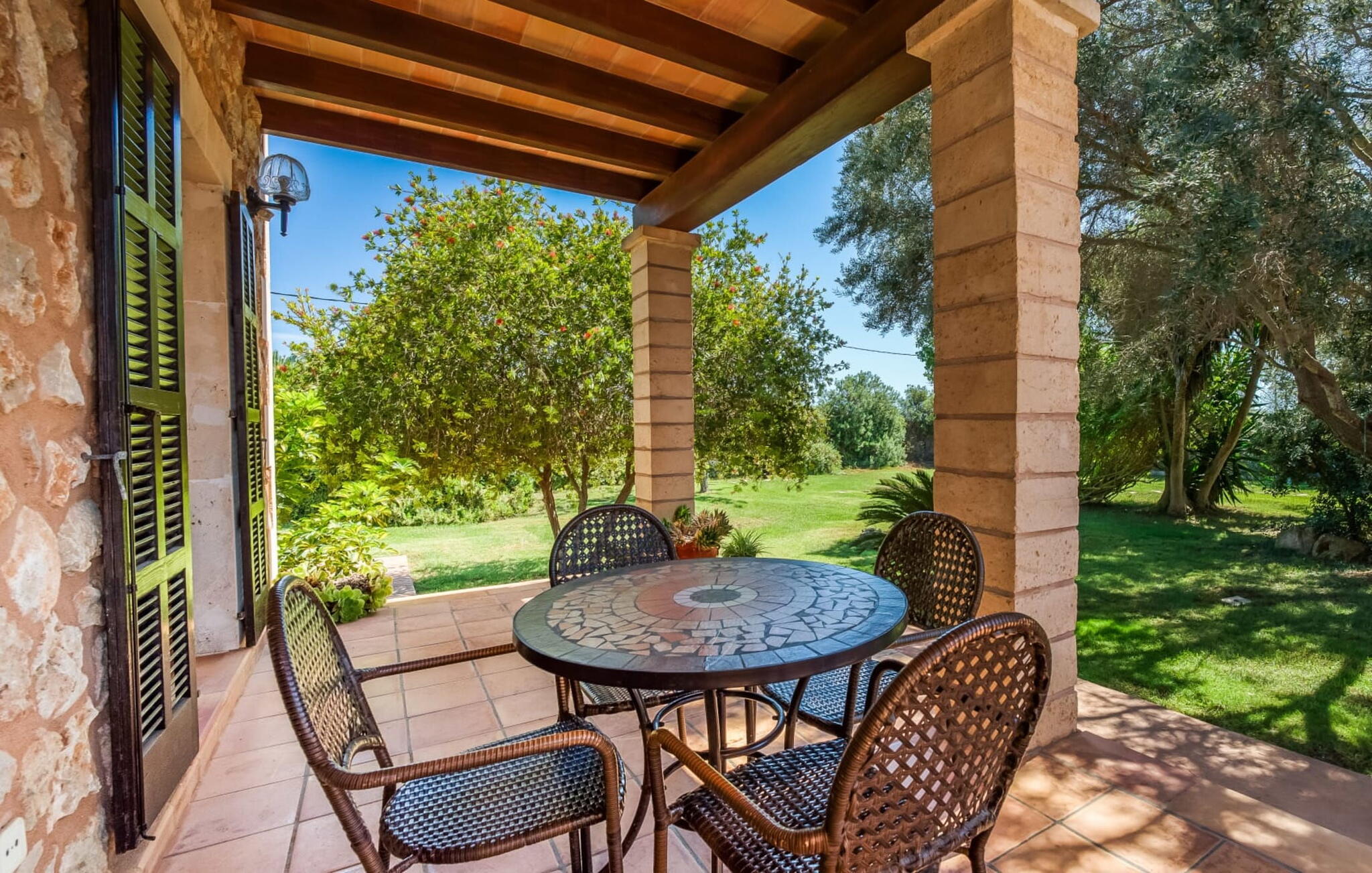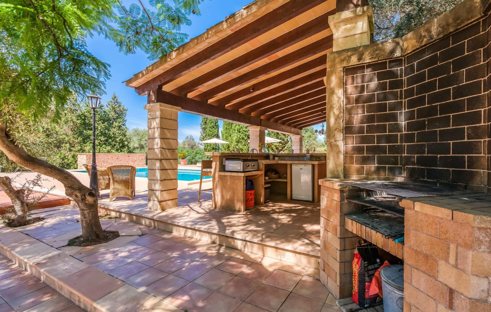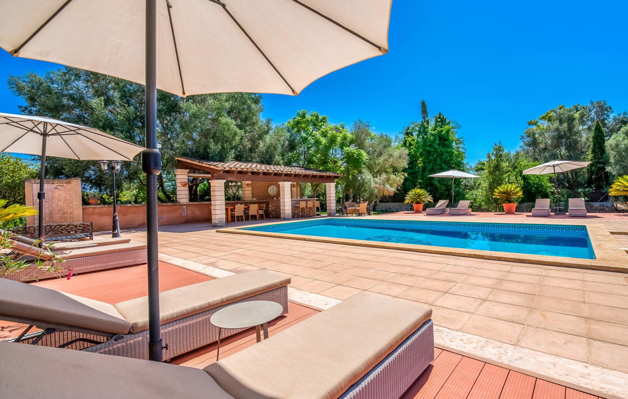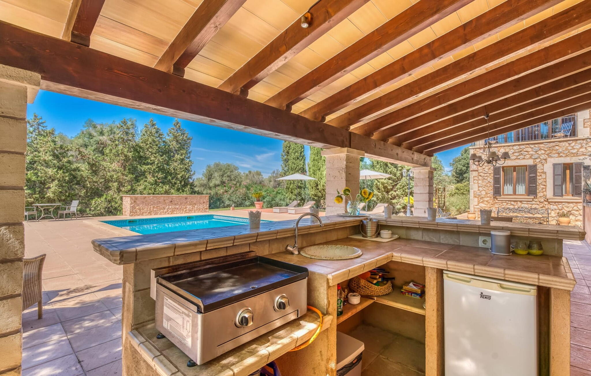 Een Mallorcaanse droomvilla, gebouwd van natuursteen en omgeven door een ruime en goed onderhouden tuin - dat en nog veel meer is Villa Gran Sueno. Het biedt plaats aan maximaal acht personen en twee baby`s. Het prachtige huis met rustieke zuilen heeft twee grote balkons, waarvan een overdekt, en vanaf elk kun je genieten van het uitzicht op de zee, die op slechts 3 kilometer afstand ligt. Bovendien word je verleid door de azuurblauwe schittering van het zwembad, dat wordt omringd door een opmerkelijk terras. Hier kun je een paar baantjes trekken of afkoelen van de zomerhitte voordat je gaat liggen op een van de comfortabele ligstoelen of een mooi plekje in de schaduw vindt - wat dacht je van de gezellige rieten stoelen in de buitenkeuken? De bar met bijbehorende barkrukken wacht op je om `s avonds te genieten van een cocktail of een koude cerveza of twee terwijl je uitkijkt over het verlichte zwembad.