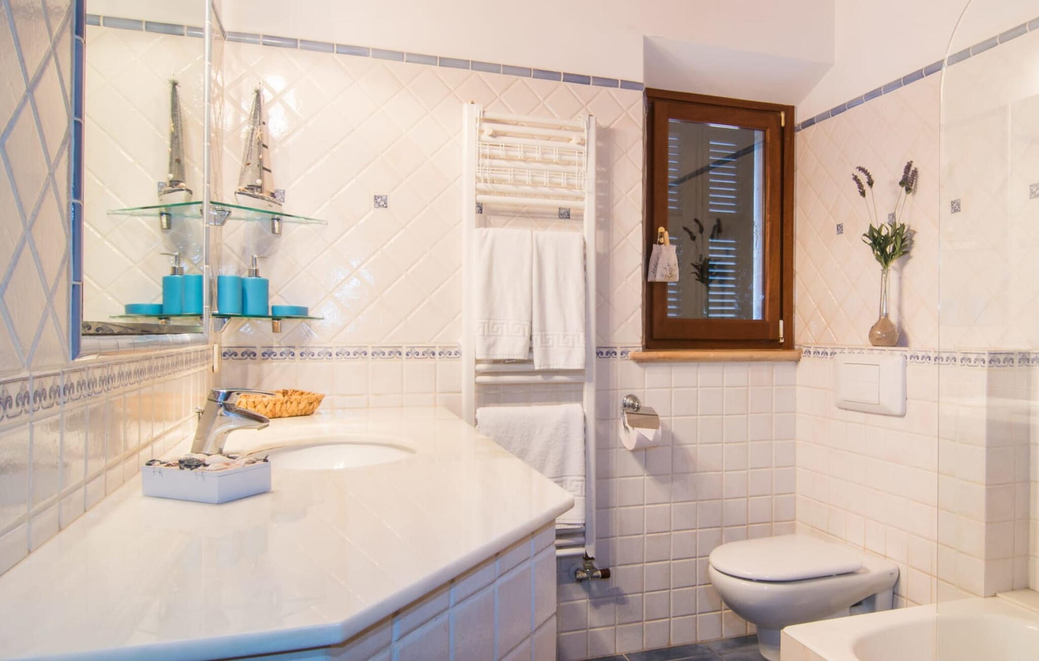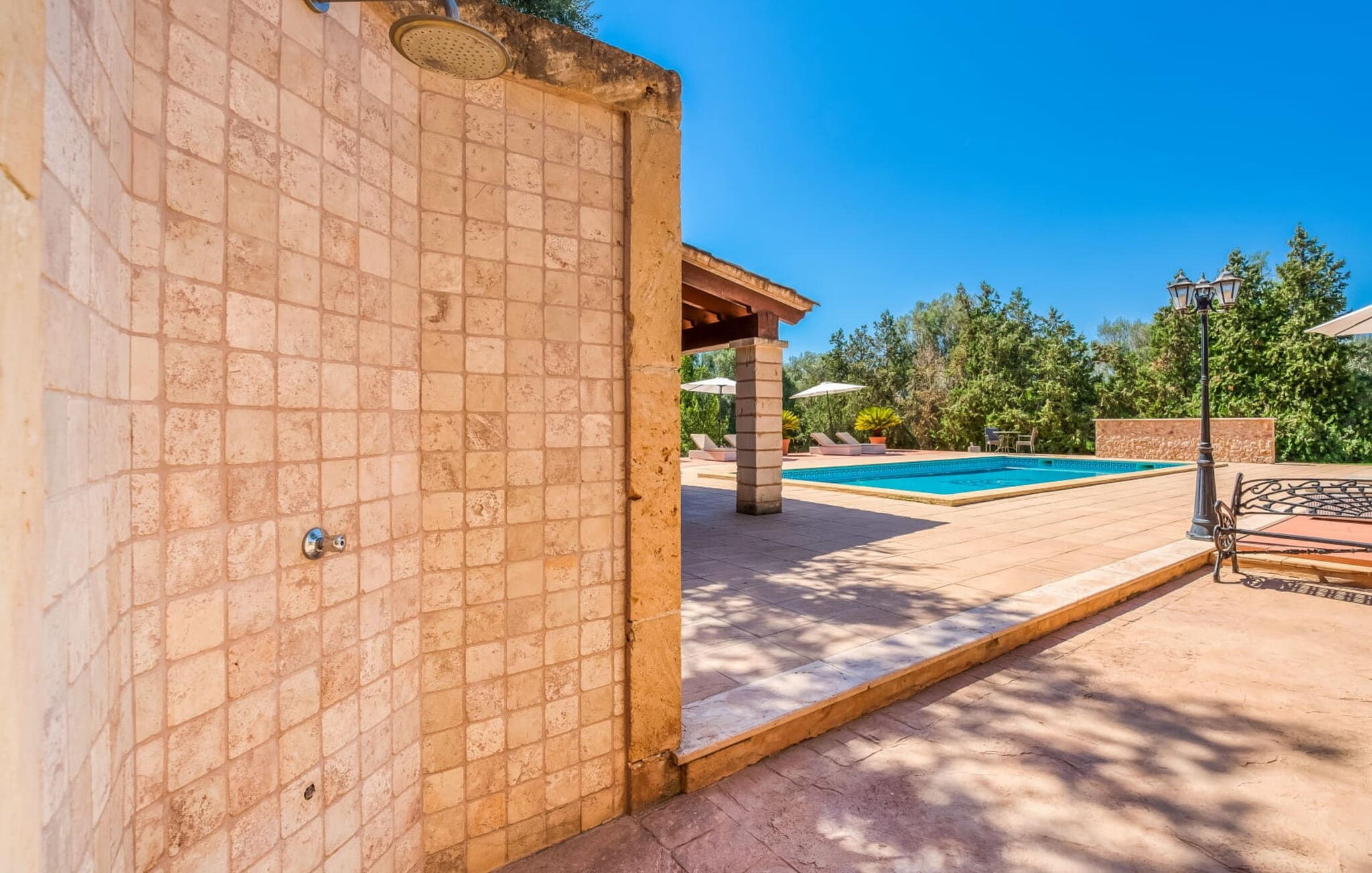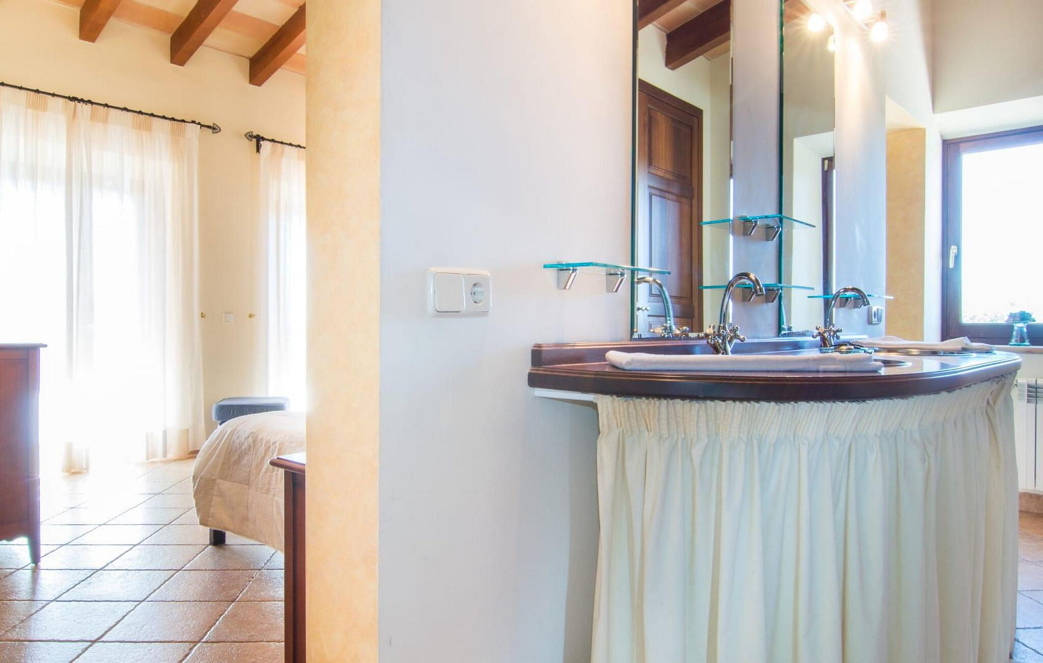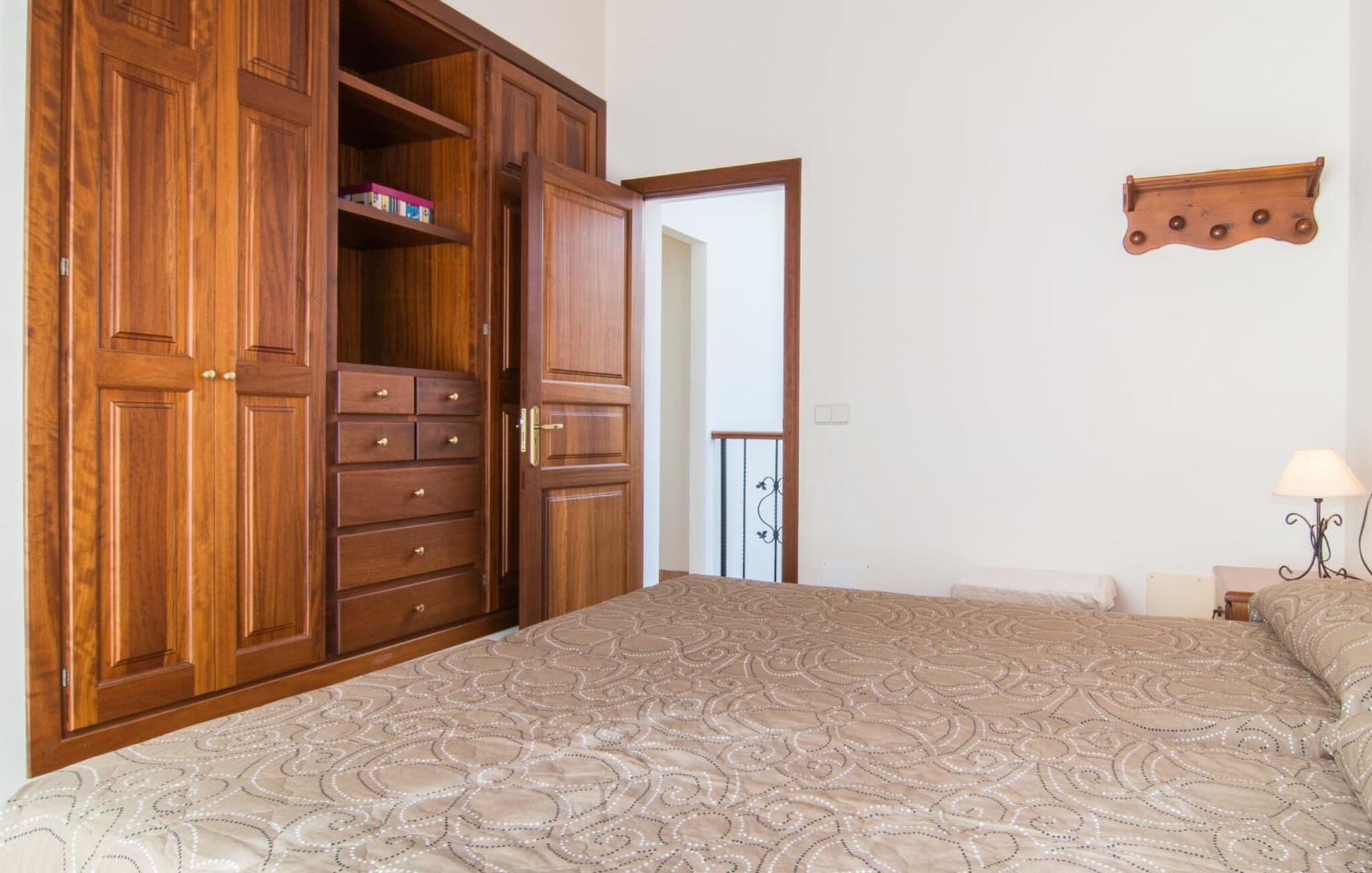Het interieur van de villa is indrukwekkend: de inrichting is tot in het kleinste detail liefdevol gemodelleerd naar de klassieke Mallorcaanse stijl. Er zijn grote tegels in elke kamer, evenals warm, donkerbruin hout, lichtgekleurde muren en smaakvolle lampen. De begane grond heeft een open ontwerp en stenen bogen verbinden esthetisch de zeer goed uitgeruste keuken, de gezellige eethoek en de woonkamer met zijn extreem zacht gestoffeerde meubels, die rond de eigen open haard van het huis is gerangschikt. Op koudere avonden kun je hier vele aangename uren doorbrengen bij het knisperende haardvuur. Een van de vier tweepersoonsslaapkamers van de villa bevindt zich op de benedenverdieping. De andere drie bevinden zich op de bovenverdieping en zijn bereikbaar via een elegante trap met een sierlijke zwarte leuning. Alle slaapkamers zijn licht, ruim en voorzien van aantrekkelijke bedden; de drie zeer schone badkamers zijn bijzonder indrukwekkend dankzij hun moderne, hoogwaardige inrichting.