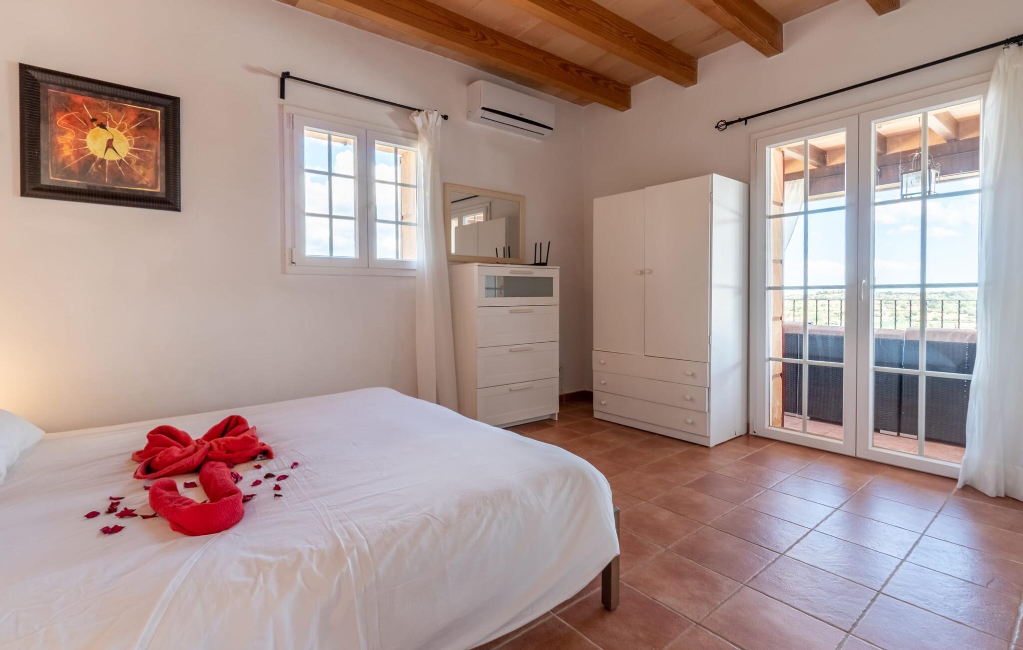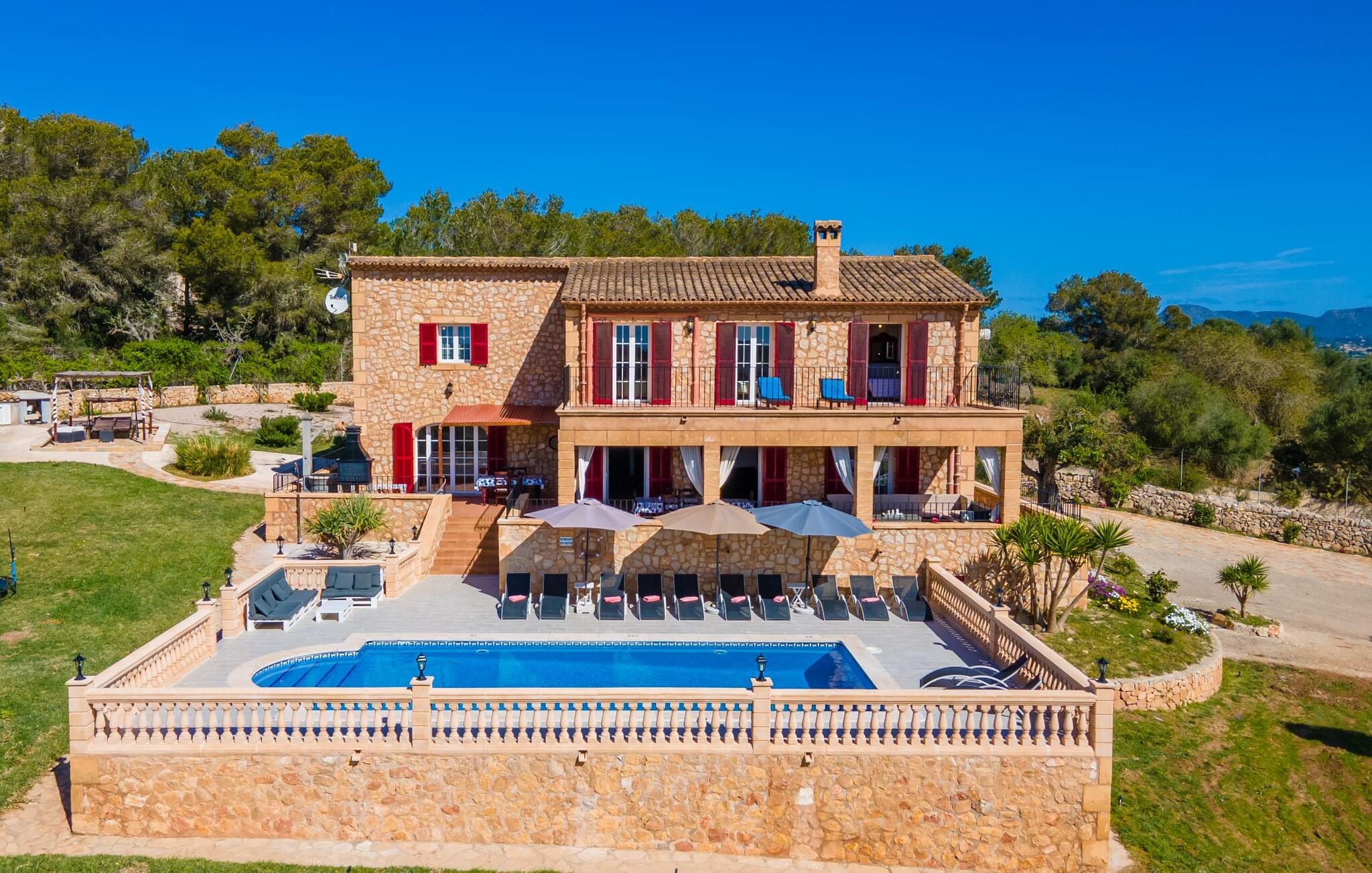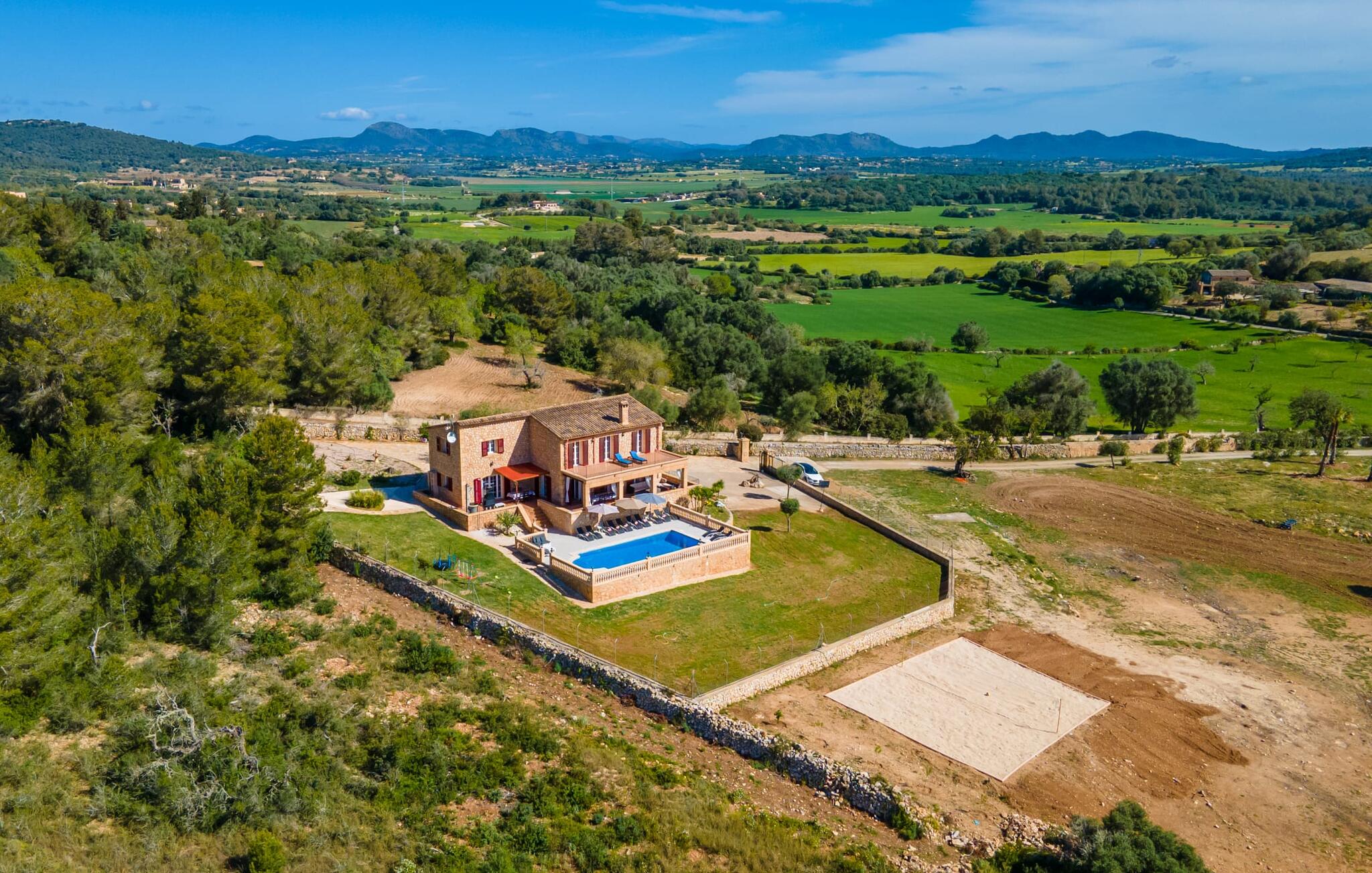 De rustieke en moderne Villa Maria de Mendia ligt midden in een dromerige, natuurlijke omgeving, tussen het centrum van Manacor en het pittoreske havenstadje Portocristo. Je kunt boodschappen doen in Manacor of Portocristo, waar op zondag ook een authentieke boerenmarkt is. De Calas de Mallorca, prachtige natuurlijke stranden, maar ook enkele goed ontwikkelde stadsstranden, liggen langs de oostkust en zijn in 10-15 minuten te bereiken.