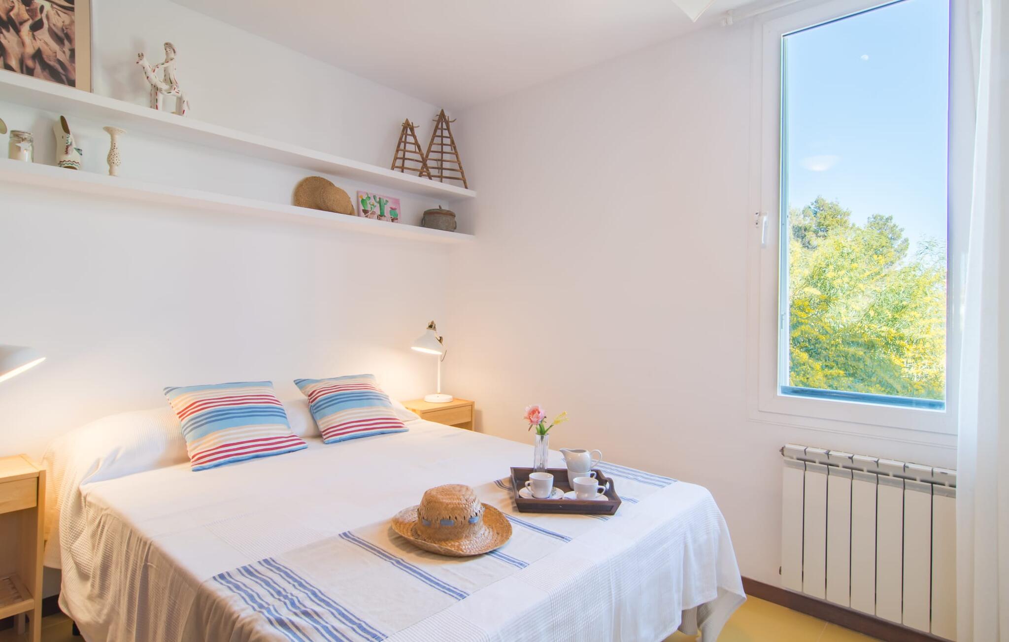 Dit buitengewoon open en vriendelijke verblijf voor maximaal vier volwassenen opent zijn deuren en onthult een schat aan comfort en vrolijke gele kleuren. Het balkon ligt aan de voorkant, zodat je altijd een oogje in het zeil kunt houden terwijl je geniet van je ontbijt, koffie of diner achter de cipressenhaag, zonder je privacy op te hoeven offeren. De zee is heerlijk dichtbij, maar als je liever niet in de golven springt en gewoon een paar rustige baantjes trekt, kun je ook gebruikmaken van het naastgelegen 10 meter lange zwembad en zonneterras - een vrij zeldzame voorziening voor vakantiewoningen.