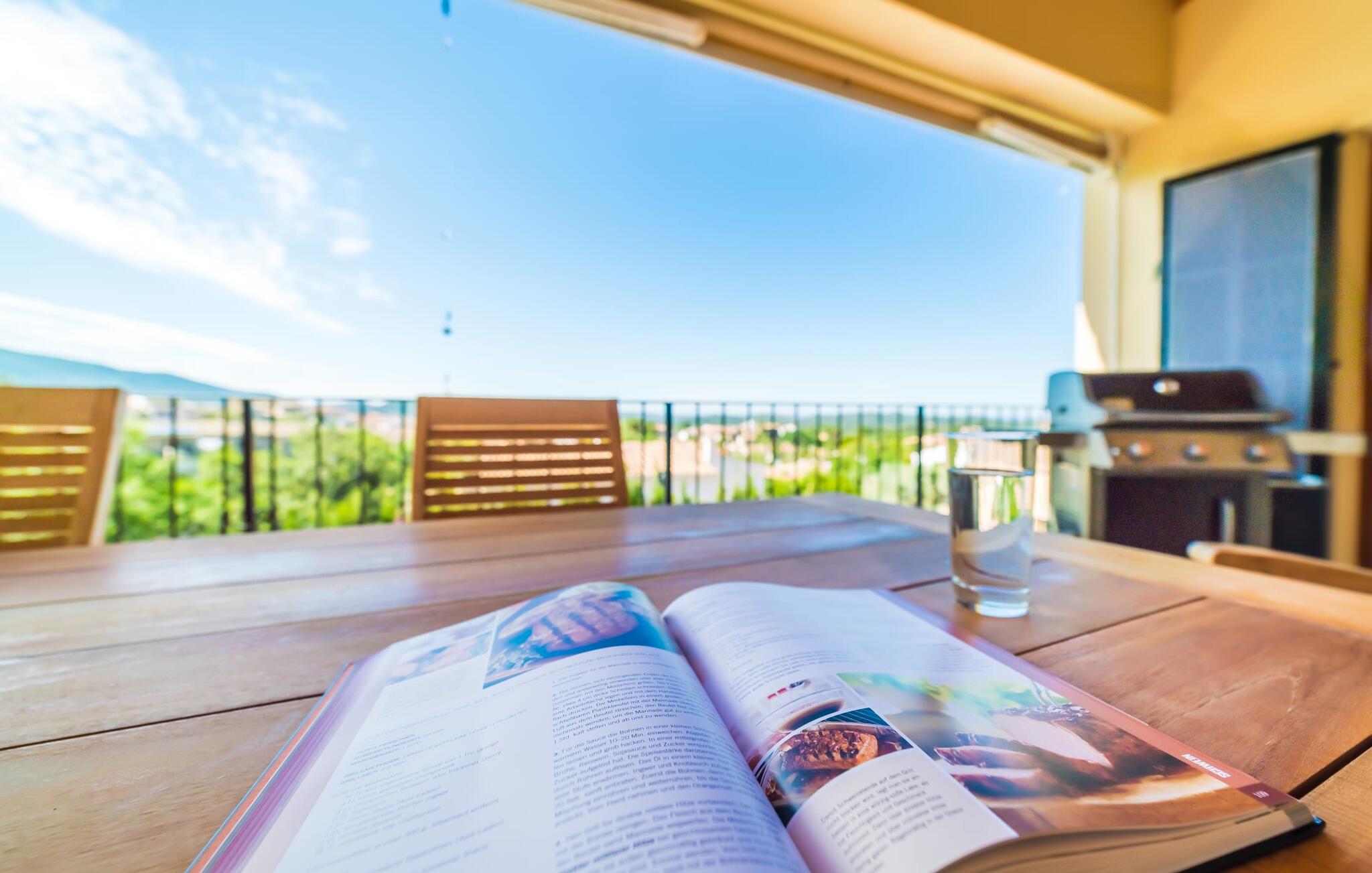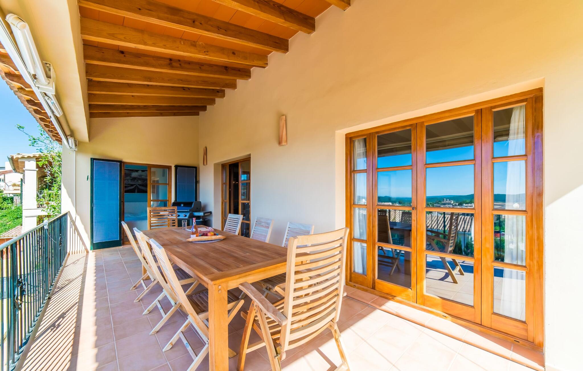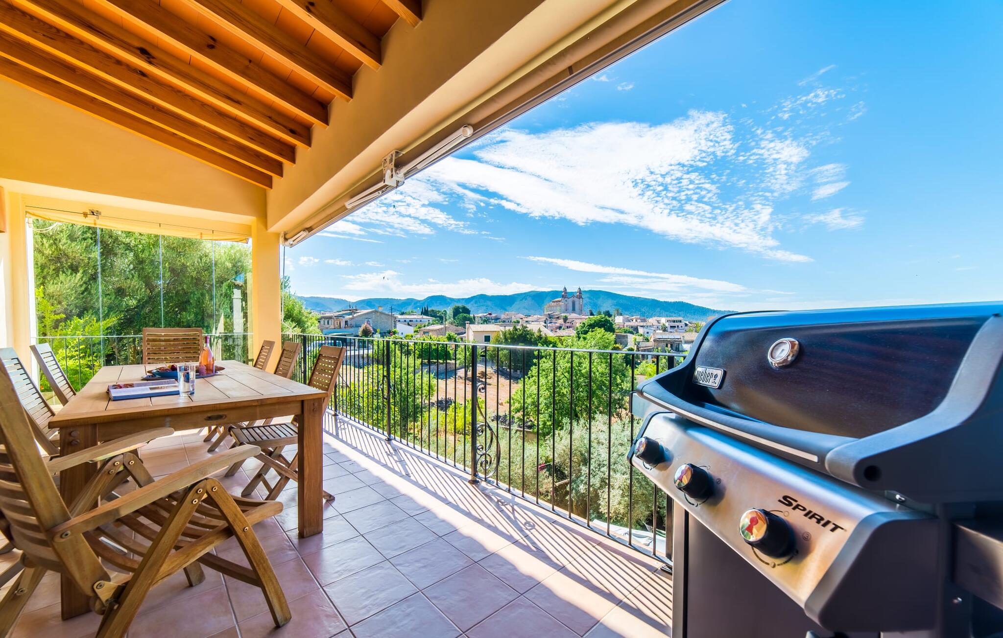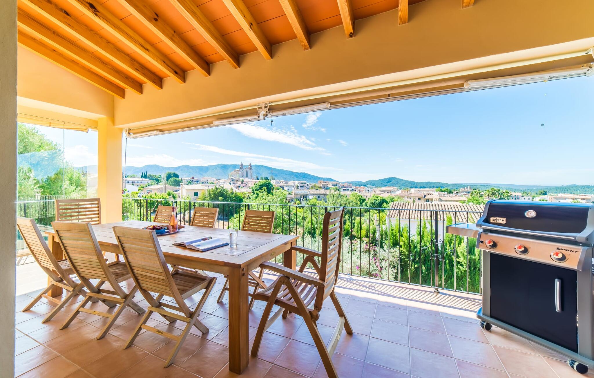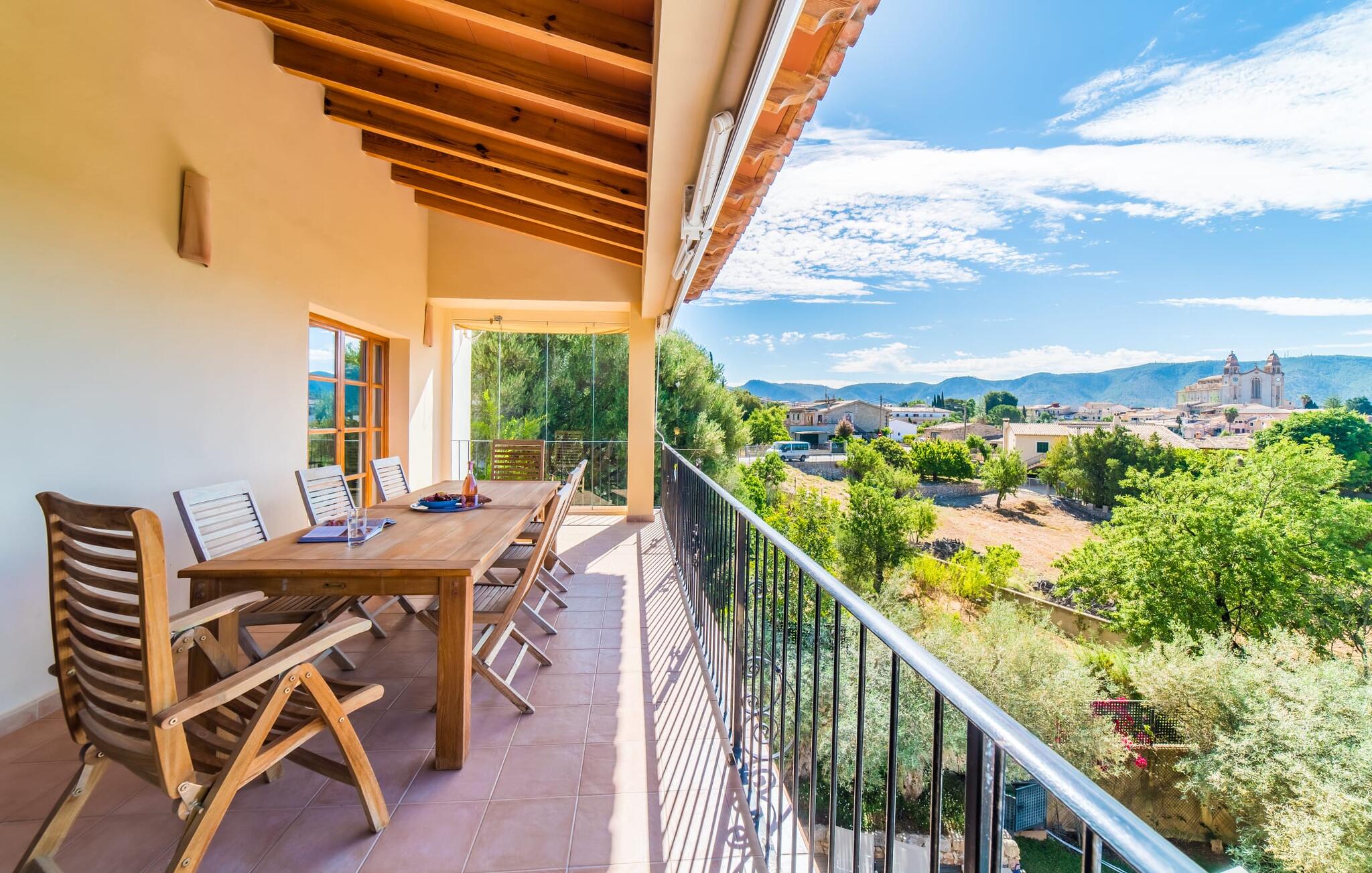 Mama, papa, mogen we hier blijven? De kans is groot dat je kleintjes dat zullen zeggen, want Finca Mofares heeft alles wat een kinderhartje begeert: een klimrek, een schommel en een grote trampoline. Je hoeft deze vakantie niet op zoek naar een speeltuin, maar gaat gewoon de tuin in. Dit zijn de perfecte omstandigheden om vanaf het begin te genieten van alle voordelen van deze accommodatie. Laten we beginnen met het grote terras op de bovenverdieping, vanwaar je een prachtig uitzicht hebt op het centrum van het pittoreske stadje Calvià. Met een glas Mallorcaanse wijn in de hand kun je vanaf hier de omgeving verkennen: Werp je blik over de traditionele okerkleurige huizen naar de twee kleine torens van de Sant Joan kerk, waarachter je het zachte silhouet van de Tramuntata bergketen kunt ontwaren. Welkom op je vakantie! Je zou hier waarschijnlijk eeuwig kunnen blijven, ware het niet dat de charmante pergola met chill-out bank vlak naast het zwembad er zo verleidelijk uitziet. Als je wat tijd voor jezelf wilt, kun je ontspannen in de hangmat die tussen twee knoestige bomen aan het einde van de tuin hangt.