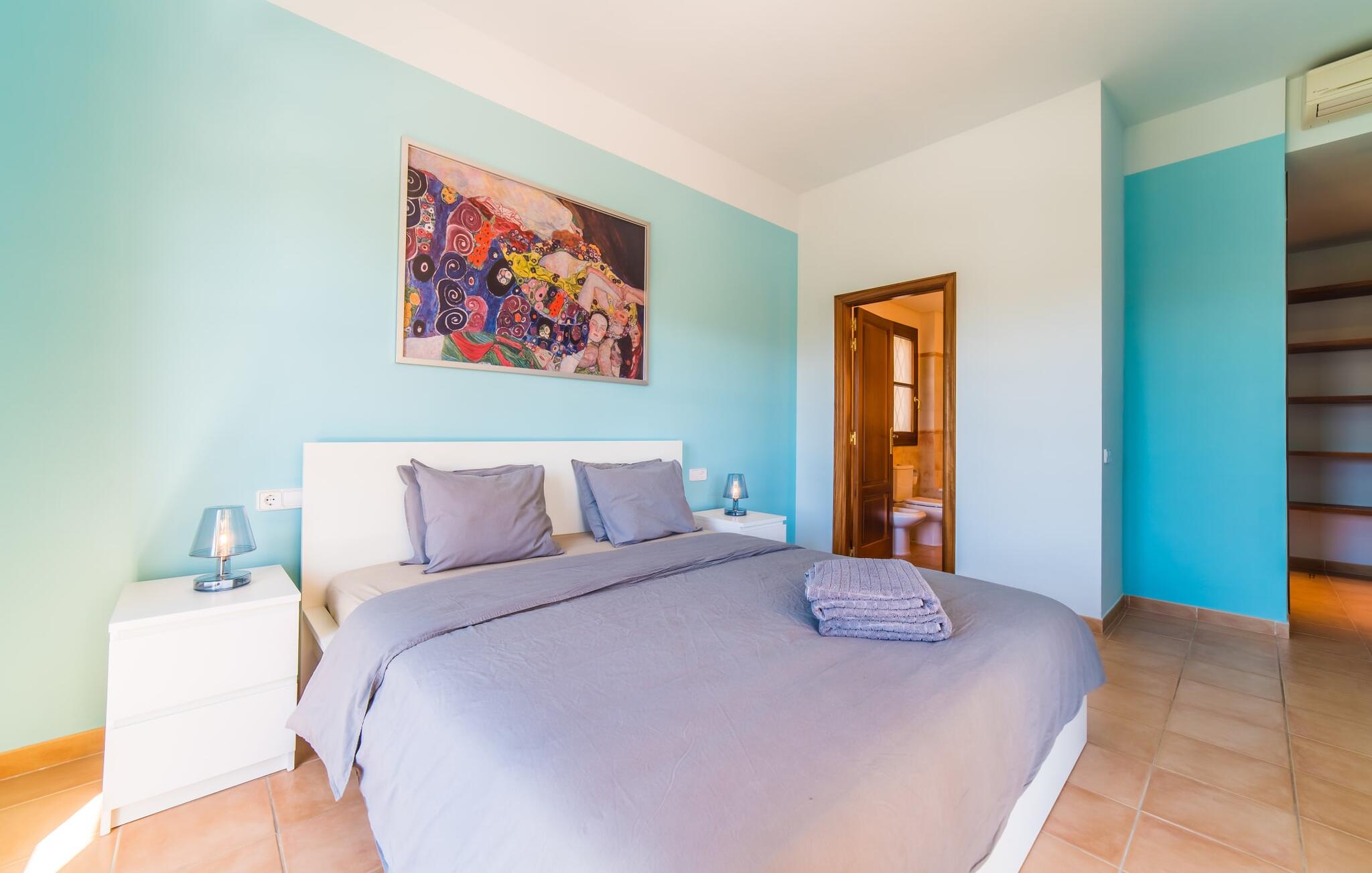Het moderne, gezinsvriendelijke Finca Mofares ligt op slechts 1 km van het centrum van de mooie stad Calvià. Daar vind je supermarkten, een geldautomaat, een wekelijkse markt en restaurants, alles wat je nodig hebt voor je dagelijkse behoeften. Populaire zandstranden zoals Son Caliu en Cala Blanca liggen op ongeveer 7,4 kilometer rijden.