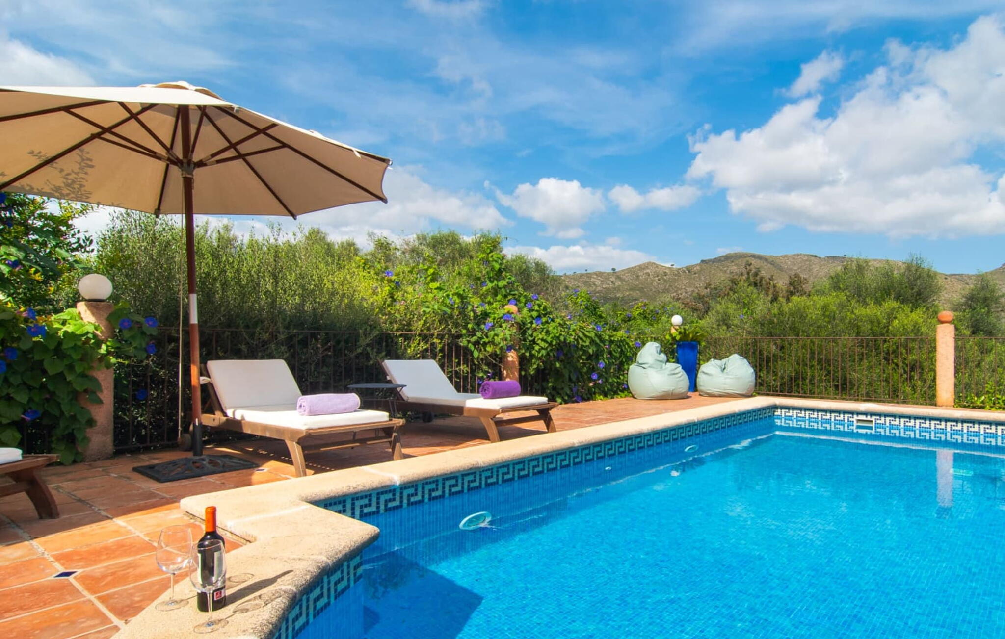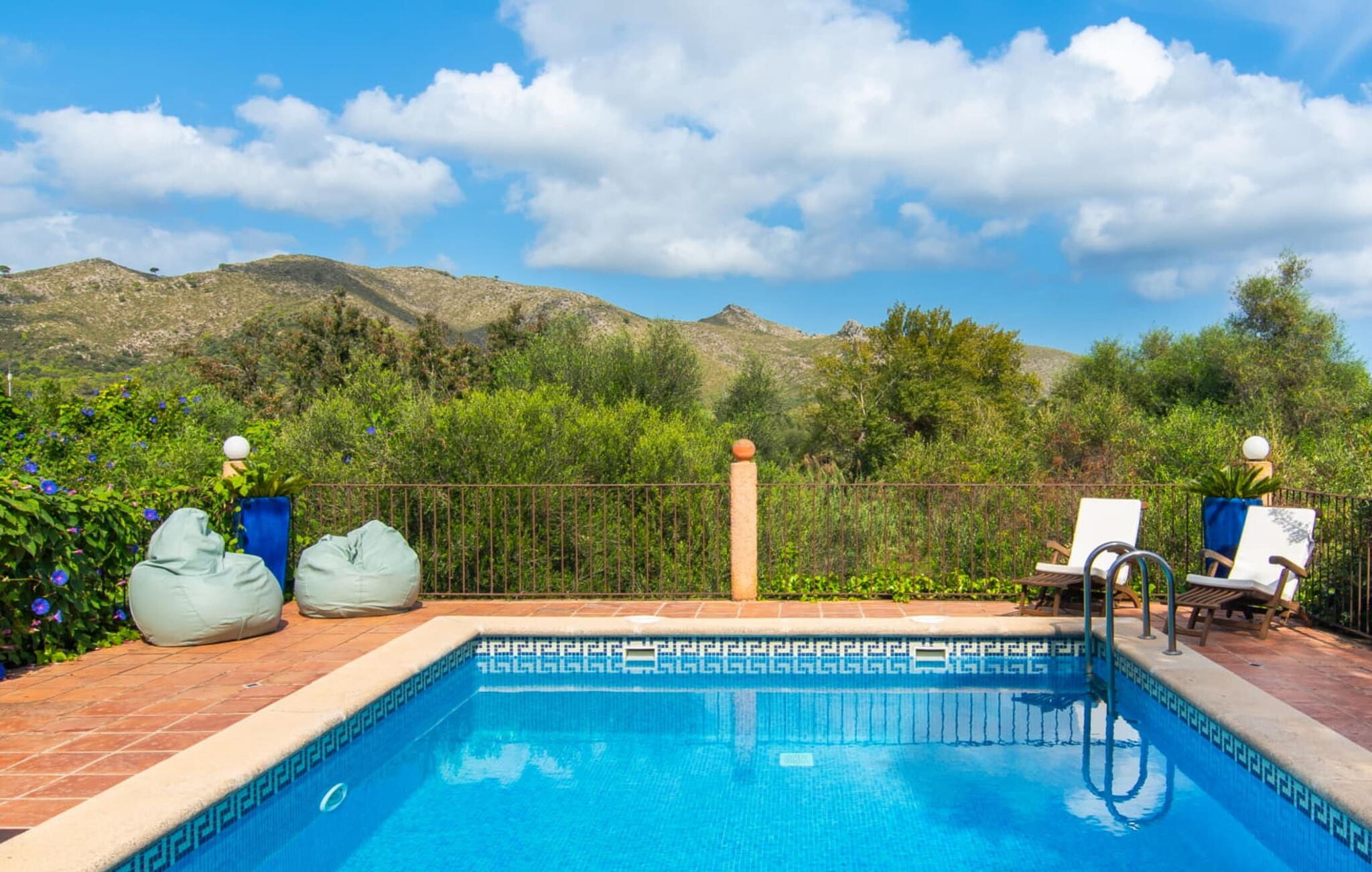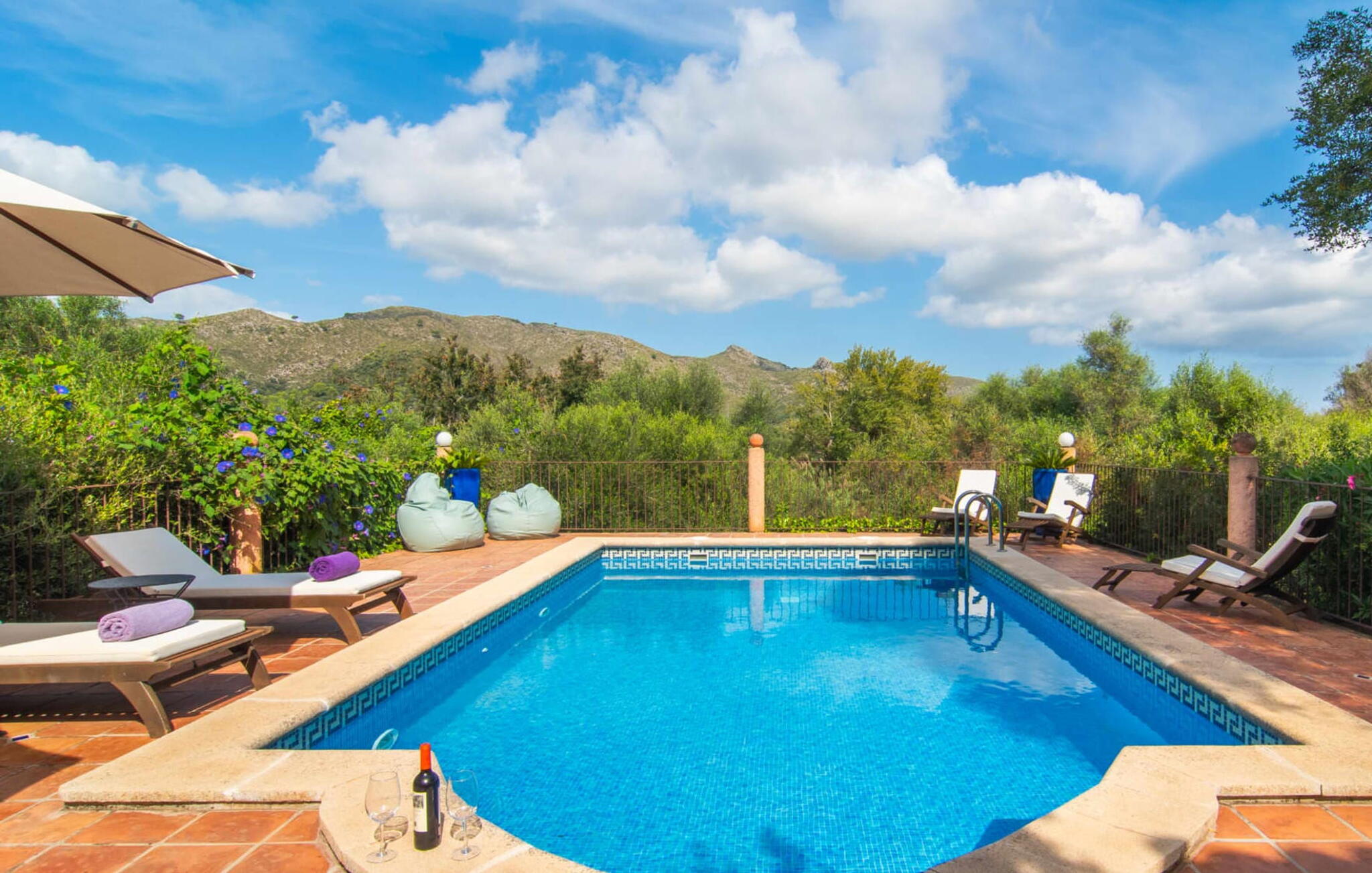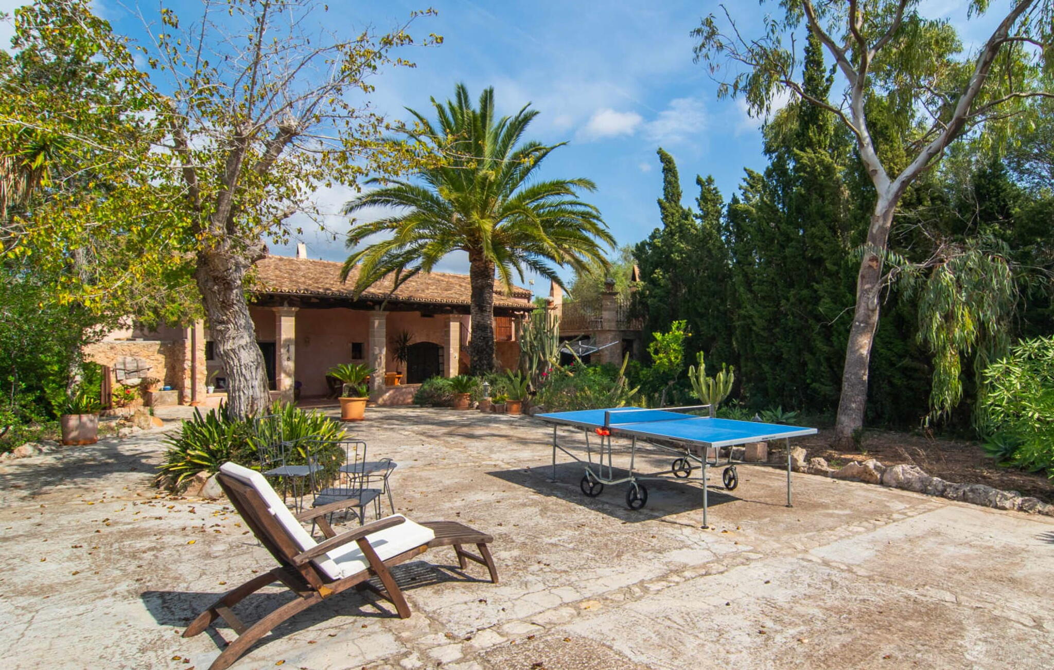 Dankzij de verhoogde ligging biedt het zwembadgedeelte een prachtig uitzicht op de glooiende heuvels van de Serra de Levant. Geniet van gezelligheid en heerlijke barbecues en kies je eigen plekje om te zonnebaden, lezen en ontspannen in de zon of schaduw. Er is ook een tafeltennistafel en een box met spelletjes voor kinderen.
