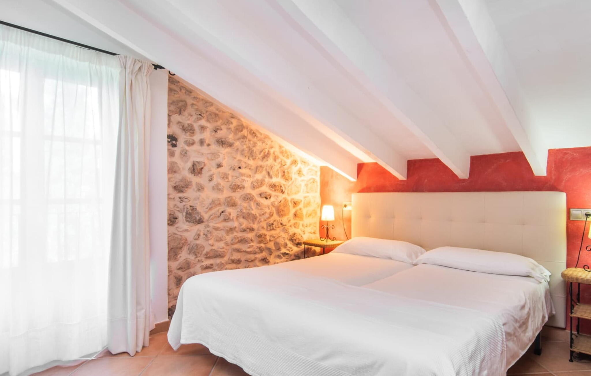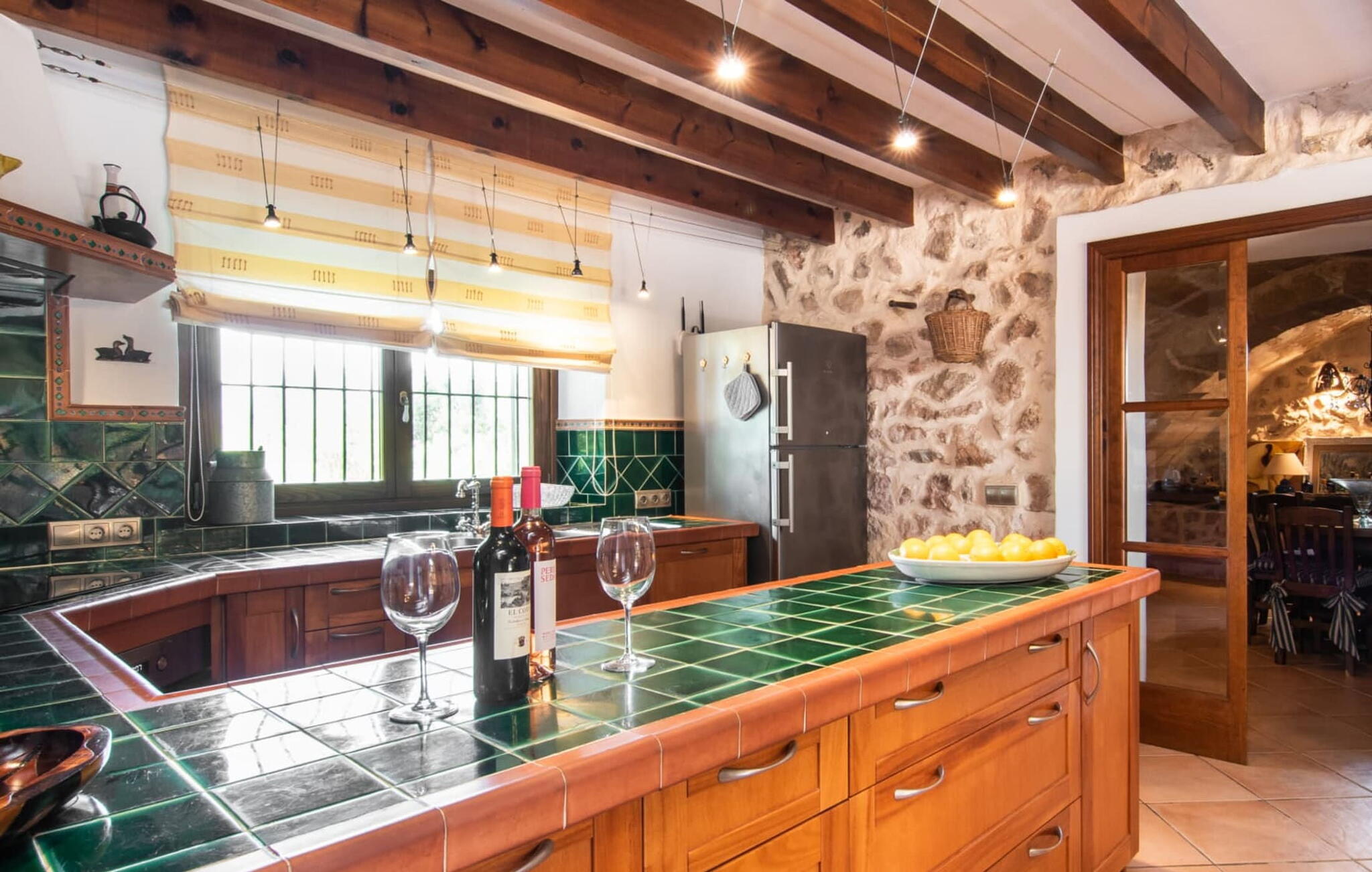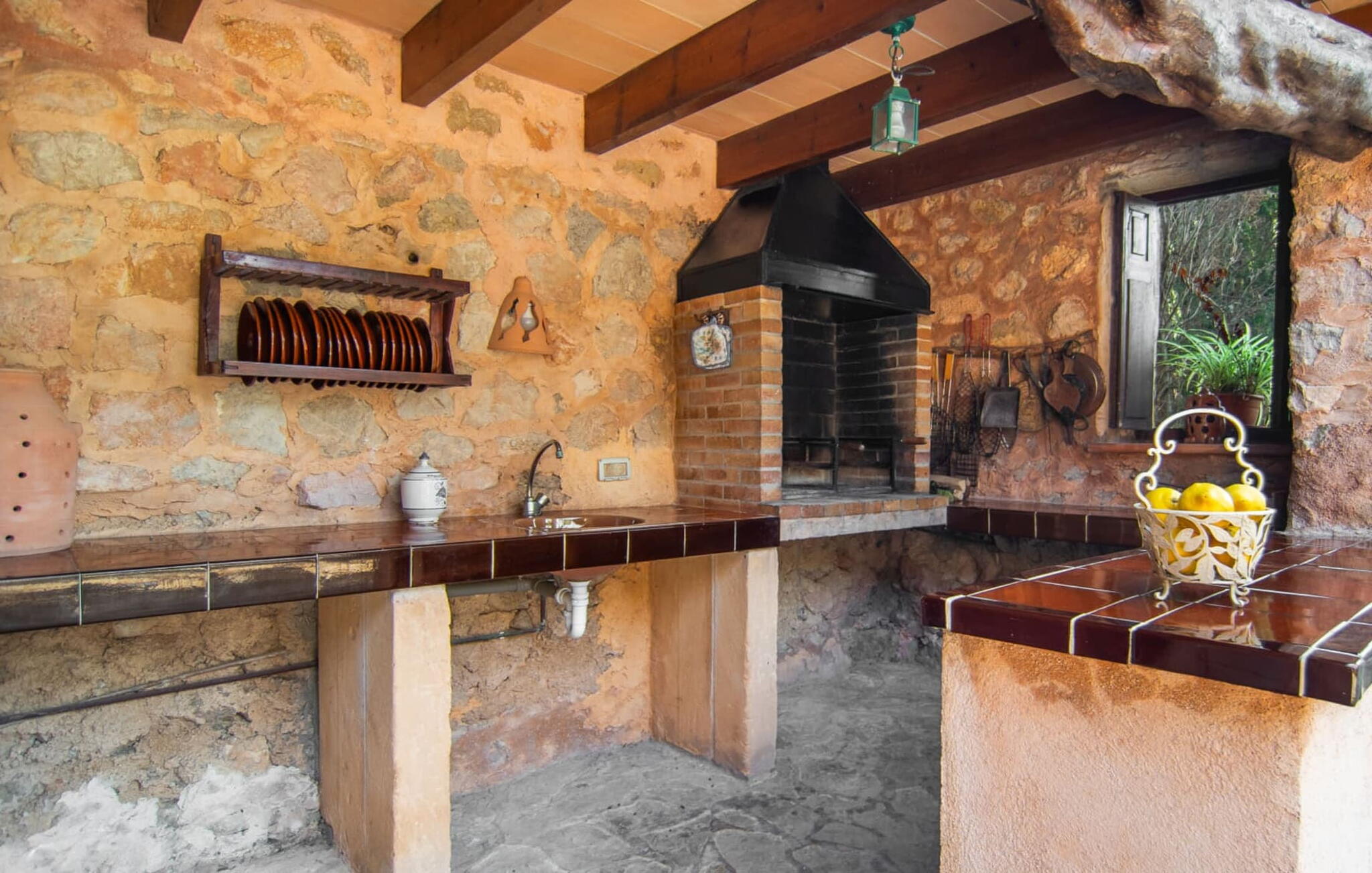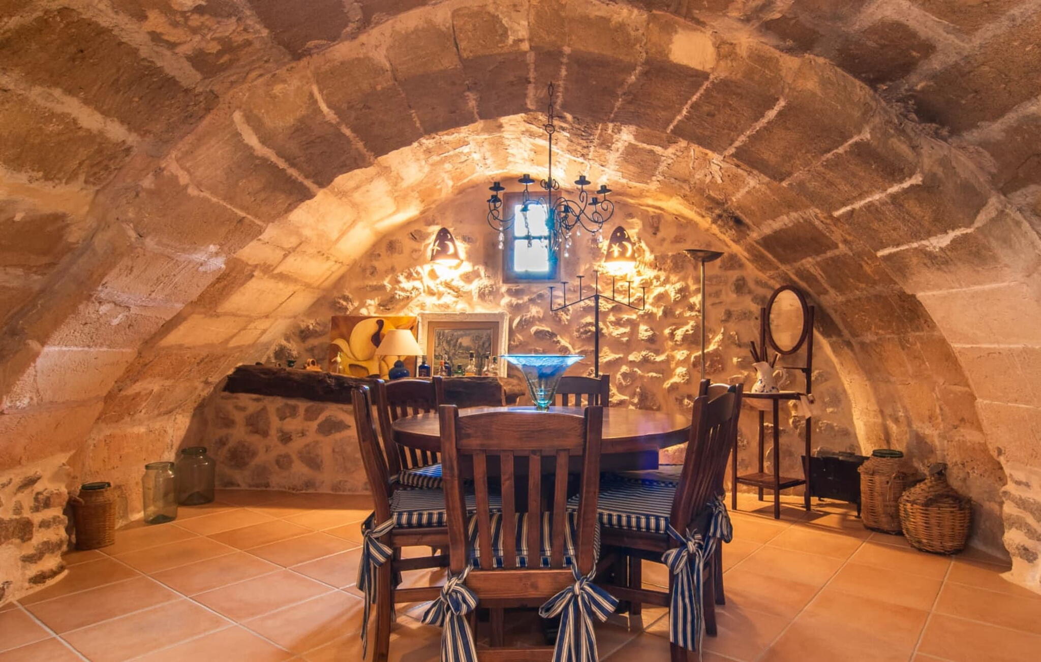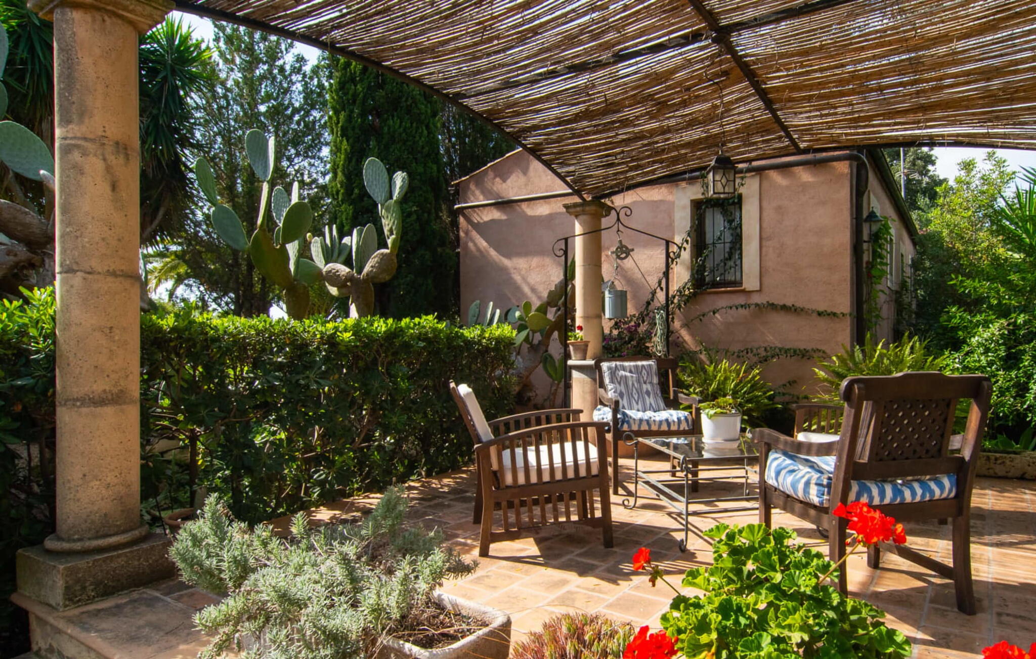 De 18e-eeuwse boerderij Na Mayans is zorgvuldig gerestaureerd. Het wordt omringd door een prachtige, afgelegen tuin en 50.000 m² grond in het oosten van Mallorca. De weelderige vegetatie van palmbomen en bougainvilles biedt talloze gezellige plekjes en terrassen met veel privacy.