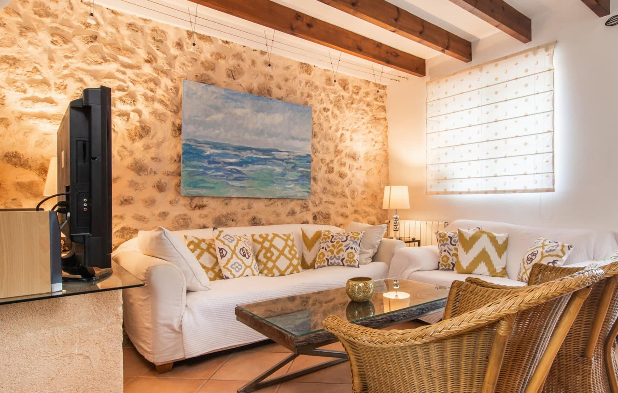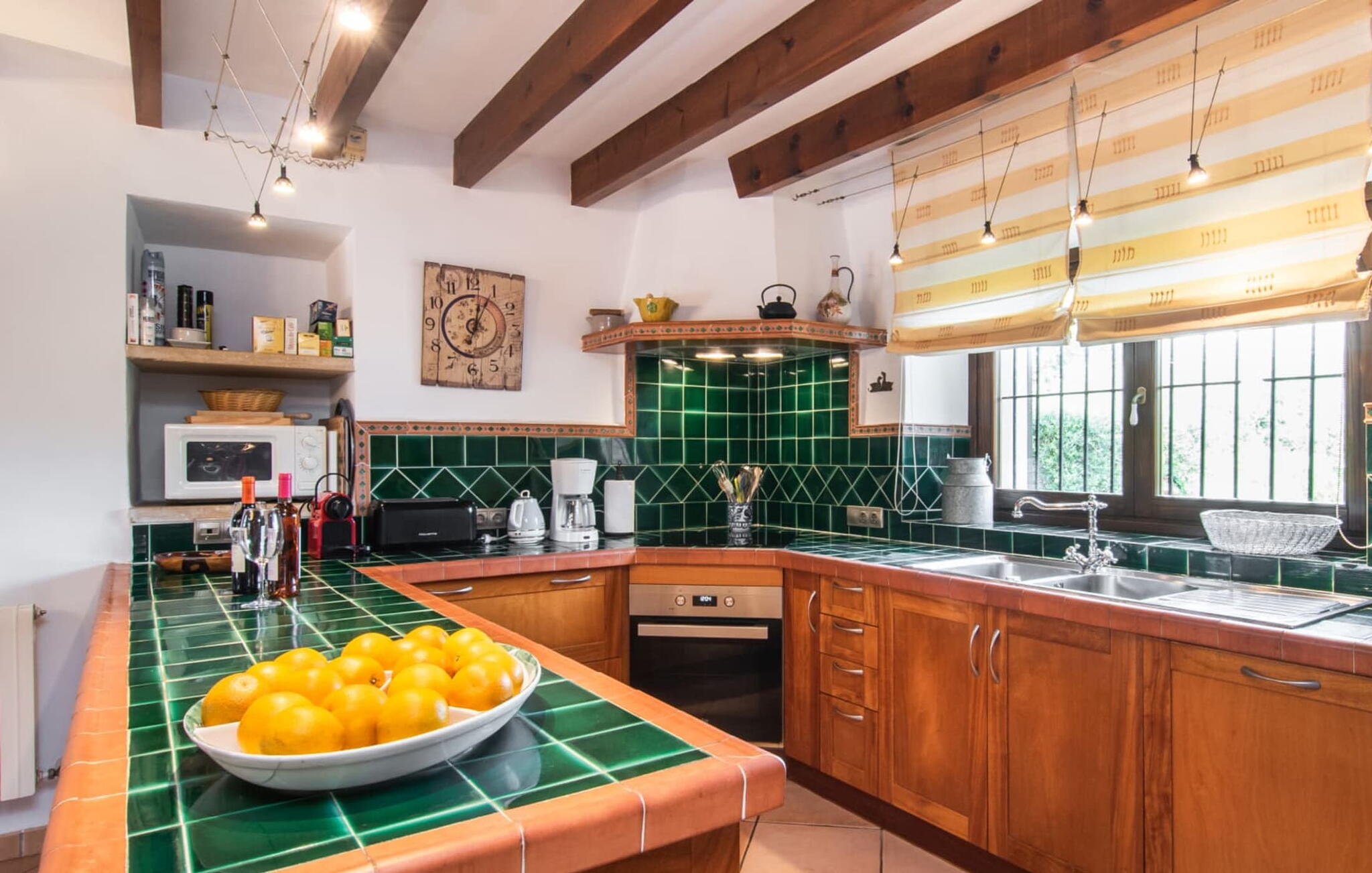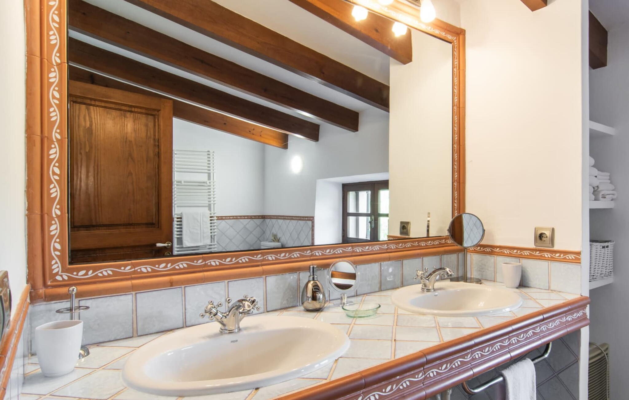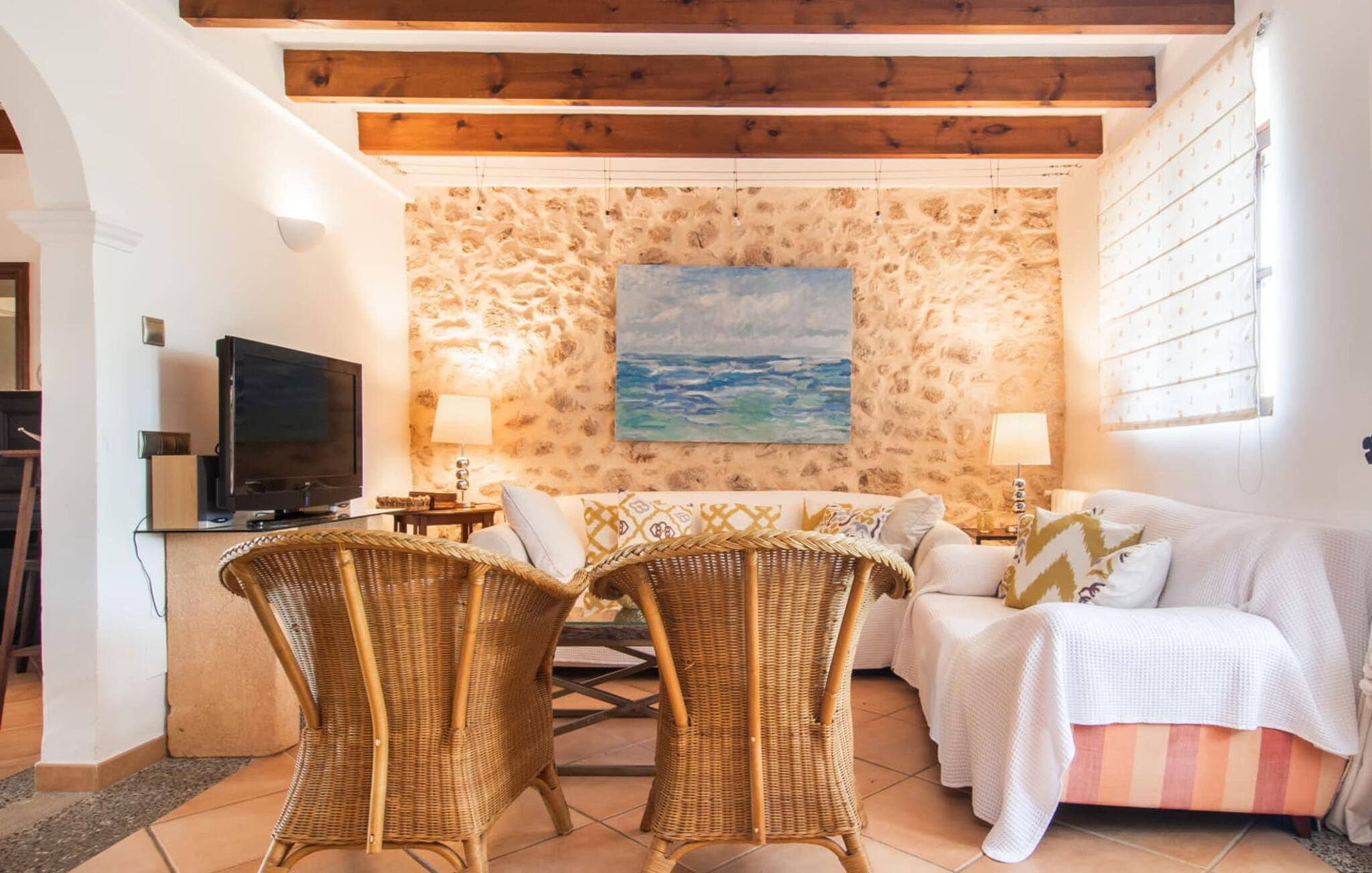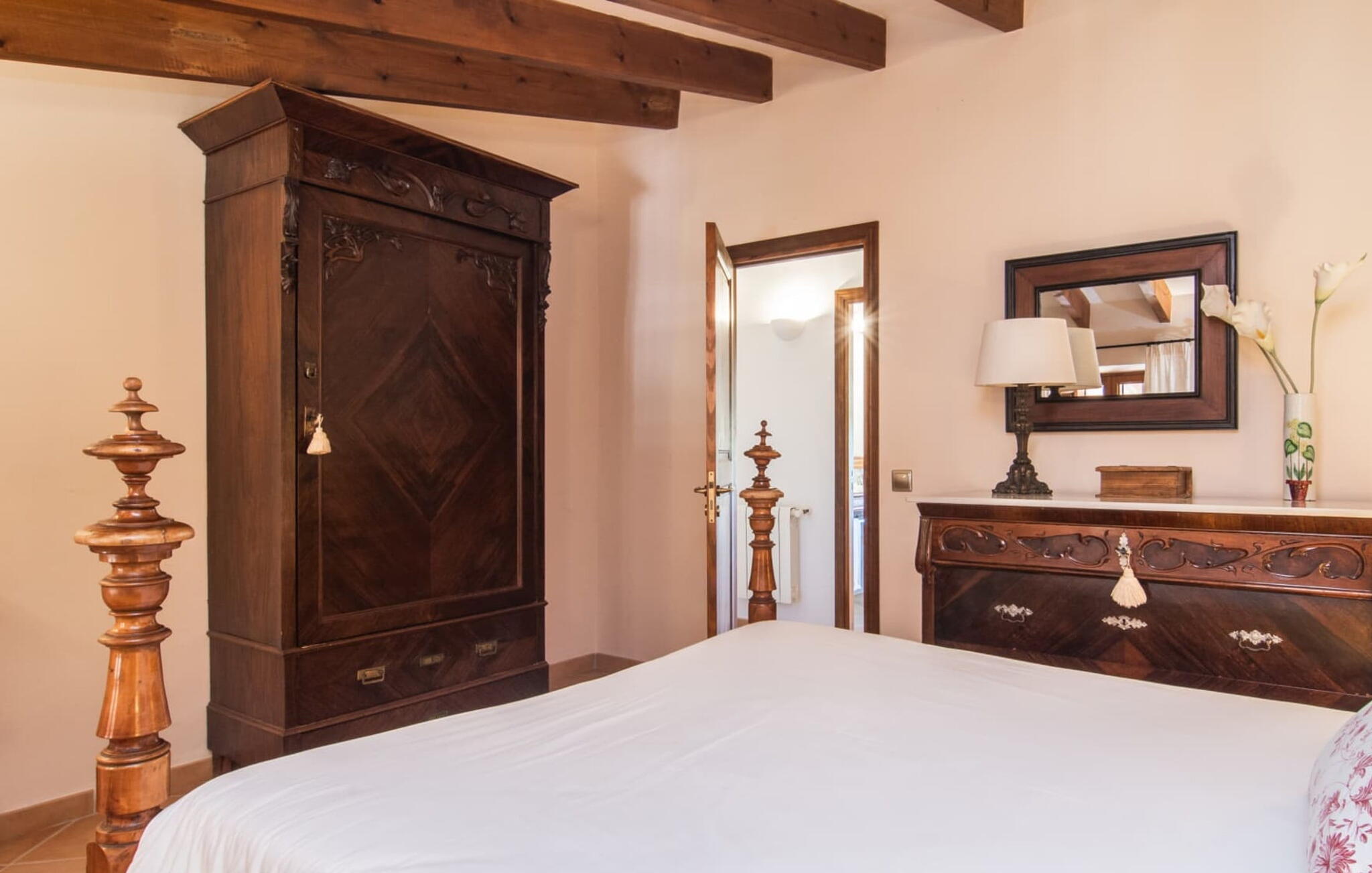 De 18e-eeuwse boerderij Na Mayans is zorgvuldig gerestaureerd. Het wordt omringd door een prachtige, afgelegen tuin en 50.000 m² grond in het oosten van Mallorca. De weelderige vegetatie van palmbomen en bougainvilles biedt talloze gezellige plekjes en terrassen met veel privacy.