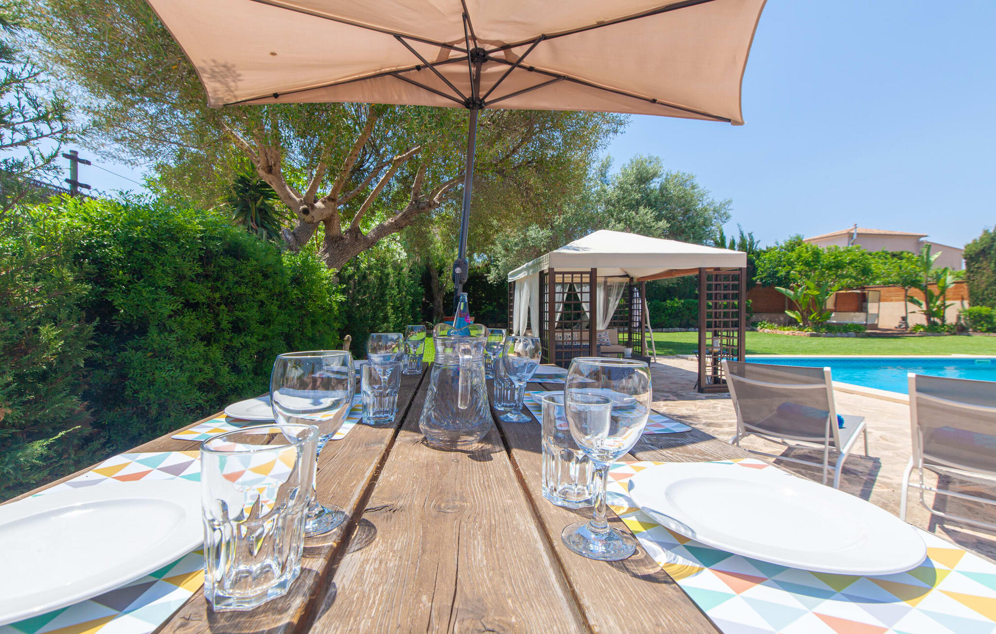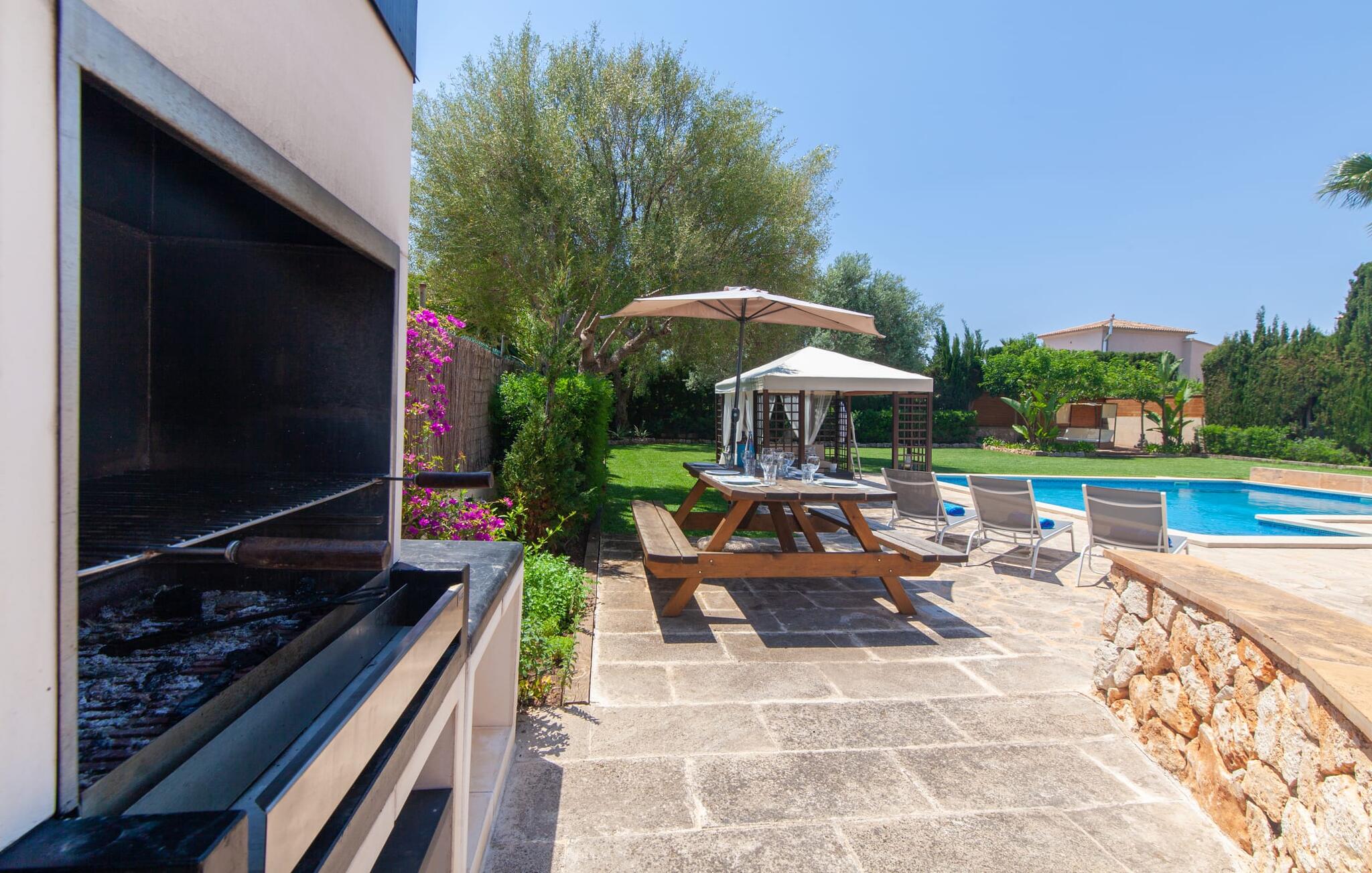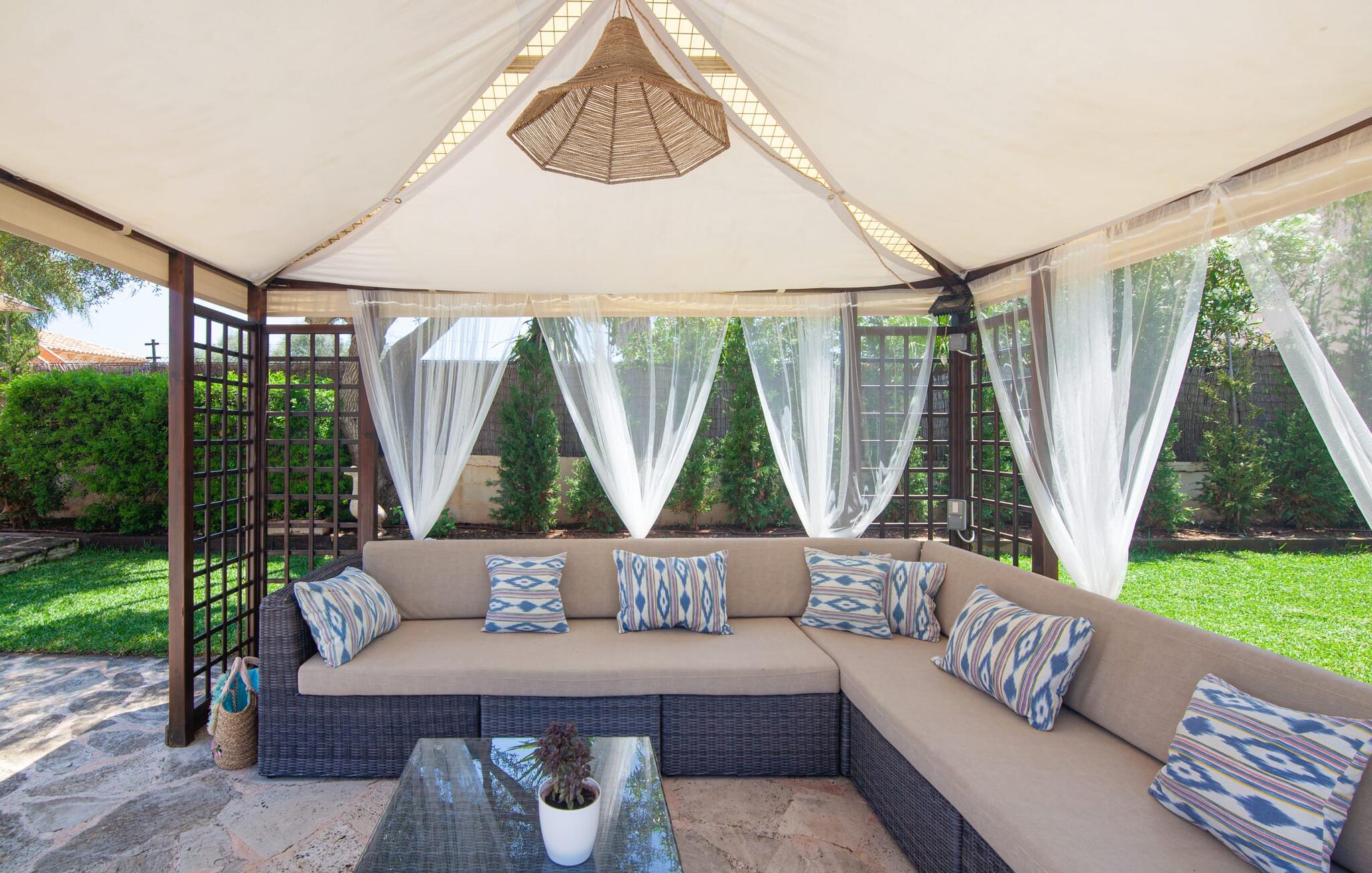 In Villa Rico verliest u geen tijd - vanaf het eerste moment van uw verblijf geniet u van een perfecte sfeer die voor zich spreekt: ontelbare bomen omringen het domein en zorgen voor privacy en veiligheid door u te beschermen tegen nieuwsgierige blikken. Je kunt genieten van de buitenruimte, want er is niet alleen normaal tuinmeubilair, in dit geval gemaakt van fijn hout, maar ook een buitenbank en een bed, zodat je de nacht kunt doorbrengen onder de sterren in milde temperaturen of een paar baantjes kunt trekken in het maanlicht in het comfortabele zwembad, dat toegankelijk is via een Griekse trap. Het gedeeltelijk overdekte terras bij het huis zorgt ervoor dat je huid een korte pauze van de zon krijgt voordat je een van de ligstoelen terug op het weelderige groene gazon schuift of jezelf trakteert op een plekje bij de steengroeve bij het zwembad Relax op stenen platen om je te wijden aan een vakantieroman terwijl je langzaam een eetlust opbouwt, gevoed door de aangename, aromatische zoutlucht. Dat komt goed uit, want deze villa heeft een zeer moderne, geïnstalleerde barbecue waar je alle ruimte hebt om te marineren en je lekkernijen te bereiden. Het iets verhoogde terras met veranda en zithoek, dat je via een paar treden kunt bereiken, wordt omringd door indrukwekkende bloemen; de verscheidenheid aan planten is hier heel divers en grote palmbomen geven je ook het gevoel dat je in een klein, gezellig park bent.