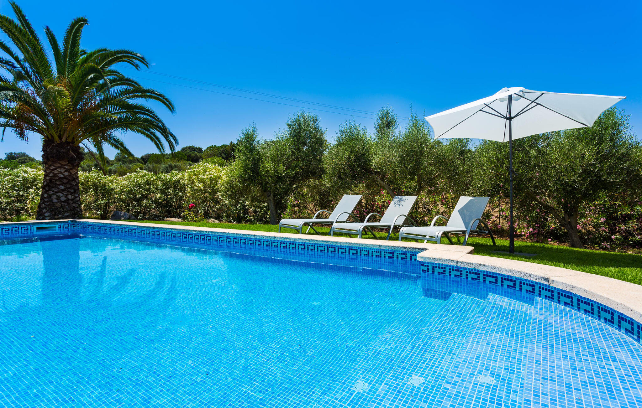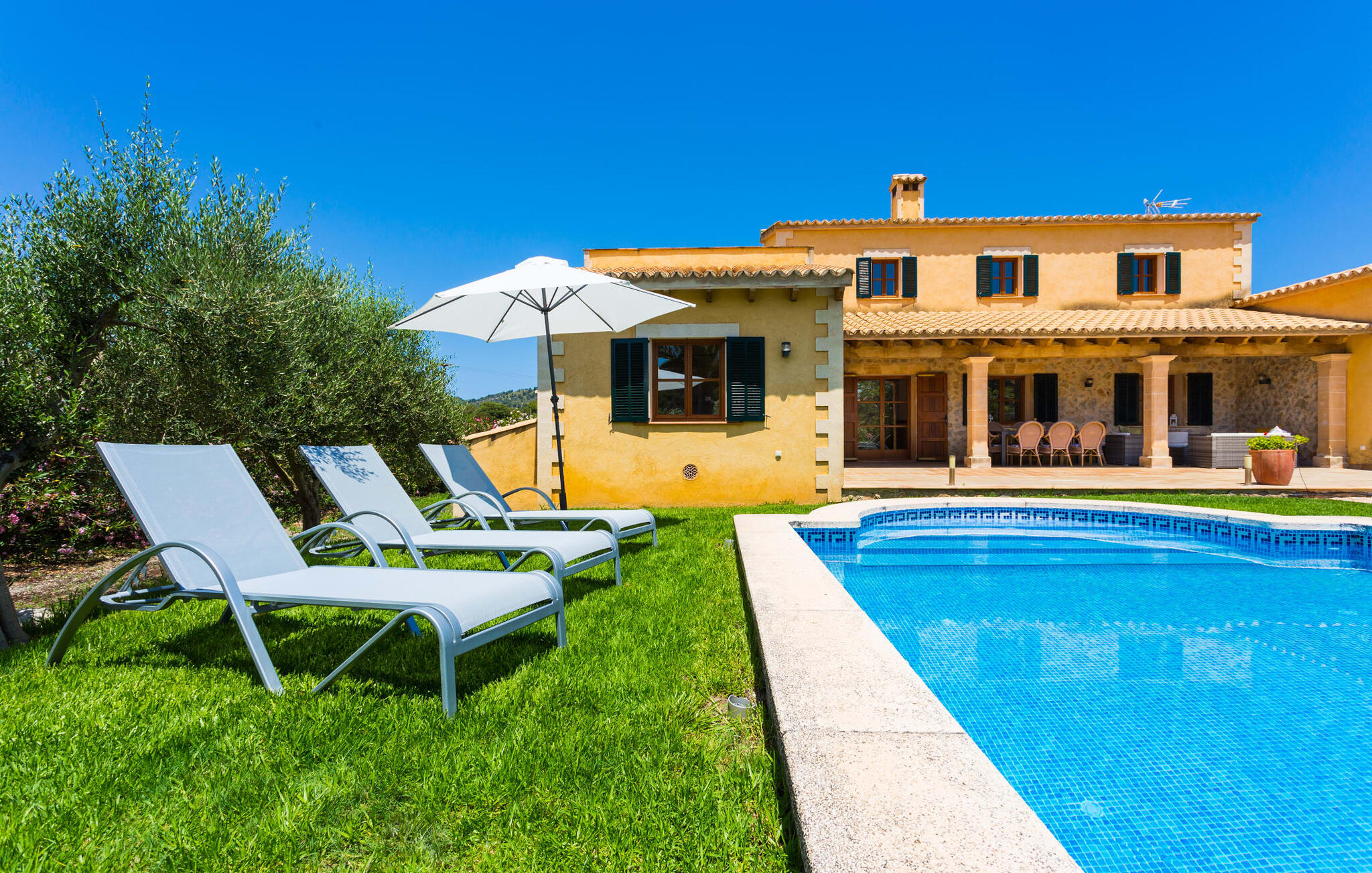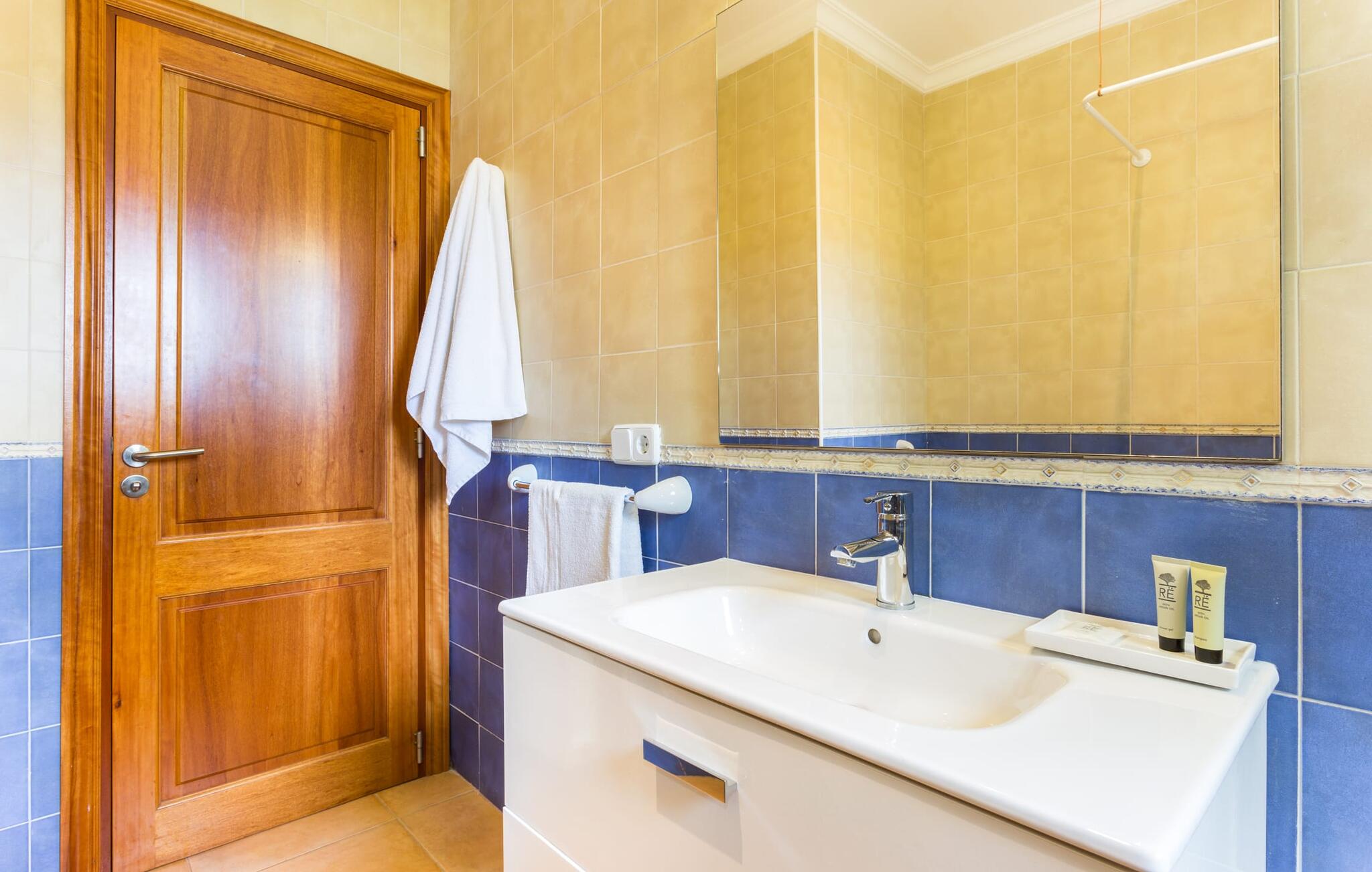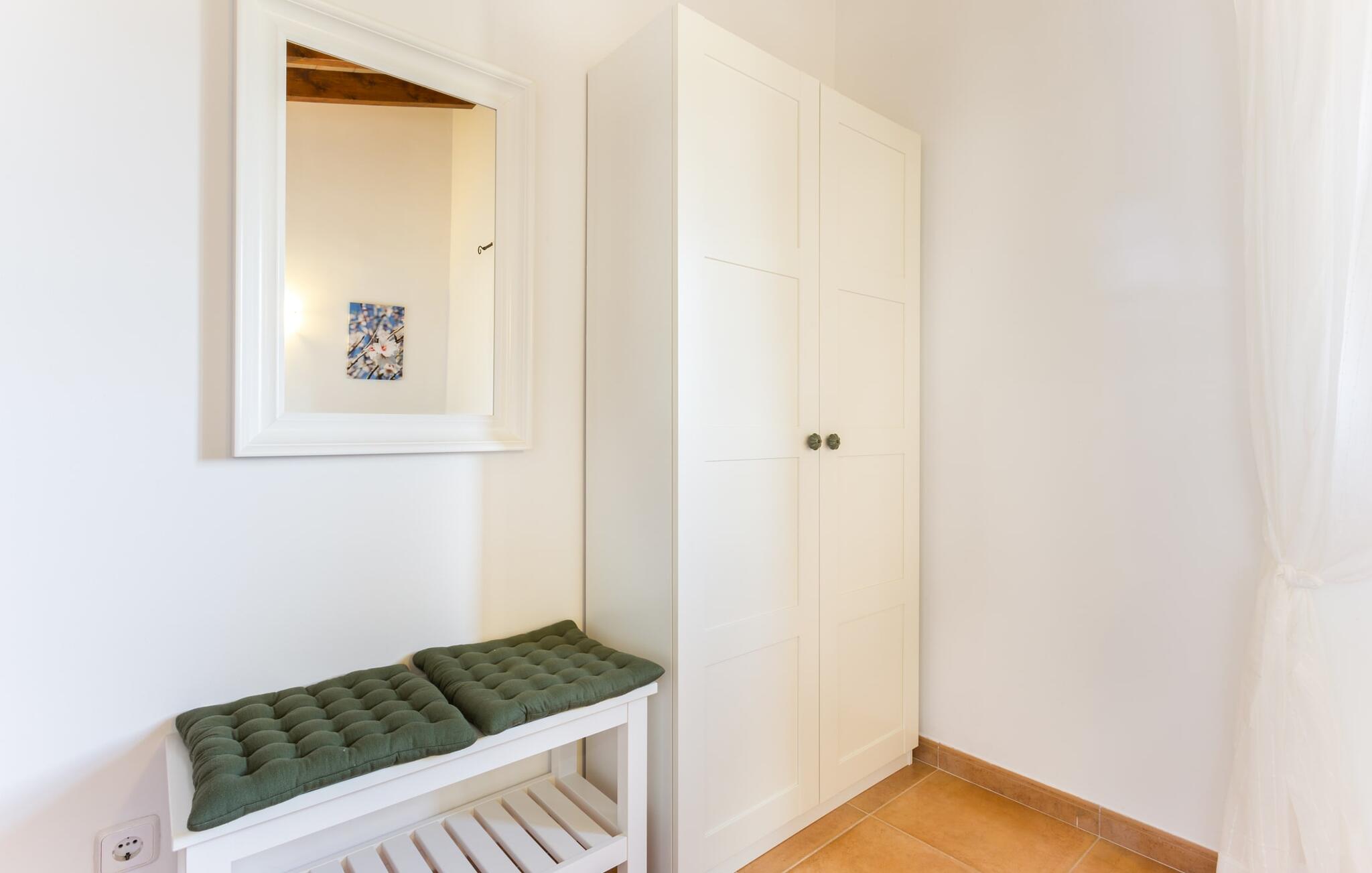Binnen beschikt de ruime villa over voorzieningen van hoge kwaliteit. Lichte kamers met houten plafonds en prachtige vloertegels creëren een vrolijke sfeer. De grote woonkamer heeft een open haard en een gezellige zithoek. De volledig uitgeruste keuken heeft een eettafel voor maximaal tien personen en een bijkeuken met wasmachine. Vier slaapkamers met daglicht, gecombineerd met vier badkamers en centrale verwarming zorgen voor een ontspannen verblijf het hele jaar door.