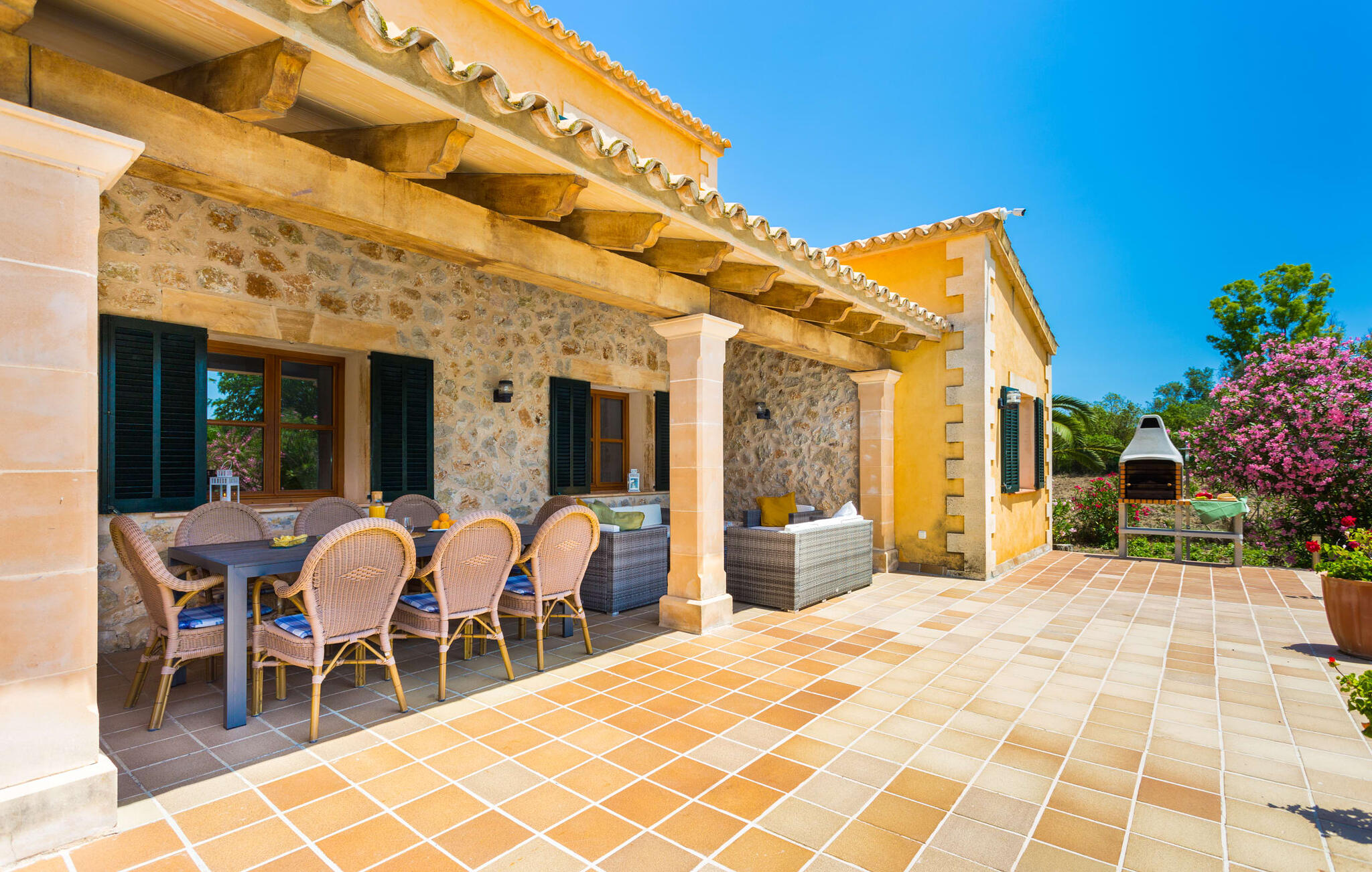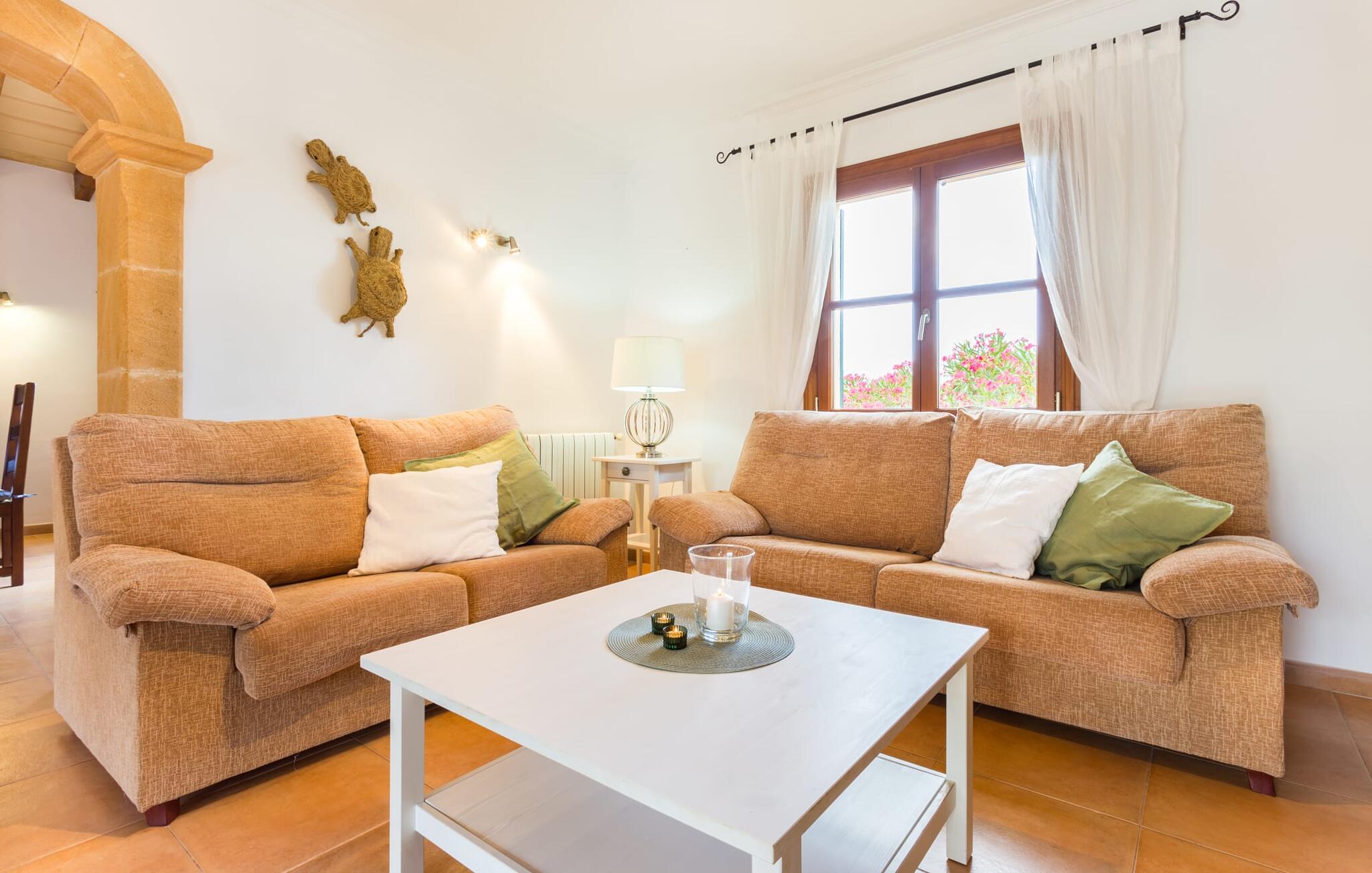"Sa Fonteta is een grote stenen villa gelegen op 3 kilometer ten westen van Artà. In dit pittoreske stadje vind je verschillende kleine supermarkten en een leuke voetgangerszone met winkelfaciliteiten voor de dagelijkse boodschappen. Elke dinsdag is er een wekelijkse markt in het centrum van Artà. Het prachtige natuurlijke zandstrand van Cala Torta is met de auto in ongeveer 10 minuten te bereiken. Er zijn vier golfbanen in de buurt van de villa, waarvan sommige op slechts 5 minuten rijden met de auto.