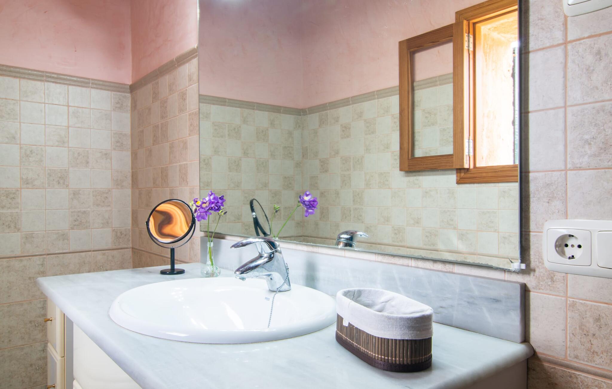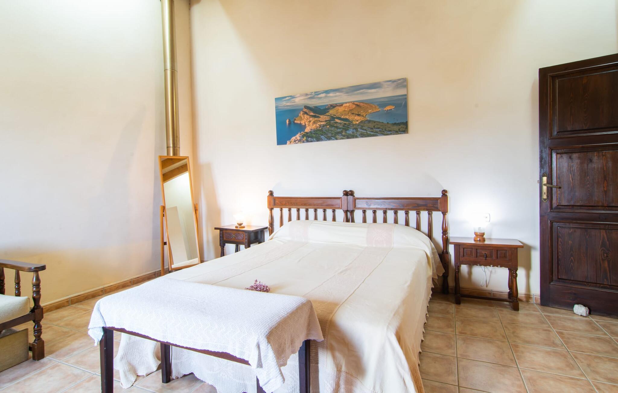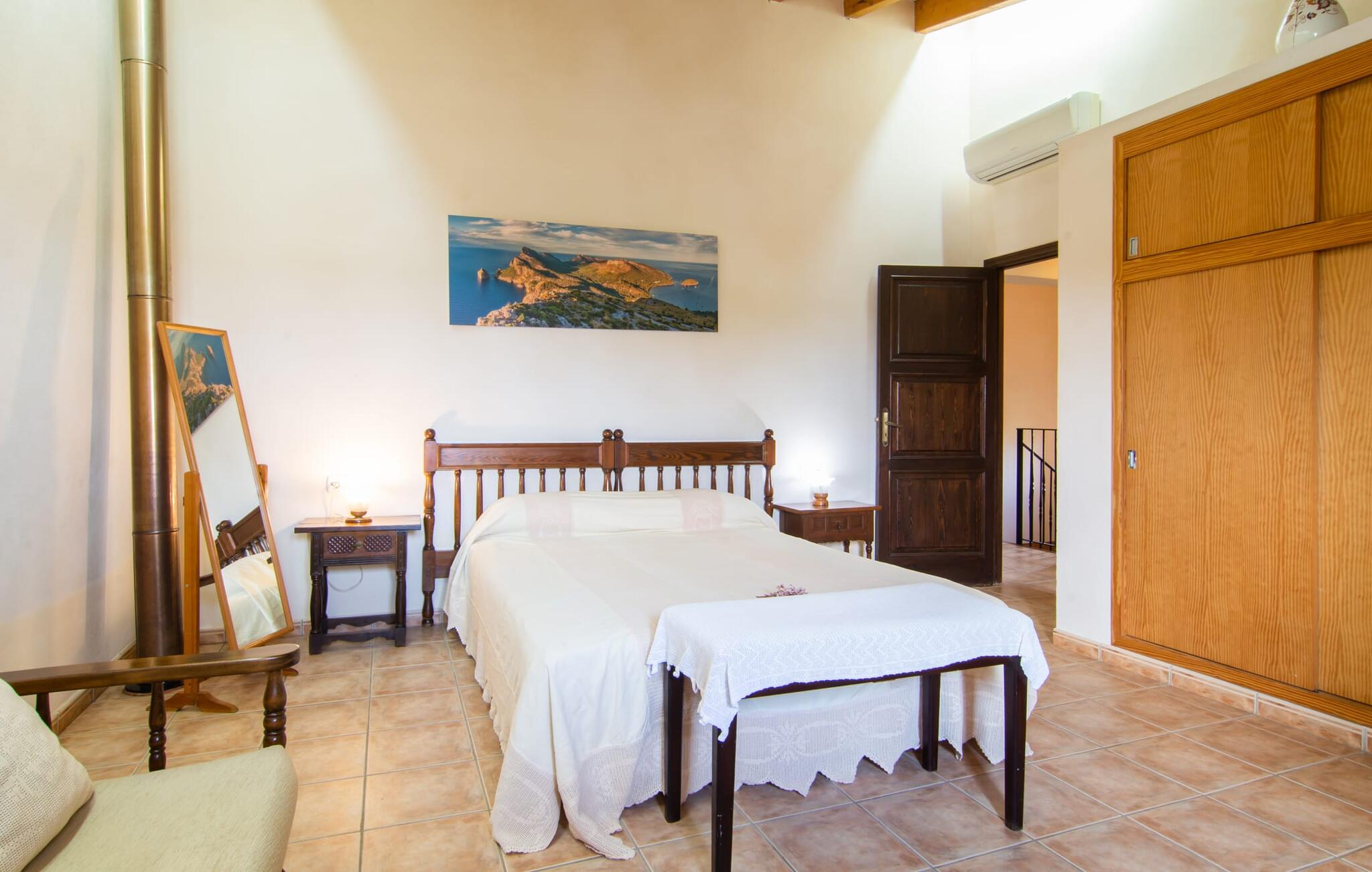 Op iets meer dan 2 km van het kleine dorpje Campanet aan de voet van de Serra de Tramuntana, biedt het schilderachtige en charmante Finca Sa Mata Marina een ontspannen vakantie op Mallorca voor maximaal zes gasten. Afhankelijk van de wind kan de nabijgelegen weg, die je perfect verbindt in alle richtingen, hoorbaar zijn. Als je Campanet eenmaal hebt ontdekt en daar de wekelijkse markt hebt bezocht, rijd dan naar Sa Pobla (10 minuten) en slenter door de oude stad met zijn cafés, restaurants en winkels. De dichtstbijzijnde stranden, zoals de lange baai van Alcúdia, liggen op ongeveer 16 kilometer afstand.