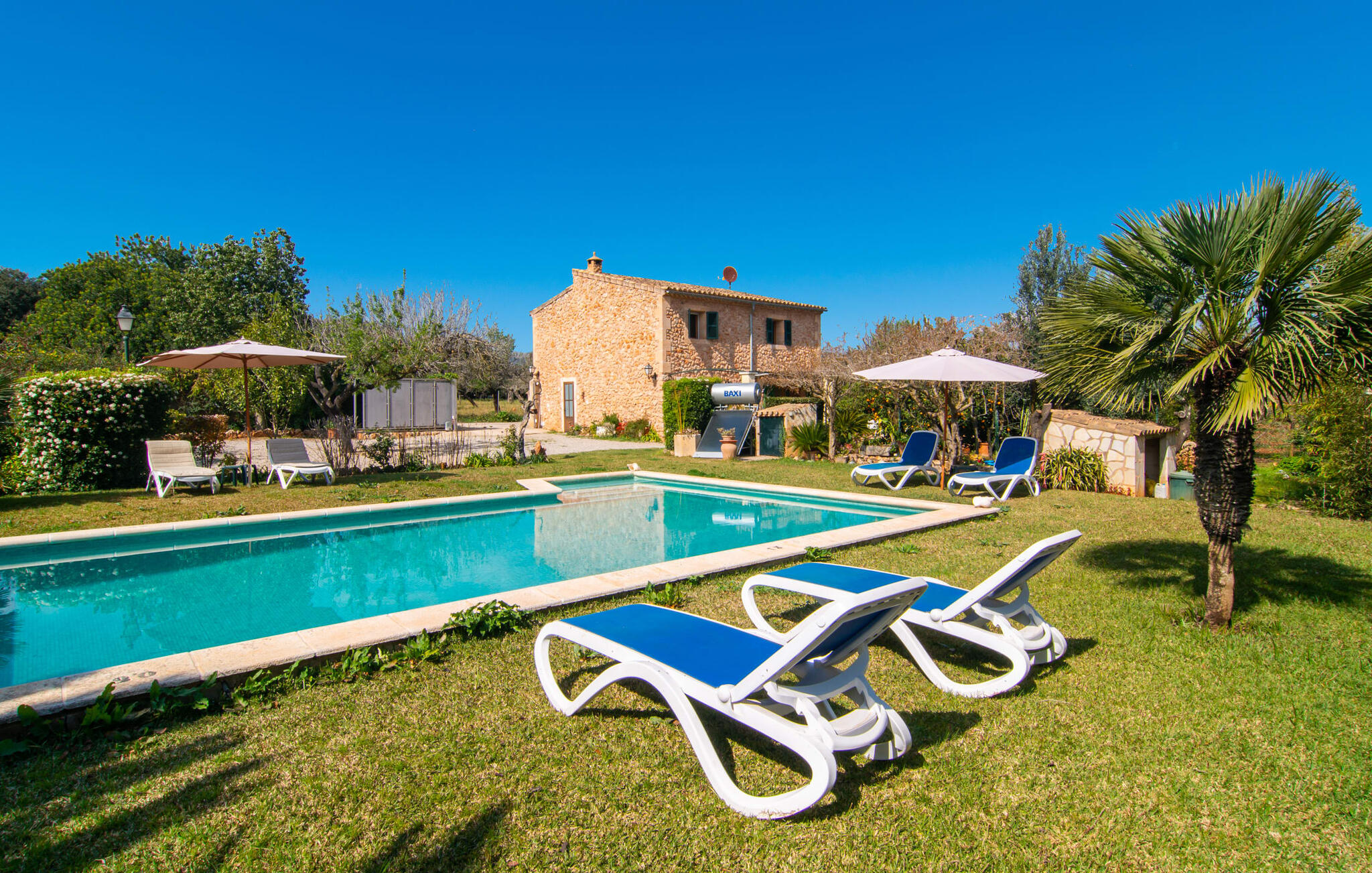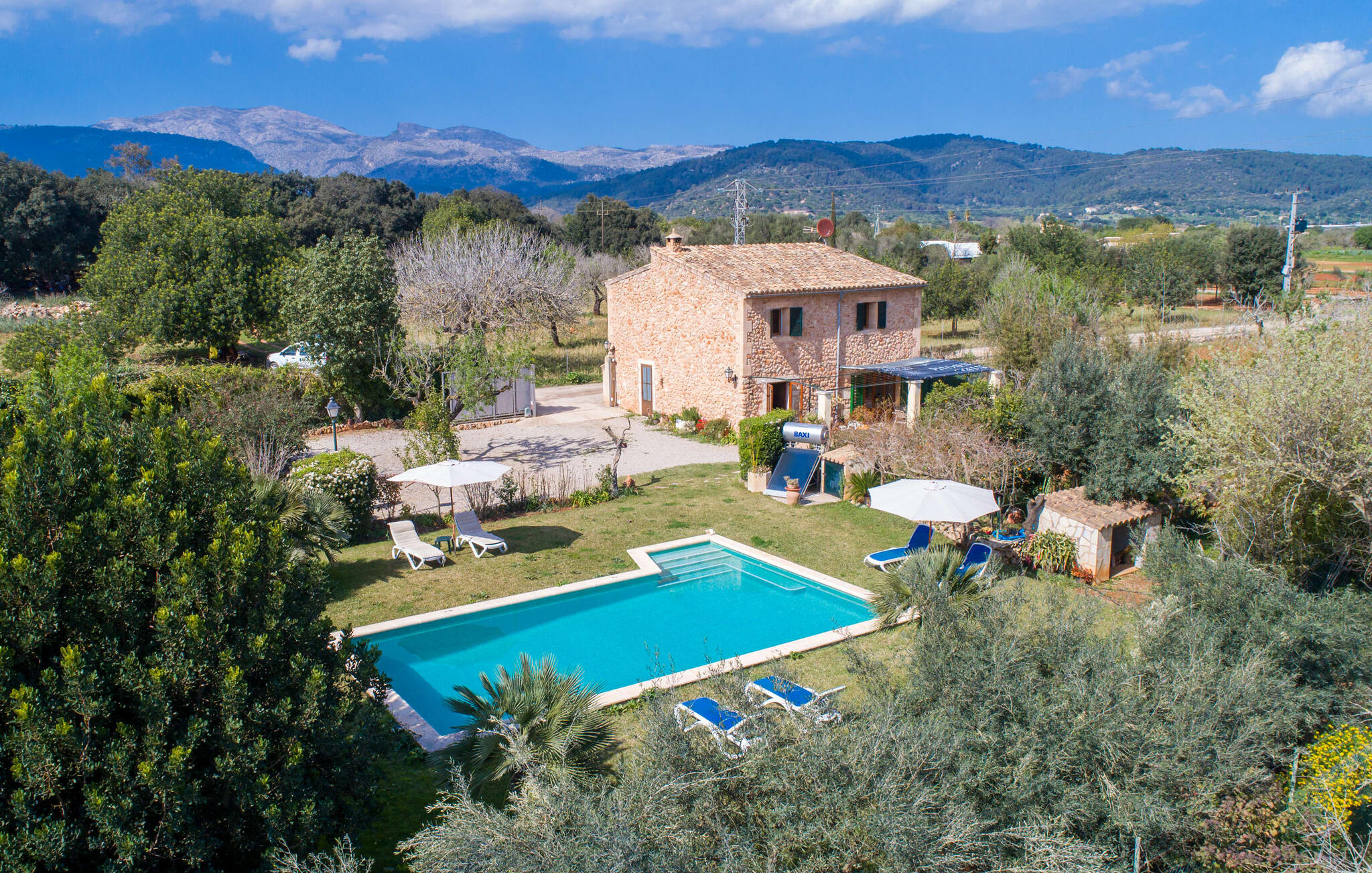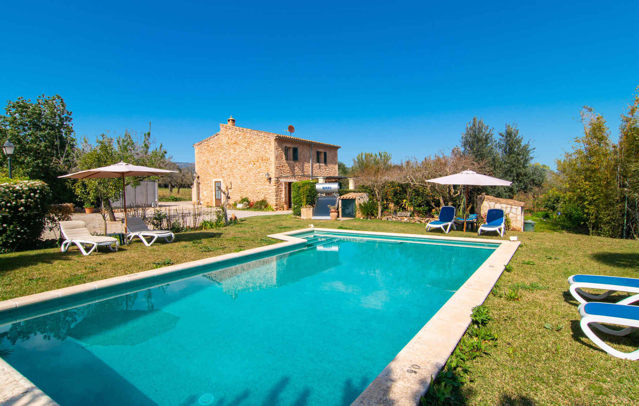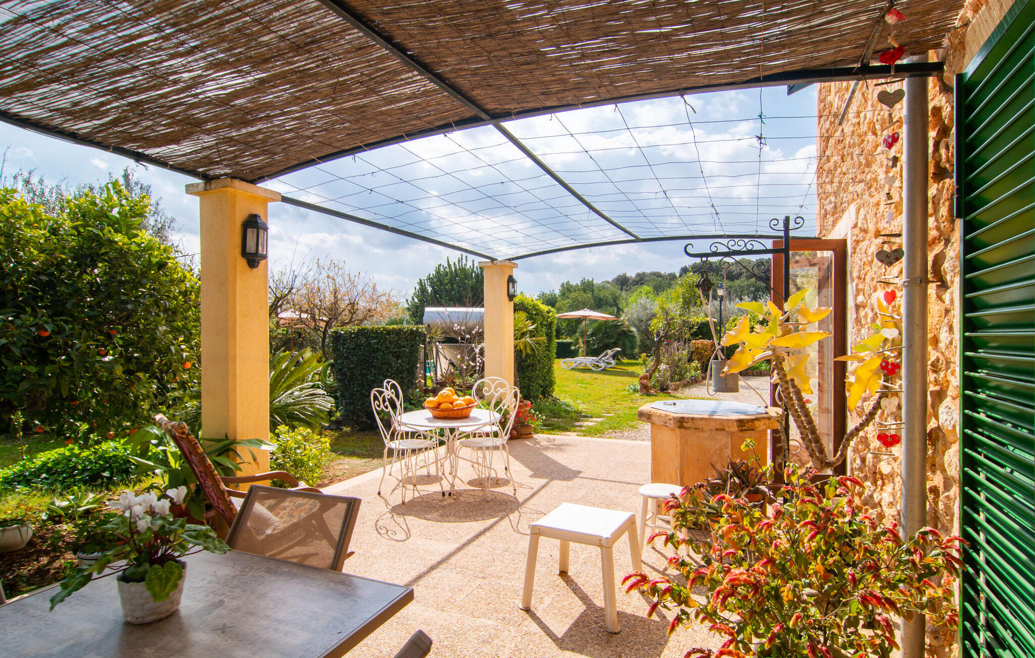 Mallorca, finca, landelijk, op het zuiden, zwembad zijn dit jouw trefwoorden bij het zoeken naar een vakantiehuis? Dan is Finca Sa Mata Marina in meerdere opzichten een schot in de roos! Het voldoet niet alleen aan al deze zoekcriteria, maar biedt ook een flinke dosis comfort en charme. Het schilderachtige huisje met zijn natuurstenen gevel past perfect in het schilderachtige landschap en heeft een weelderig begroeid perceel dat meteen een gevoel van gezelligheid en welzijn oproept. Niet alleen zorgen de uitnodigende ontspanningsruimtes in open en overdekte versies voor de felbegeerde verfrissing op warme dagen, maar er is ook een mooi, ondiep zwembad dat gemakkelijk bereikbaar is via een trap. Je hebt de keuze tussen natuurlijke schaduw, een parasol of direct onder de mediterrane hemel op de ligweide rond het 10 meter lange zwembad. Direct naast de sinaasappelboom op het terras is een heerlijke plek voor gezamenlijke maaltijden met een prachtig uitzicht op het groen. De paden naar het huis zijn hier praktisch kort, dus opzetten en afdekken is zo gebeurd. De gemetselde barbecue staat klaar voor stevige barbecue-avonden met heerlijke mediterrane lekkernijen.