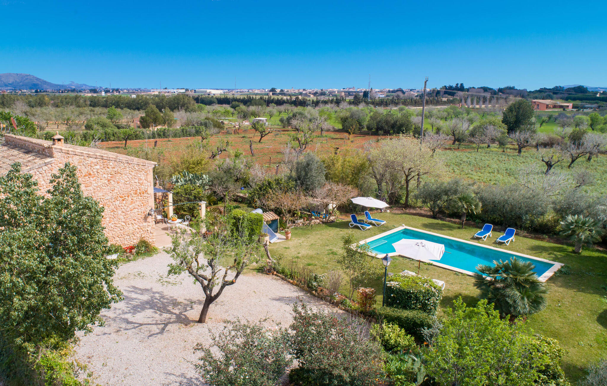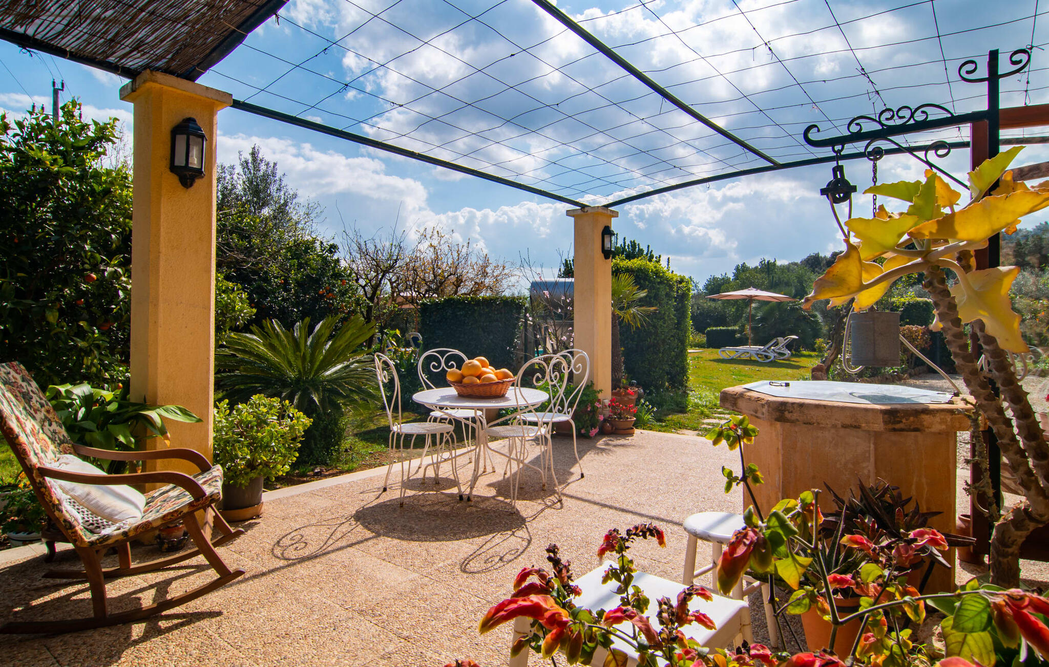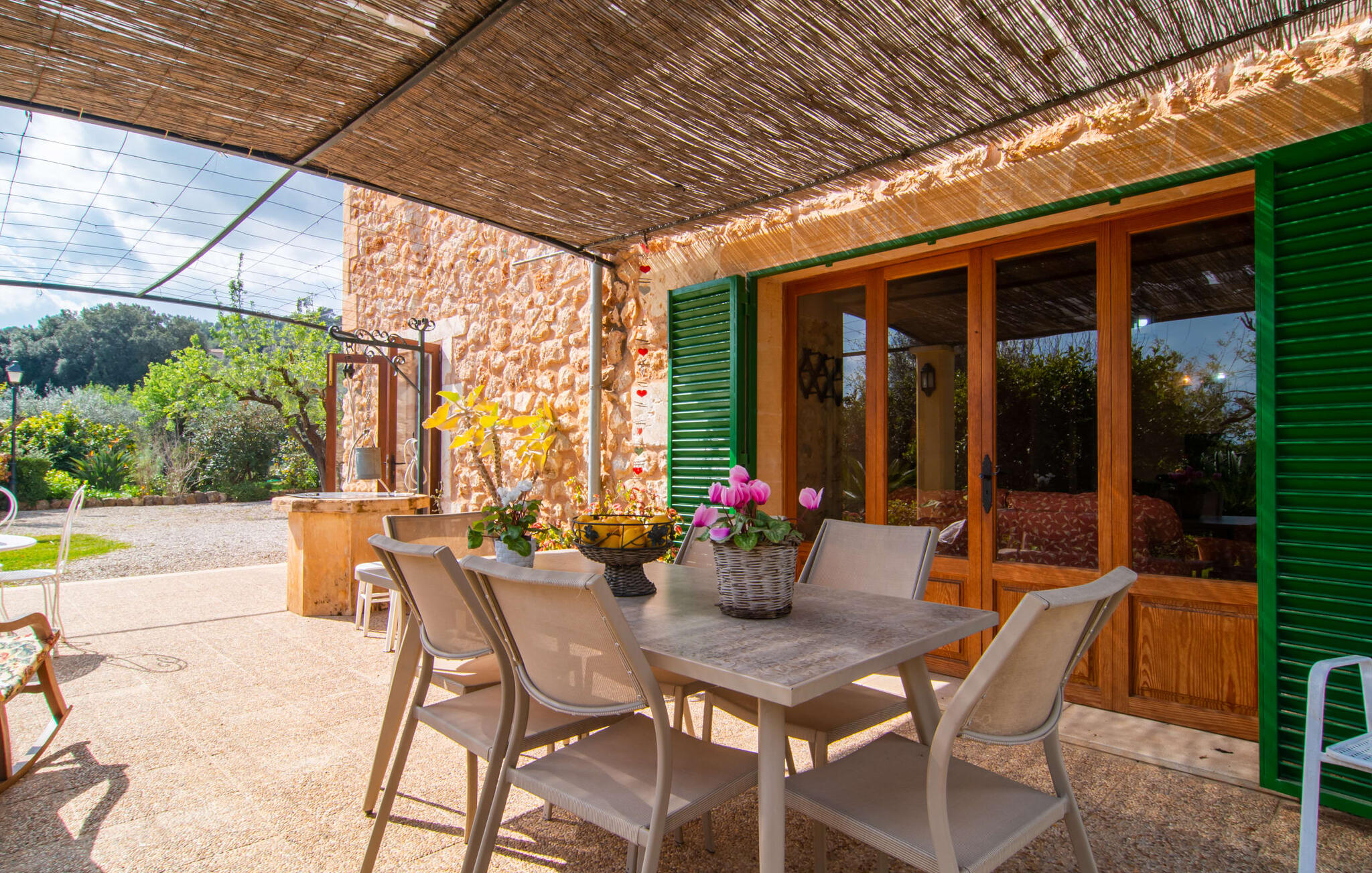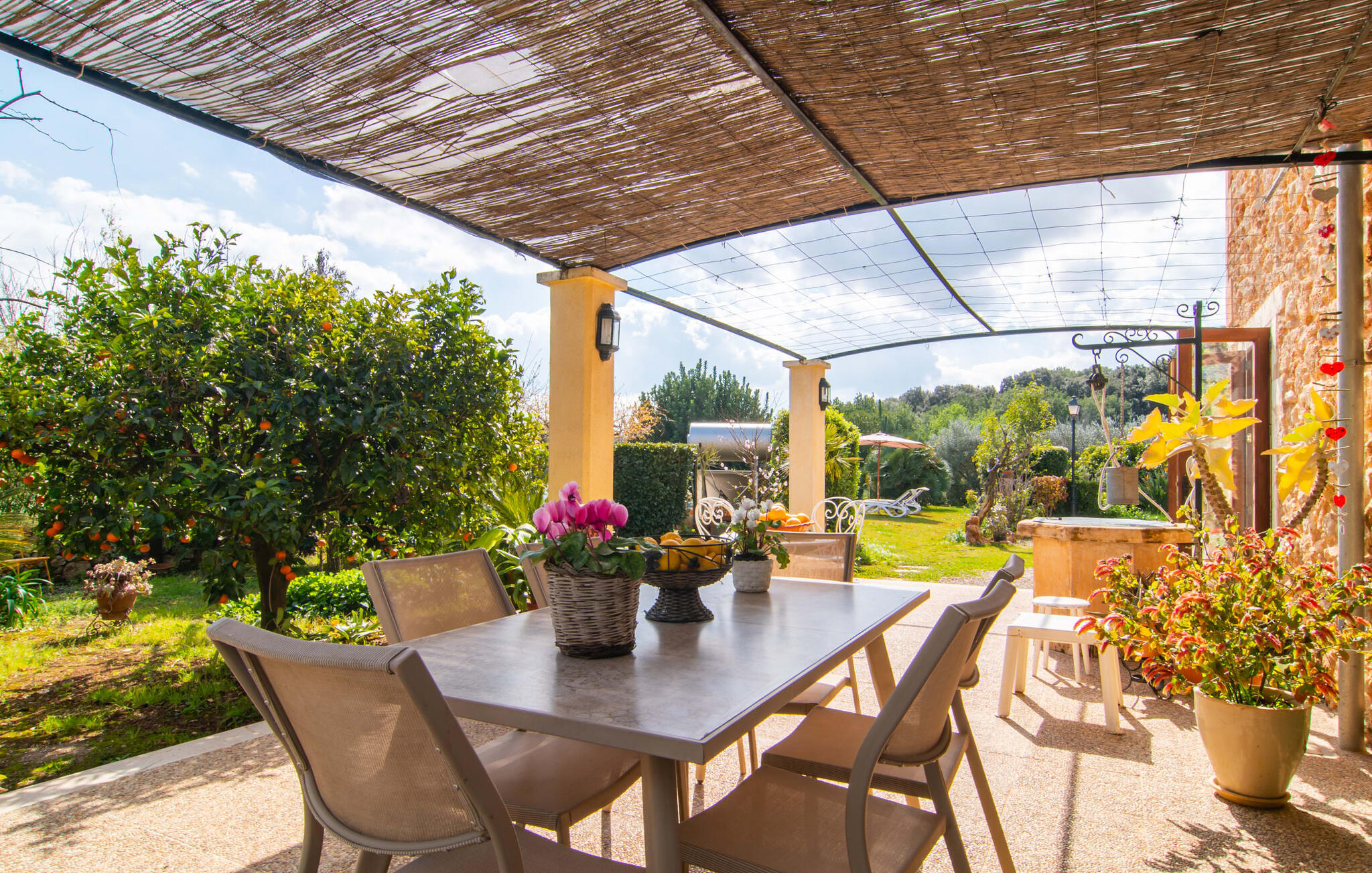 Mallorca, finca, landelijk, op het zuiden, zwembad zijn dit jouw trefwoorden bij het zoeken naar een vakantiehuis? Dan is Finca Sa Mata Marina in meerdere opzichten een schot in de roos! Het voldoet niet alleen aan al deze zoekcriteria, maar biedt ook een flinke dosis comfort en charme. Het schilderachtige huisje met zijn natuurstenen gevel past perfect in het schilderachtige landschap en heeft een weelderig begroeid perceel dat meteen een gevoel van gezelligheid en welzijn oproept. Niet alleen zorgen de uitnodigende ontspanningsruimtes in open en overdekte versies voor de felbegeerde verfrissing op warme dagen, maar er is ook een mooi, ondiep zwembad dat gemakkelijk bereikbaar is via een trap. Je hebt de keuze tussen natuurlijke schaduw, een parasol of direct onder de mediterrane hemel op de ligweide rond het 10 meter lange zwembad. Direct naast de sinaasappelboom op het terras is een heerlijke plek voor gezamenlijke maaltijden met een prachtig uitzicht op het groen. De paden naar het huis zijn hier praktisch kort, dus opzetten en afdekken is zo gebeurd. De gemetselde barbecue staat klaar voor stevige barbecue-avonden met heerlijke mediterrane lekkernijen.