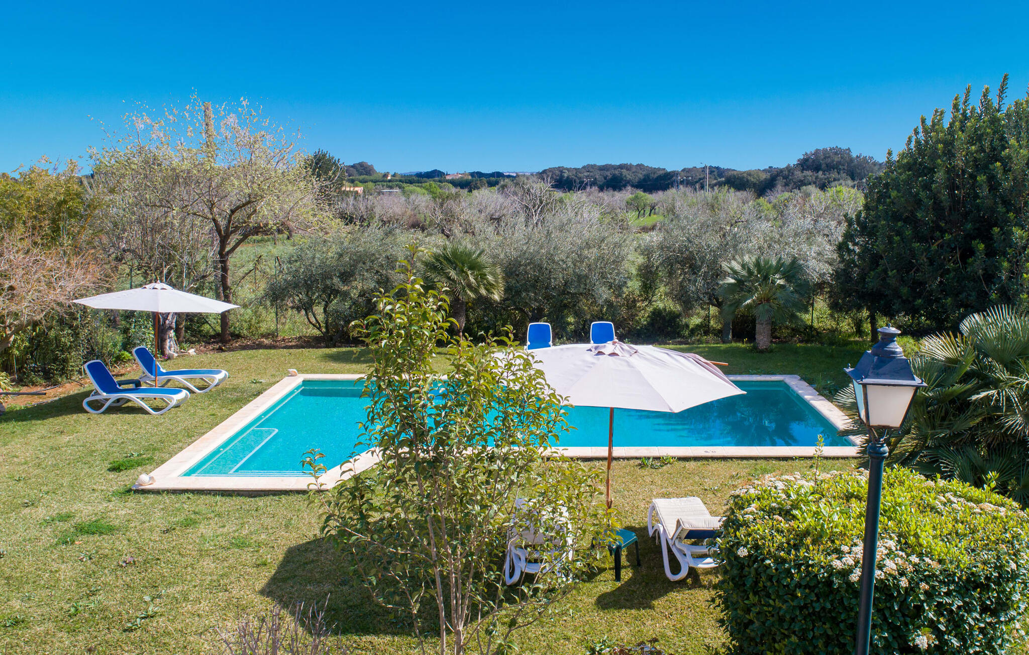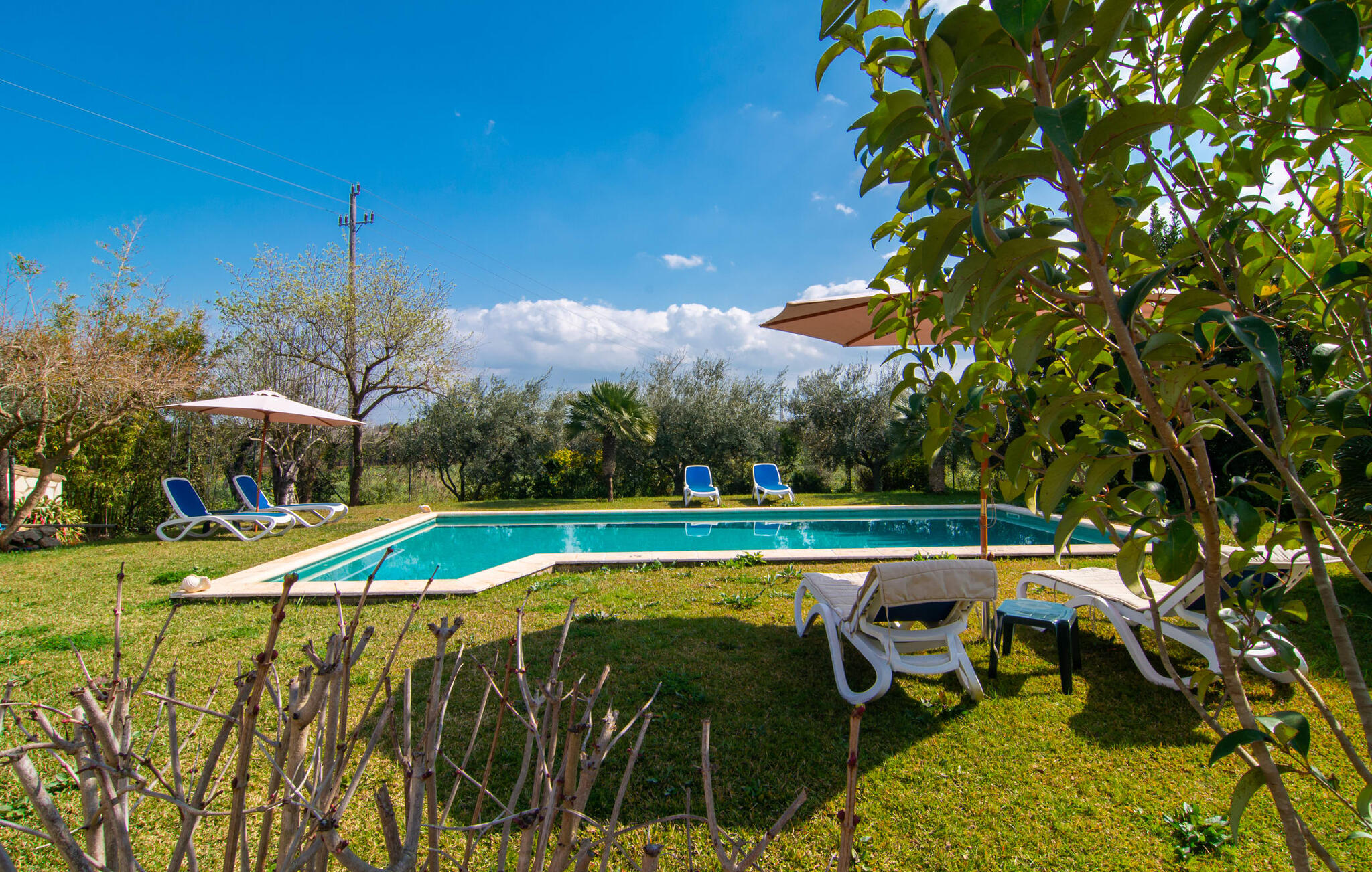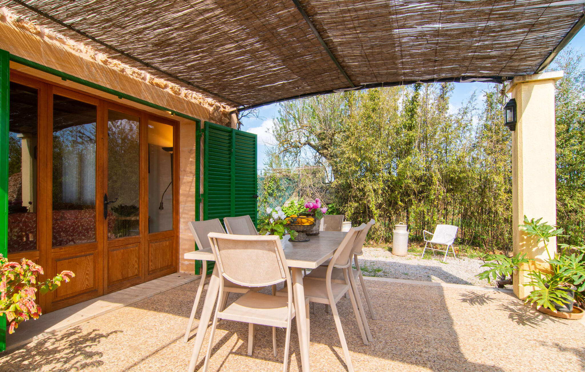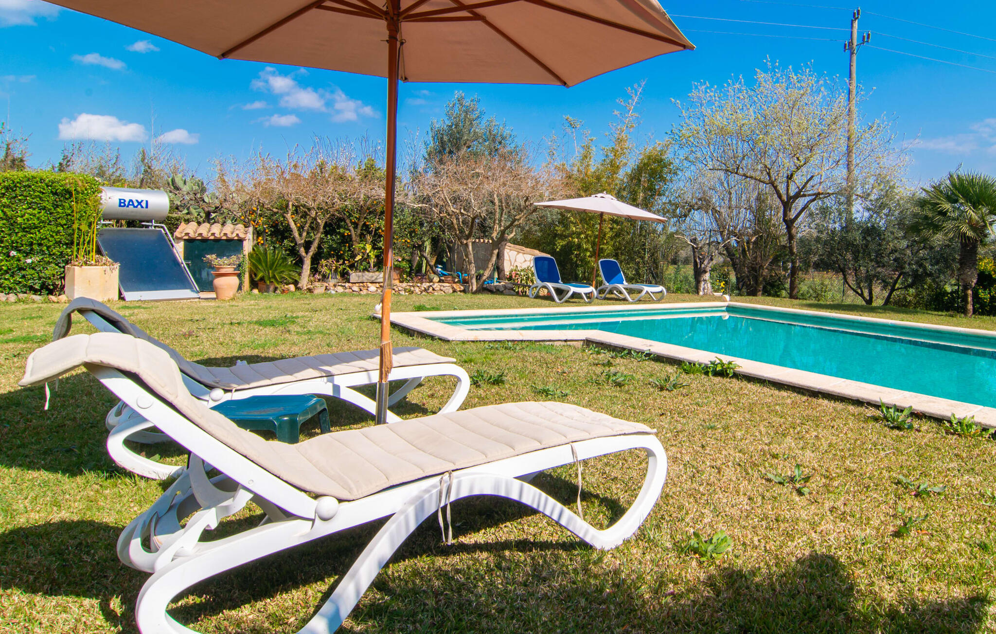 Mallorca, finca, landelijk, op het zuiden, zwembad zijn dit jouw trefwoorden bij het zoeken naar een vakantiehuis? Dan is Finca Sa Mata Marina in meerdere opzichten een schot in de roos! Het voldoet niet alleen aan al deze zoekcriteria, maar biedt ook een flinke dosis comfort en charme. Het schilderachtige huisje met zijn natuurstenen gevel past perfect in het schilderachtige landschap en heeft een weelderig begroeid perceel dat meteen een gevoel van gezelligheid en welzijn oproept. Niet alleen zorgen de uitnodigende ontspanningsruimtes in open en overdekte versies voor de felbegeerde verfrissing op warme dagen, maar er is ook een mooi, ondiep zwembad dat gemakkelijk bereikbaar is via een trap. Je hebt de keuze tussen natuurlijke schaduw, een parasol of direct onder de mediterrane hemel op de ligweide rond het 10 meter lange zwembad. Direct naast de sinaasappelboom op het terras is een heerlijke plek voor gezamenlijke maaltijden met een prachtig uitzicht op het groen. De paden naar het huis zijn hier praktisch kort, dus opzetten en afdekken is zo gebeurd. De gemetselde barbecue staat klaar voor stevige barbecue-avonden met heerlijke mediterrane lekkernijen.