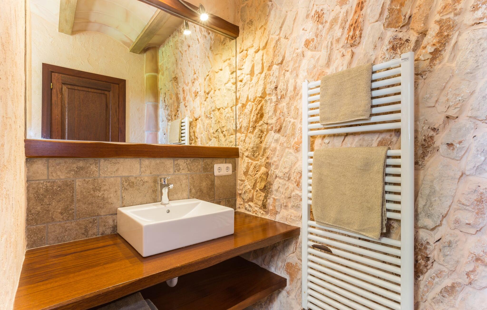 Sa Tanca Nova is genesteld in het prachtige mediterrane landschap in het zuiden van het eiland. Dit maakt je vakantiehuis het perfecte startpunt voor lange wandelingen, trektochten of fietstochten door het platteland. Als je boodschappen wilt doen of gewoon wilt ontspannen in een gezellig café, kun je het beste naar het mooie naburige dorpje S`Horta gaan, dat op slechts 3,4 km ligt en slechts 1000 inwoners telt. Het is hier altijd heerlijk rustig en ontspannen, behalve op zaterdag, wanneer de lokale bevolking vers fruit en groenten uit de regio verkoopt op de wekelijkse markt. Er is zeker meer te beleven in Cala d`Or, op slechts 3,7 km afstand, een typisch Mallorcaans, charmant vakantieoord rond de gelijknamige Gouden Baai. Naast fantastische stranden voor elk wat wils, met veel kleinere baaien dicht bij elkaar, zijn er ook tal van bars, restaurants, winkelmogelijkheden en een bruisend nachtleven. Een landhuis rechtstreeks uit een prentenboek: Villa Sa Tanca Nova is gebouwd te midden van een prachtig mediterraan landschap dat uitnodigt om te ontspannen en tot rust te komen. Het klassieke gebouw met een overdekt terras ligt op een ruim perceel, waar vooral het speciale zwembadgedeelte opvalt: het koele water stroomt hier in een cirkel, inclusief een bruggetje en een whirlpool. Het idyllische dorpje S`Horta ligt op slechts 3,4 km afstand en het strand van Cala d`Or ligt op slechts 3,7 km afstand.