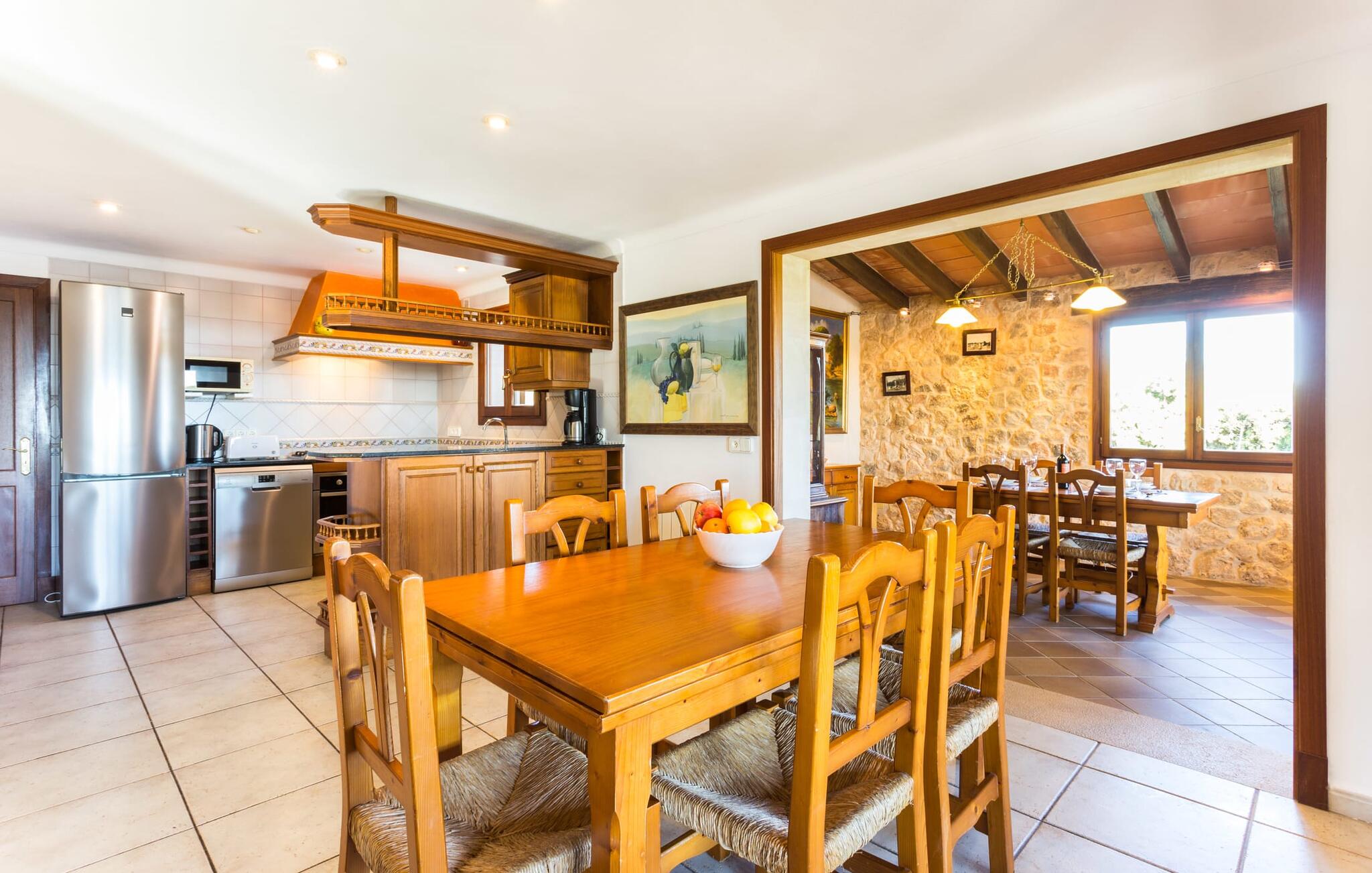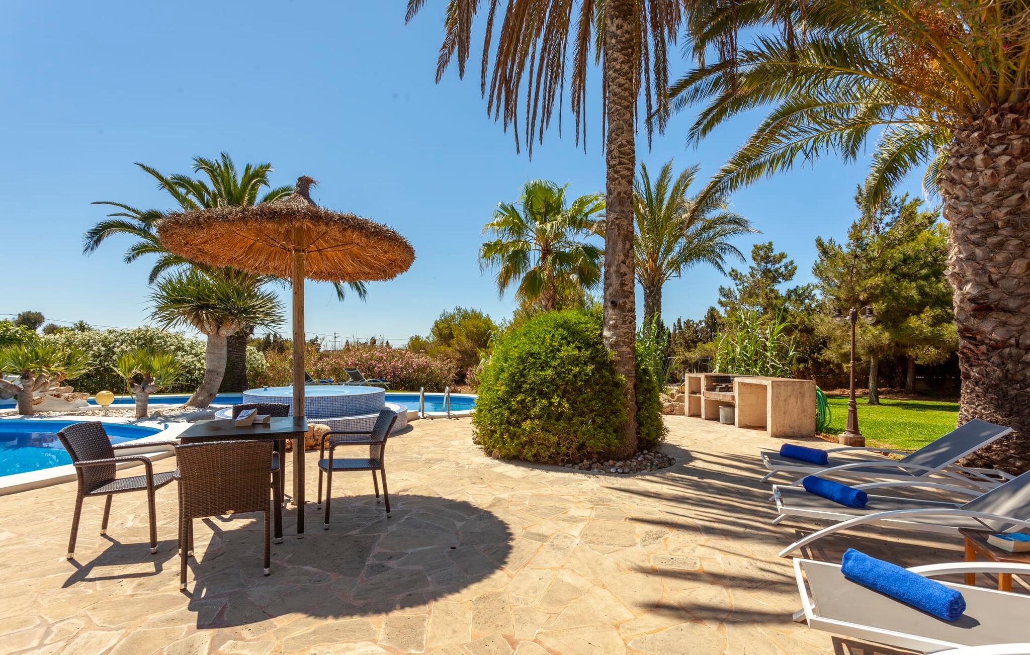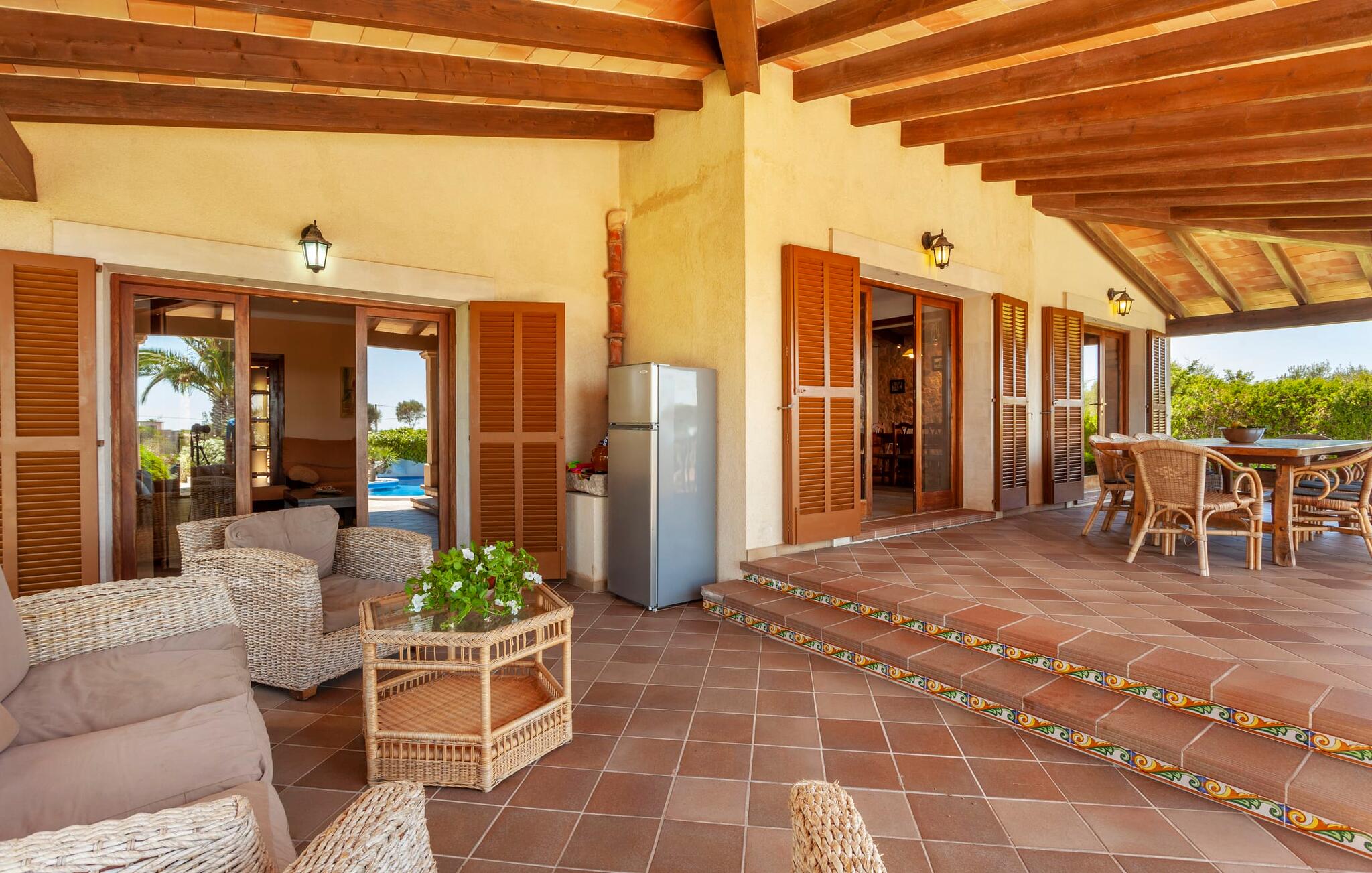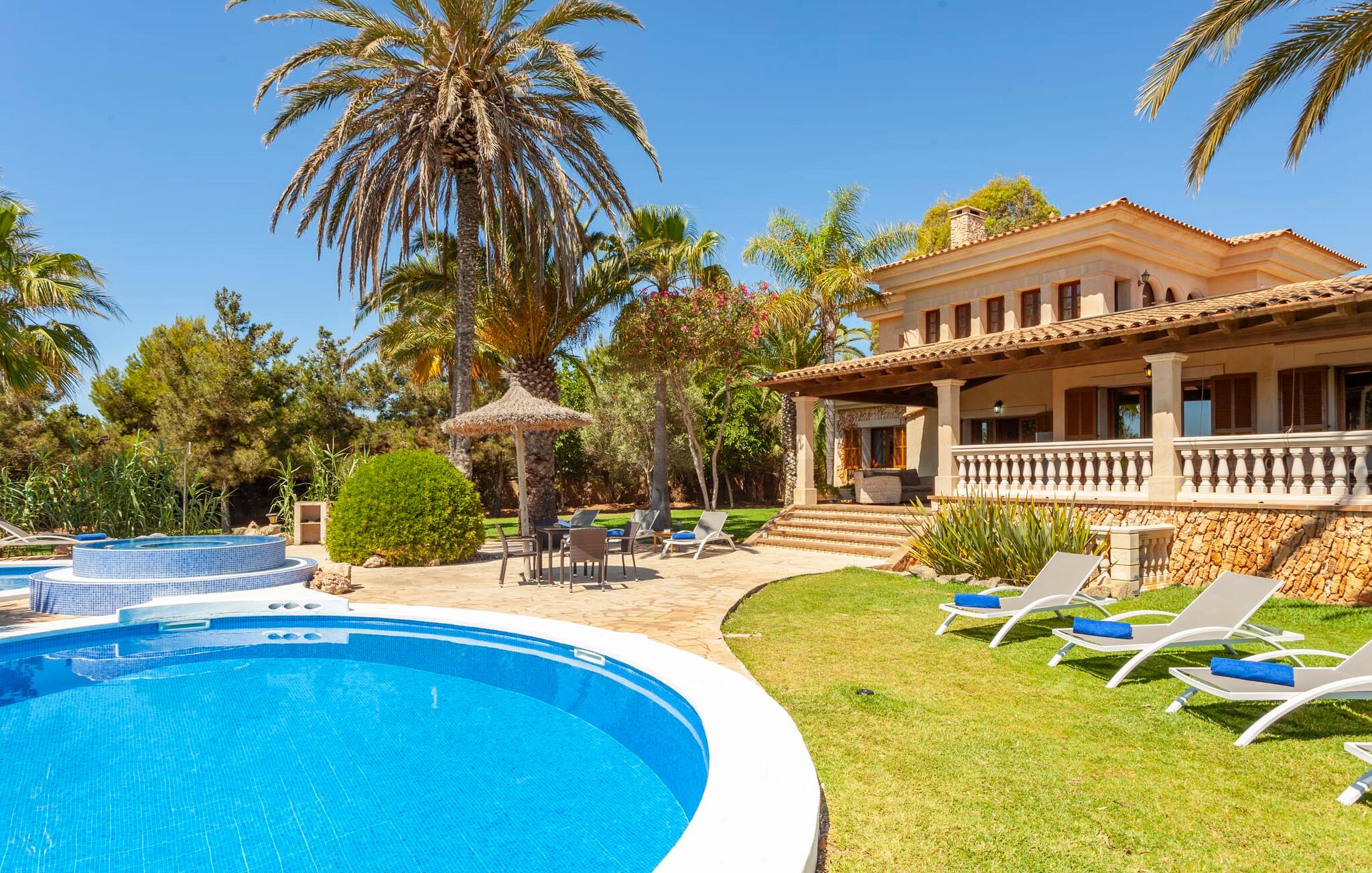 Hier kun je echt genieten van het plattelandsleven: in de uitstekend onderhouden, ruime Villa Sa Tanca Nova op een groot landgoed met indrukwekkende palmbomen en een liefdevol ontworpen zwembad dat zich kan meten met een sterrenhotel. Het zandkleurige huis met het bijzonder mooie overdekte terras, vanwaar je een geweldig uitzicht hebt op de tuin, zal je in alle opzichten overtuigen. Als je vanaf het terras een paar treden naar beneden gaat, kom je al bij het zacht glooiende zwembad, dat turquoise glinstert in de zon, en dit zwembad is allesbehalve een saaie rechthoek. Het heeft niet alleen een buitenwhirlpool, maar ook een cirkelvormige lay-out met een mooi eilandje in het midden en een brug als extra hoogtepunt. Niet alleen de kinderen zullen hier graag een paar baantjes trekken! En als je geen zin hebt in een frisse duik, kun je ontspannen op een van de comfortabele ligstoelen of een spelletje tafeltennis spelen met je medereizigers aan de eigen tafel. Geniet daarna van vers bereide lekkernijen van de gemetselde barbecue en een slaapmutsje op de gezellige rieten stoelen op het terras - de perfecte afsluiting van je dag!