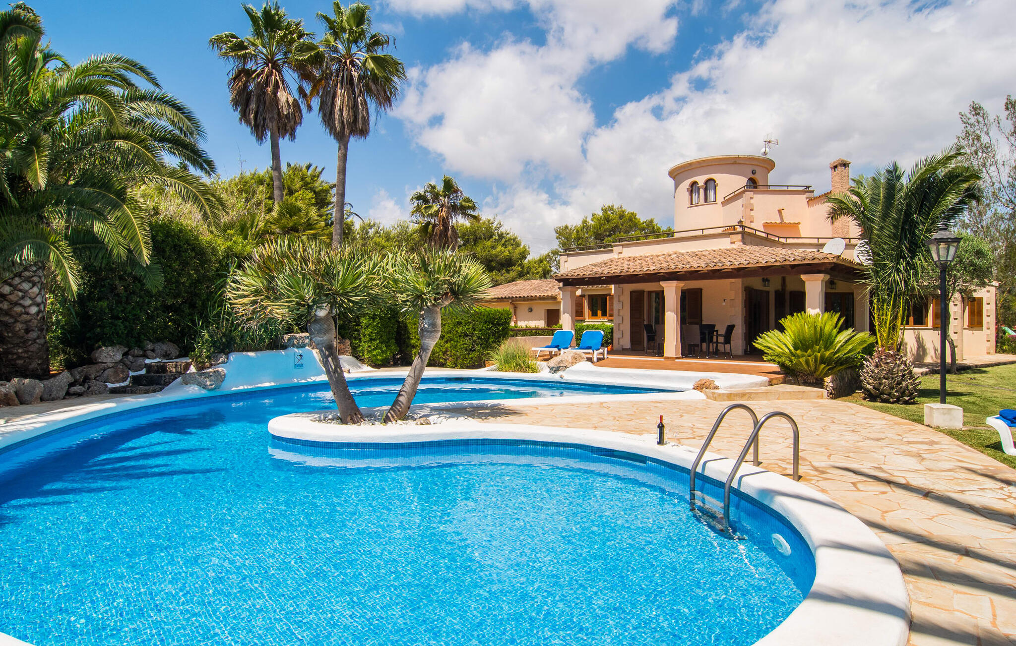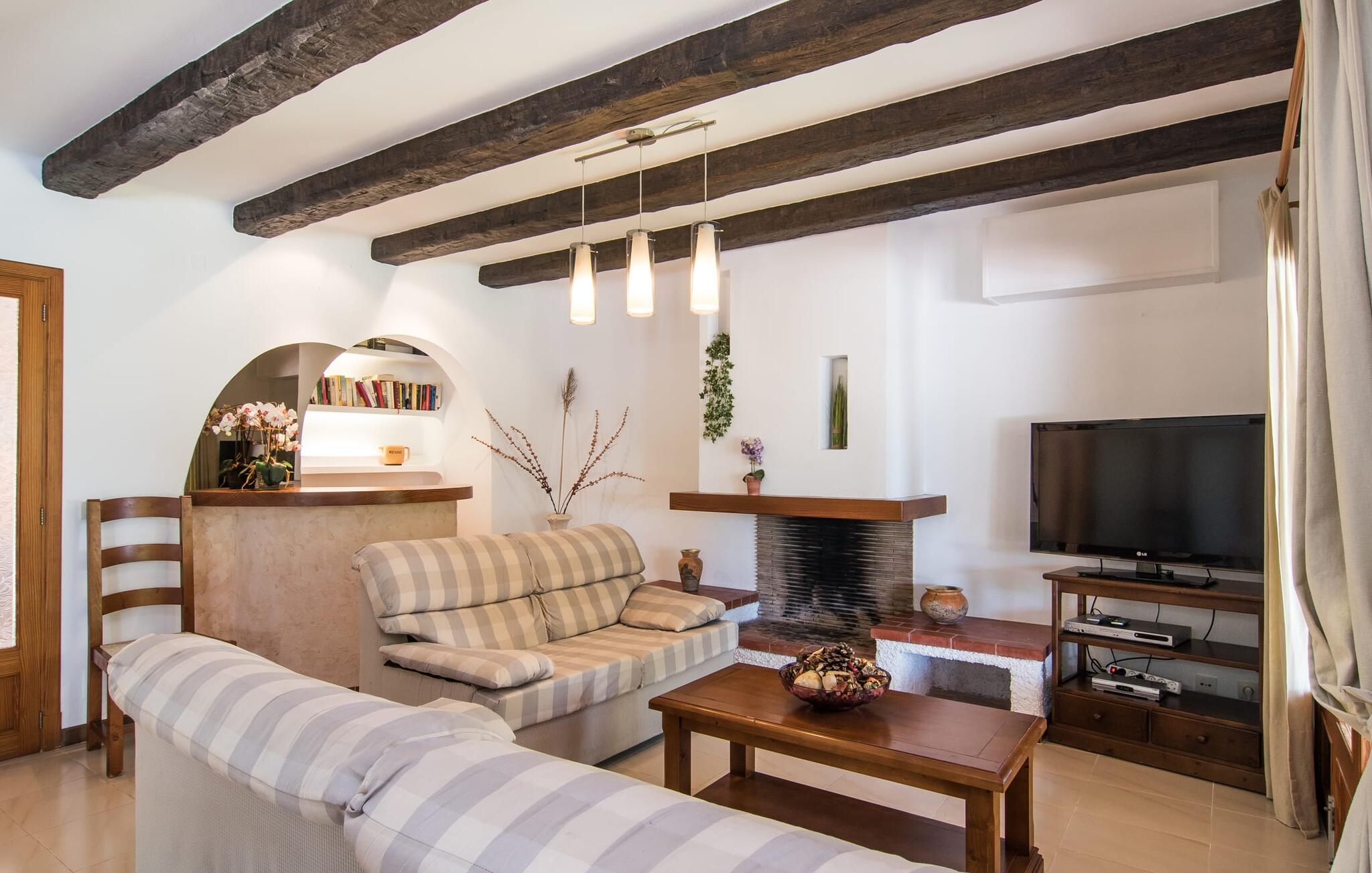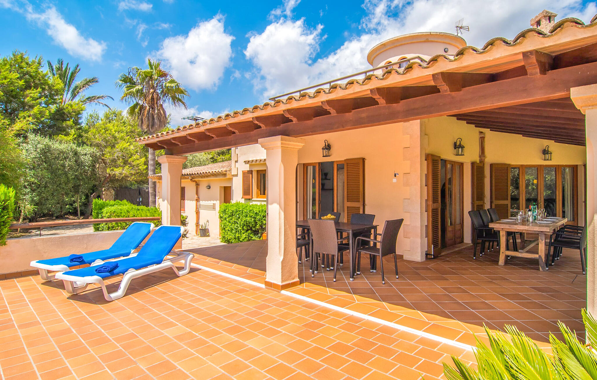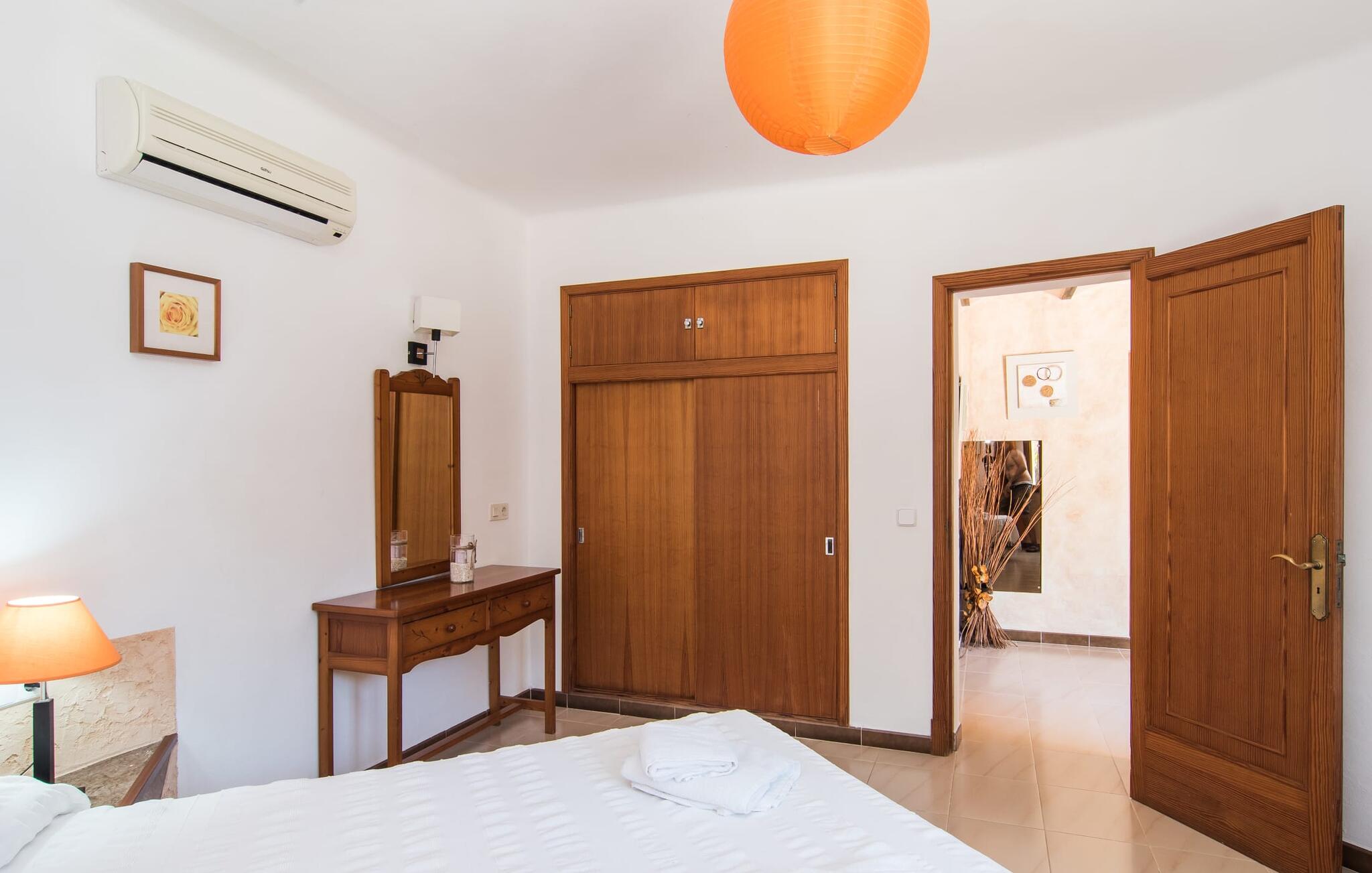 Mallorca is meer dan alleen een zonnig eiland in de Middellandse Zee. Mallorca is een levensstijl die je snel zult ontdekken in deze rustieke, charmante stenen villa vlakbij S`Horta. De idyllische tuin verwelkomt je met een kleine palmenoase die je onmiddellijk zal opvrolijken. Het zwembad lijkt op een golf en is omringd door terracotta tegels en zandsteen. Pak je favoriete drankje en kom de dag gewoon door. De tuin is zo liefdevol aangelegd dat je snel kunt ontspannen en nieuwe energie kunt opdoen op een van de zwembadterrassen. Kinderen kunnen spelen op de schommels of een partijtje tafeltennis spelen, wat voor sommige volwassenen natuurlijk ook herinneringen oproept. Onder het overdekte terras kun je tijdens een siësta genieten van vers fruit of lekkere vis en je bijna een echte eilandbewoner voelen. De schattige houten luiken doen hun uiterste best om een natuurlijke Spaanse flair te creëren.