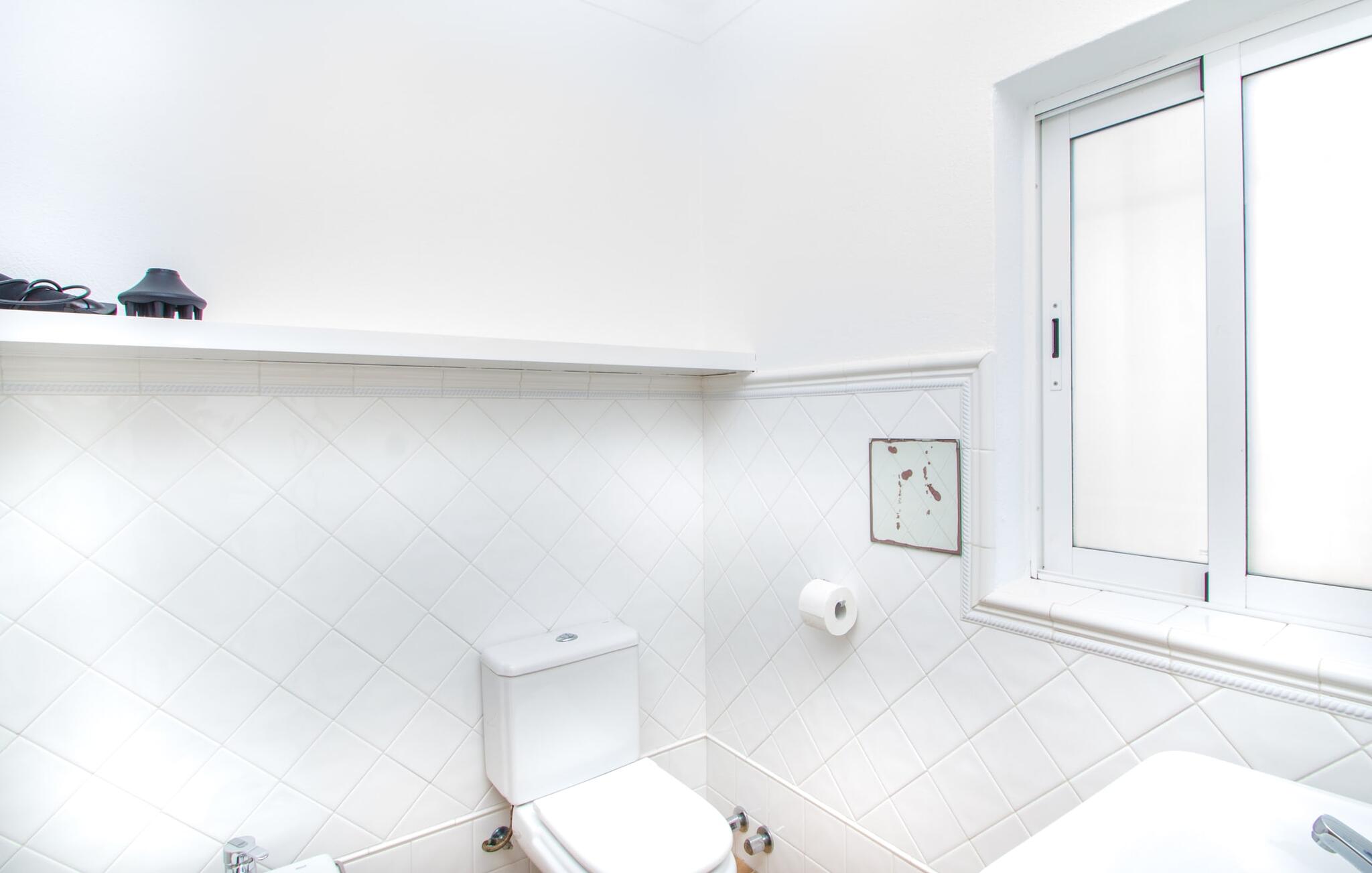 Het huis zelf doet denken aan een kerk met zijn torenvormige dak. Een van de slaapkamers met een tweepersoonsbed bevindt zich op de tweede verdieping. De woonkamer heeft een aangrenzende gewelfde ruimte met een eettafel. In deze ruimte waan je je in een eerbiedwaardig klooster. Je hoeft je in deze villa echter geen zorgen te maken over het spartaanse leven van een monnik: De woonkamer ademt een uiterst vrolijke sfeer uit met zijn witte kleur en lichtbruine plafondbalken. Je zult hier zeker vele gezellige uurtjes doorbrengen. En als het `s avonds wat frisser wordt, steek je gewoon de open haard aan. De laaiende vlammen zorgen voor een gezellige sfeer, net als de uiterst comfortabele banken, van waaruit je een goed zicht hebt op de flatscreen-tv. Nu heb je eindelijk tijd om de films te kijken die je al tijden wilde zien. De comfortabel uitgeruste keuken is voorzien van een gasfornuis, zodat je op vakantie heerlijke maaltijden kunt bereiden als je dat wilt. Een van de tweepersoonsslaapkamers en een badkamer bevinden zich op de begane grond, terwijl er drie slaapkamers op de eerste verdieping zijn, waarvan een de luxe van een eigen badkamer heeft. Een andere badkamer op de eerste verdieping is uitgerust met een ligbad, ideaal voor een sensuele afsluiting van de dag. Een trap leidt naar de torenkamer, waar nog een tweepersoonsbed een rustgevende nachtrust belooft. Alle kamers worden gekenmerkt door een vriendelijke, onopvallende inrichting.