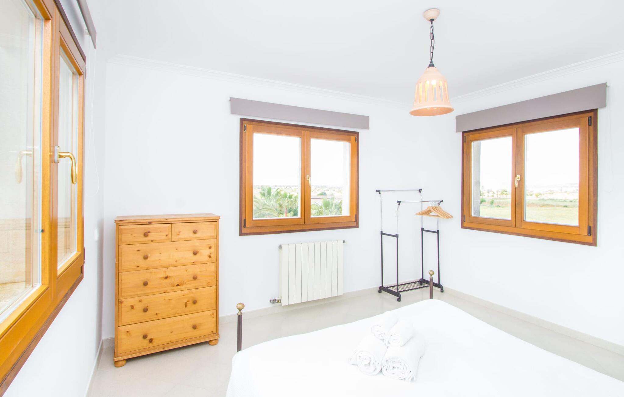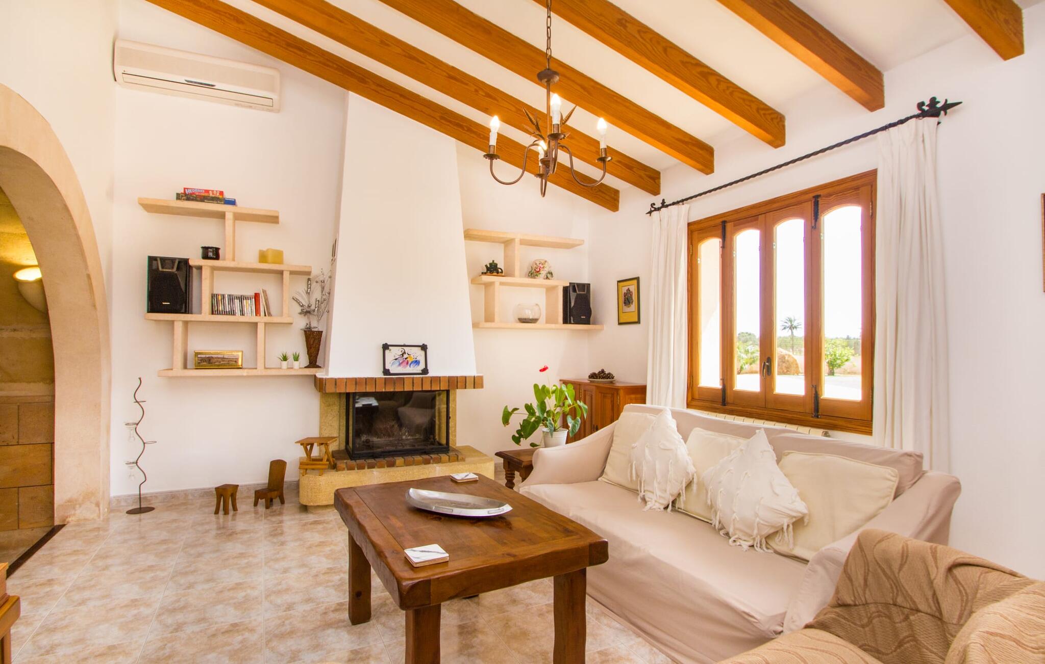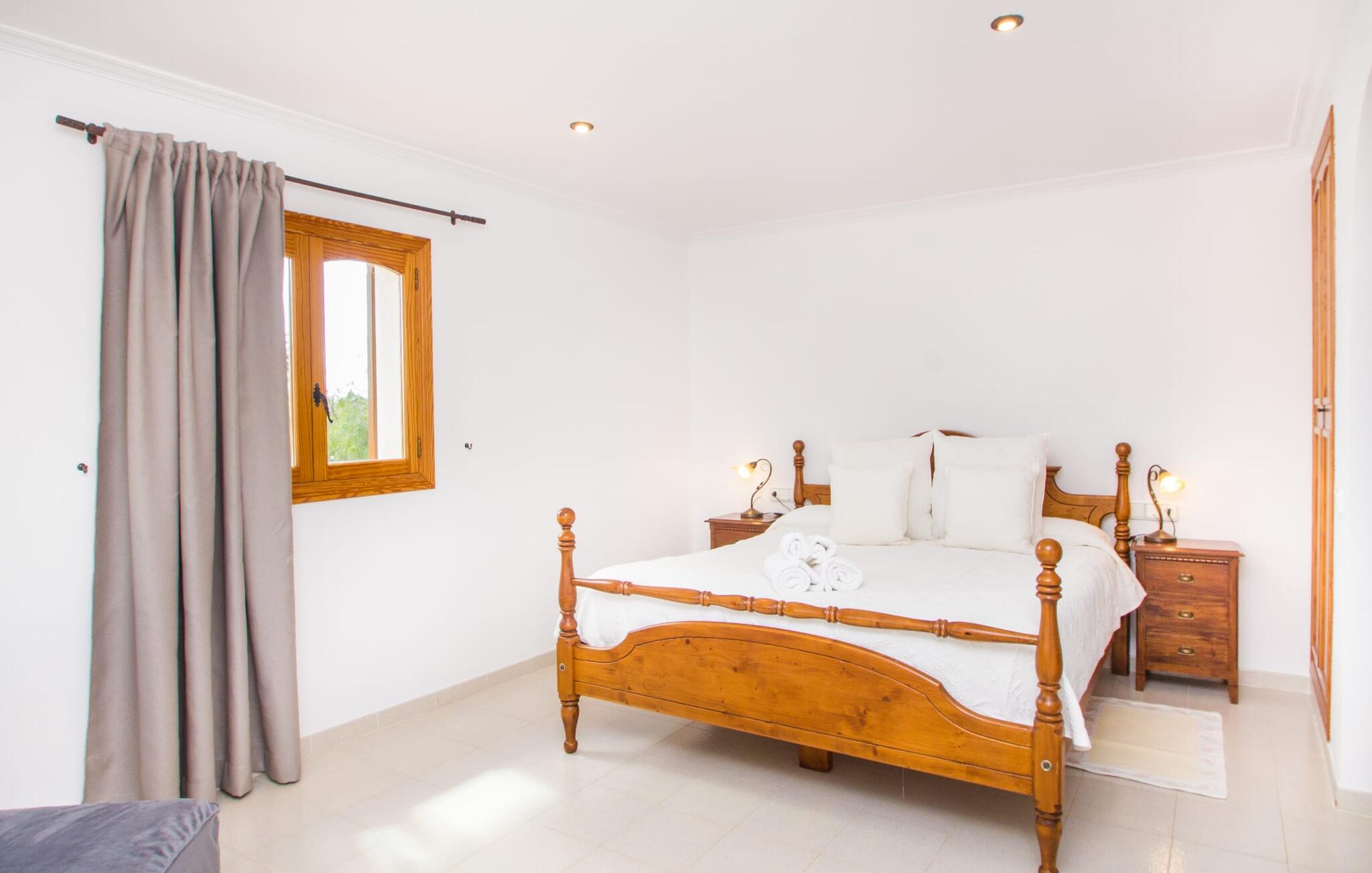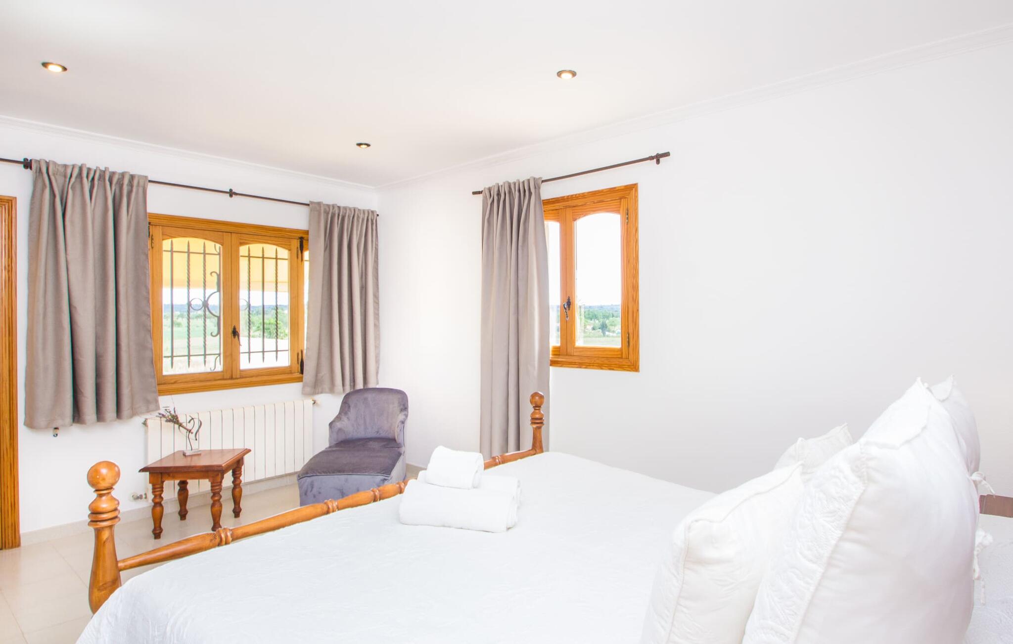 Al deze superlatieven gelden ook voor het charmante stadje Campos, dat op 3,5 km ligt en de eerste aanloophaven is voor je dagelijkse boodschappen. Je kunt jezelf trakteren op amandeltaart en een cortado in rustige straatcafés en vervolgens een uitstapje maken naar Colònia de Sant Jordi. Het voormalige vissersdorpje ligt vlak naast het kilometerslange strand Es Trenc, dat met zijn witte zand schilderachtige stranddagen biedt. Of je nu de bruisende eilandhoofdstad Palma bezoekt om te profiteren van het gevarieerde culturele aanbod of met een huurauto de aantrekkelijke oostkust verkent, die gewoon wemelt van de hoogtepunten zoals de baaien van Cales de Mallorca, op slechts een half uur rijden, je kunt `s avonds terugkeren naar je heerlijk rustige villa met herinneringen aan je fantastische ervaringen.