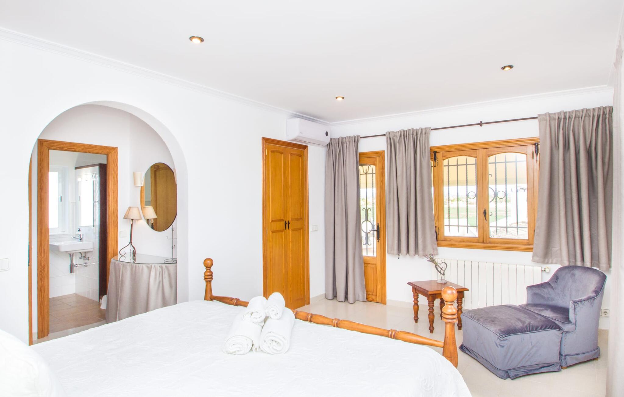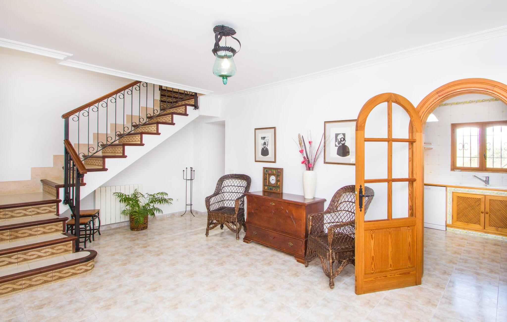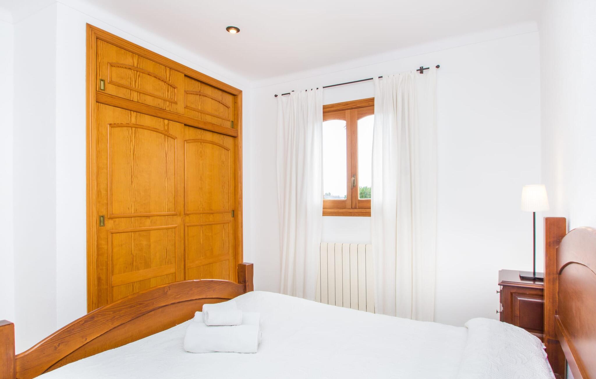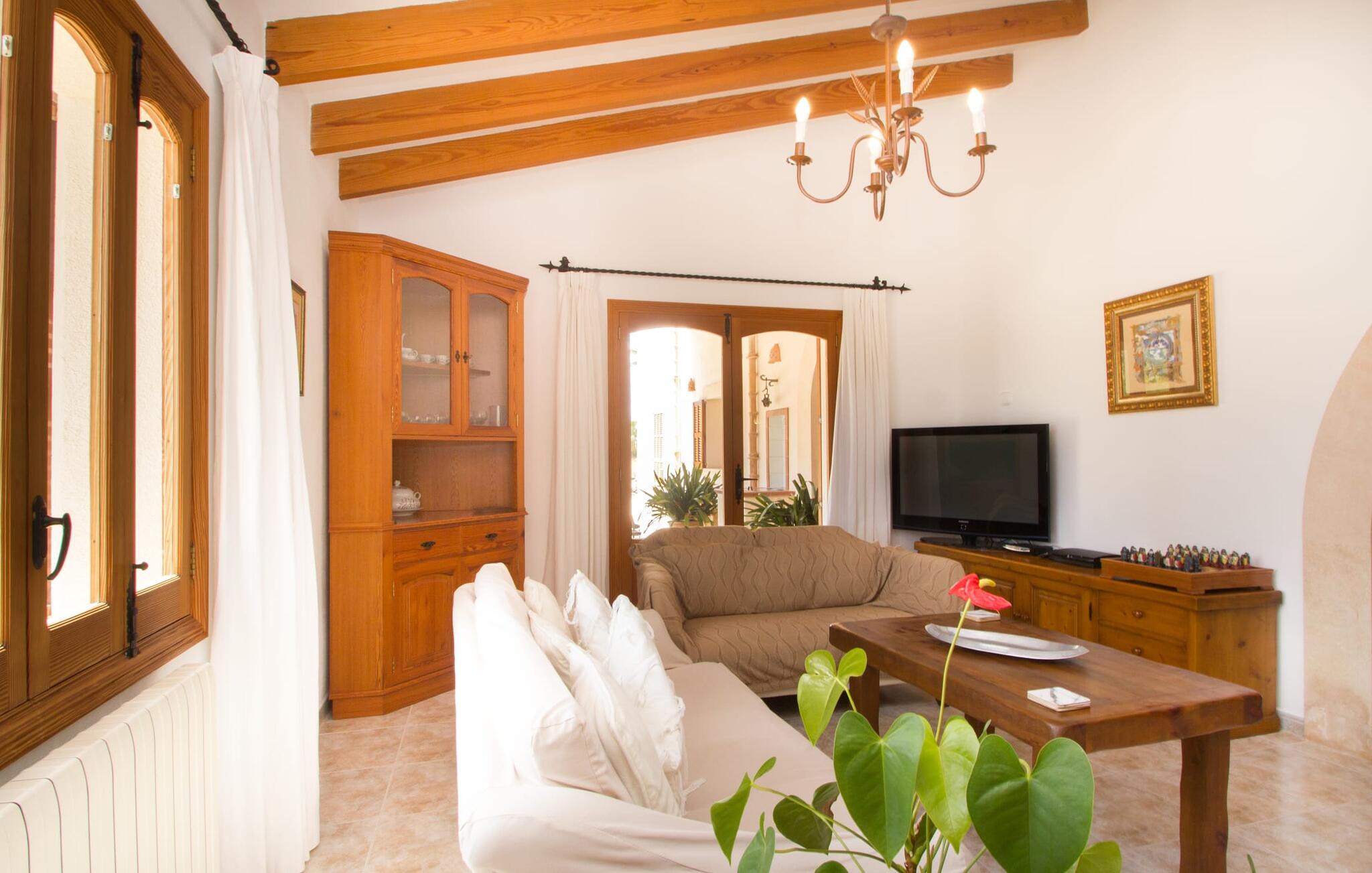 Al deze superlatieven gelden ook voor het charmante stadje Campos, dat op 3,5 km ligt en de eerste aanloophaven is voor je dagelijkse boodschappen. Je kunt jezelf trakteren op amandeltaart en een cortado in rustige straatcafés en vervolgens een uitstapje maken naar Colònia de Sant Jordi. Het voormalige vissersdorpje ligt vlak naast het kilometerslange strand Es Trenc, dat met zijn witte zand schilderachtige stranddagen biedt. Of je nu de bruisende eilandhoofdstad Palma bezoekt om te profiteren van het gevarieerde culturele aanbod of met een huurauto de aantrekkelijke oostkust verkent, die gewoon wemelt van de hoogtepunten zoals de baaien van Cales de Mallorca, op slechts een half uur rijden, je kunt `s avonds terugkeren naar je heerlijk rustige villa met herinneringen aan je fantastische ervaringen.
