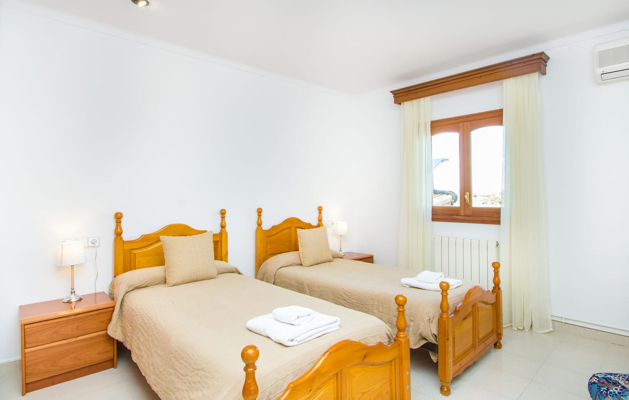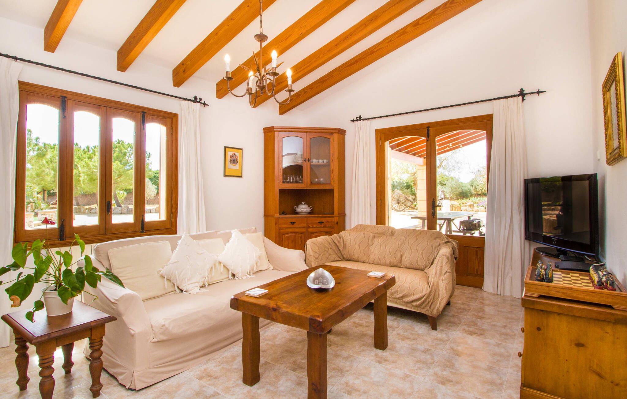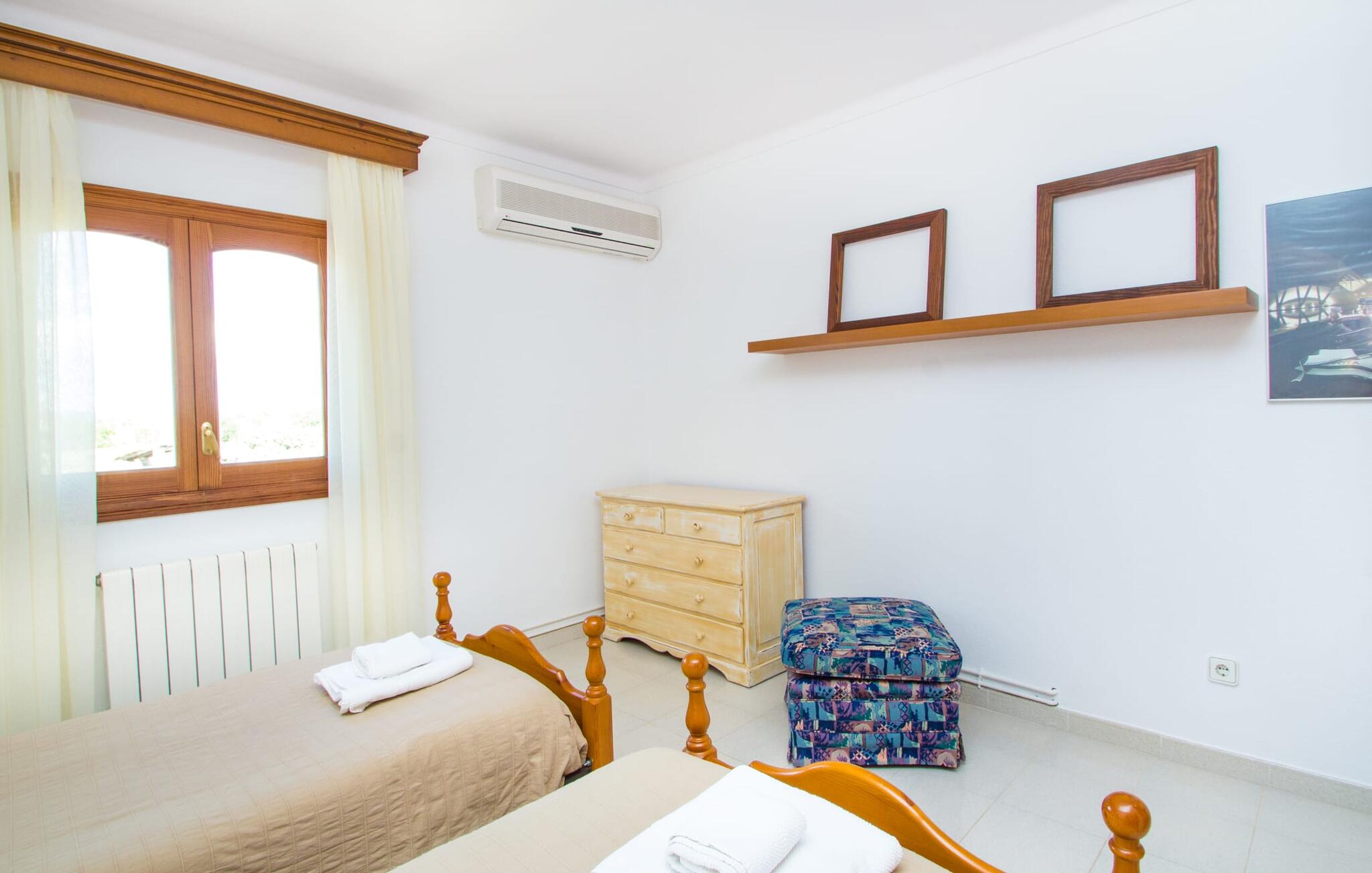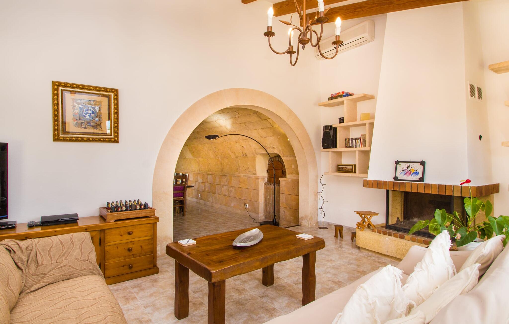 Al deze superlatieven gelden ook voor het charmante stadje Campos, dat op 3,5 km ligt en de eerste aanloophaven is voor je dagelijkse boodschappen. Je kunt jezelf trakteren op amandeltaart en een cortado in rustige straatcafés en vervolgens een uitstapje maken naar Colònia de Sant Jordi. Het voormalige vissersdorpje ligt vlak naast het kilometerslange strand Es Trenc, dat met zijn witte zand schilderachtige stranddagen biedt. Of je nu de bruisende eilandhoofdstad Palma bezoekt om te profiteren van het gevarieerde culturele aanbod of met een huurauto de aantrekkelijke oostkust verkent, die gewoon wemelt van de hoogtepunten zoals de baaien van Cales de Mallorca, op slechts een half uur rijden, je kunt `s avonds terugkeren naar je heerlijk rustige villa met herinneringen aan je fantastische ervaringen.