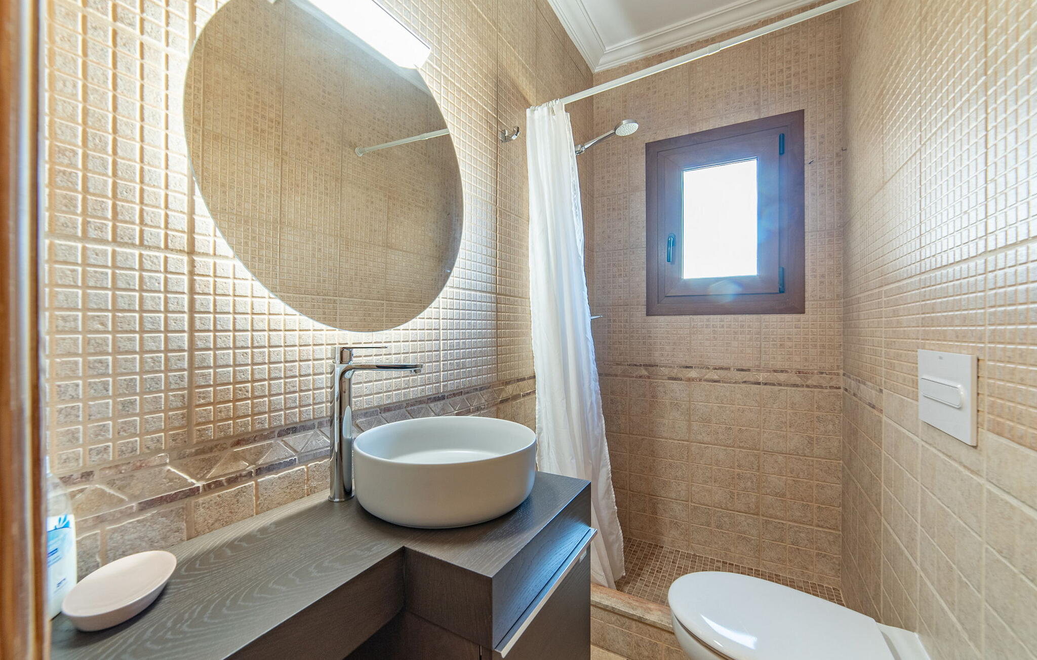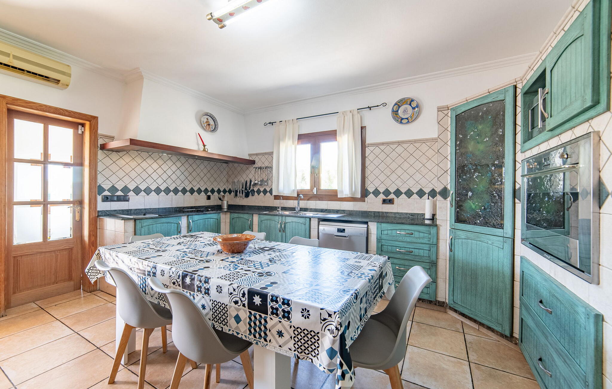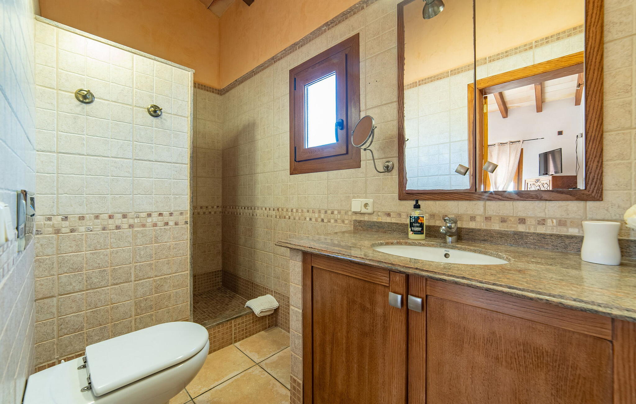 En de zeer ruime indeling van deze villa vlakbij de zee zorgt ervoor dat de dag ontspannen begint. Het twee verdiepingen tellende huis heeft een gezellige woonkamer met meer dan genoeg banken rond de open haard en tv, die in open verbinding staat met de eethoek. De aparte keuken zal je bekoren, niet alleen omdat hij volledig is uitgerust en absoluut onmisbaar is op een self-catering vakantie met een grote groep, maar ook vanwege het koele turquoise op de deuren van de ingebouwde kasten. Over het geheel genomen draagt het vrolijke kleurenpalet van de villa echt bij aan de ontspannen, down-to-earth sfeer van het huis; elk van de vijf slaapkamers, of ze nu zijn ingericht met een tweepersoonsbed of twee aparte bedden, heeft zijn eigen zachte kleurenschema, wat een rustige, kalmerende sfeer creëert. Naast de buitenbadkamer zijn er drie chique badkamers met inloopdouches en tijdloos mooie tegelpatronen. Omdat de leefruimte is verdeeld over twee verdiepingen - de bovenste verdieping heeft zelfs een zonovergoten balkon met een kleine loungeset - heeft elke gast zijn eigen persoonlijke favoriete plekje binnen of buiten, waar hij op elk moment naartoe kan gaan om zich te verliezen in een goed boek. Grote gezinnen welkom! Dat zou echt het motto kunnen zijn van de sterk aanbevolen Villa Tres Soles.