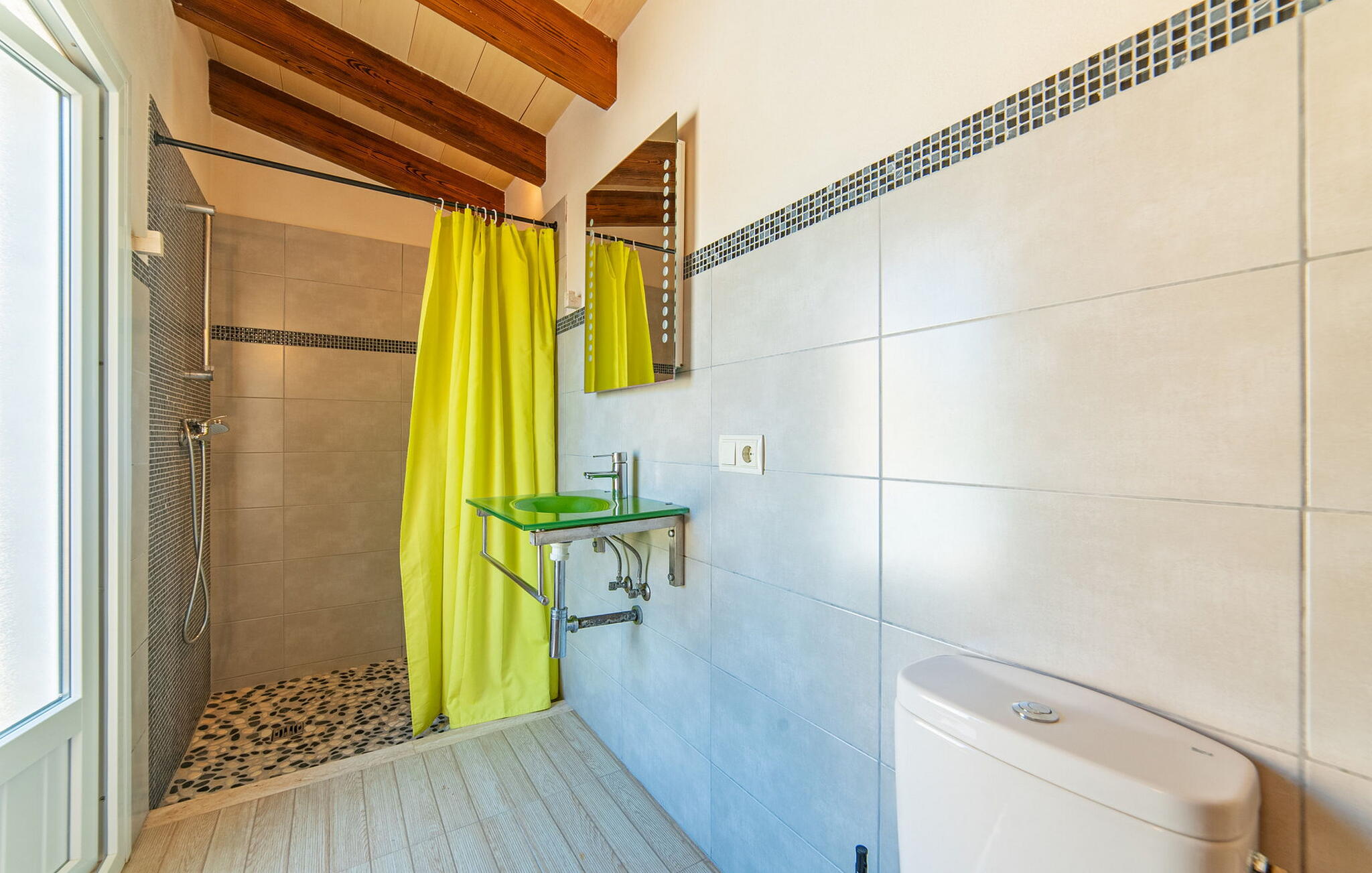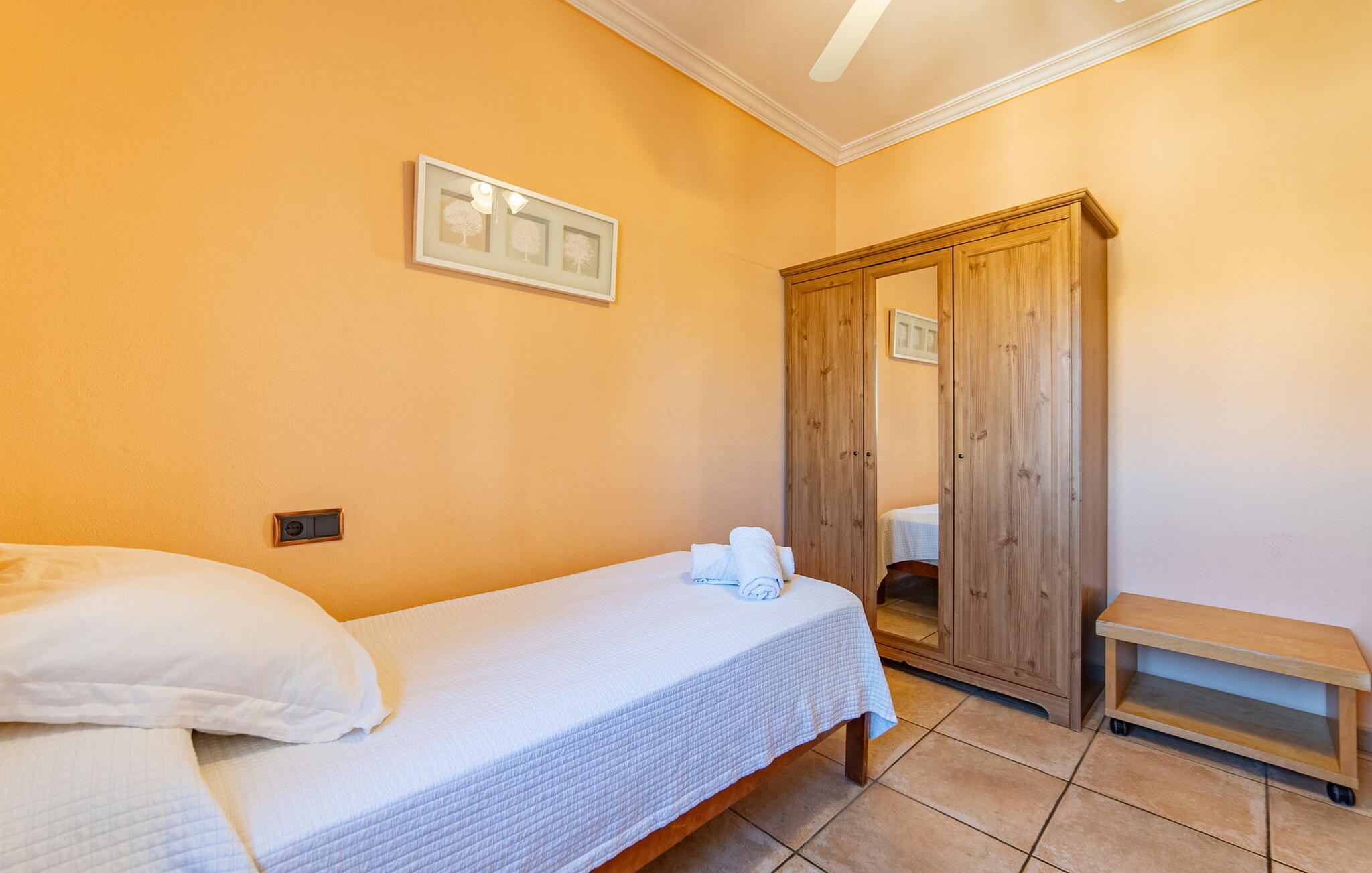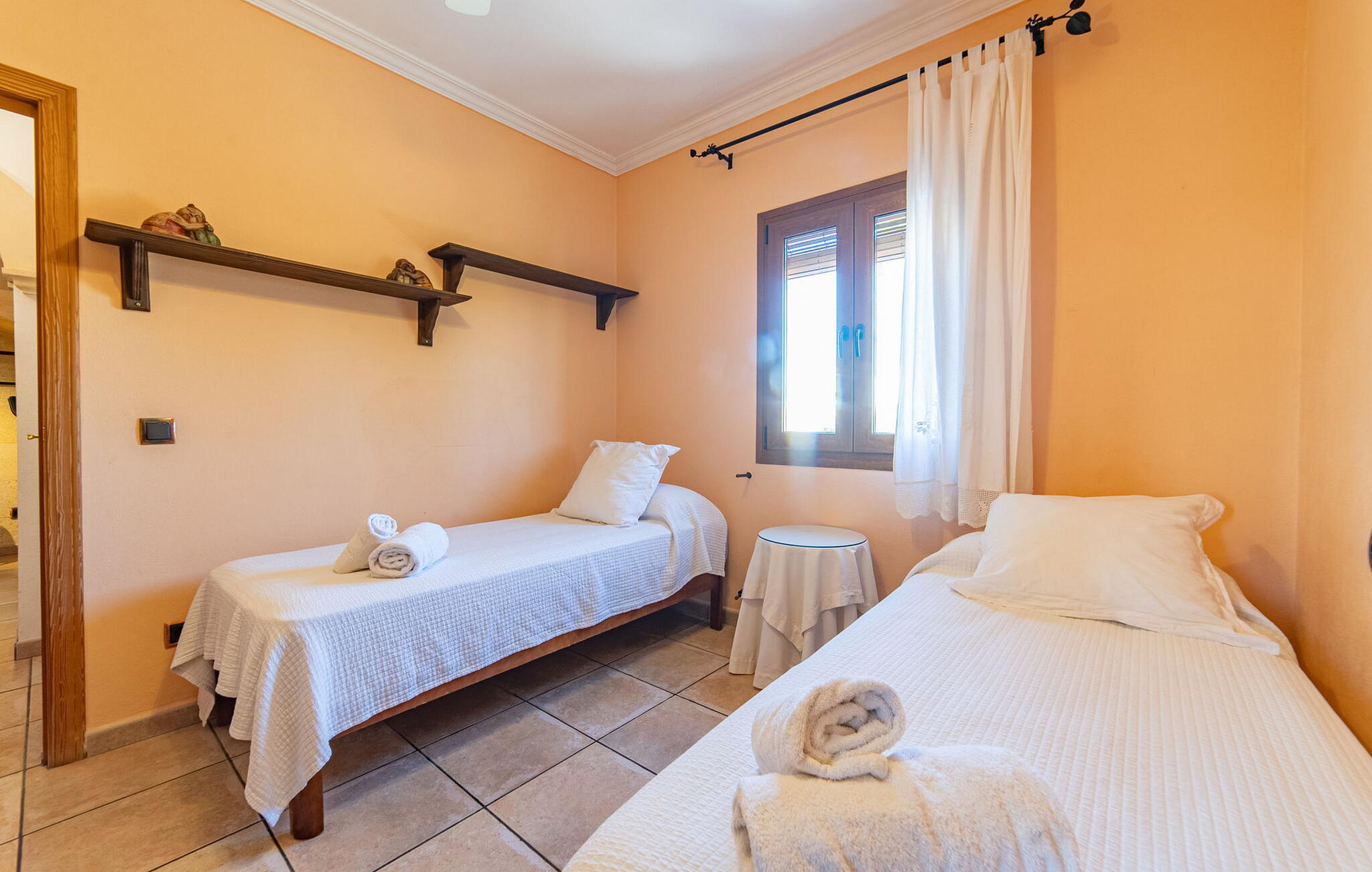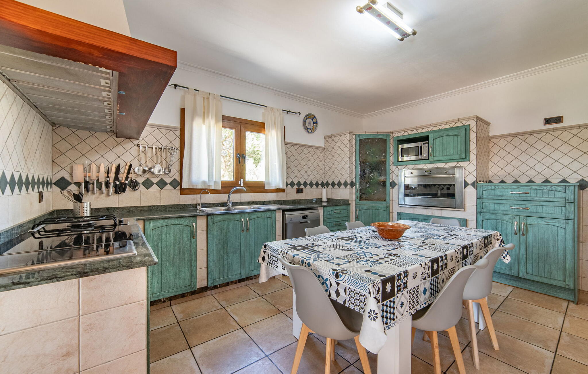 En de zeer ruime indeling van deze villa vlakbij de zee zorgt ervoor dat de dag ontspannen begint. Het twee verdiepingen tellende huis heeft een gezellige woonkamer met meer dan genoeg banken rond de open haard en tv, die in open verbinding staat met de eethoek. De aparte keuken zal je bekoren, niet alleen omdat hij volledig is uitgerust en absoluut onmisbaar is op een self-catering vakantie met een grote groep, maar ook vanwege het koele turquoise op de deuren van de ingebouwde kasten. Over het geheel genomen draagt het vrolijke kleurenpalet van de villa echt bij aan de ontspannen, down-to-earth sfeer van het huis; elk van de vijf slaapkamers, of ze nu zijn ingericht met een tweepersoonsbed of twee aparte bedden, heeft zijn eigen zachte kleurenschema, wat een rustige, kalmerende sfeer creëert. Naast de buitenbadkamer zijn er drie chique badkamers met inloopdouches en tijdloos mooie tegelpatronen. Omdat de leefruimte is verdeeld over twee verdiepingen - de bovenste verdieping heeft zelfs een zonovergoten balkon met een kleine loungeset - heeft elke gast zijn eigen persoonlijke favoriete plekje binnen of buiten, waar hij op elk moment naartoe kan gaan om zich te verliezen in een goed boek. Grote gezinnen welkom! Dat zou echt het motto kunnen zijn van de sterk aanbevolen Villa Tres Soles.