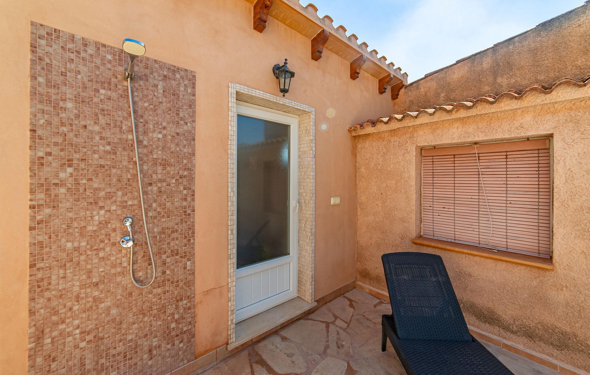 Herken je de bijzondere geur van de zee en de haven, die je tegemoet waait met een stevige bries en die je neus omringt met zoute, aromatische noten? Het ruikt naar ruimte om te ademen, naar vrijheid, alsof je heel ergens anders bent; kortom, het ruikt naar vakantie. Dit is wat we ervoeren toen we Villa Tres Soles bezochten, een vrijstaand huis in een absoluut rustige woonwijk net buiten Portocolom. Ondanks het feit dat het huis directe buren heeft, beschikt het over een privéterras met uitzicht aan alle kanten. Het heeft alles wat je je maar kunt wensen in een comfortabel vakantiehuis. Dit omvat een zeer aantrekkelijk zwembad van 42 m² met een buitendouche en een bijzonder comfortabele buitenbadkamer, een zonneterras met ligstoelen en voldoende schaduw als je het nodig hebt, evenals een mooie kleine buitenkeuken met een barbecue. Maar dit alles zou niets zijn zonder het overdekte terras naast het huis, waar je de barbecue met iedereen kunt afsluiten en kunt genieten van de zwoele avondlucht. Na een rustgevende nacht is het een geweldige plek om iedereen te ontmoeten voor een café con leche en een heerlijke ensaïmada, die je zeker moet proberen: een gebakje bedekt met poedersuiker dat ook kan worden gevuld met pompoenjam of vla. Deze traditionele Mallorcaanse specialiteit is de perfecte start van een vakantieochtend.
